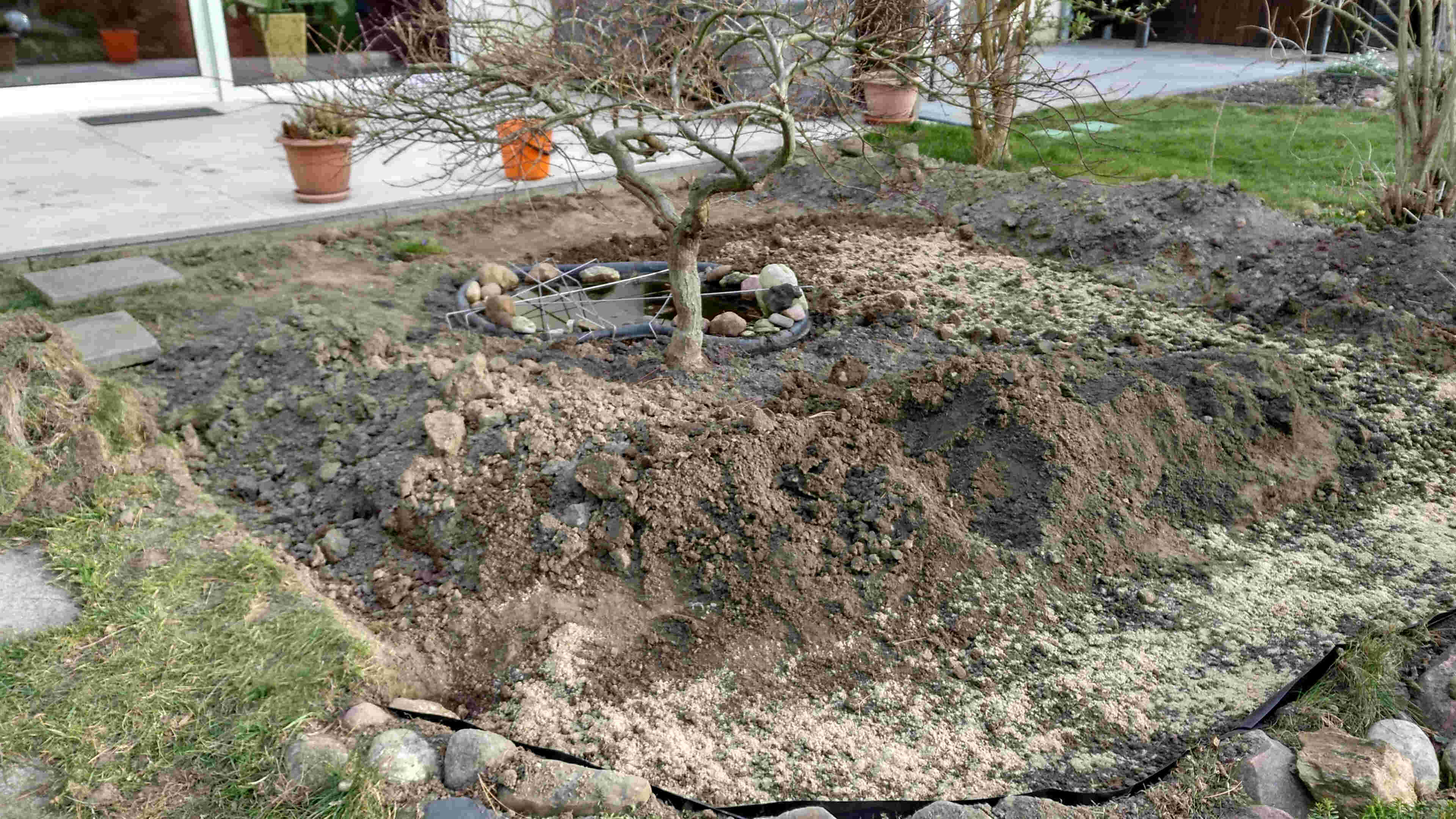 Im März 2019 musste ich die an unsere Terrasse angrenzende Rasenfläche erneuern, einfach zu viel Unkraut. Also wurde der alte Rasen spatentief ausgegraben, der darunterliegende Boden von Wurzelresten befreit und gelockert.