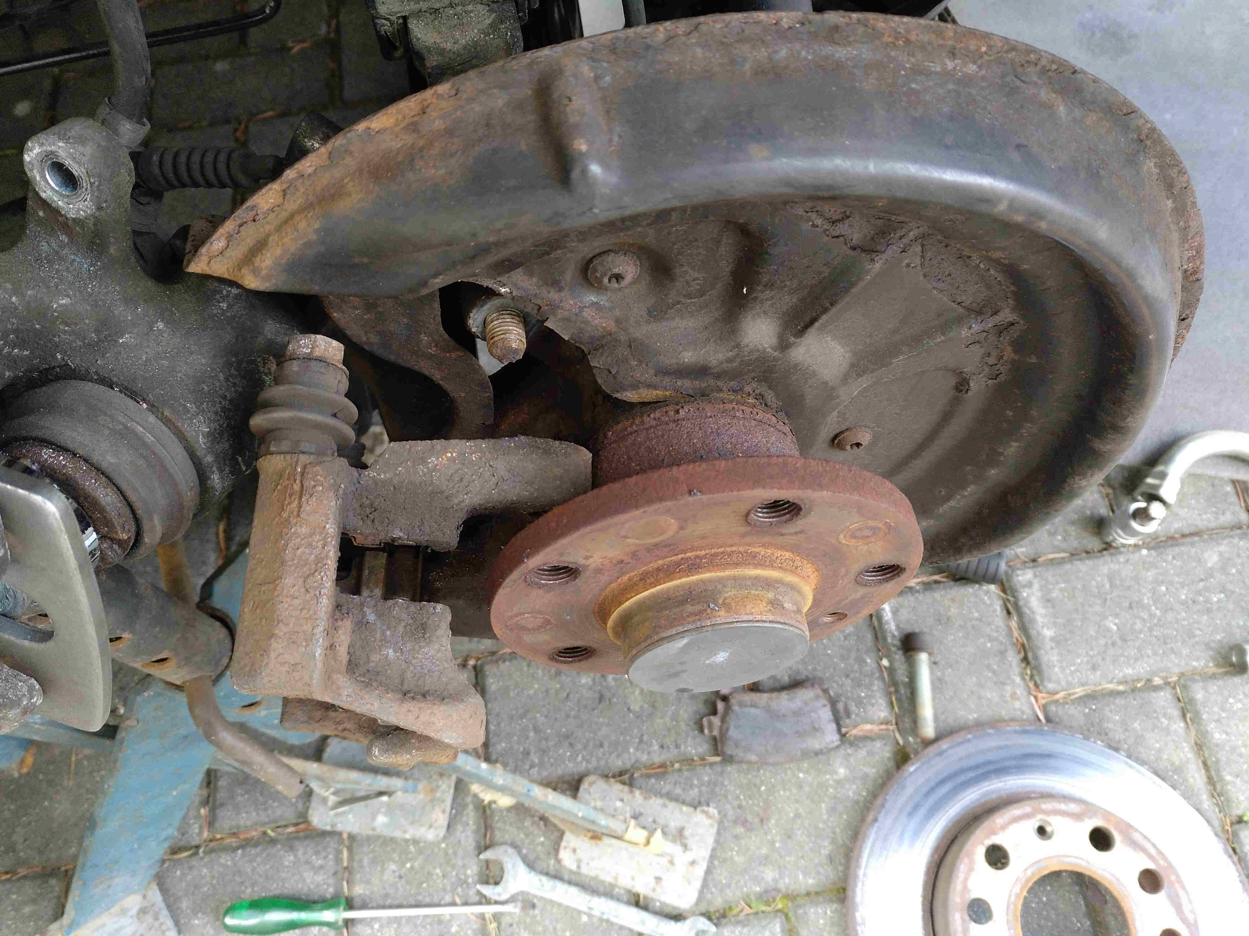 Am 22.6. und 28.6.19 haben wir uns dann noch die Vorderbremsen vorgenommen. Nach über 180.000 km sind diese doch schon ziemlich verrostet: