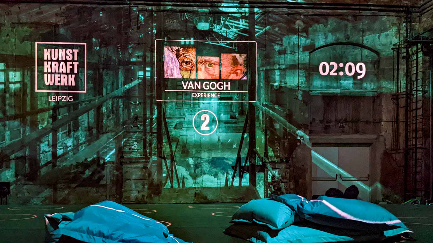 In den Räumen des ehemaligen Heizkraftwerks werden dann die einzigartigen Farb- und Bildwelten von Vincent van Gogh in überdimensionaler und immersiver Projektion gezeigt. 24 Laser-Beamer neuester Generation projizieren die Werke van Goghs – von den Kartoffelessern über die Sonnenblumen bis zur Sternennacht – in riesiger Auflösung an die bis zu acht Meter hohen Wände und die Decke sowie auf den Boden der Halle.