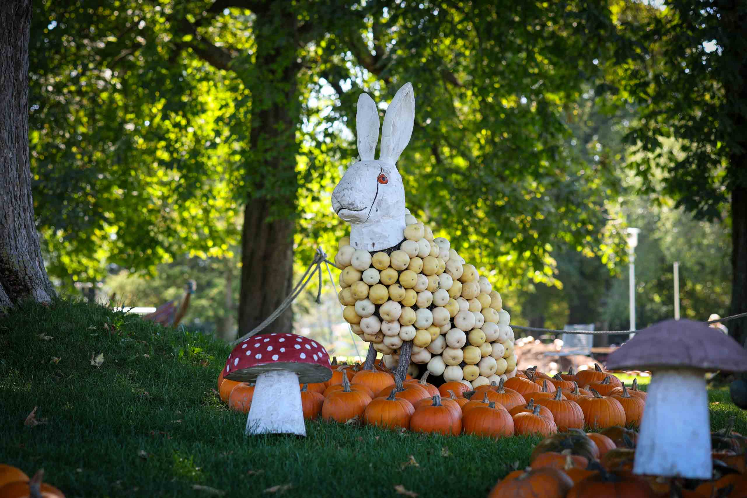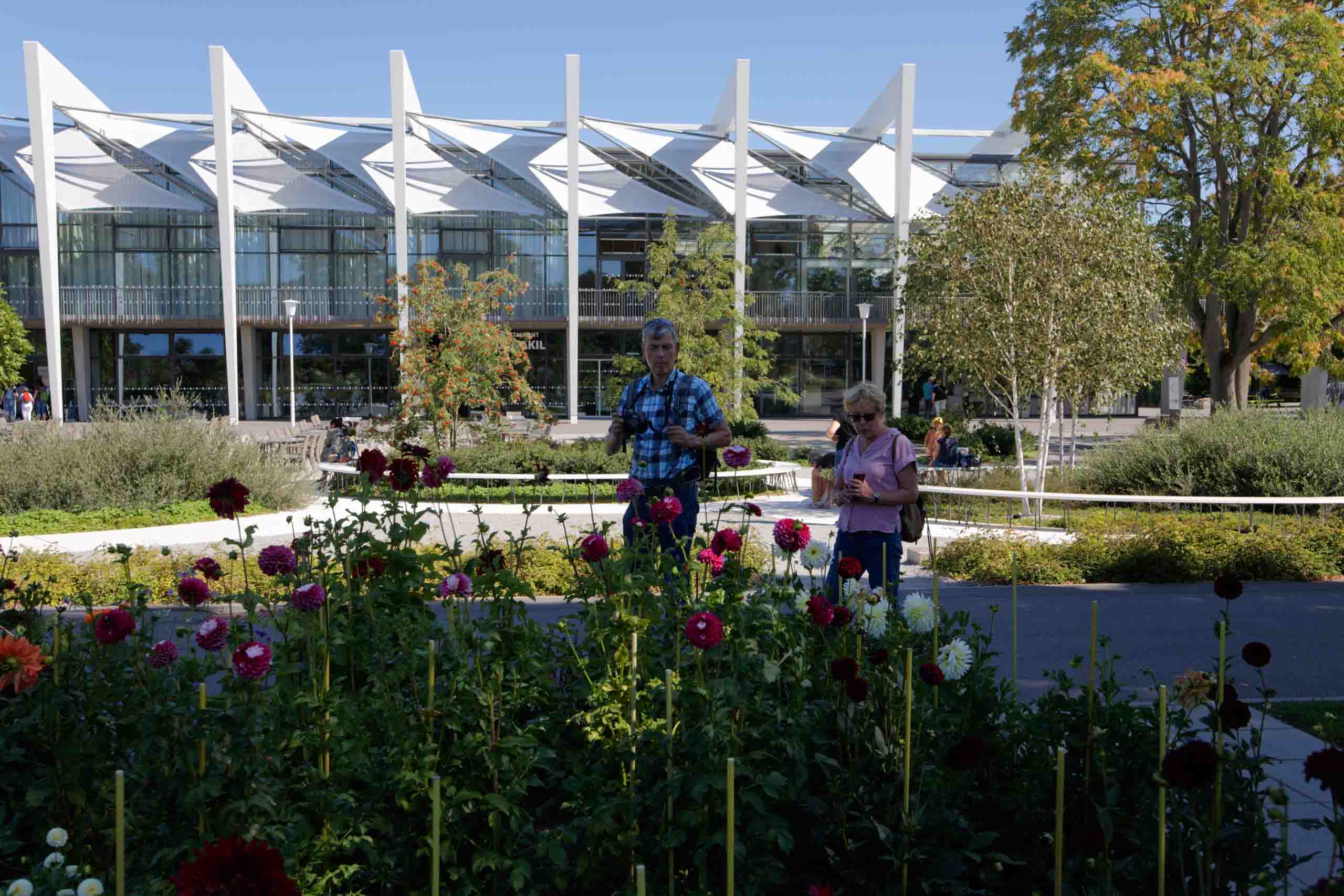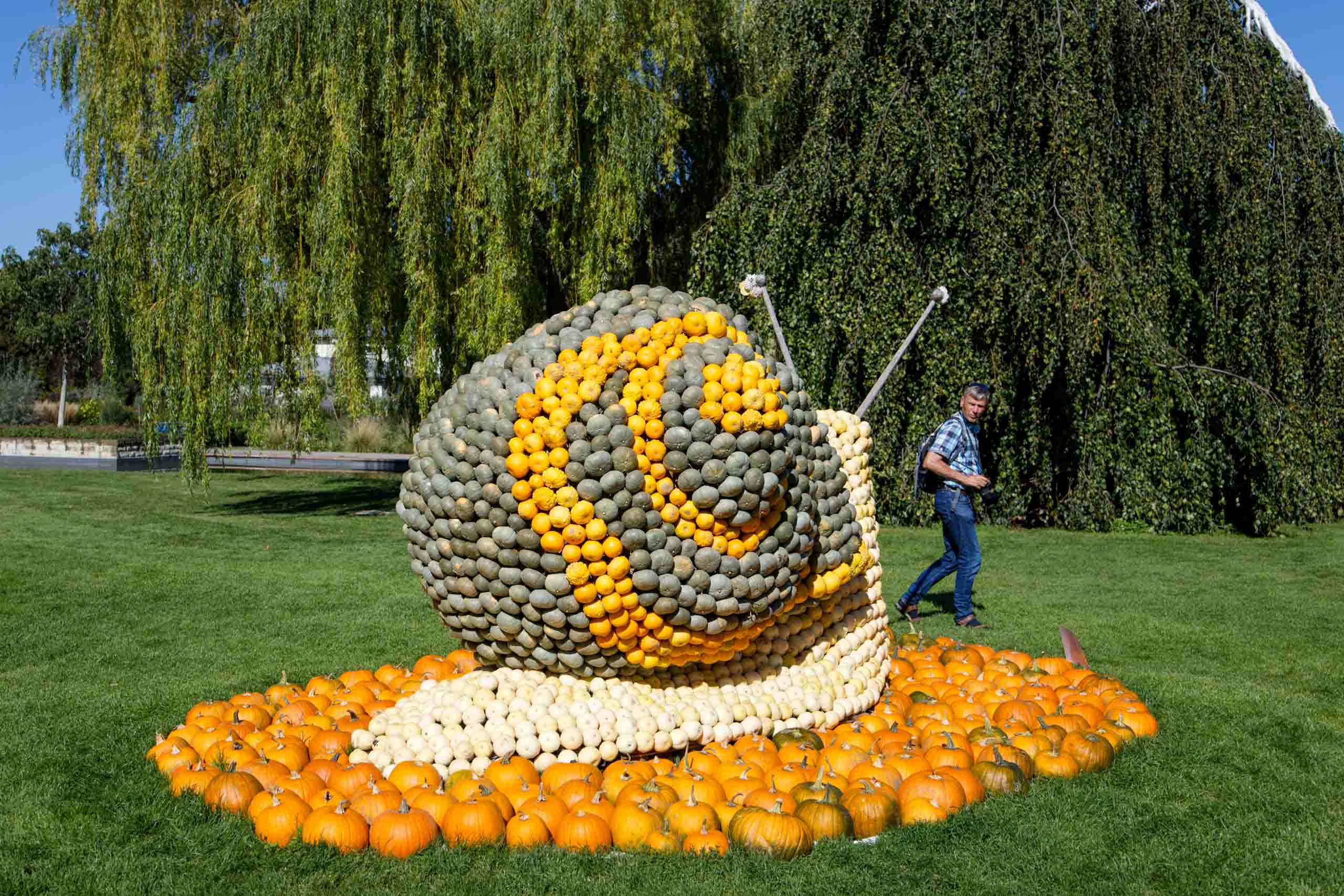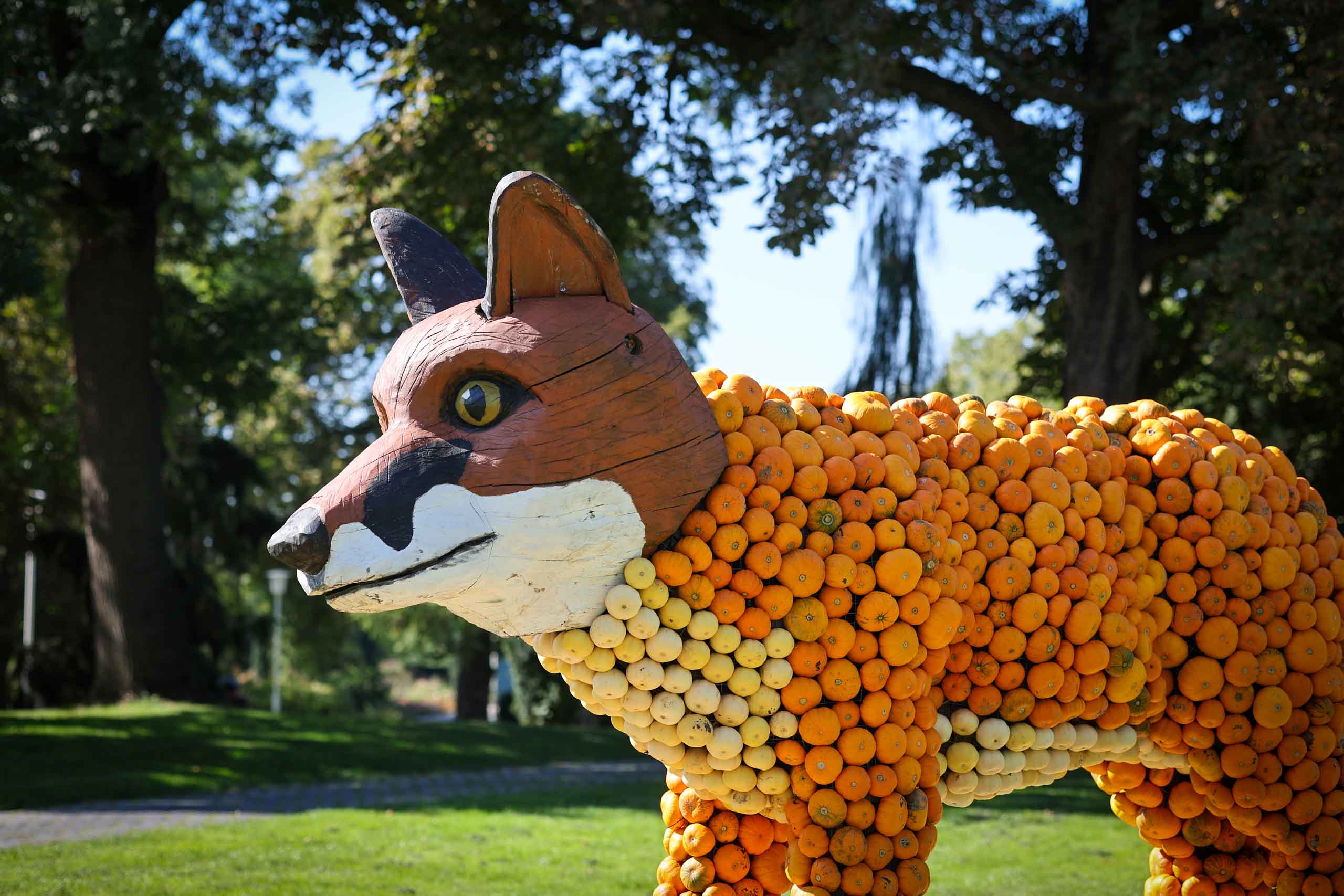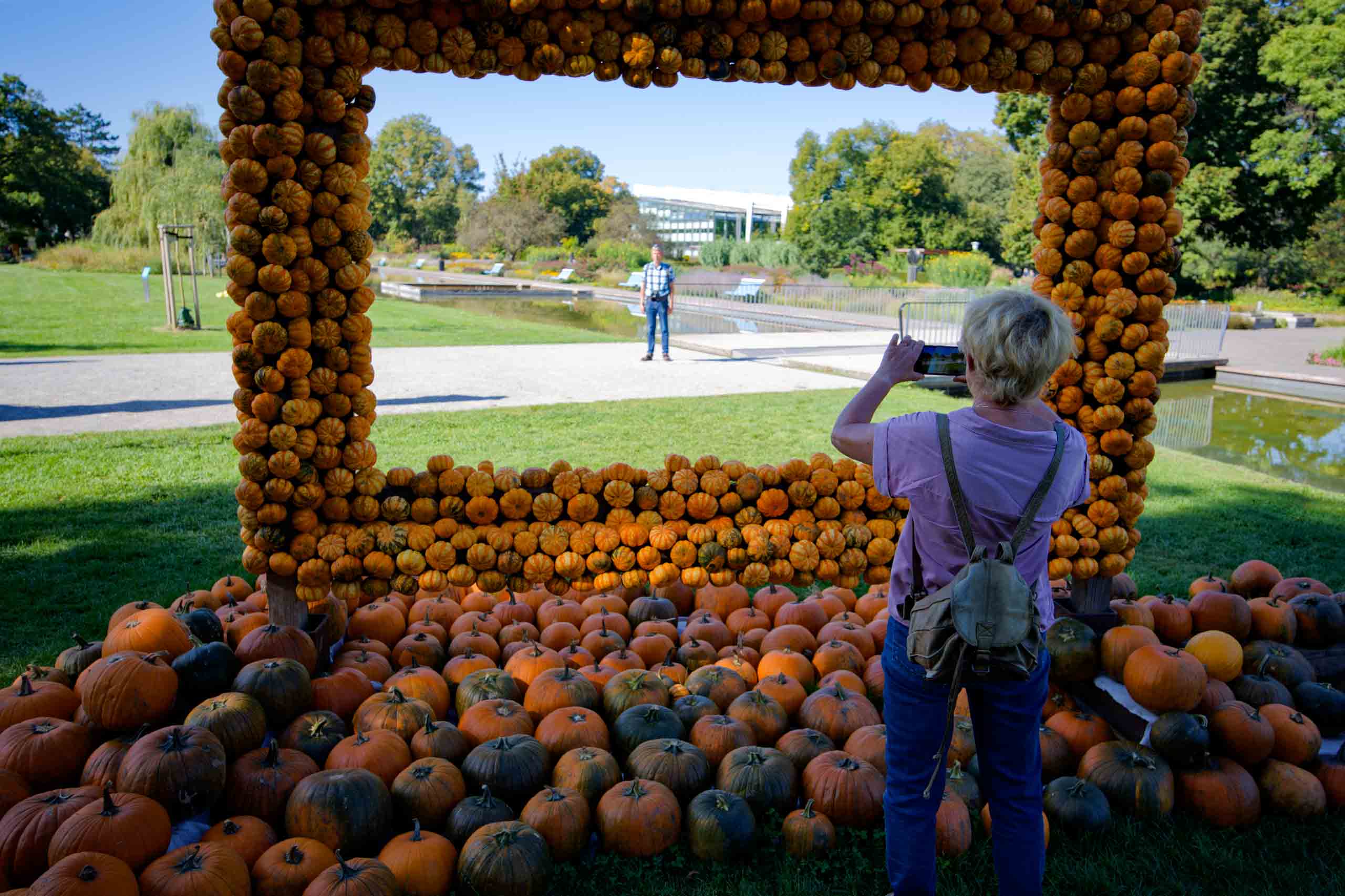 Das Wetter war für diesen Ausflug bestens geeignet und so ging es gut gelaunt auf Reise. Der Andrang im Park war gering und so konnten wir alles entspannt genießen. Sehr gelungen war das große Blumenband in der Mitte des Parks wie auch die liebenvoll aus Kürbissen gestalteten Tiere. Der Bereich mit dem japanischen Garten war noch immer wegen eines Unwetters vor einigen Wochen weiträumig gesperrt. Der für uns besonders interessante Karl-Förster-Garten war leider nicht im besten Zustand, vielleicht lag es aber auch an der Jahreszeit. Nachdem wir uns am Nachmittag noch im Pavillion stärken konnten, wollten wir den Standort wechseln. Vor dem Kassenautomaten stand bereits eine lange Schlange. Offenbar waren jedoch beide Automaten defekt und verschluckten die Ausfahrtickets. Da machte sich fast etwas Panik breit, bis jemand bemerkte, dass die Ausfahrschranke am anderen Ende des Platzes dauerhaft geöffnet war. Also 8 Euro gespart.