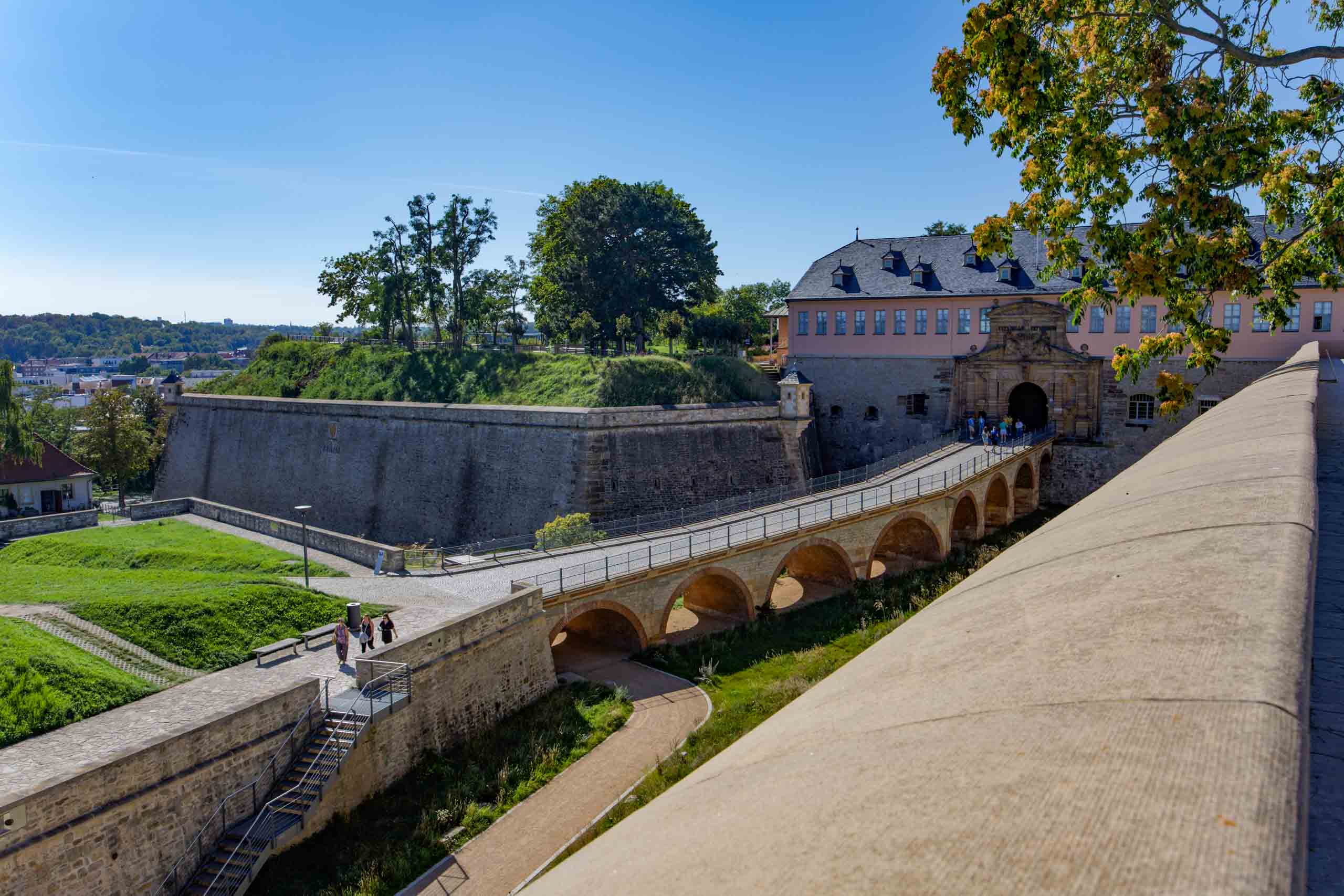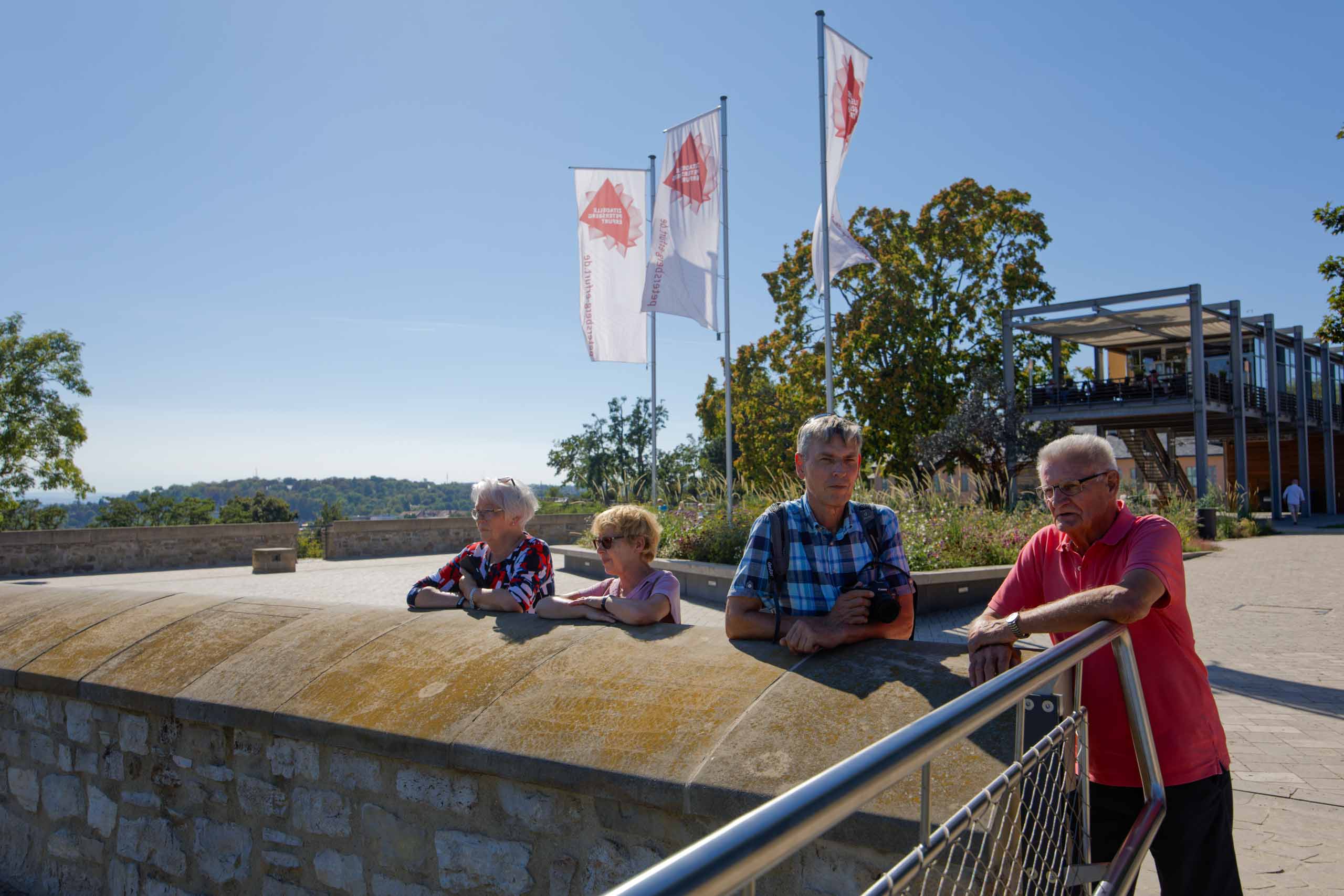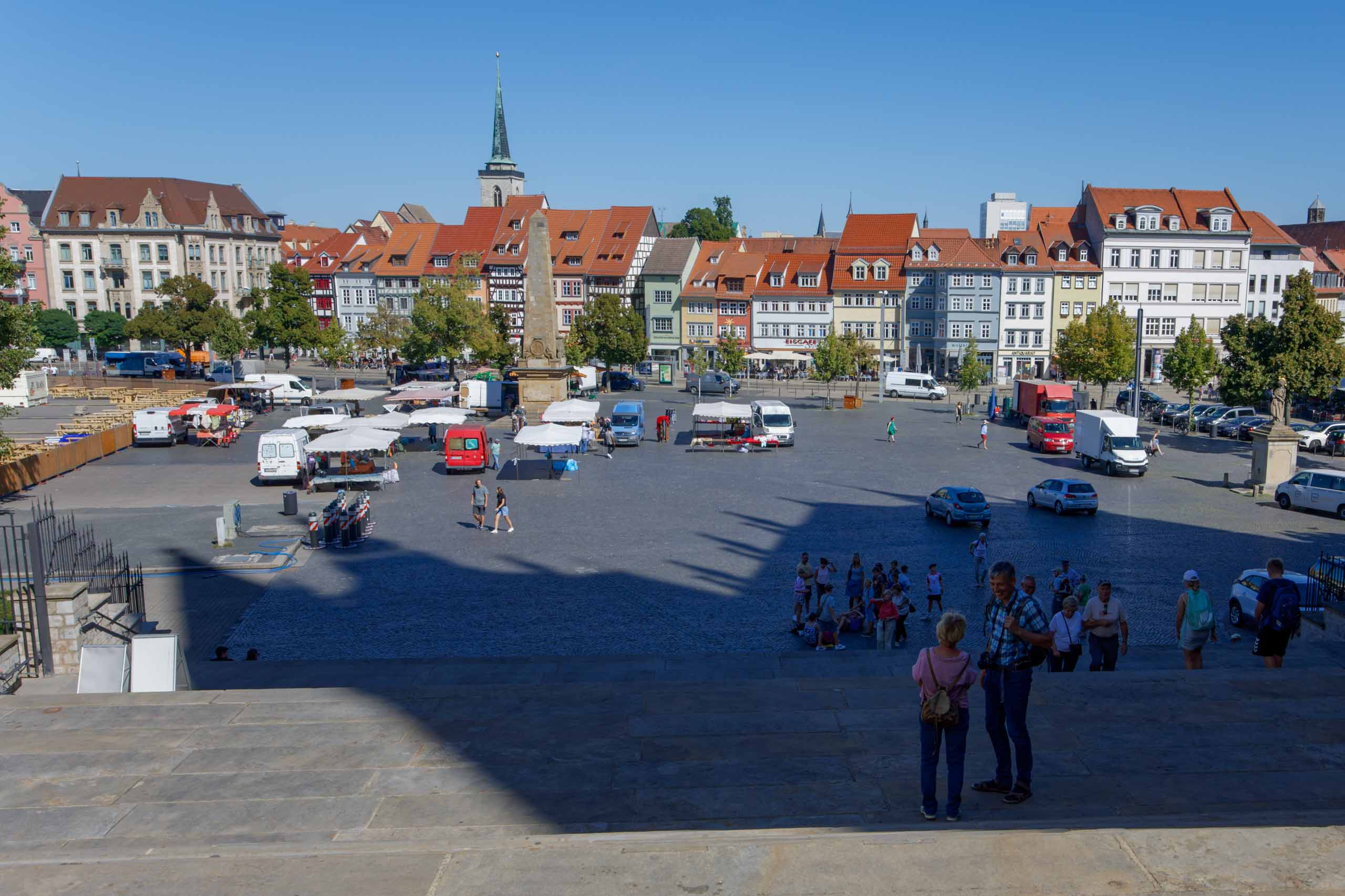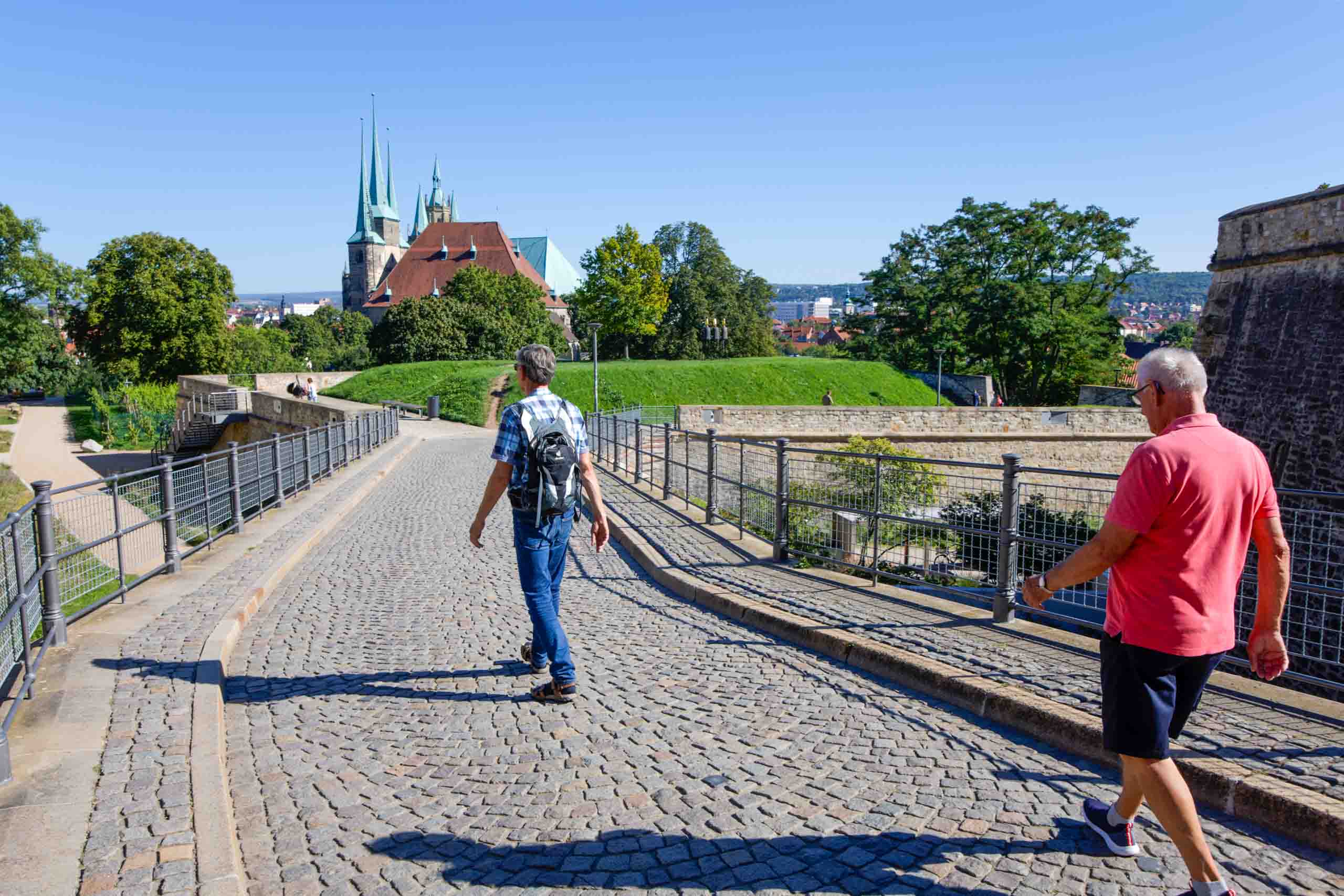 Im Zentrum Erfurts haben wir noch den Dom und dessen Umgebung besucht, bevor wir mit beiden Schönstedtern den Petersberg erklommen. Von dort hatten wir einen wunderbaren Ausblick auf die Stadt und ins Umland, sogar den Glockenturm auf dem Ettersberg bei Buchenwald konnte man erkennen.