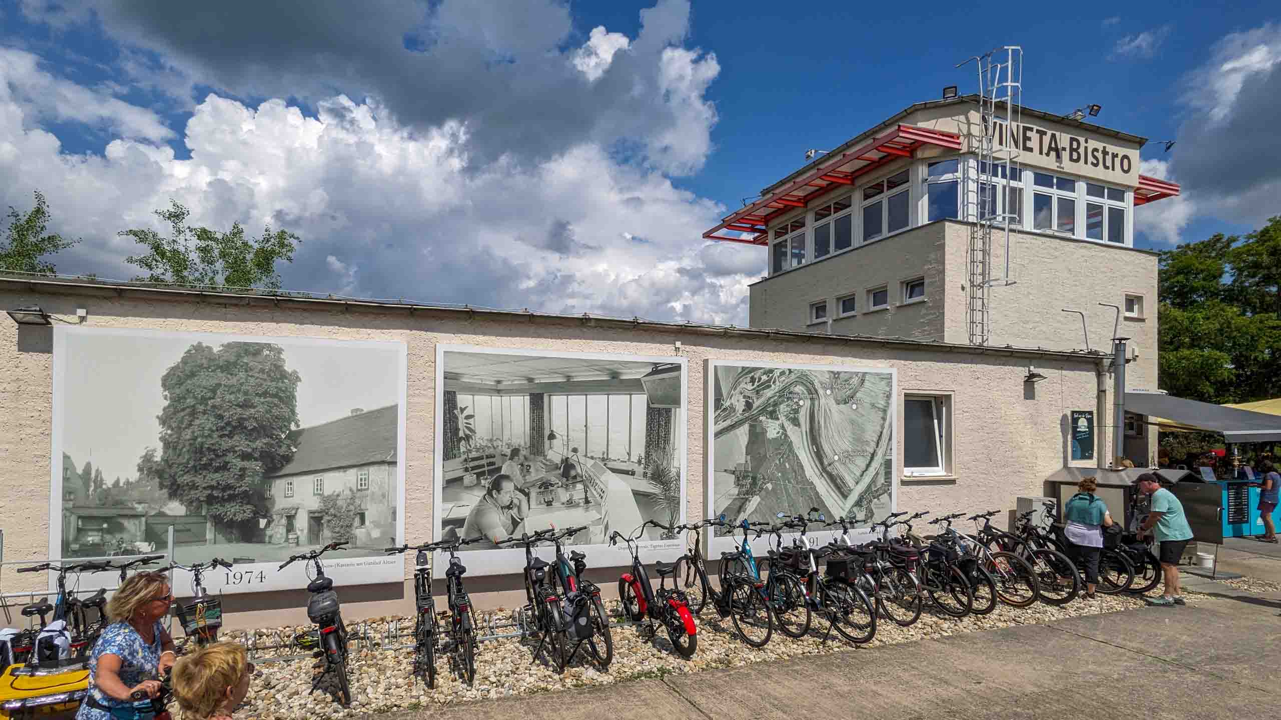 Wir haben zunächst den Störmtaler See umrundet, der seit 2012 vollständig geflutet ist. Die Besonderheit Störmthaler Sees ist das schwimmende Kunstobjekt VINETA, ein einmaliger Ort für Veranstaltungen. Der in unmittelbarer Nähe zum See befindliche Bergbautechnikpark ist ebenfalls ein interessantes Ausflugsziel.