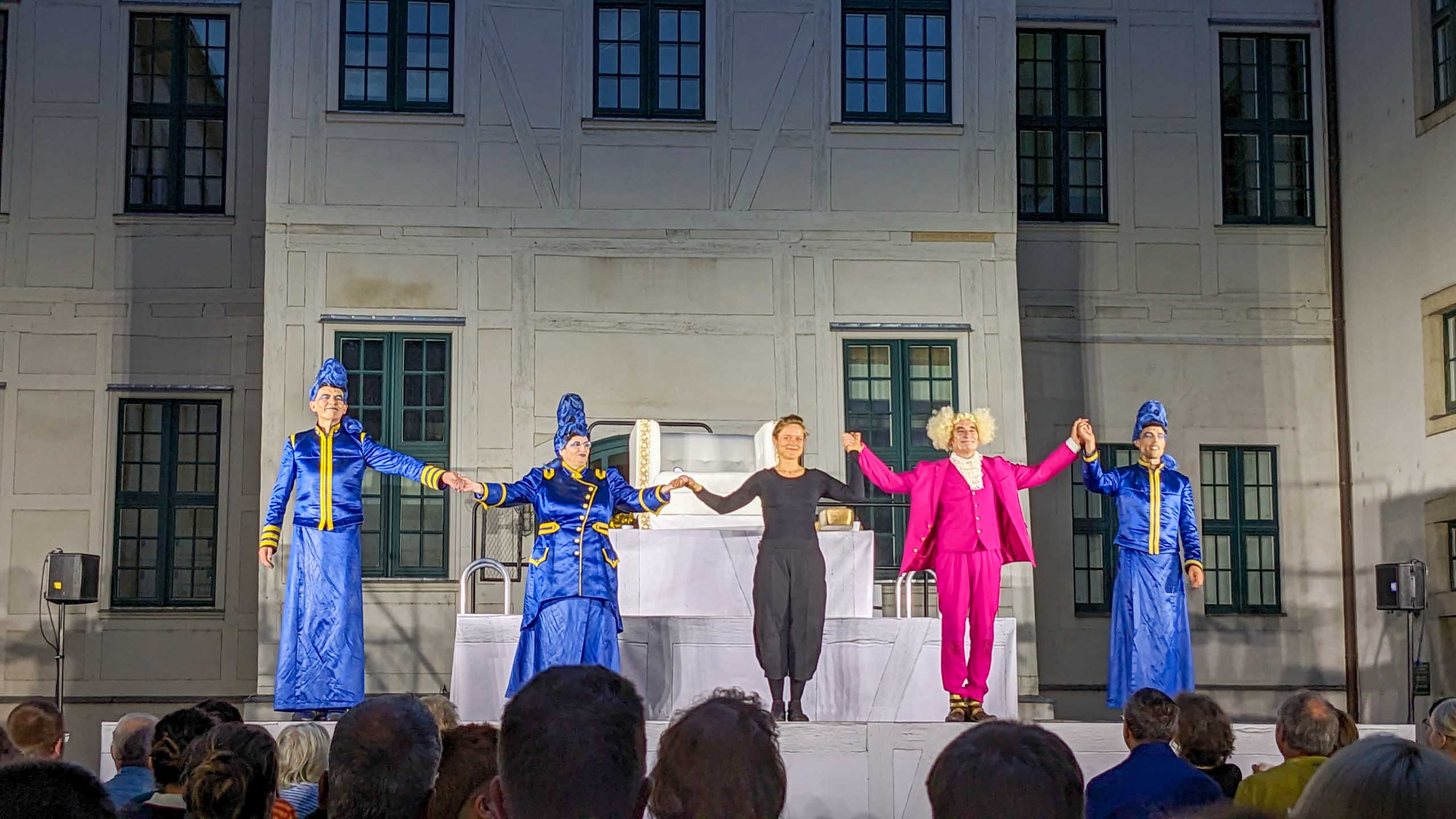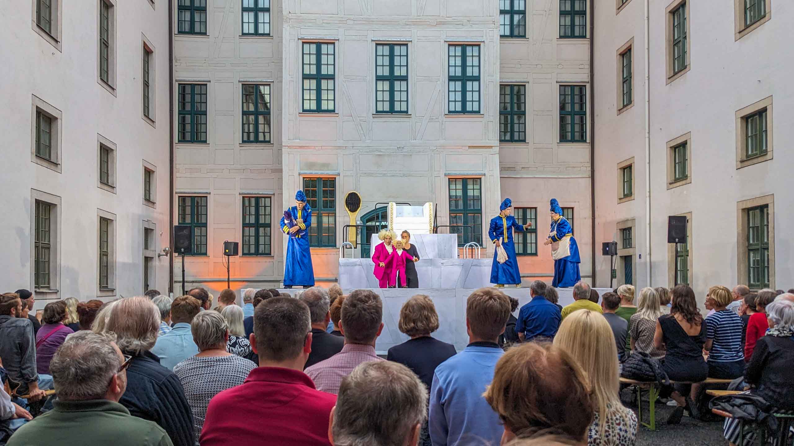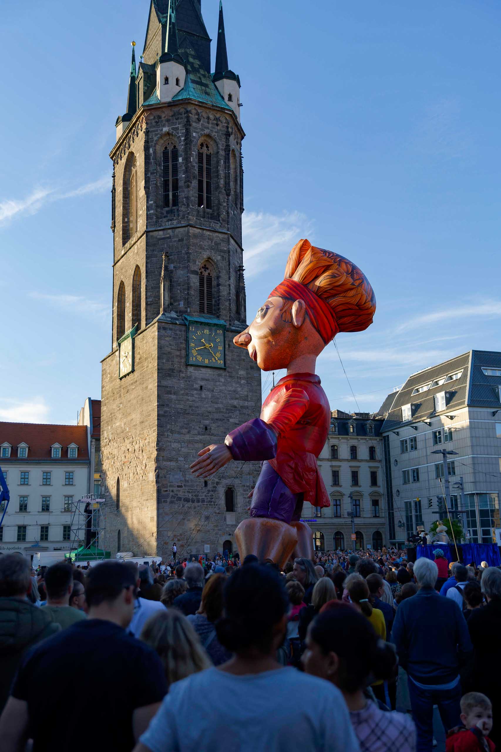 Vom 15. bis 22. Juni feierte das Puppentheater Halle (übrigens des einzige Puppentheater für Erwachsene in Deutschland) sein 70. Jubiläum mit einem großen Festival, das die Stadt in eine Bühne verwandelte. Den Auftakt bildeten die Plasticiens Volants aus Frankreich. In den folgenden Tagen gab es im Hof des Salinemuseums "Gulliver im Lande Liliput", auf dem Salzgrafenplatz "Gulliver und die fliegenden Inseln", im Graben der Moritzburg "Gulliver und die Pferdemenschen" und schließlich im Lindenhof der Frankeschen Stiftungen "Gulliver im Land der Riesen" zu sehen.