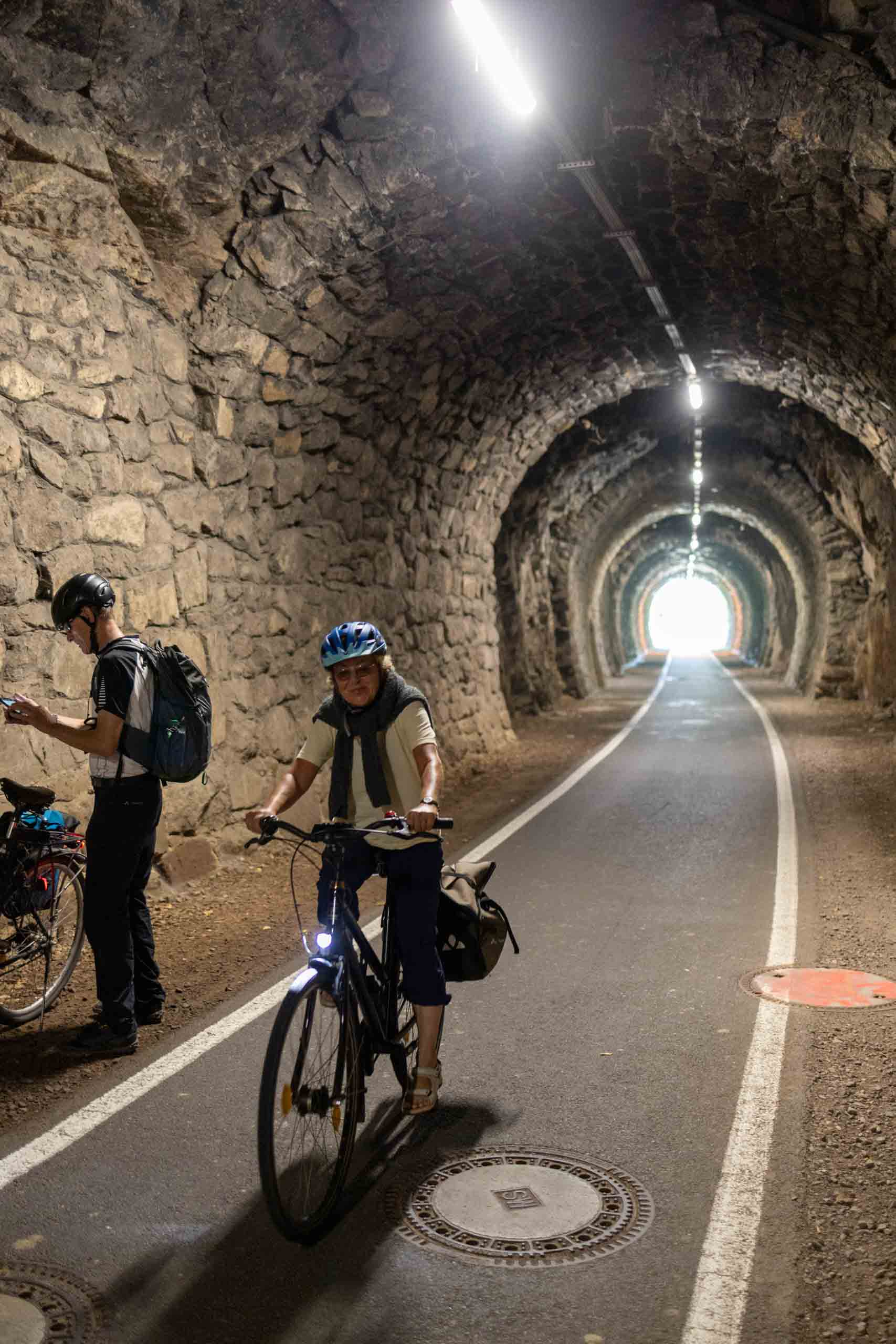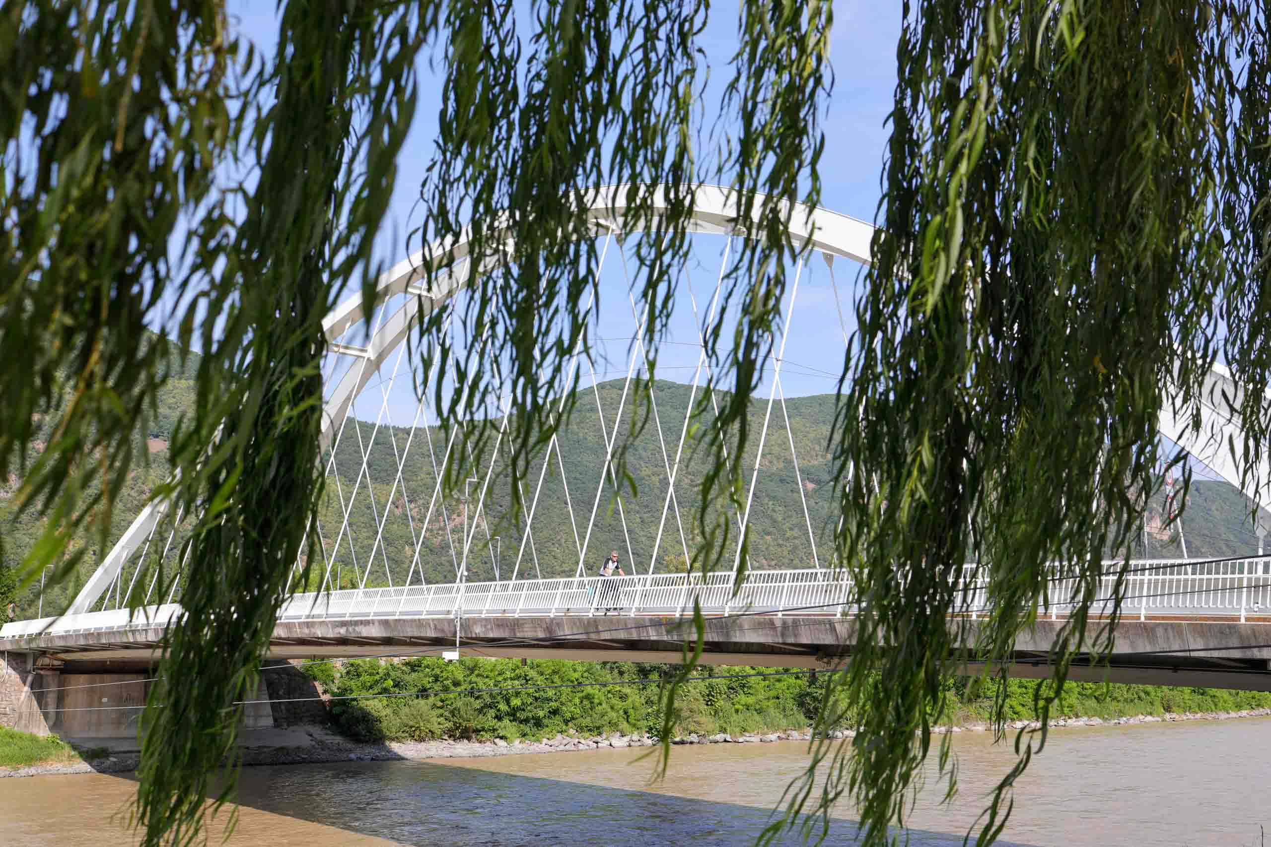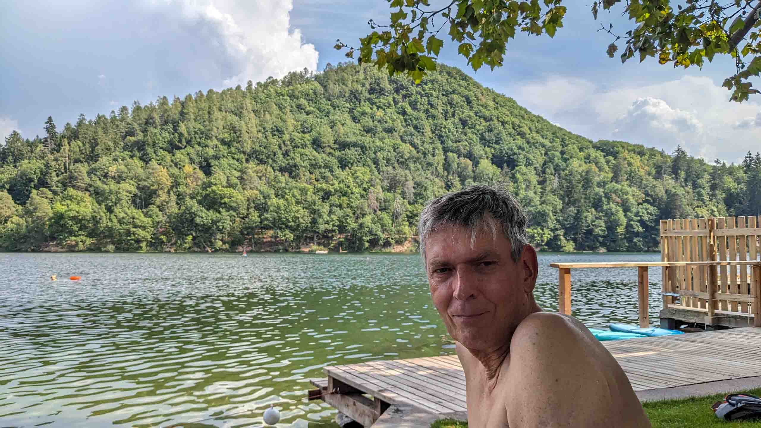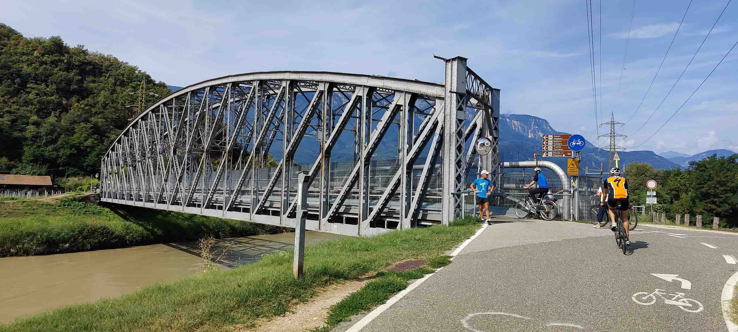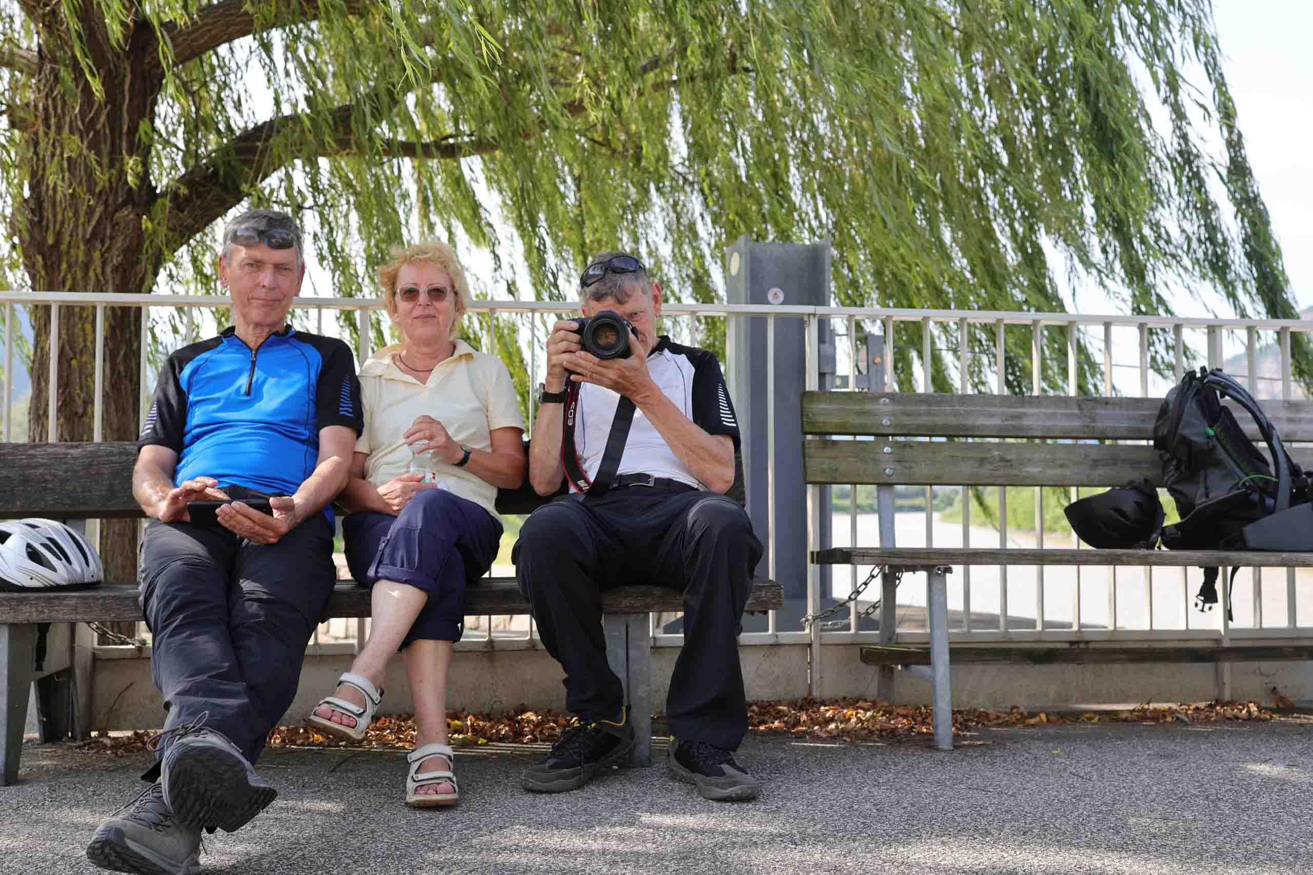 Auf Empfehlung des Hauses radeln wir zunächst Richtung Bozen, biegen aber am Schloß Sigmundskron, dem Messner Mountain Museum nach Norden ab und versuchen den richtigen Weg nach Girlan zu finden. Leider klappt dies nicht so recht und wir kommen von der Route ab, radeln hoffnungsvoll weiter bis St. Michael. Dort dehen wir ein Hinweisschild zum Montiggler See. Der scheinbare Radweg geht bald in einen schlechten Wanderweg über. Wir wollen nicht zurück und kämpfen uns weiter durch den Wald. Schließlich versagt auch noch die Navigation. Wir haben Mühe, wieder auf den rechten Weg zu gelangen. Irgendwie erreichen wir dann doch noch unser Tagesziel, den Montiggler See. Wir haben noch ausreichend Zeit für ein erfrischendes Bad im See. Der EIntritt für Rentner ist in Italien übrigens deutlich ermäßigt!