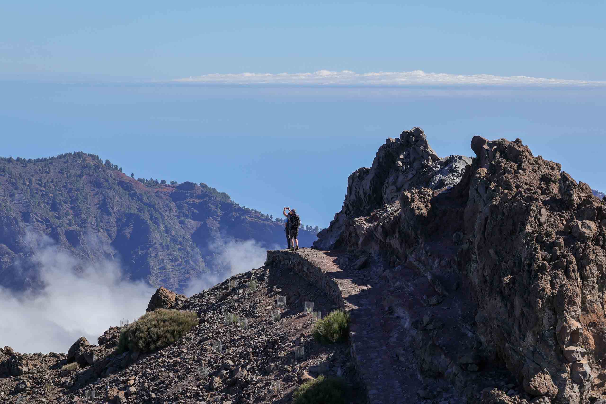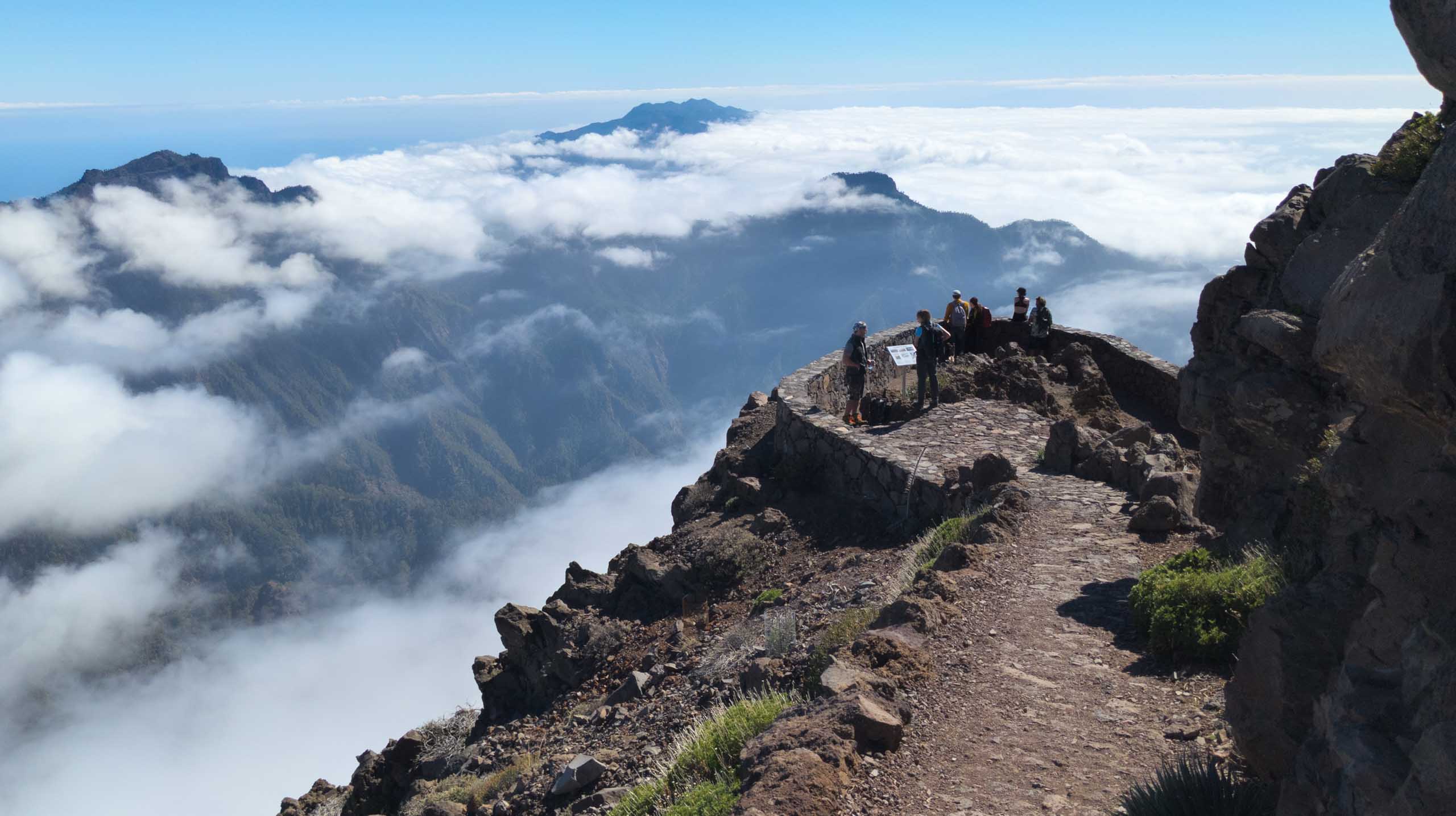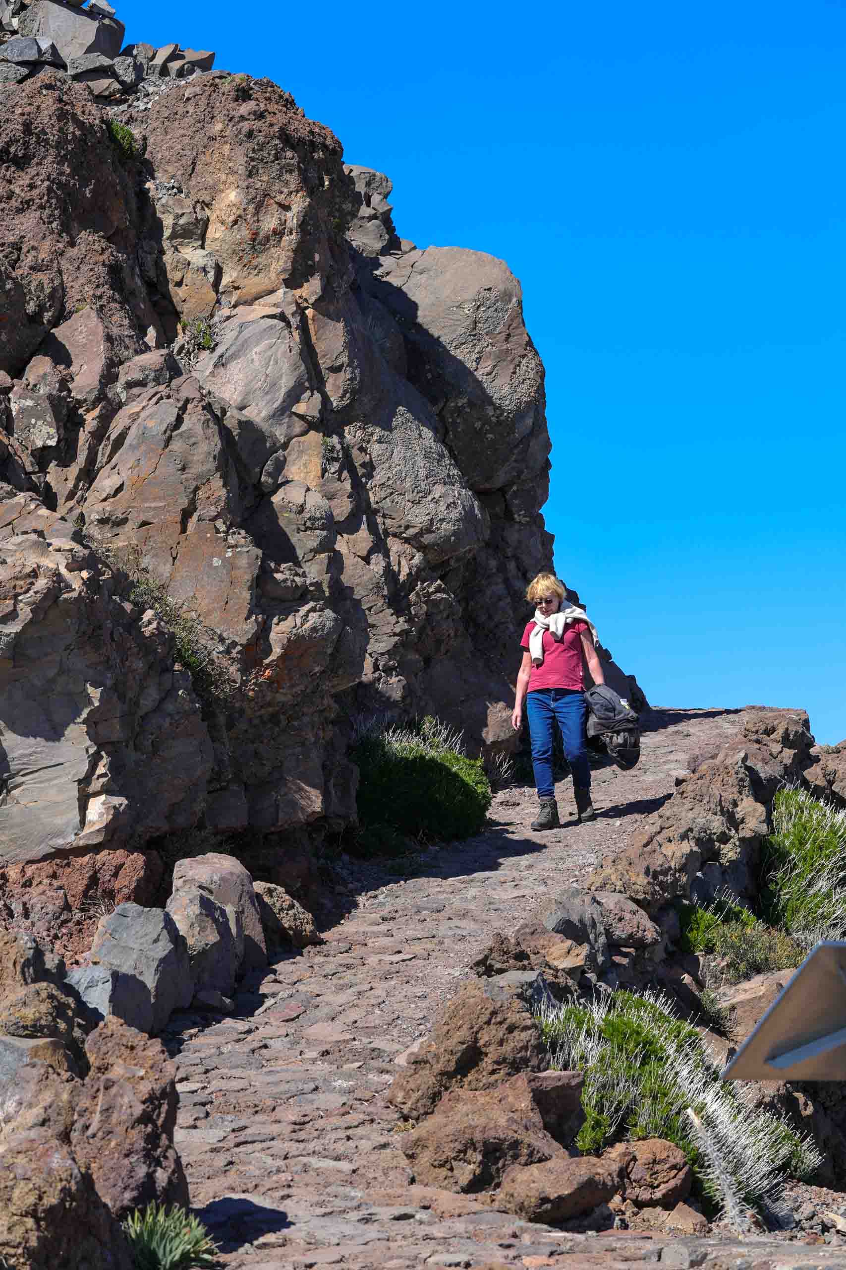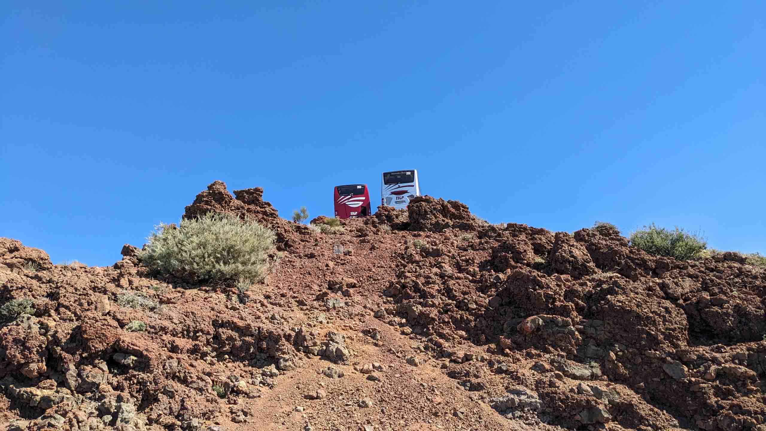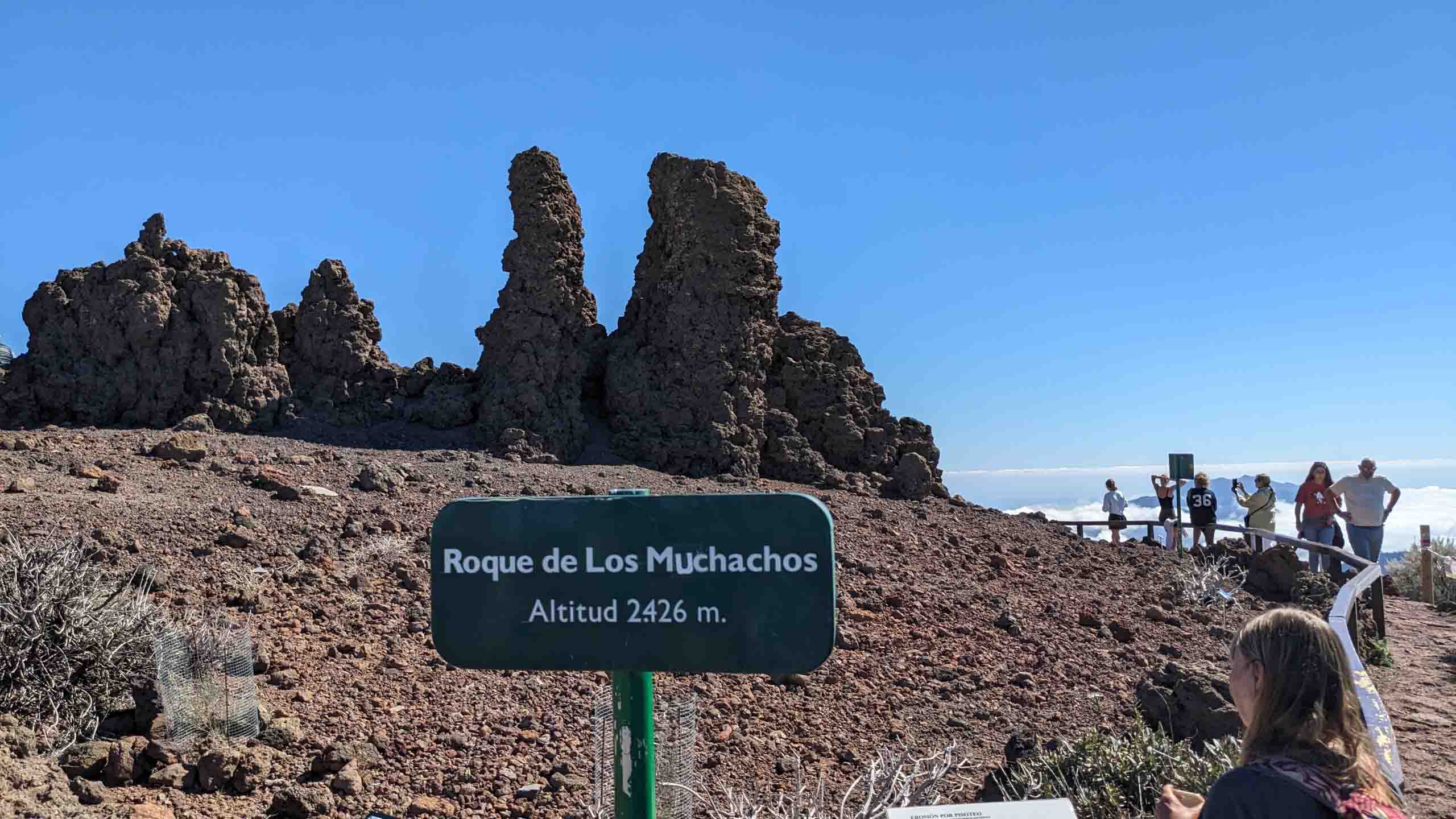 Oben auf dem "Roque" ist unterhalb des Gipfels ein kleiner Parkplatz, auf den selbst noch die Busse fahren, um den Passagieren der Kreuzfahrtschiffe jeden Schritt zu ersparen. Um wieder von oben nach unten gelangen, müssen die Busse auf der Stelle wenden. Wenn dann noch ein PKW kommt, geht fast gar nichts mehr. Doch erstaunlicherweise bleiben dabei alle Beteiligten entspannt und gelassen.