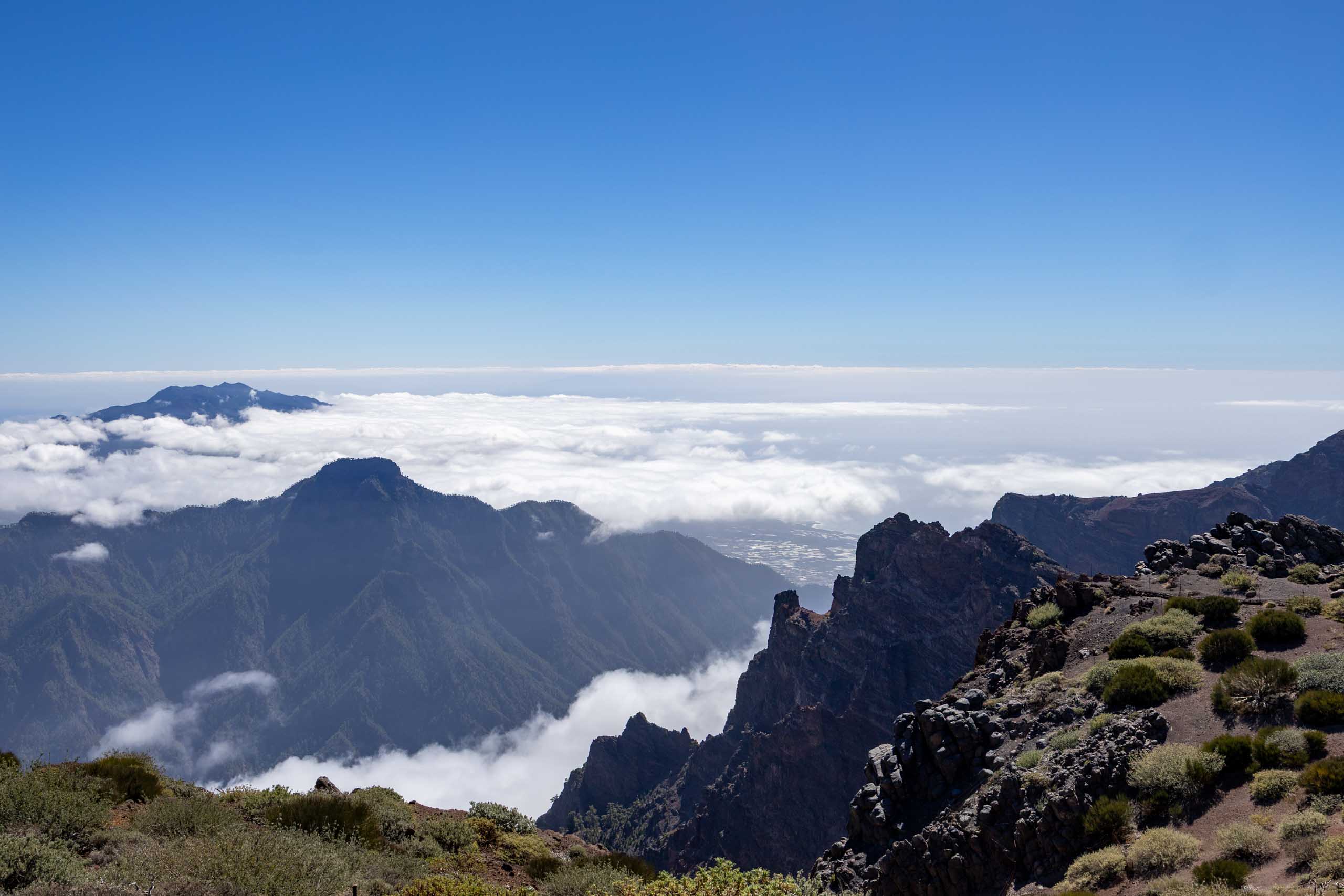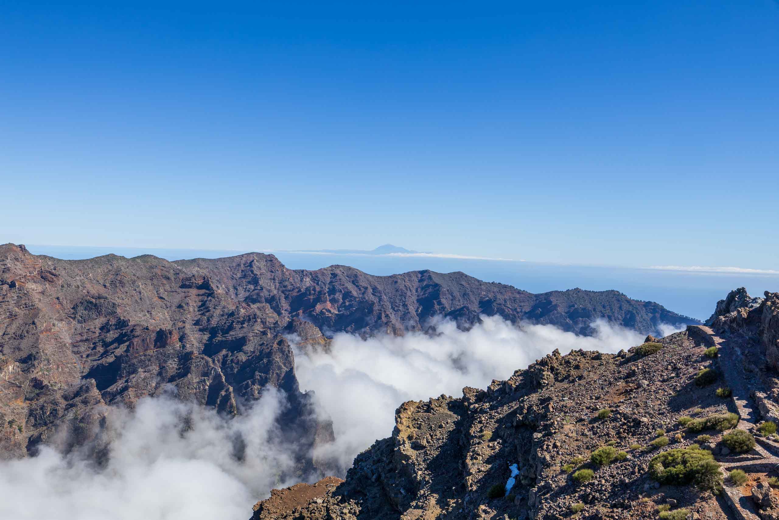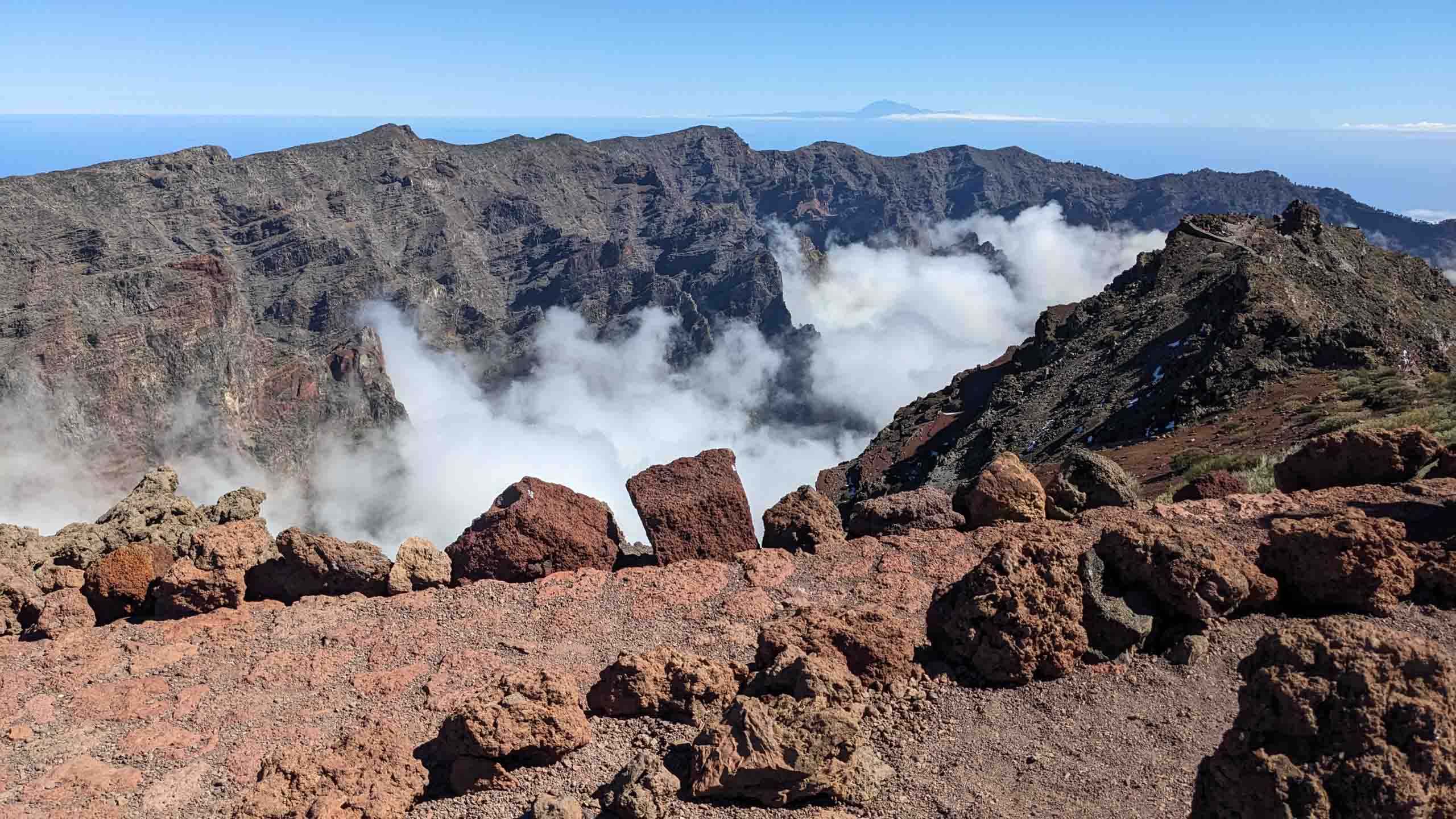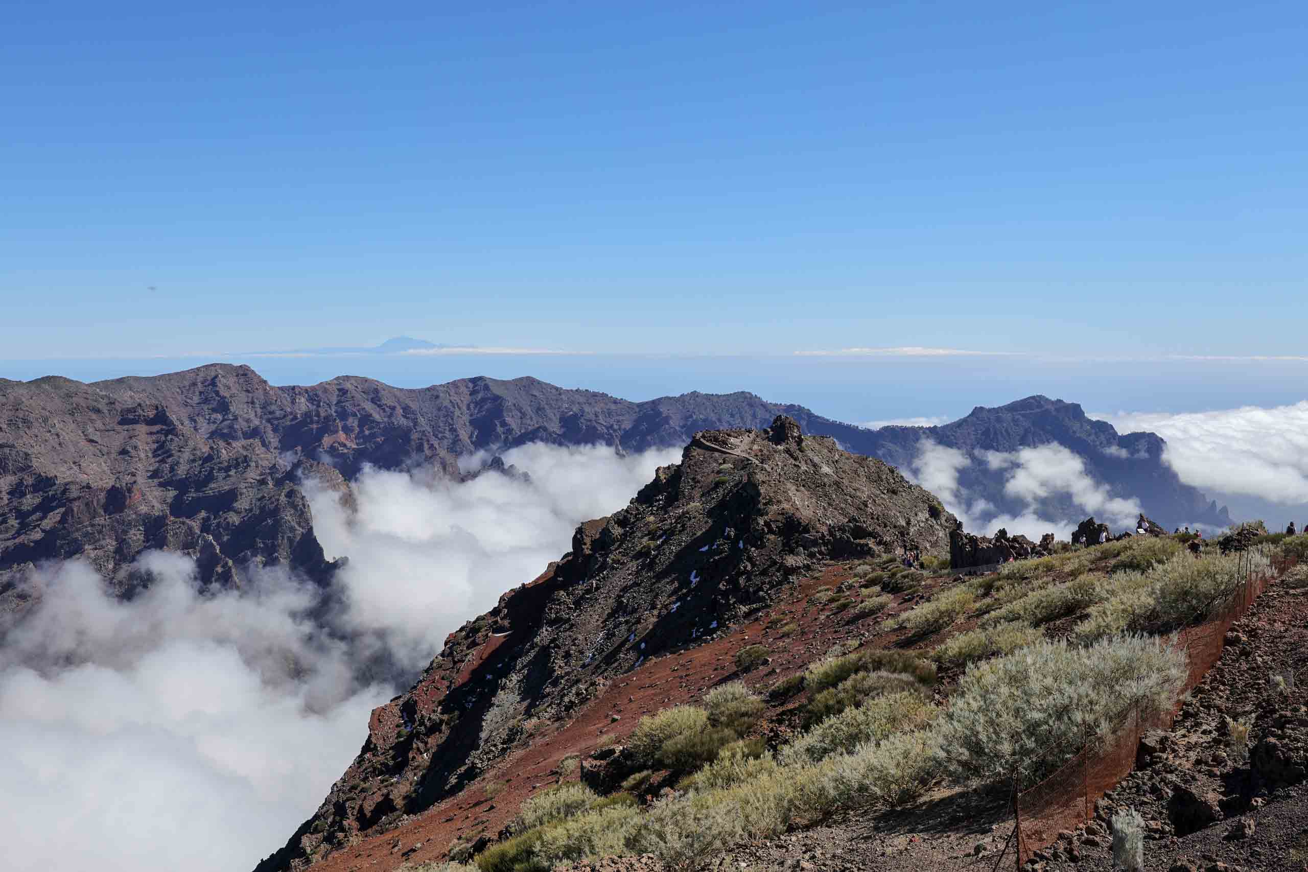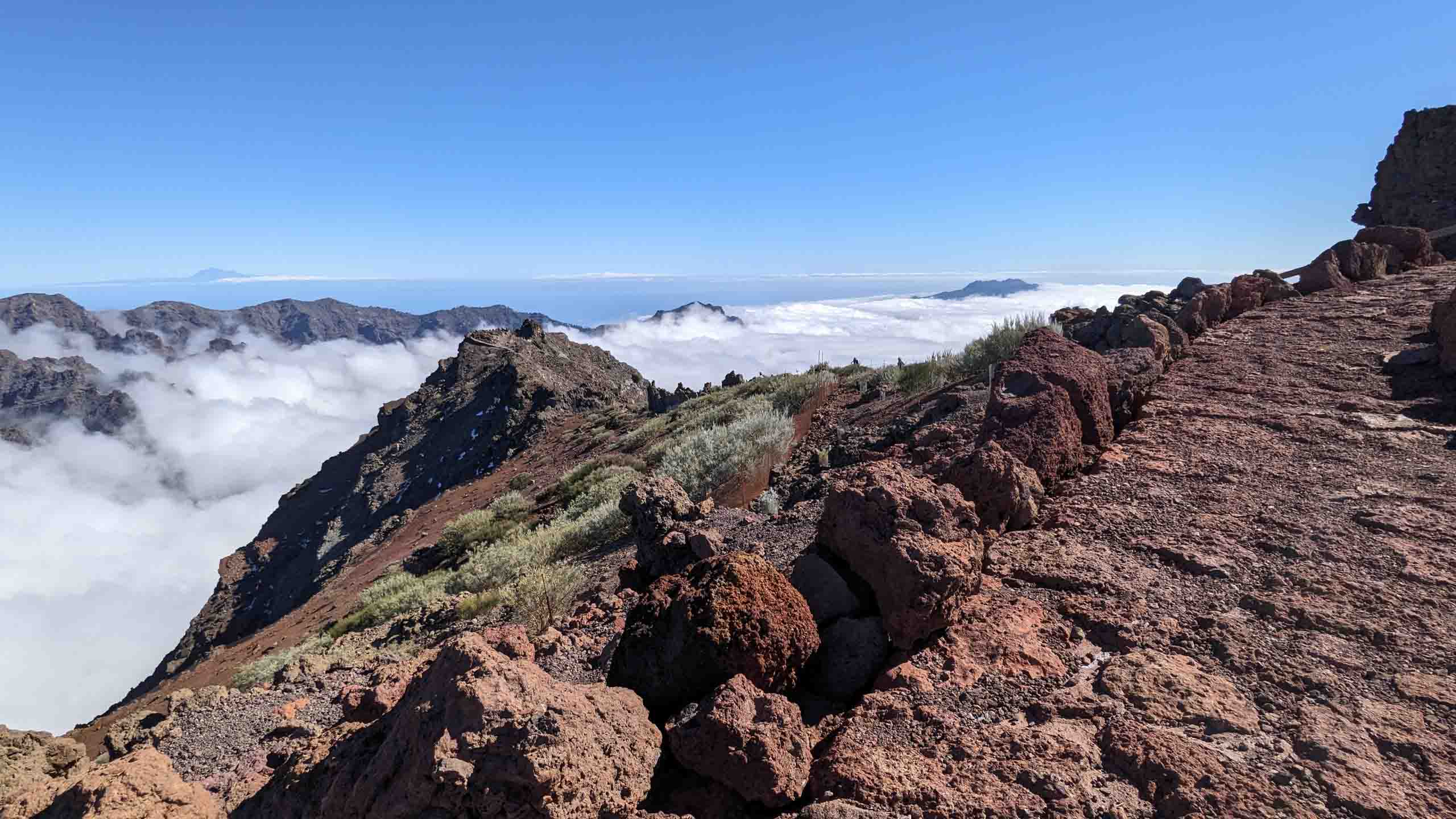 Oben auf dem "Roque" ist unterhalb des Gipfels ein kleiner Parkplatz, auf den selbst noch die Busse fahren, um den Passagieren der Kreuzfahrtschiffe jeden Schritt zu ersparen. Um wieder von oben nach unten gelangen, müssen die Busse auf der Stelle wenden. Wenn dann noch ein PKW kommt, geht fast gar nichts mehr. Doch erstaunlicherweise bleiben dabei alle Beteiligten entspannt und gelassen.
