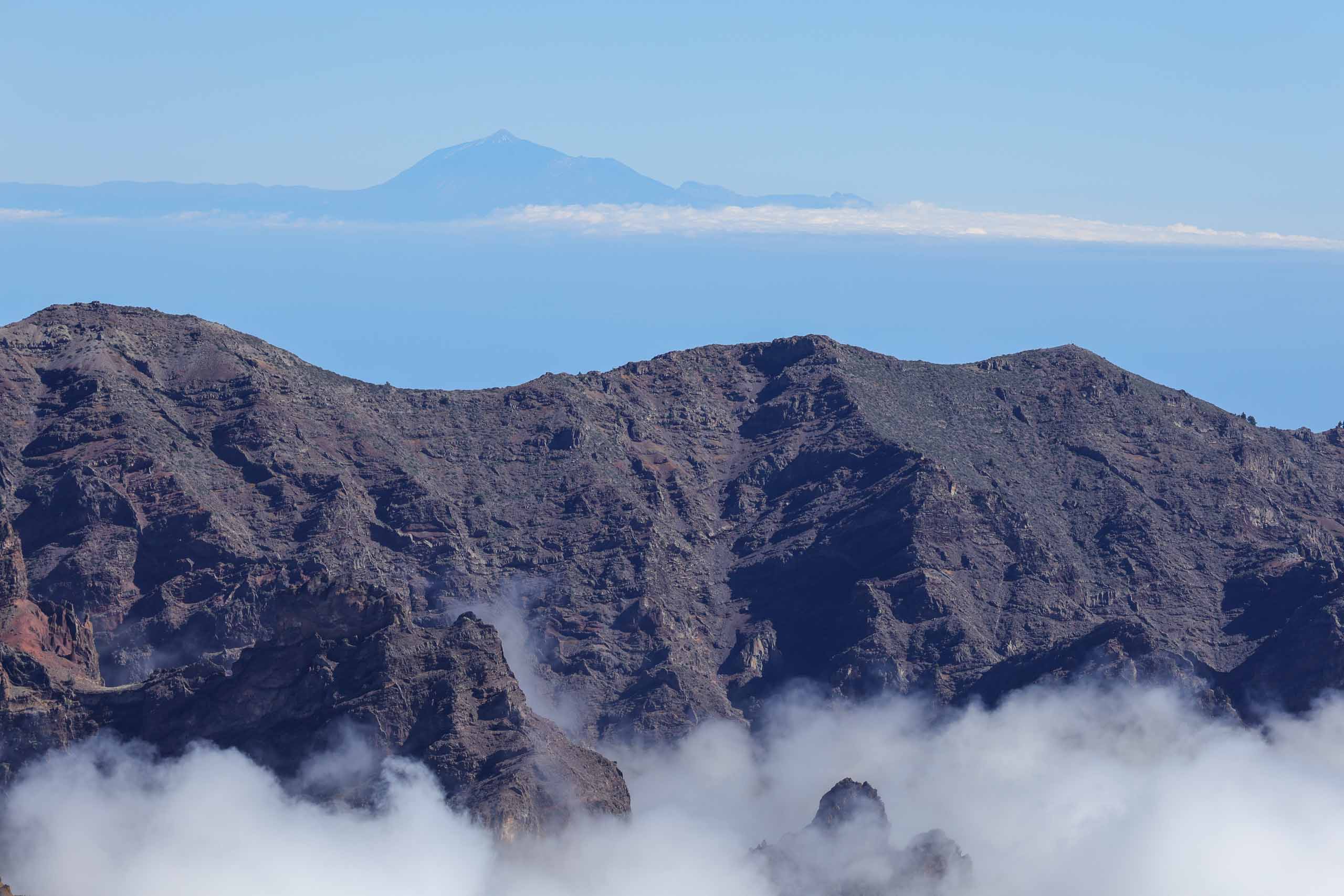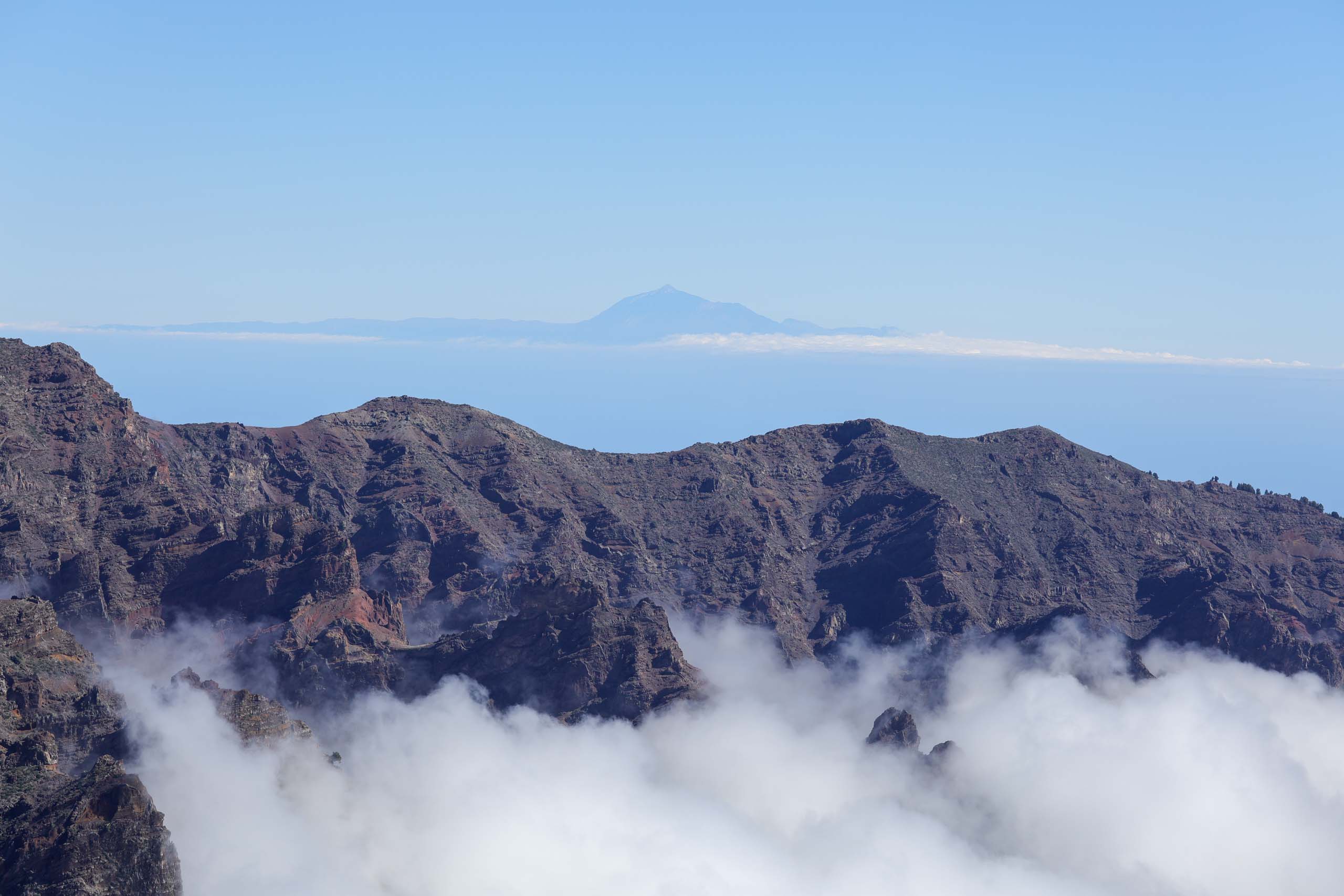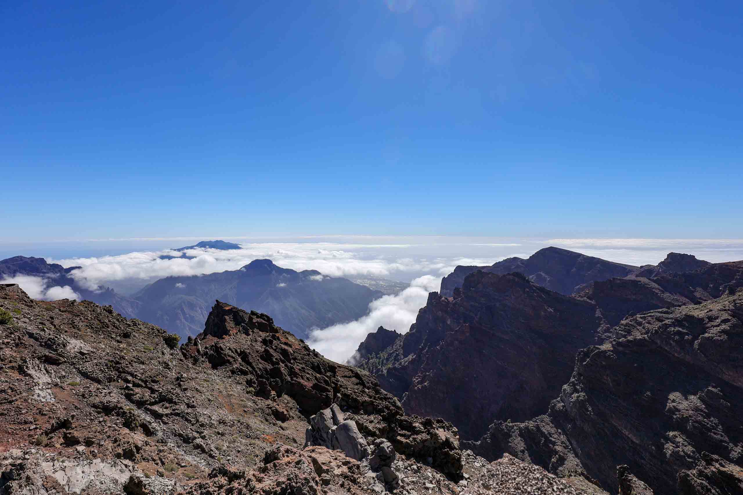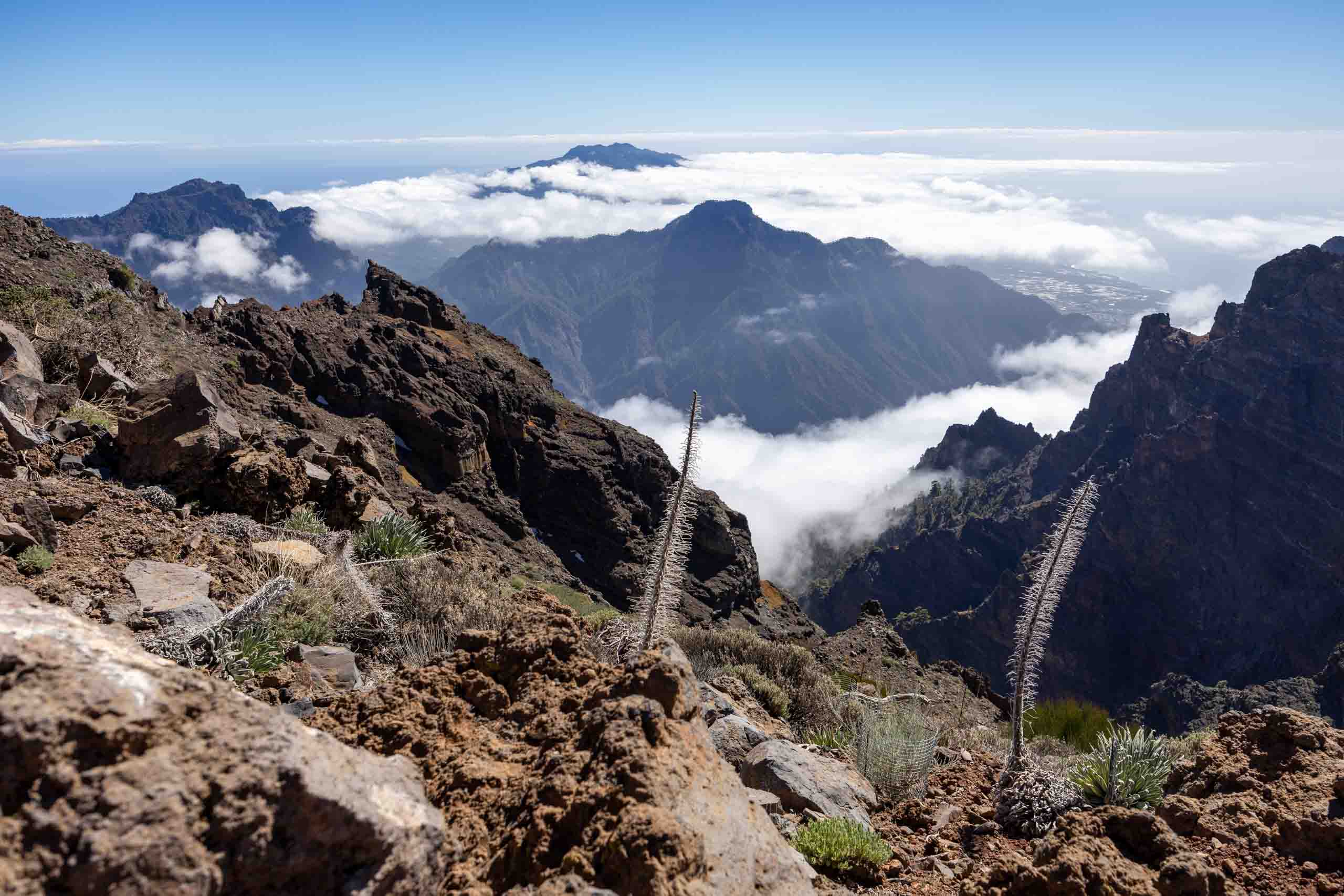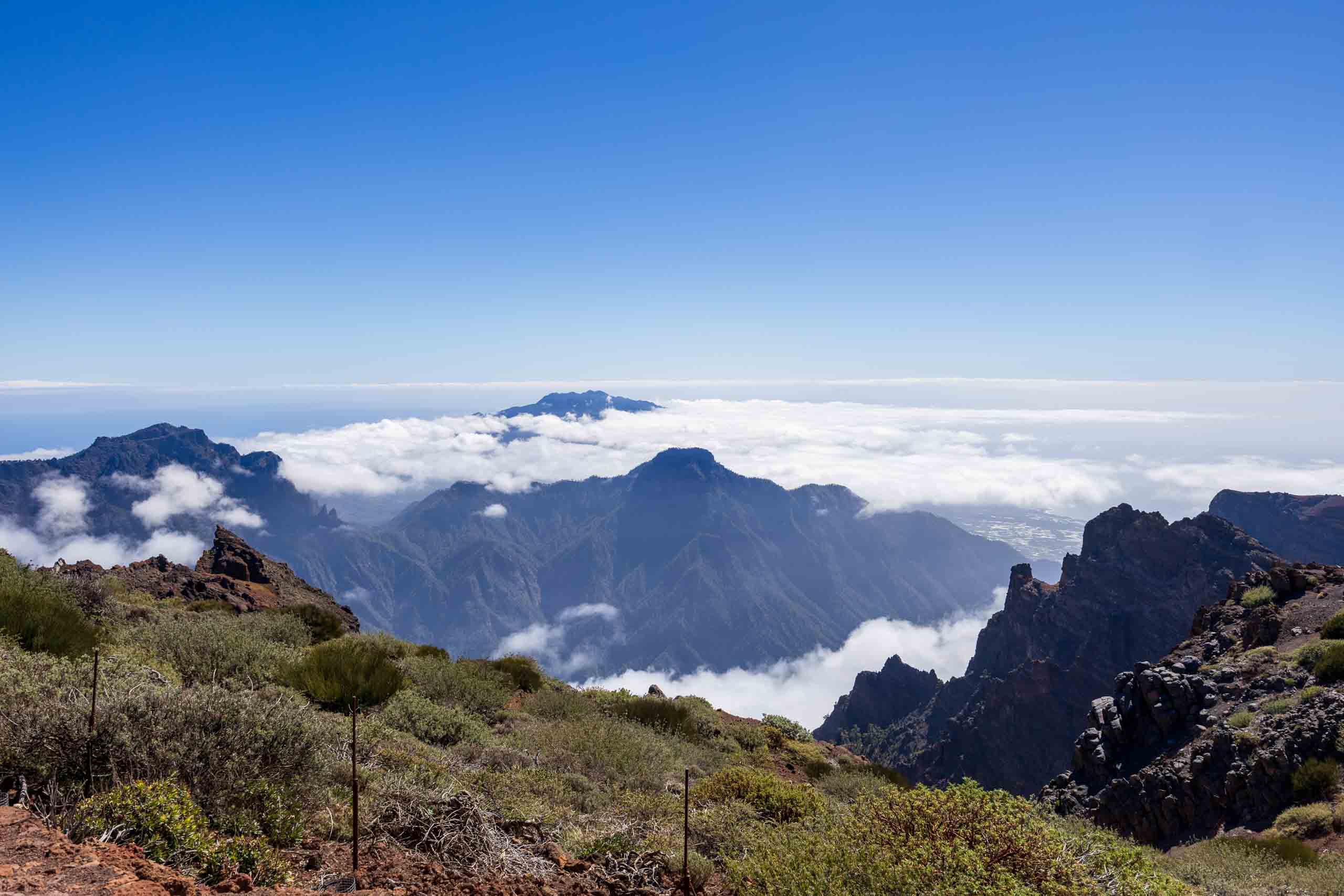 Oben auf dem "Roque" ist unterhalb des Gipfels ein kleiner Parkplatz, auf den selbst noch die Busse fahren, um den Passagieren der Kreuzfahrtschiffe jeden Schritt zu ersparen. Um wieder von oben nach unten gelangen, müssen die Busse auf der Stelle wenden. Wenn dann noch ein PKW kommt, geht fast gar nichts mehr. Doch erstaunlicherweise bleiben dabei alle Beteiligten entspannt und gelassen.