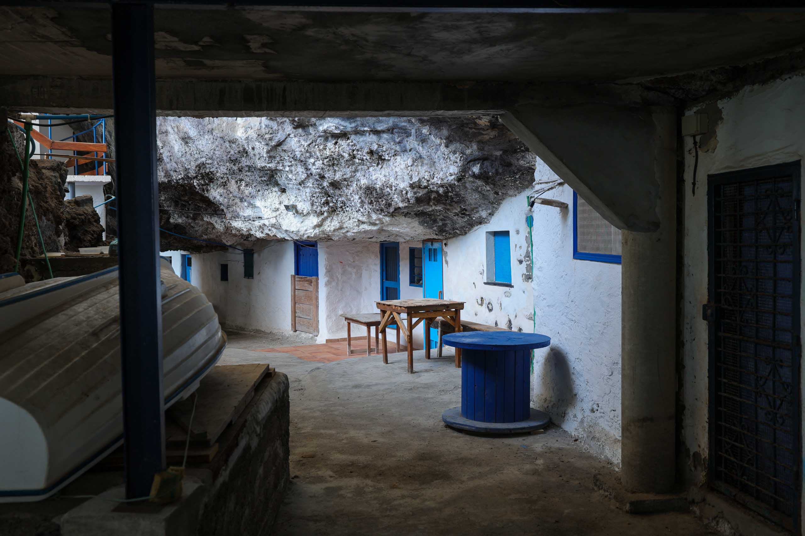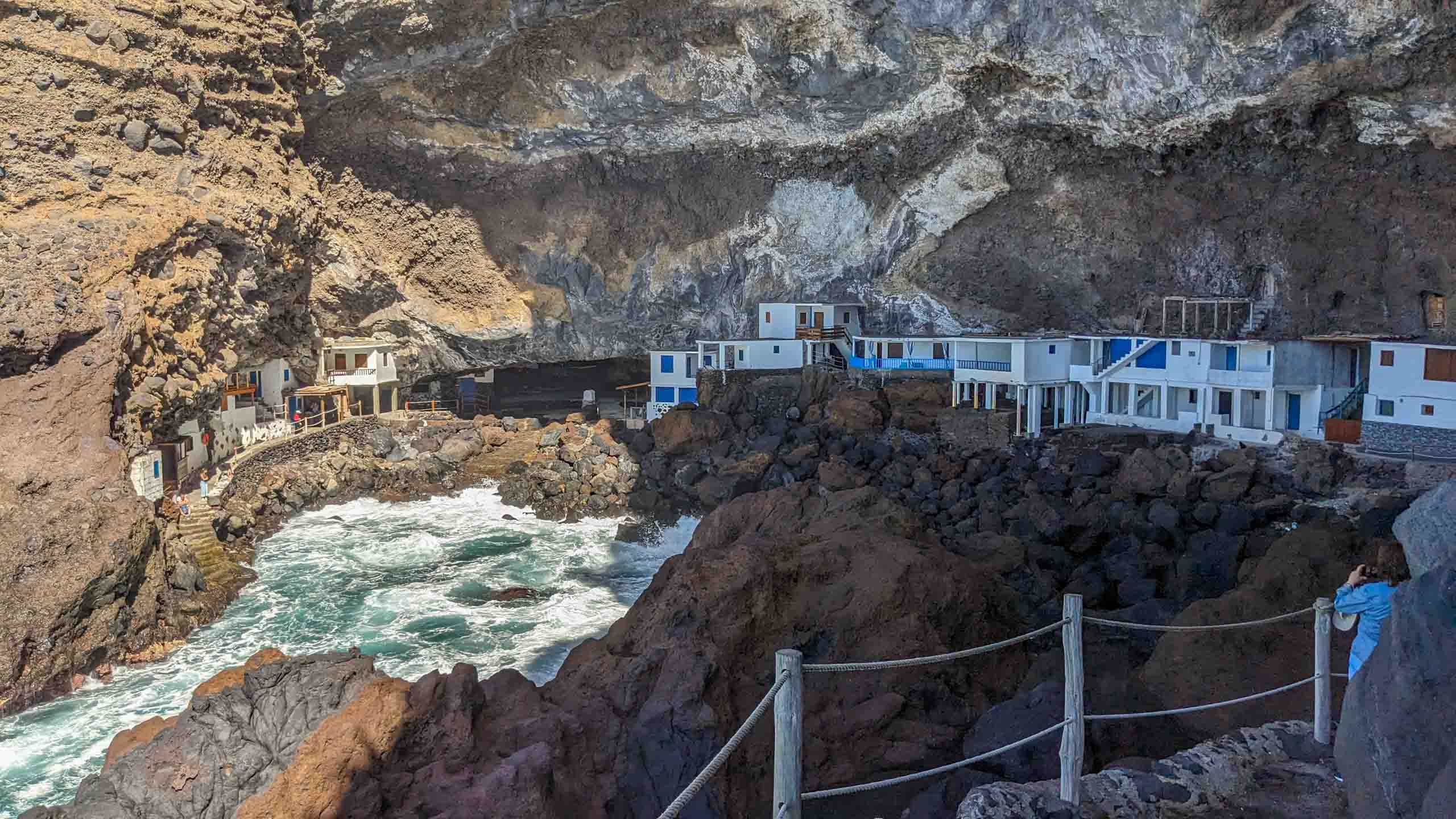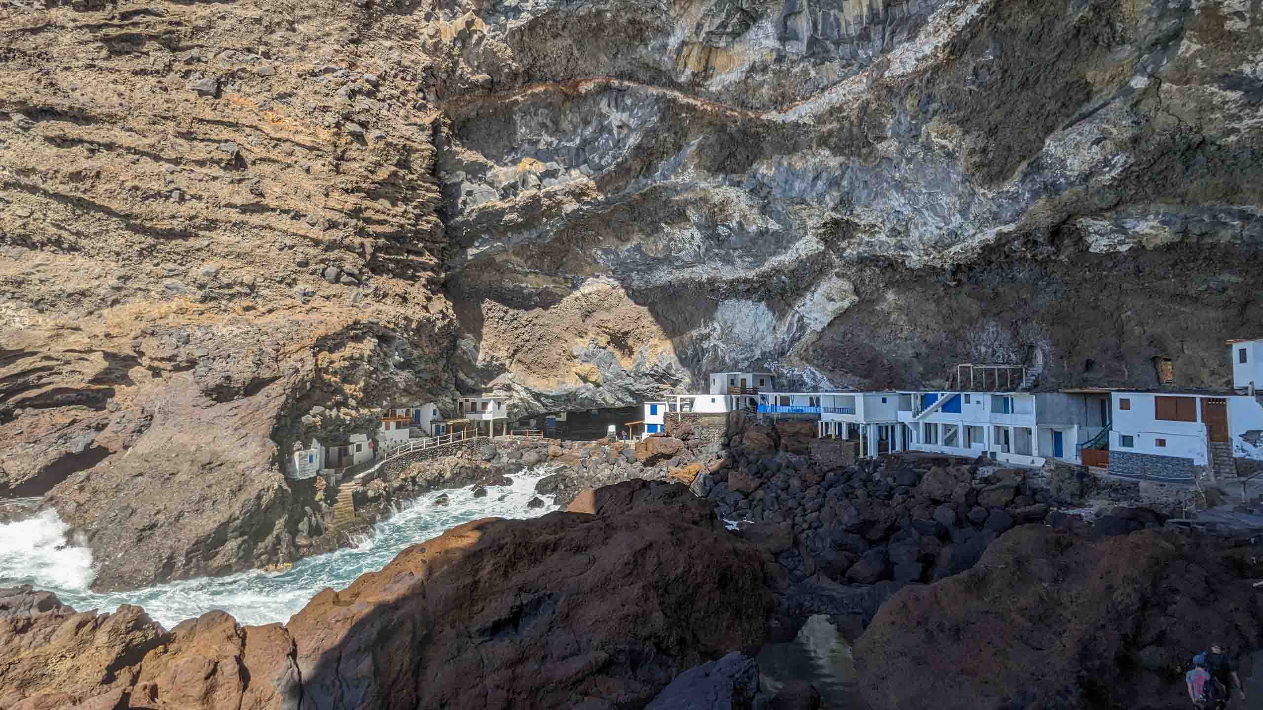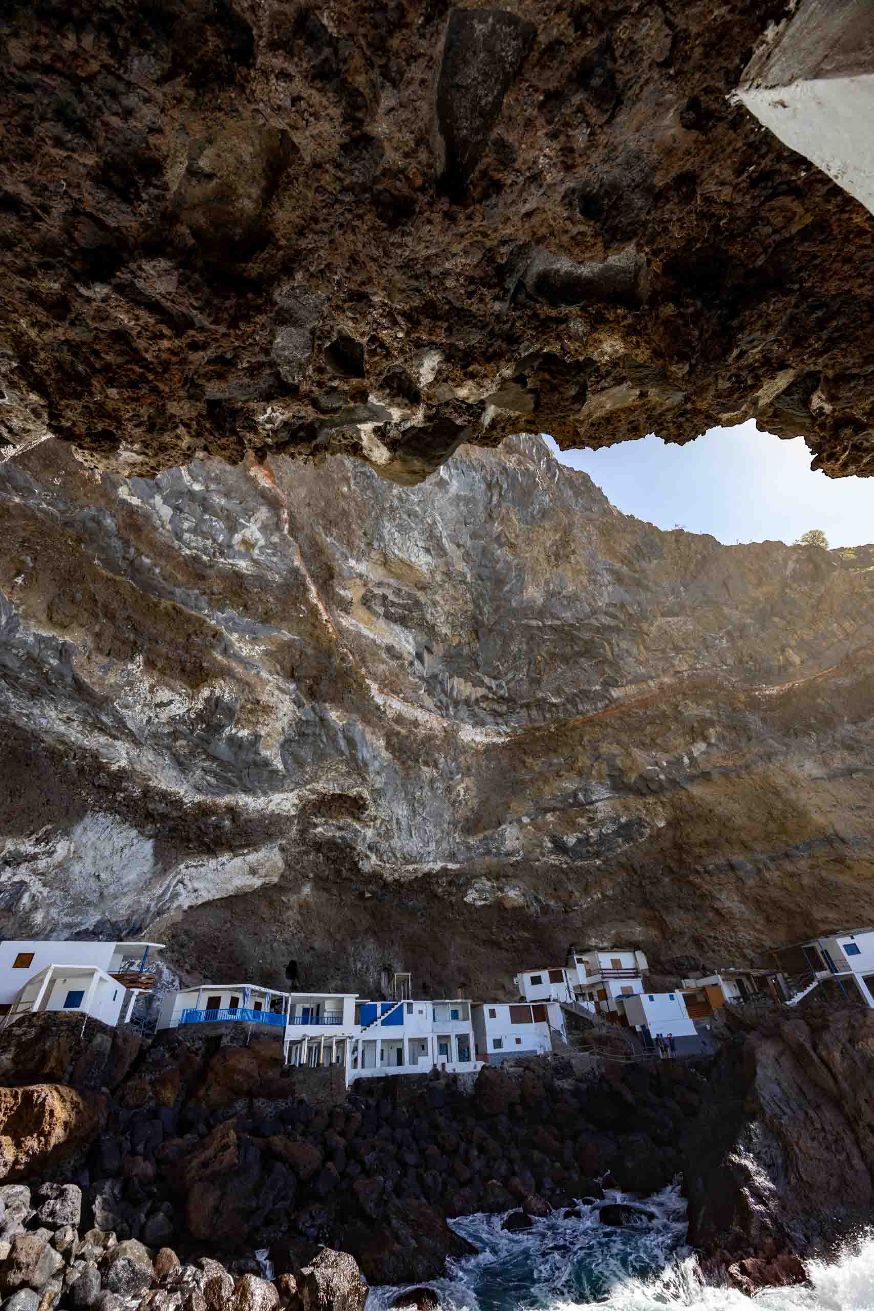 Die gut geschützte Bucht liegt versteckt unter einem gigantischen Felsüberhang. Etwa 20 kleine weiße Steinhäuser wurden hier entweder in den Fels geschlagen oder irgendwie dazwischen errichtet.