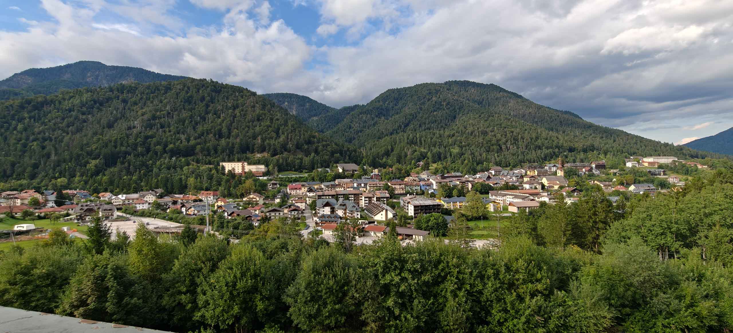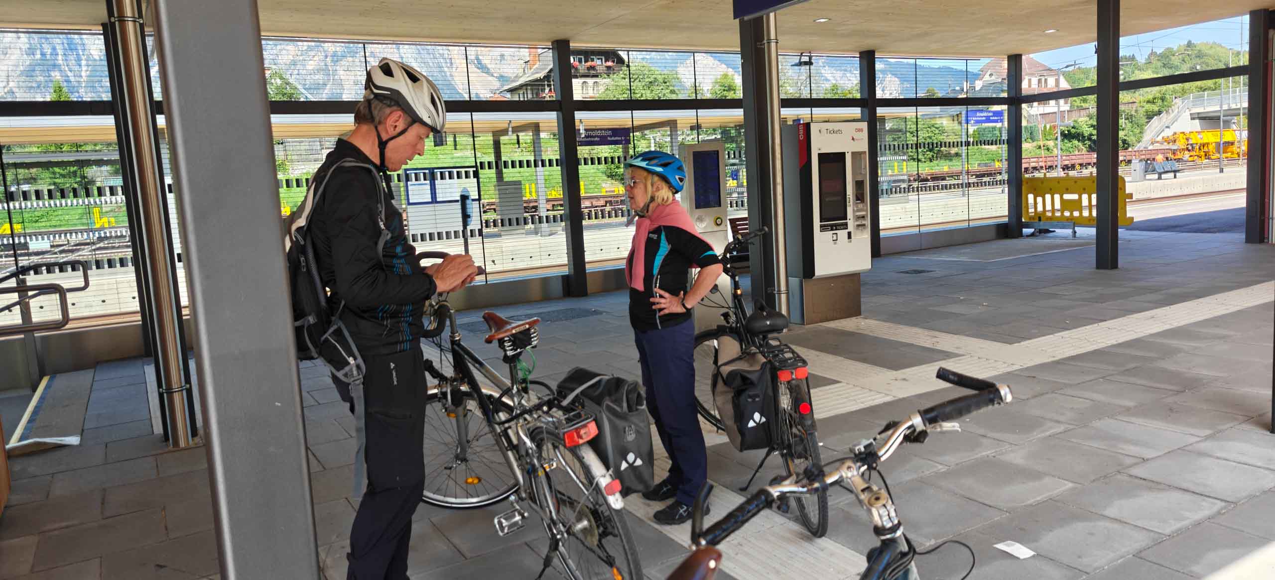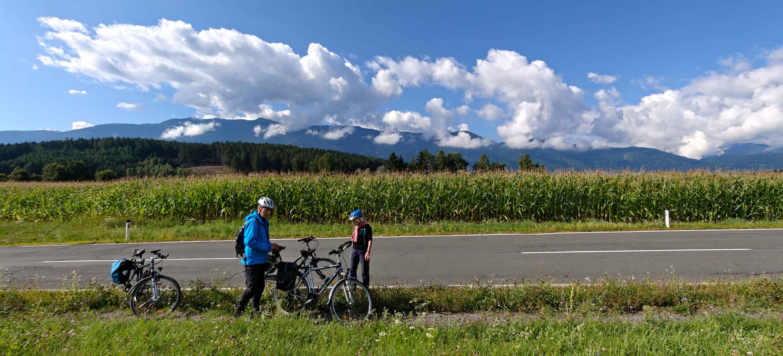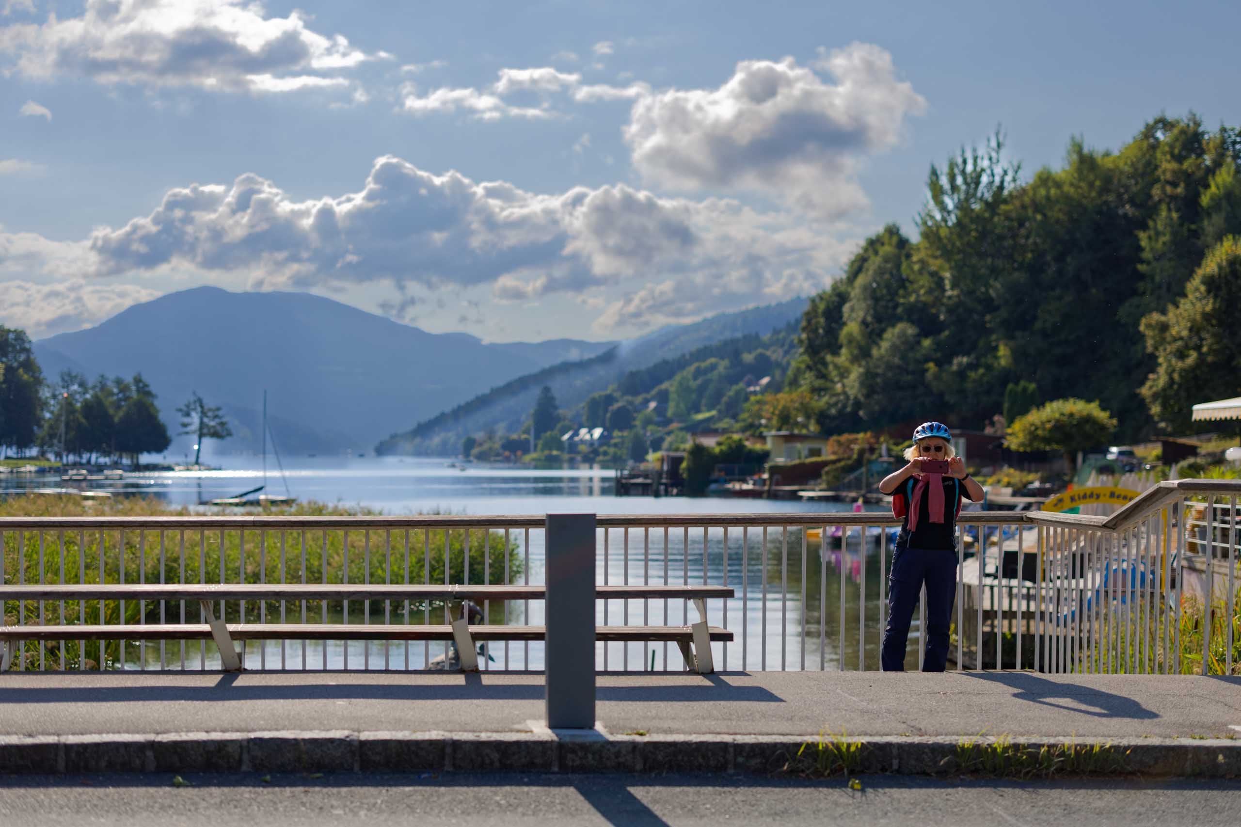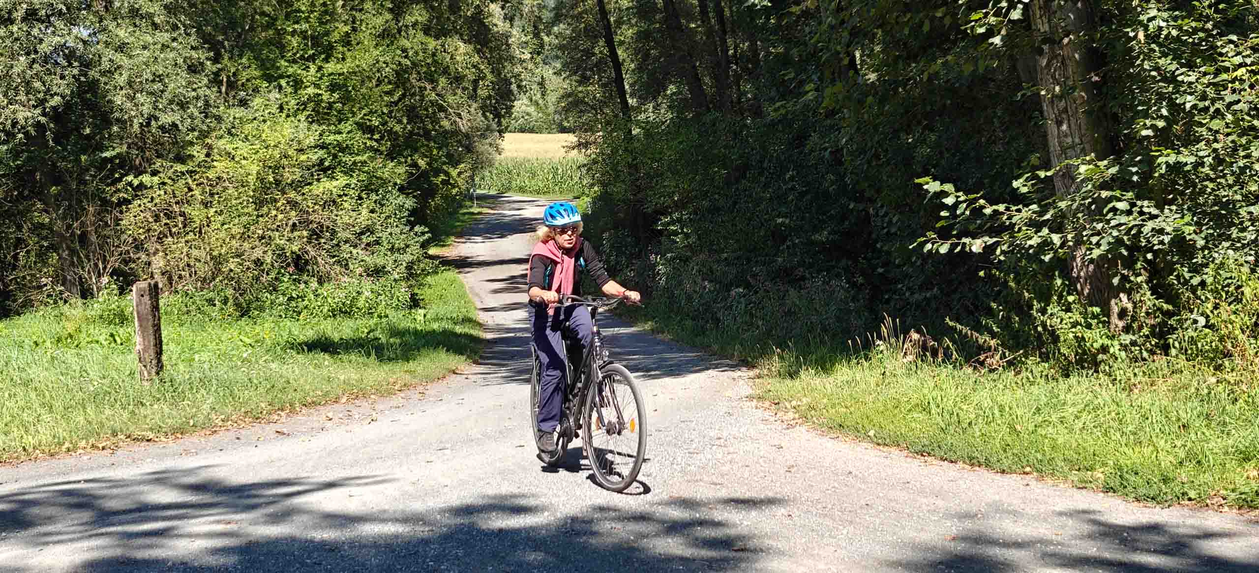 Die heutige Etappe sollte uns besonders fordern. Nach dem leckeren Frühstücksbuffet mussten zunächst den Hauptradweg finden. Auf dem Weg dorthin gab es jedoch eine Umleitung, auf der wir dann wegen irgendwann vom Kurs abkamen und uns mitten im Wald auf Waldwegen wiederfanden. Dank GPS gelangten wir dann irgendwie nach Spittal, kamen dort aber erneut vom Weg ab. Endlich wieder an der Drau, ging es endlich zügiger voran. Bis Villach war es aber sehr weit und die Uhrzeit auch. 85 km als Tagesleistung erschienen uns dann doch etwas viel und so nahmen wir in Villach in den Zug. Die Strecke nach Arnoldstein sind wir zudem schon 2021 geradelt. https://x3.halpixel.de/Galerie/Archiv/2021-Villach/. In Arnoldstein ging es weiter mit einem langen Anstieg, auch nach Passieren der italienischen Grenze (mit Espressopause bei einer resoluten Russin) weiter mit dem anstrengenden Auf und Ab. An der Wegscheide nach nach Weißenfels in Slowenien reichten unsere Kräfte bemerkenswerterweise für den dortigen Trimm-Dich-Parkour.
