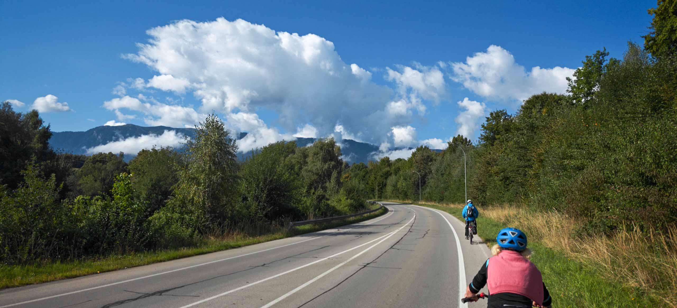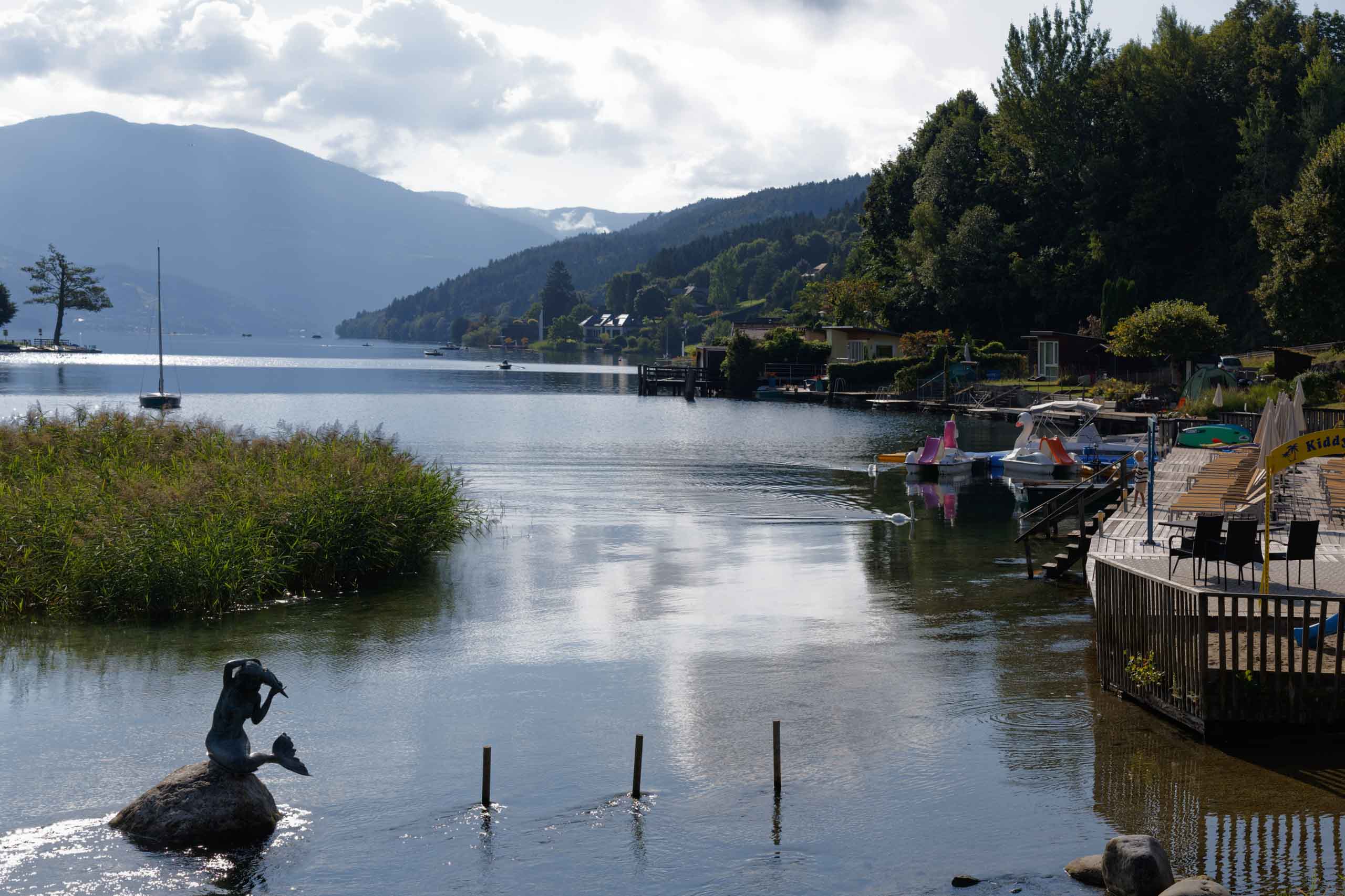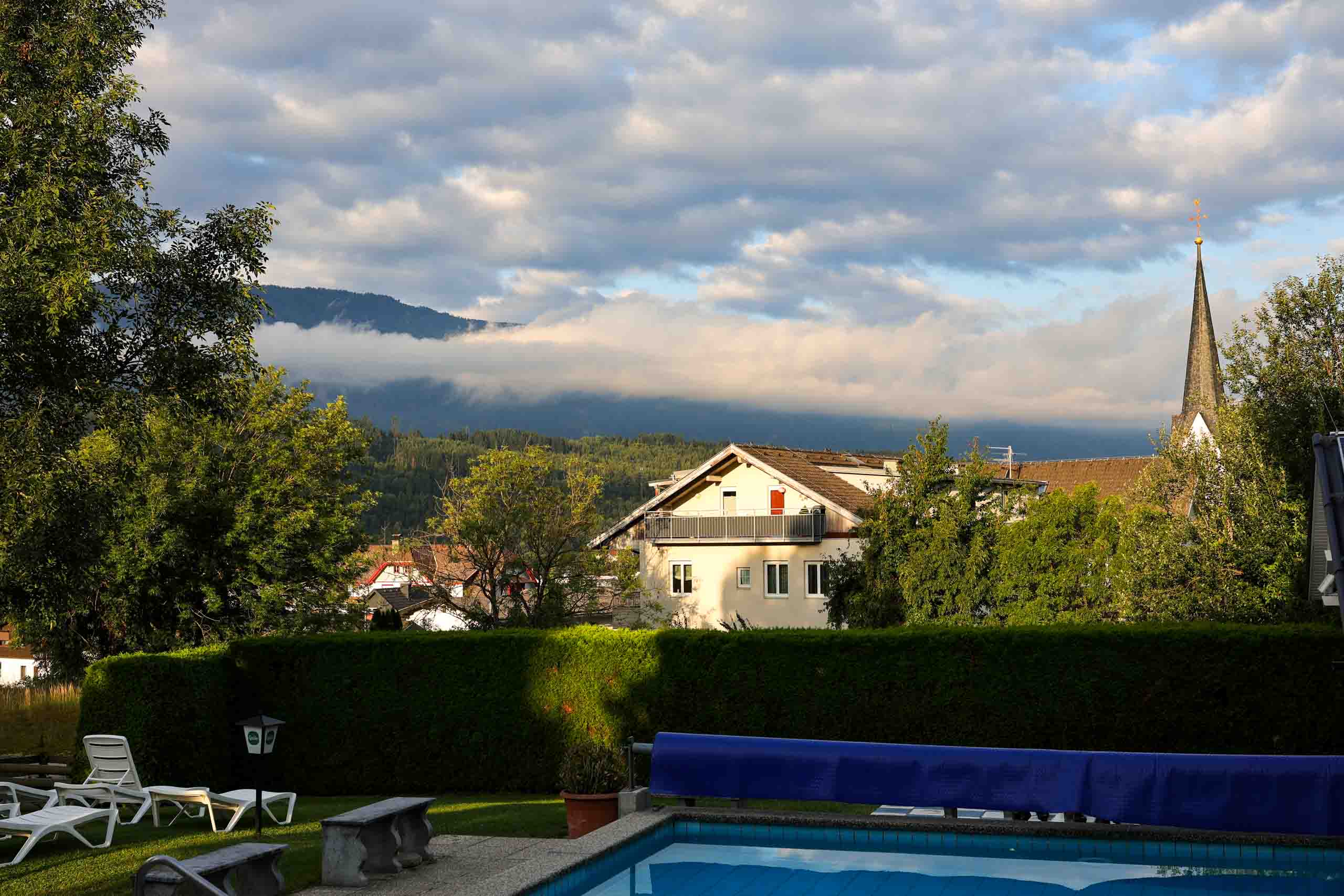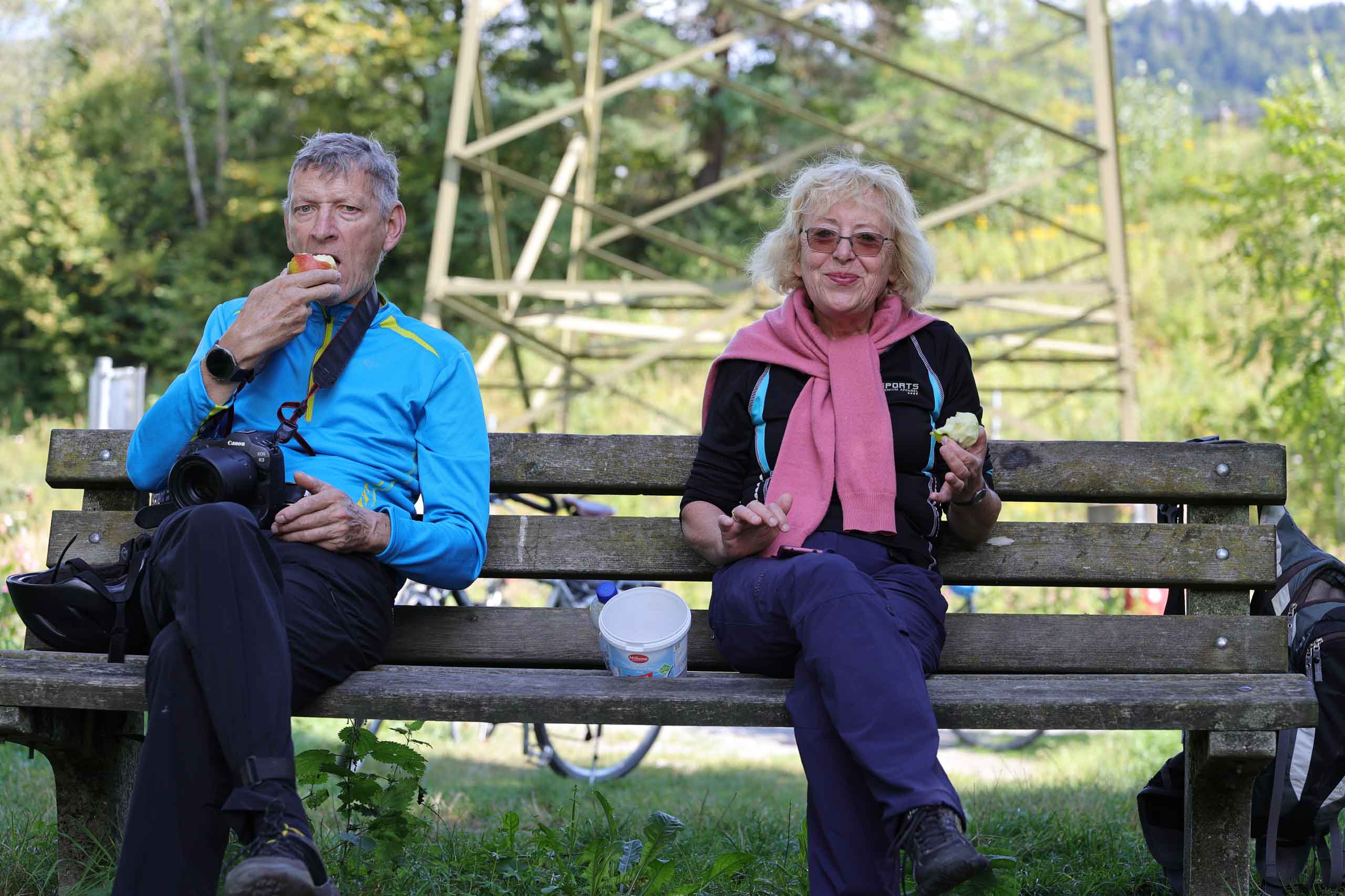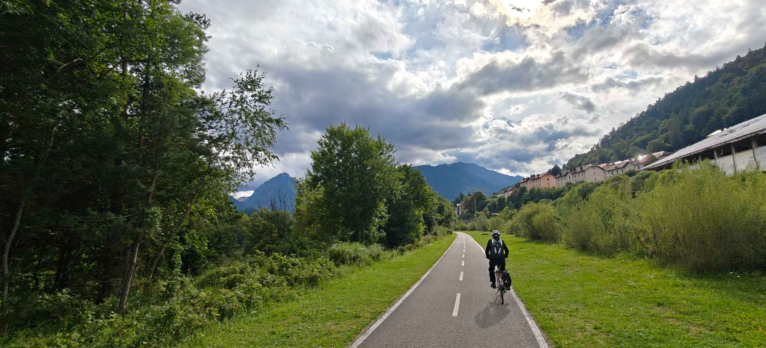 Die heutige Etappe sollte uns besonders fordern. Nach dem leckeren Frühstücksbuffet mussten zunächst den Hauptradweg finden. Auf dem Weg dorthin gab es jedoch eine Umleitung, auf der wir dann wegen irgendwann vom Kurs abkamen und uns mitten im Wald auf Waldwegen wiederfanden. Dank GPS gelangten wir dann irgendwie nach Spittal, kamen dort aber erneut vom Weg ab. Endlich wieder an der Drau, ging es endlich zügiger voran. Bis Villach war es aber sehr weit und die Uhrzeit auch. 85 km als Tagesleistung erschienen uns dann doch etwas viel und so nahmen wir in Villach in den Zug. Die Strecke nach Arnoldstein sind wir zudem schon 2021 geradelt. https://x3.halpixel.de/Galerie/Archiv/2021-Villach/. In Arnoldstein ging es weiter mit einem langen Anstieg, auch nach Passieren der italienischen Grenze (mit Espressopause bei einer resoluten Russin) weiter mit dem anstrengenden Auf und Ab. An der Wegscheide nach nach Weißenfels in Slowenien reichten unsere Kräfte bemerkenswerterweise für den dortigen Trimm-Dich-Parkour.