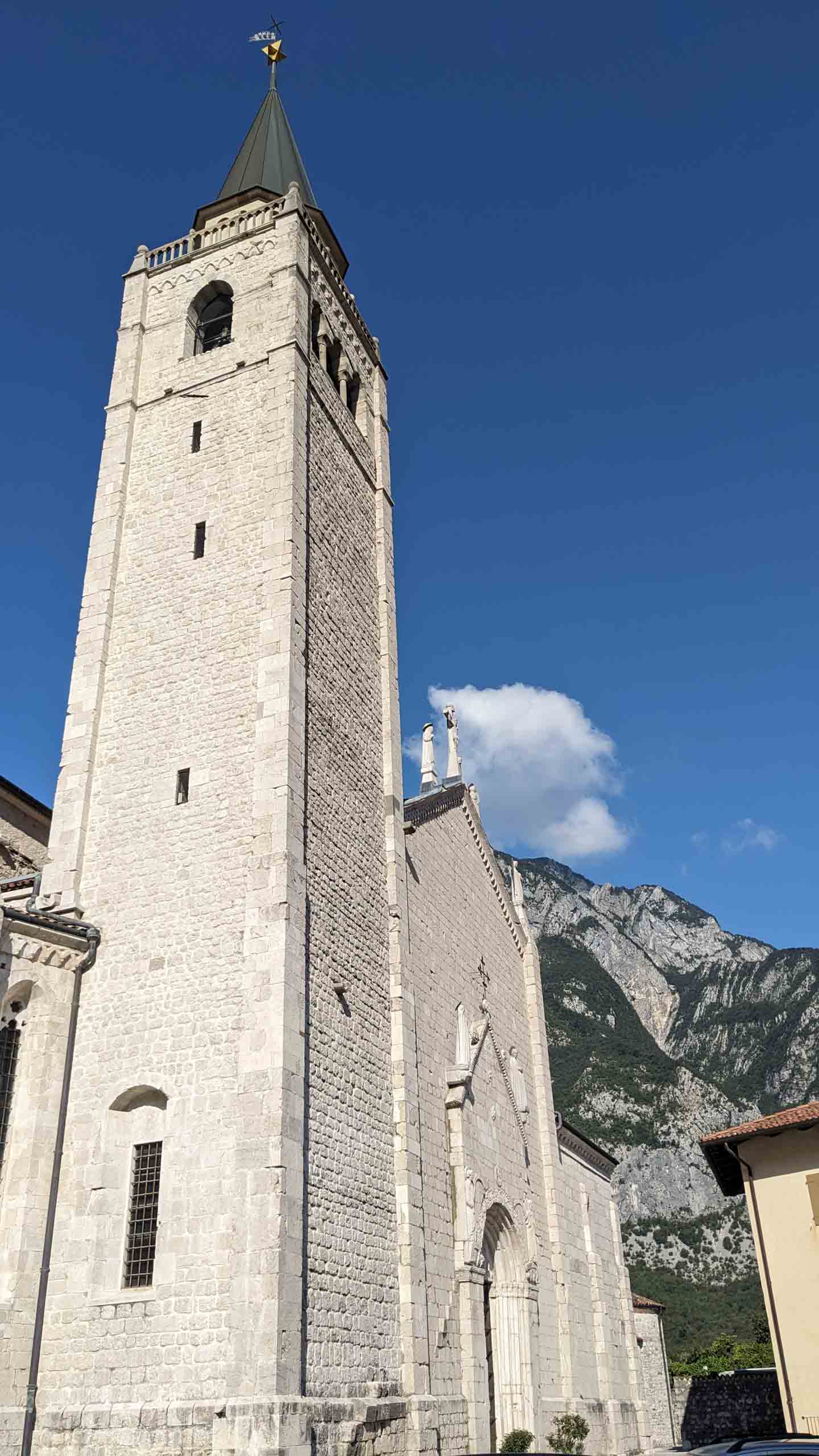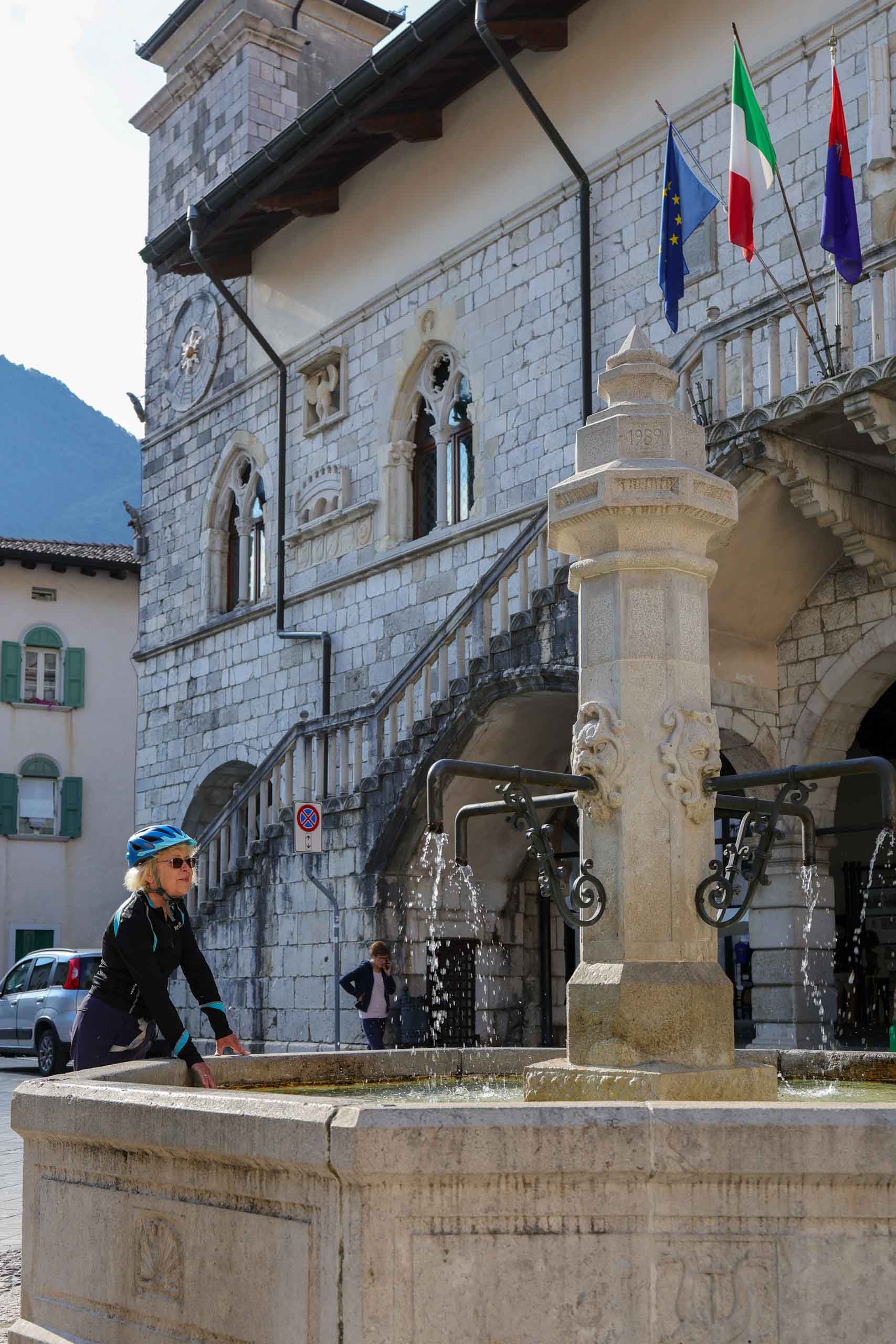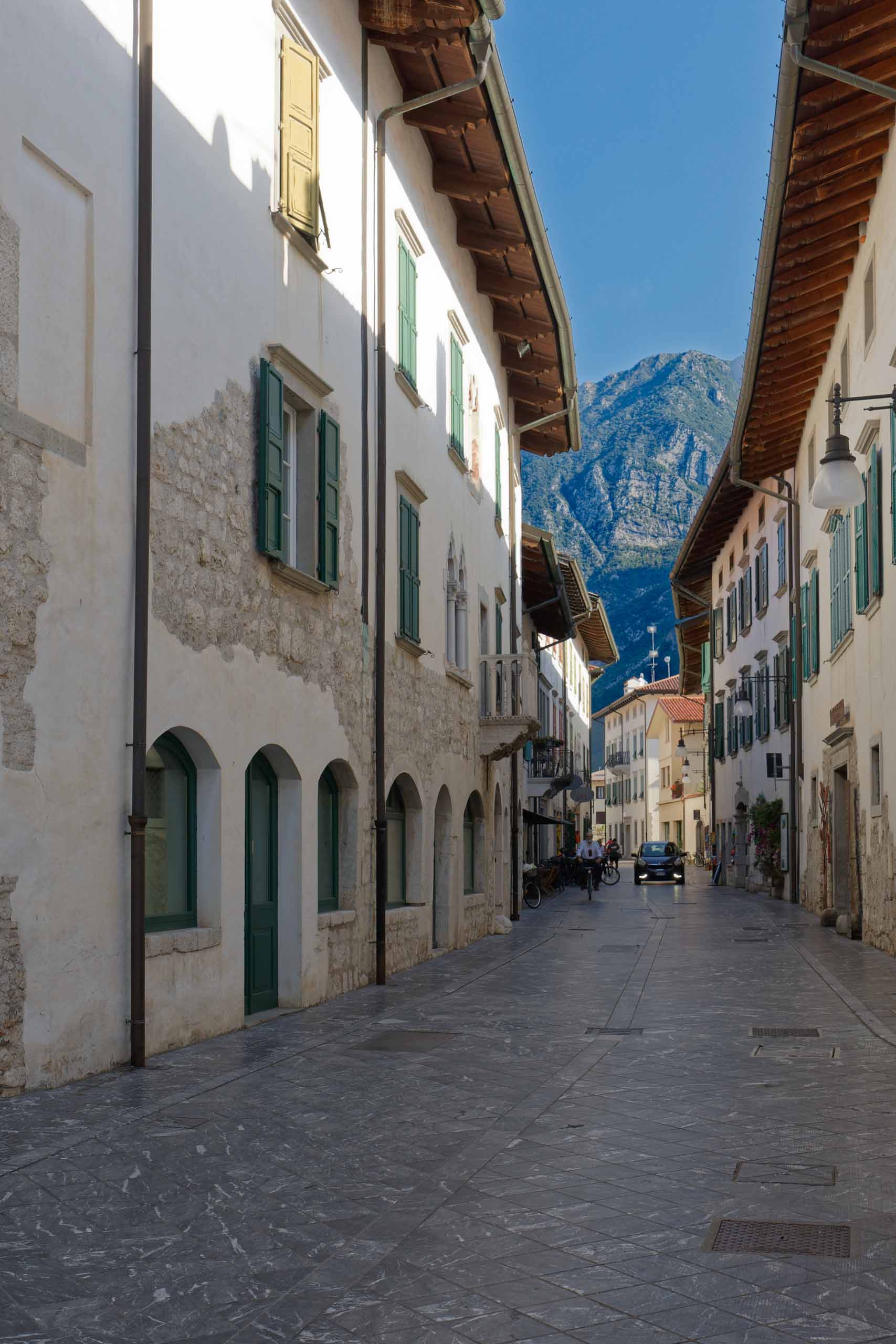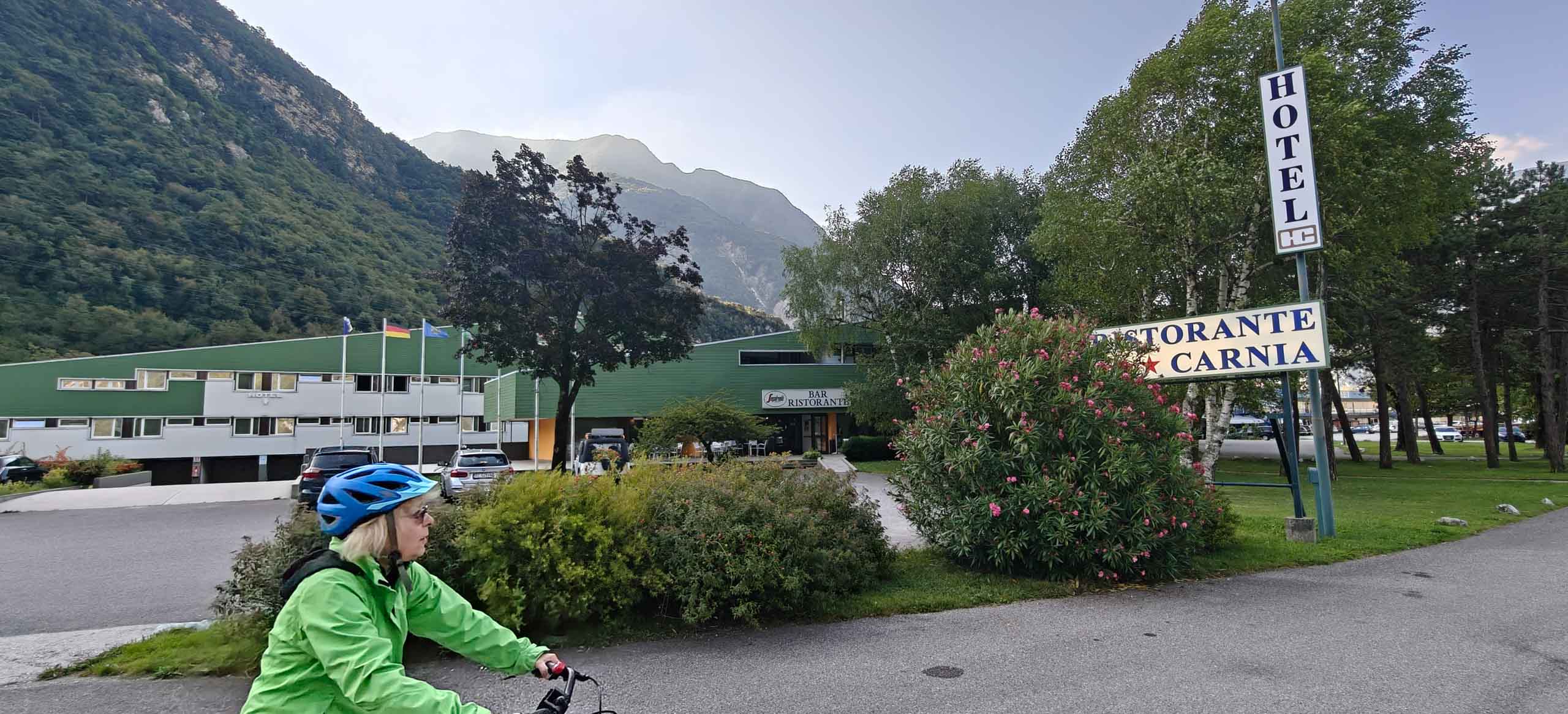 Heute lassen wir die Berge hinter uns und radeln durch landwirtschaftlich geprägte Ebenen. Teilweise begleitet uns der Wildfluss Tagliamente und oft durchqueren wir verschlafene Dörfchen. Leider ist die alte Bahntrasse noch nicht durchgehend als Radweg ausgebaut und so müssen wir bei Carnia auf die Staatsstraße SS 13 wechseln und dieser bis Gemona folgen. Das macht keinen Spaß, ständig von PKW und LKW überholt zu werden und umso mehr schätzt man den gut ausgebaute Radwege. In Venzone biegen wir kurz für eine Runde durch die Altstadt ab.