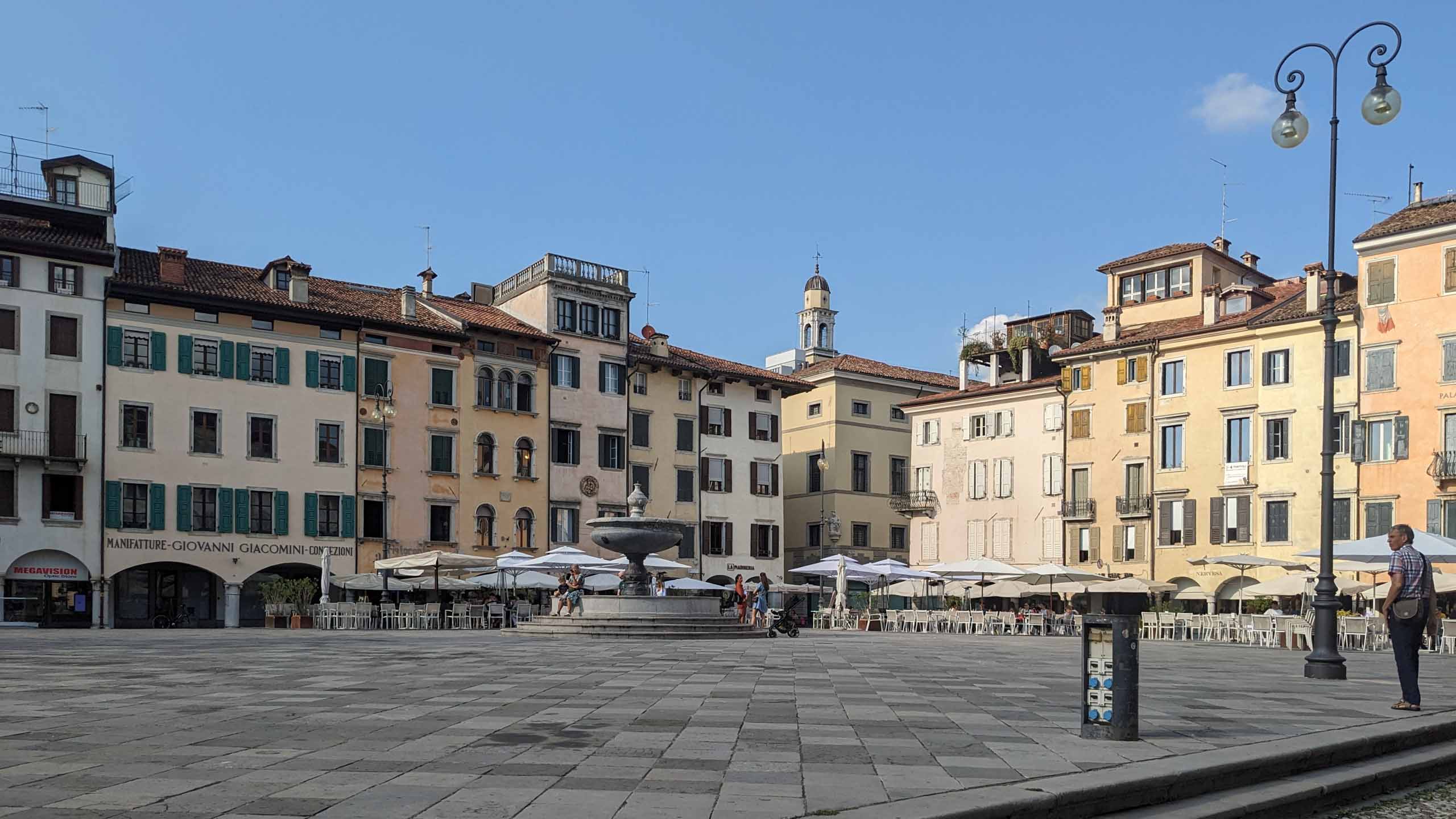 Wir radeln weiter, das heutige Etappenziel ist Udine. Udine… wie? Wo liegt denn das? Im Nordosten Italiens, in der Region Friaul-Julisch Venetien. Sie gilt als schönste venezianische Platz außerhalb von Venedig.