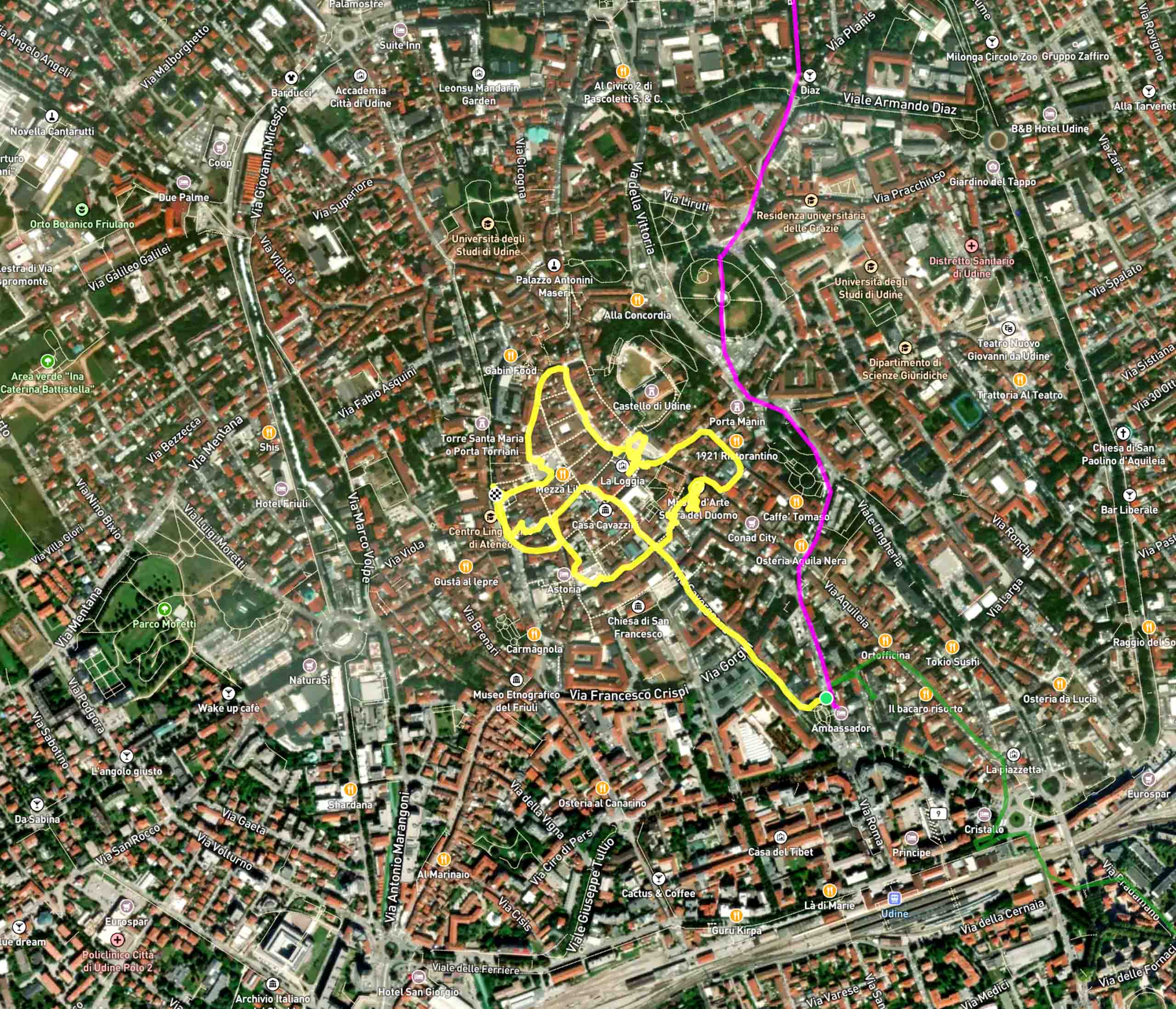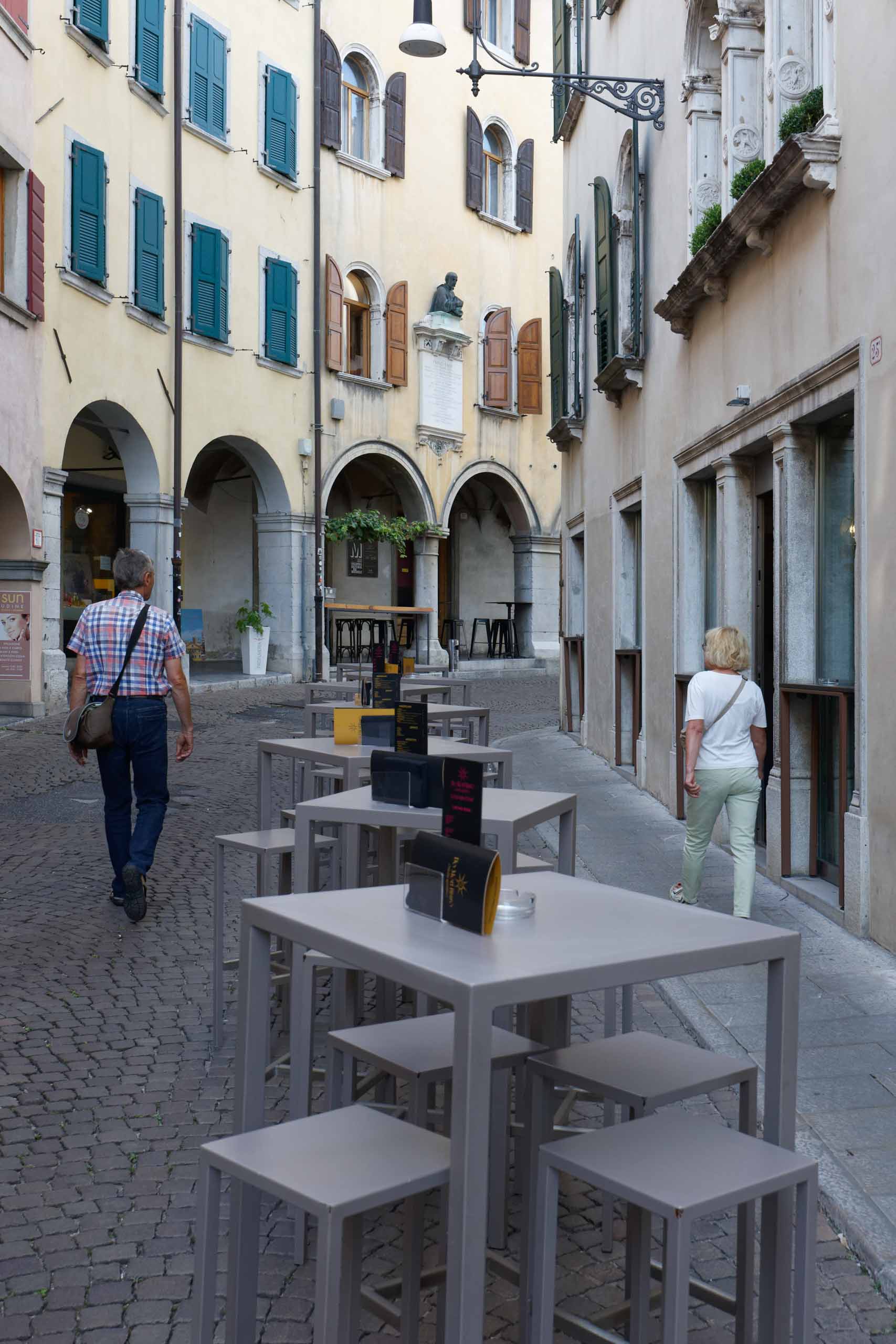 Wir haben nur den Nachmittag und schlendern durch die Innenstadt zur Piazza della Libertà, sehen die Loggia del Lionello, das Castello di Udine, die Chiesa di San Giacomo, die Casa Cavazzini, den Dom von Udine und gelangen zur die Piazza Giacomo Matteotti. Unser Abendessen genießen wir in der Osteria Alla Ghiacciaia am Kanal und probieren norditalienischen Speisen wie Frico.