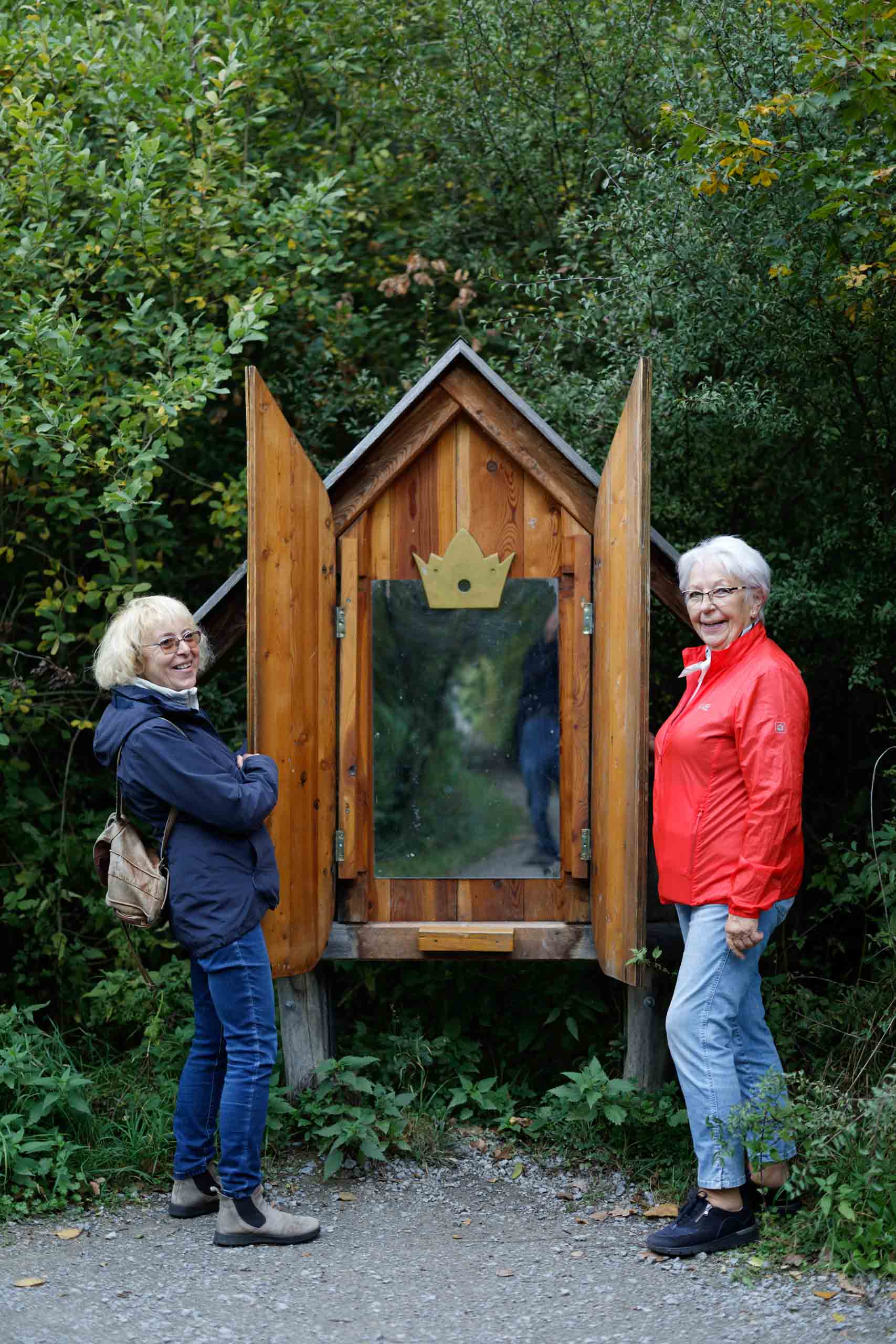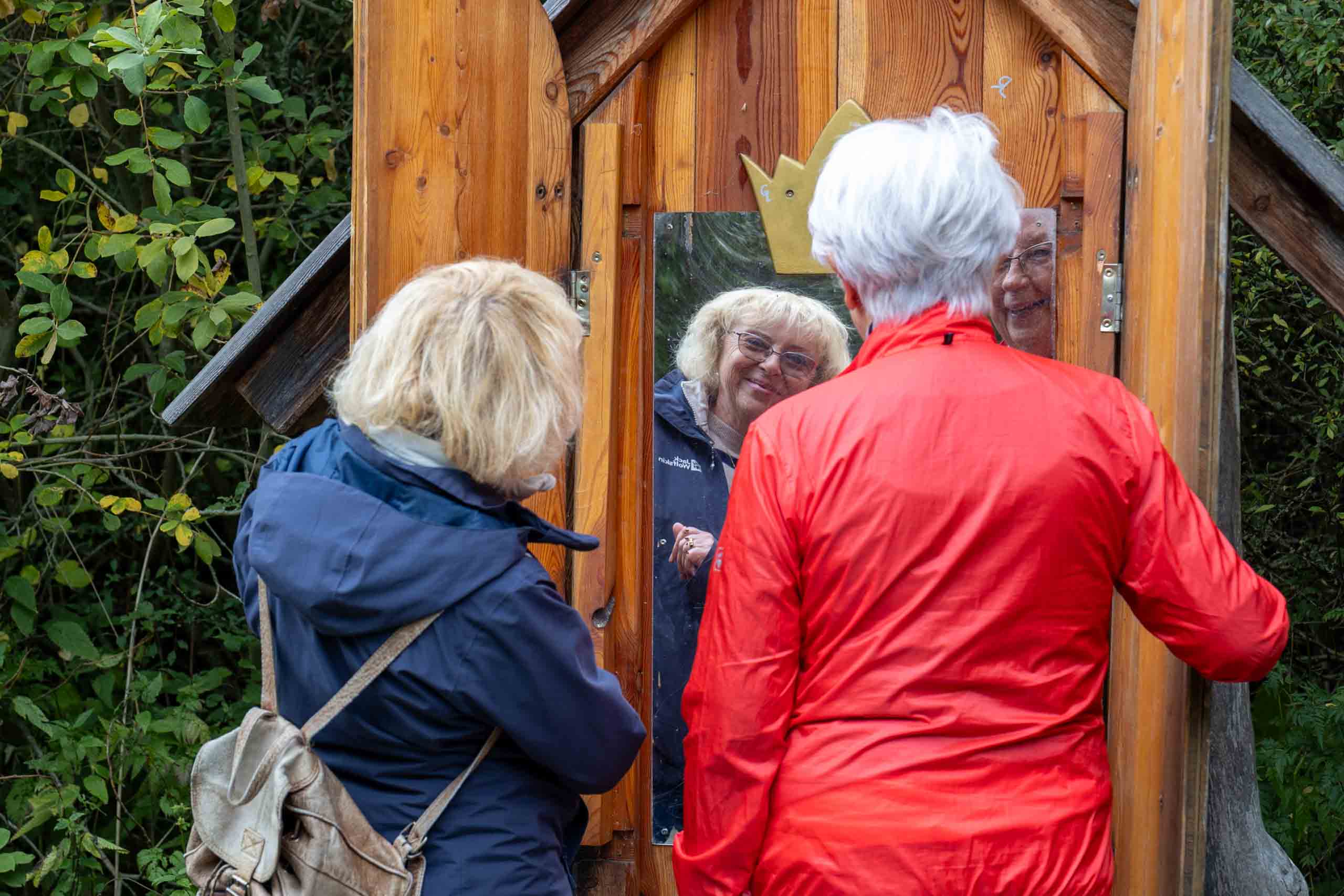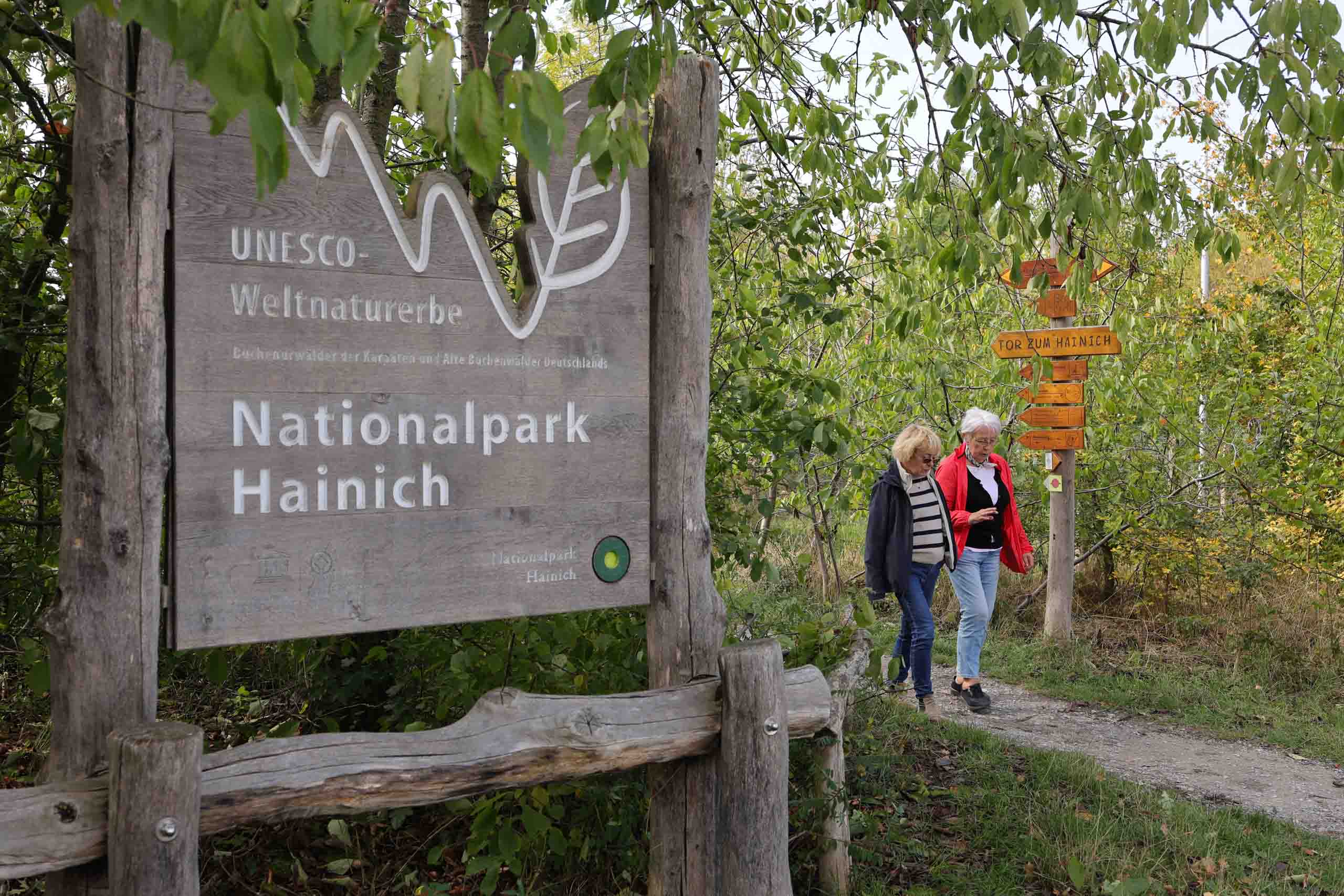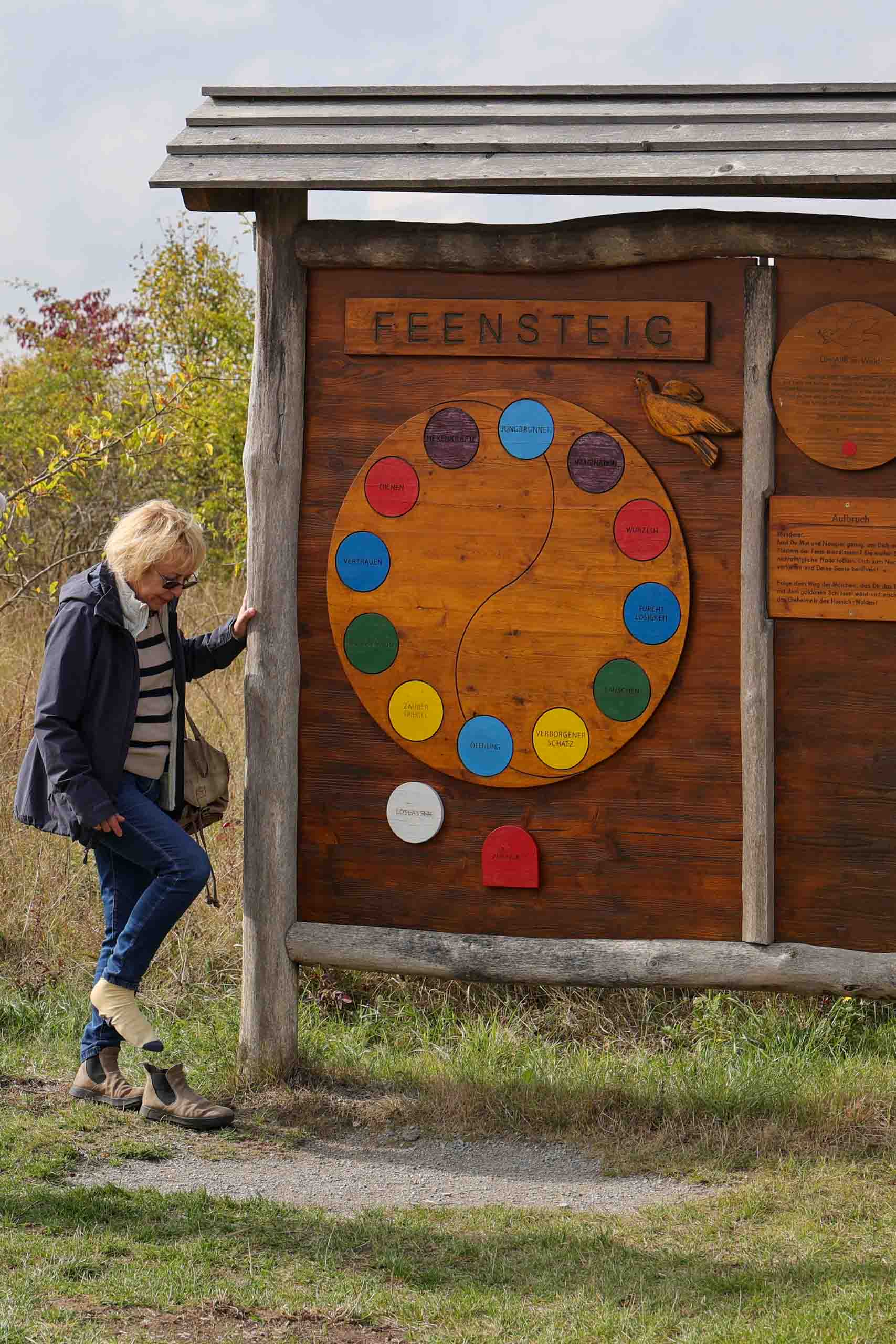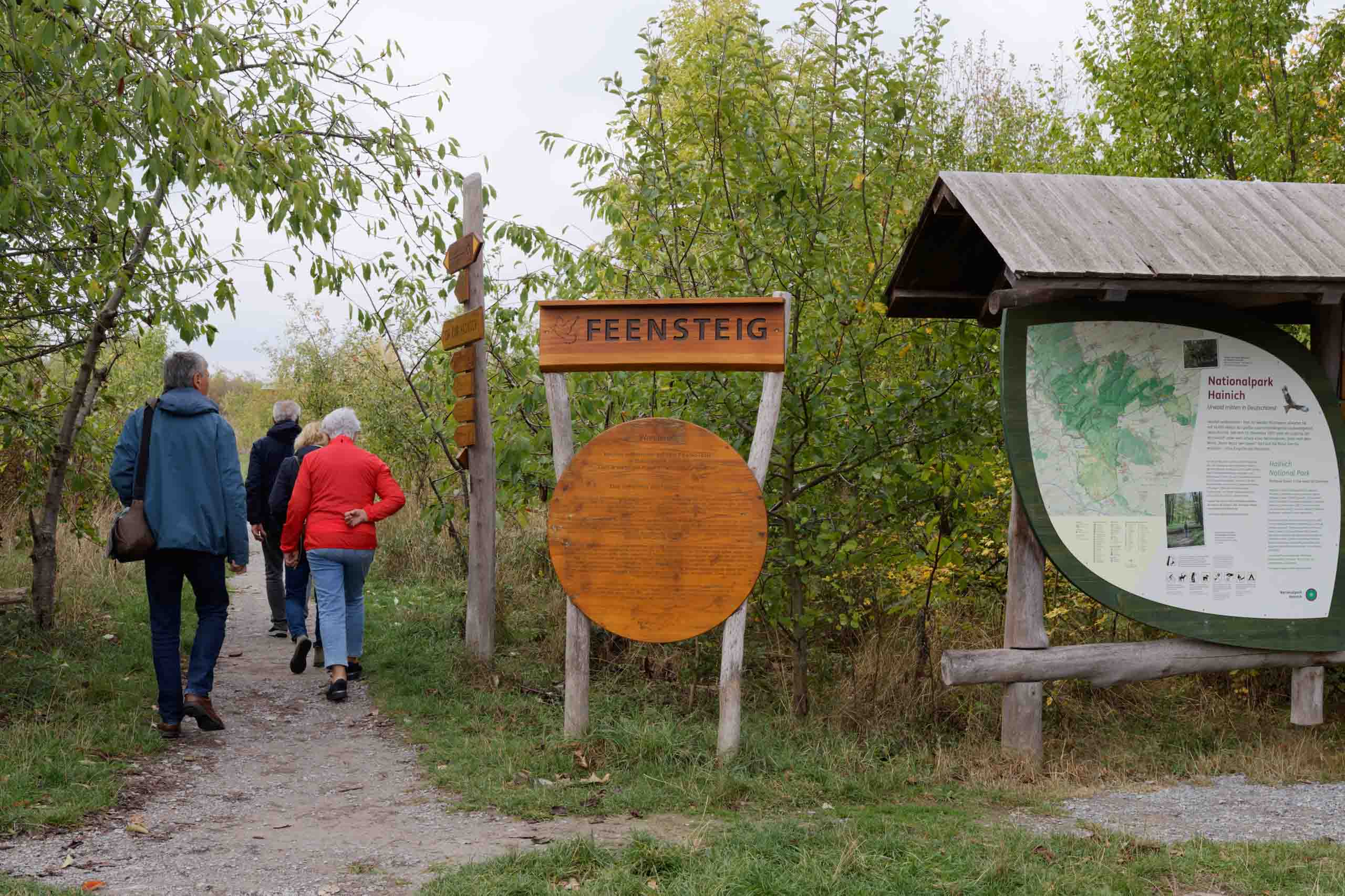Für ein Wiedersehen mit Annchen und Heinz hatten wir uns zunächst zu einer kleinen Wanderung durch den herbstlichen Hainich verabredet. Nach einem zweiten Frühstück geht es zum durch das Tor zum Hainich auf den Feensteig. Dort wirkt der Hainich besonders gigantisch und geheimnisvoll. Entlang des Jungbrunnenpfades gibt es wundersame Dinge zu entdecken und kleine Rätsel zu entschlüsseln. Wir wandern weiter zum Jungbrunnen. Wer diesen umrundet, kann das Rad der Zeit zurückdrehen - zu einem glücklichen Augenblick oder einem, wo man etwas wieder gutmachen möchte. Und du wirst wie neugeboren sein... Man sieht es uns doch an, oder?