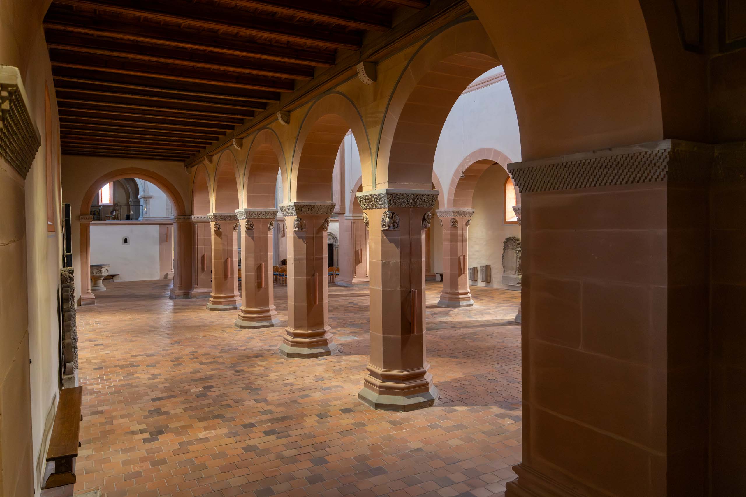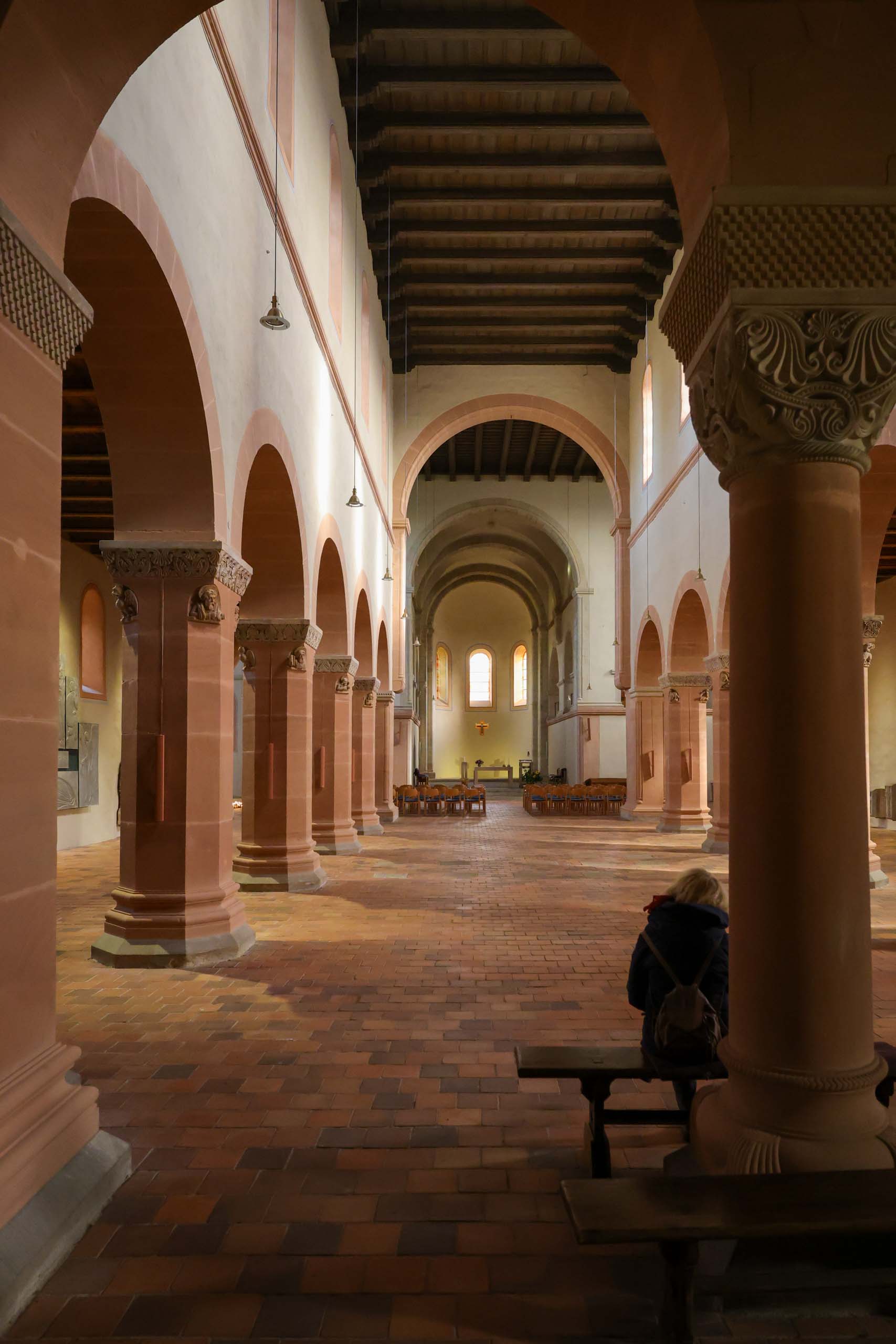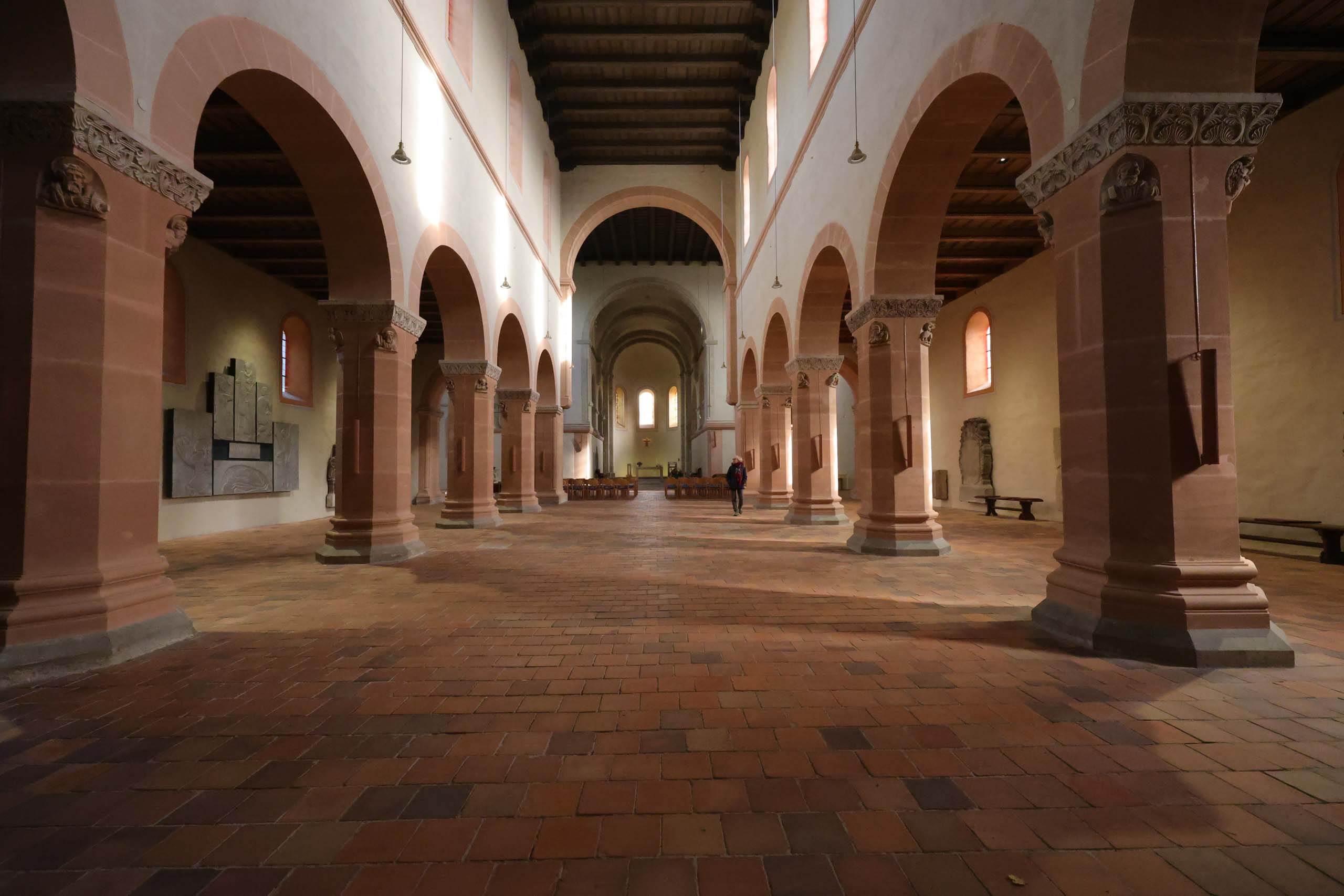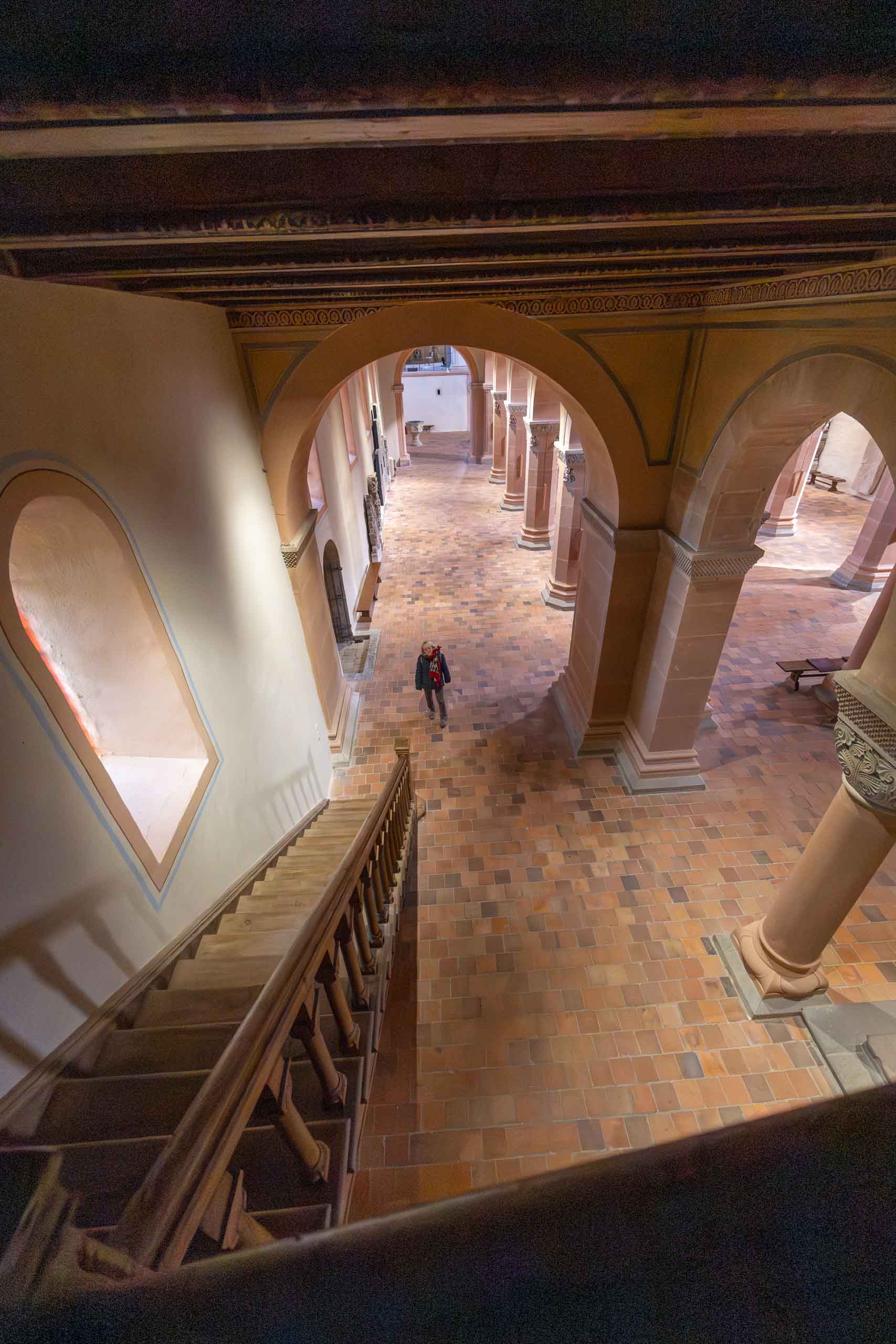 Oben auf dem Plateau findet gerade ein Treffen von Motorradfahrern statt, untermalt von lauter amerikanischer Truckermusik. Passt so gar nicht neben dem Kloster. In der Stiftskirche hört man dann zum Glück nichts davon, hier herrscht andächtige Stille. Wir sind allein im Kirchenschiff. Alles wurde saniert und ist in sehr gutem Zustand.