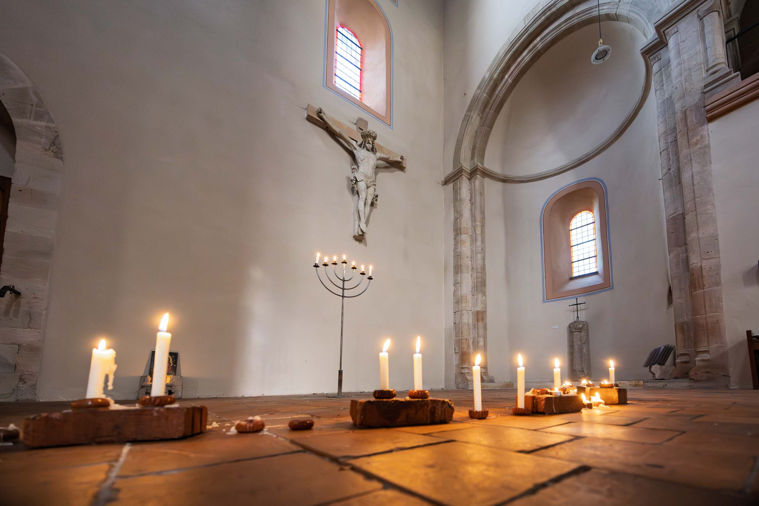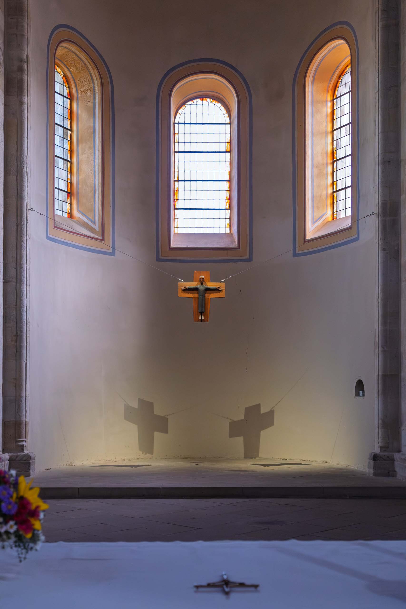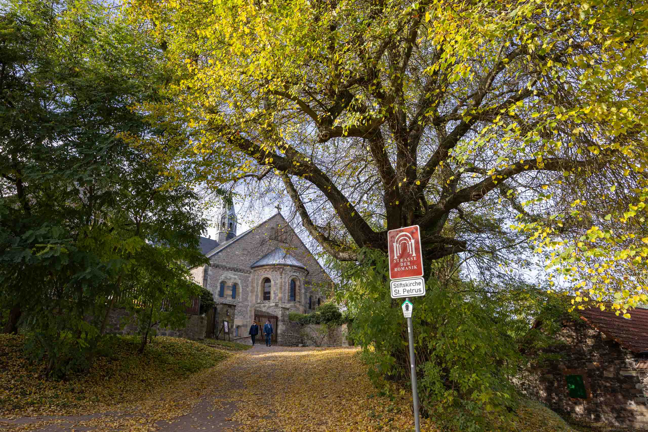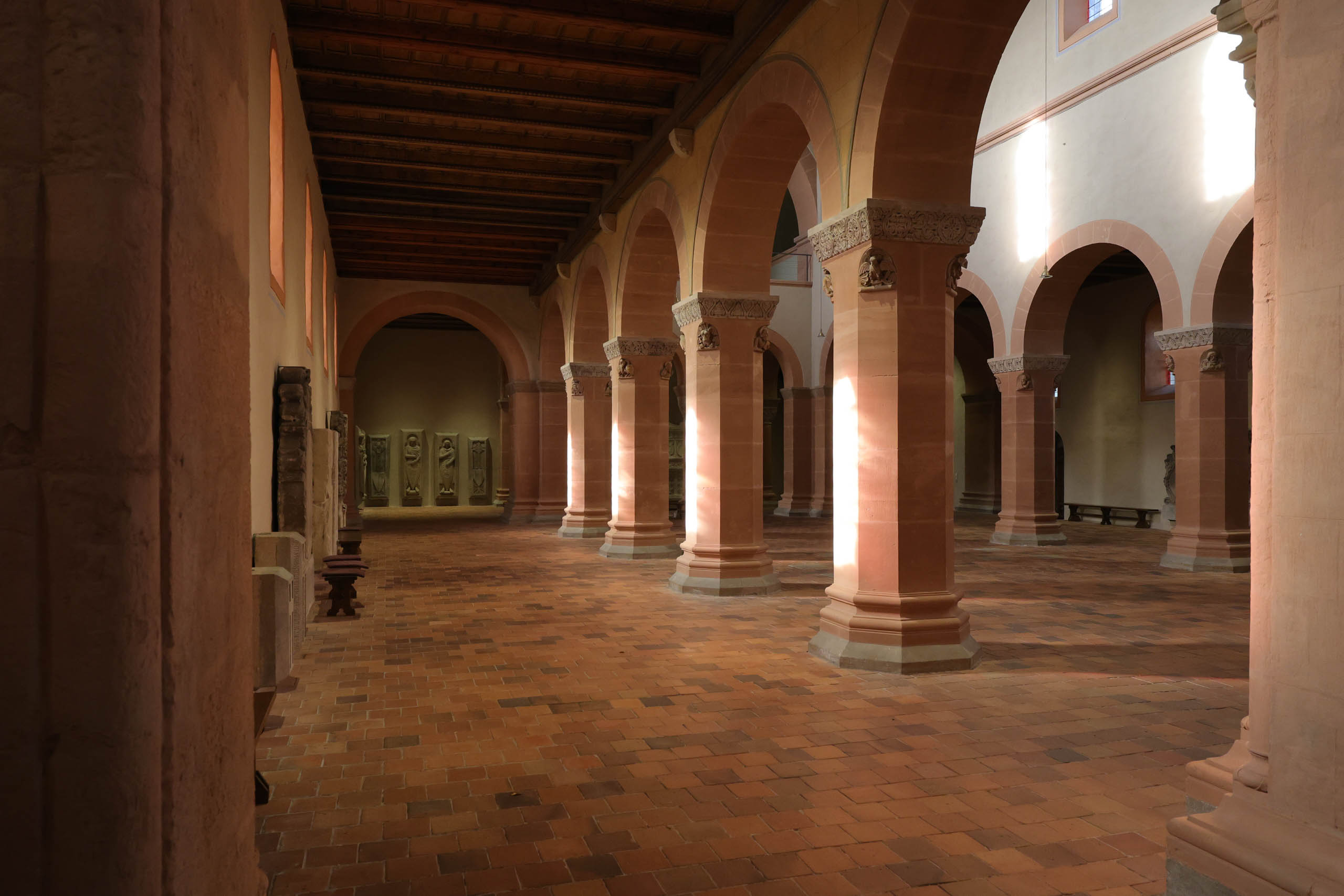 Oben auf dem Plateau findet gerade ein Treffen von Motorradfahrern statt, untermalt von lauter amerikanischer Truckermusik. Passt so gar nicht neben dem Kloster. In der Stiftskirche hört man dann zum Glück nichts davon, hier herrscht andächtige Stille. Wir sind allein im Kirchenschiff. Alles wurde saniert und ist in sehr gutem Zustand.