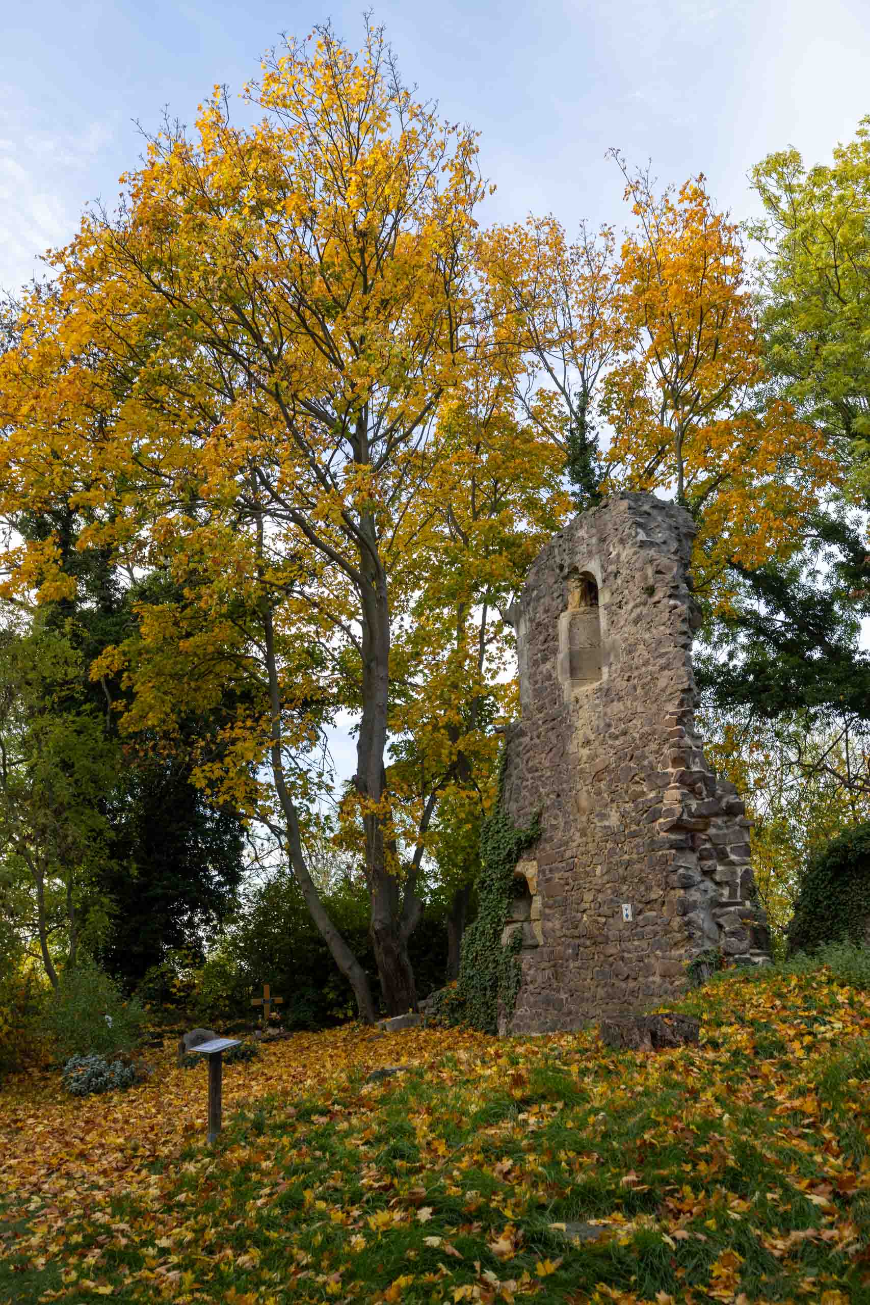 Später gehen wir noch über den Friedhof auf die große Wiese dahinter. Hier fand vor über 50 Jahren ein Jugendtreffen der Jungen Gemeinden Halle statt. Wir sind seinerzeit getrampt, um dorthin zu gelangen. Lang ist es her...