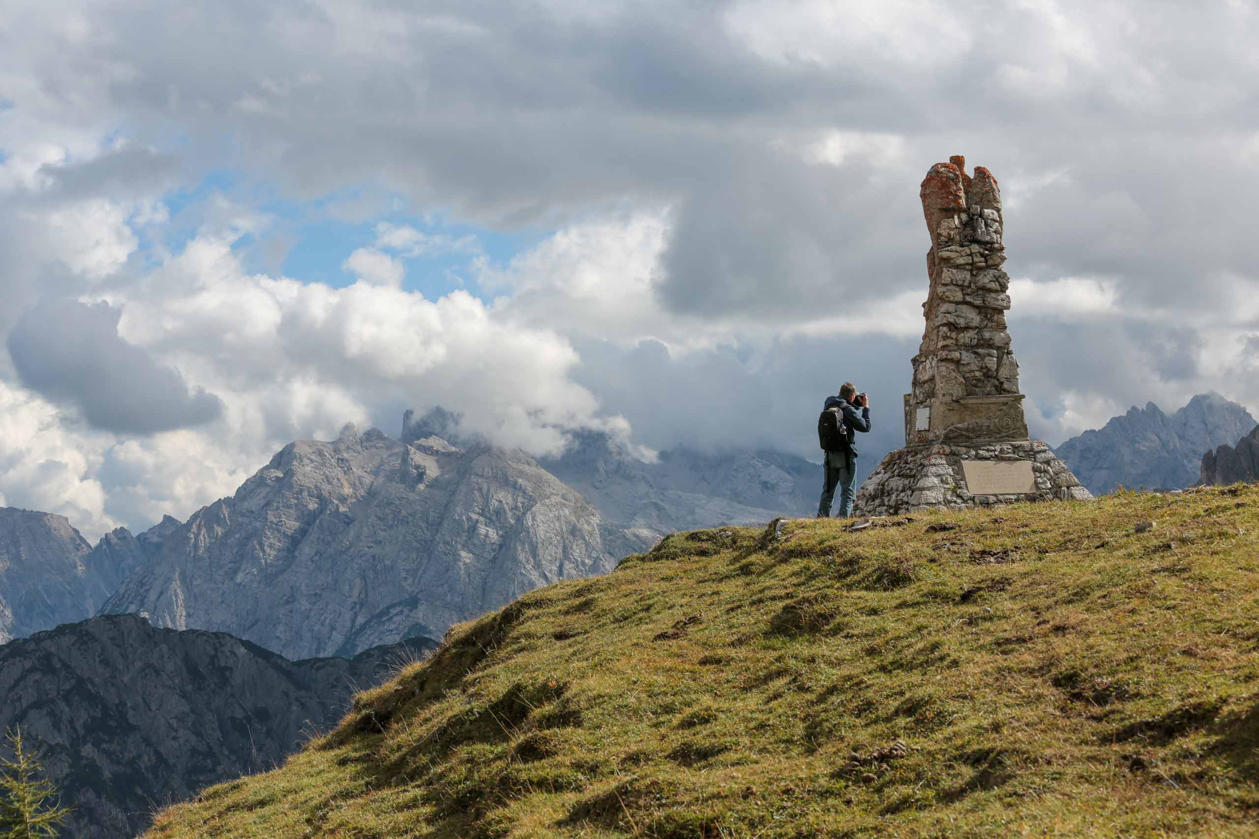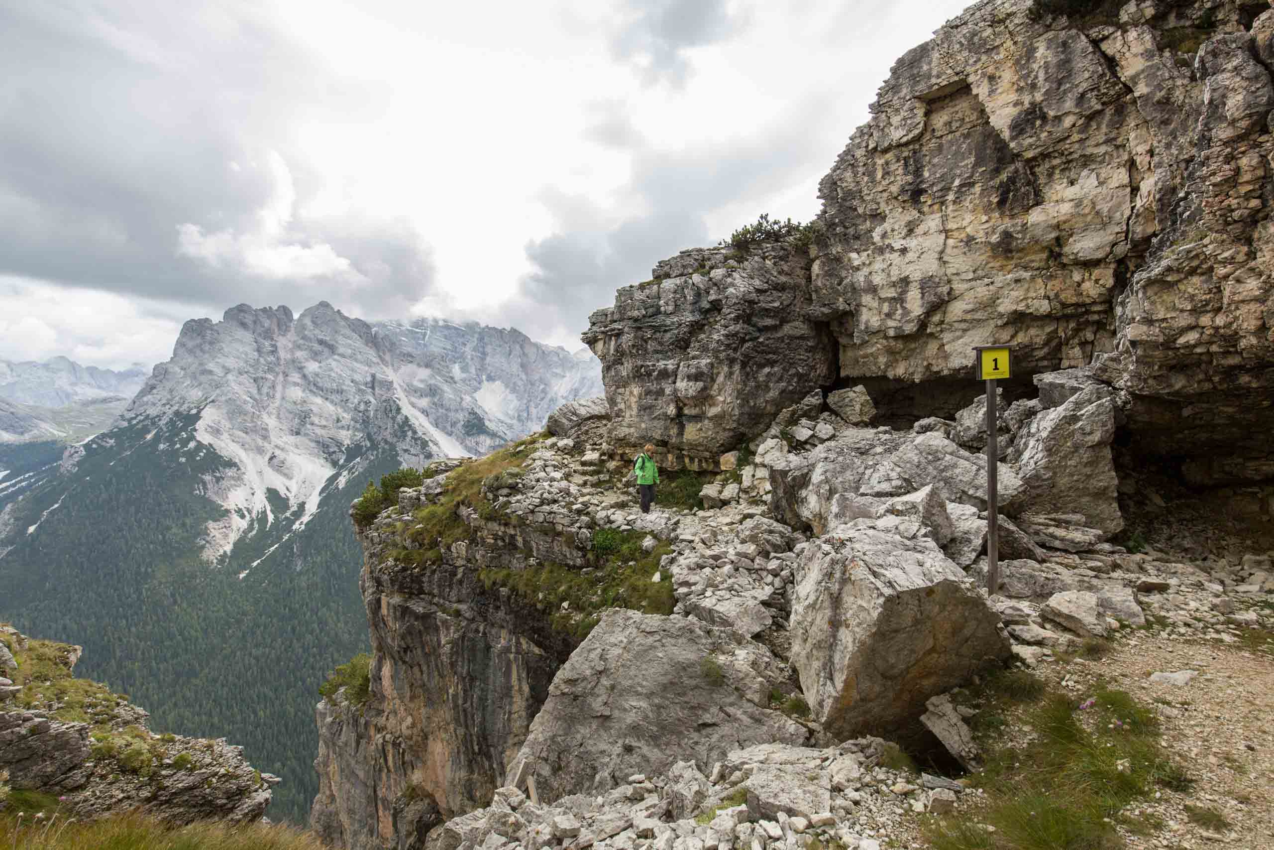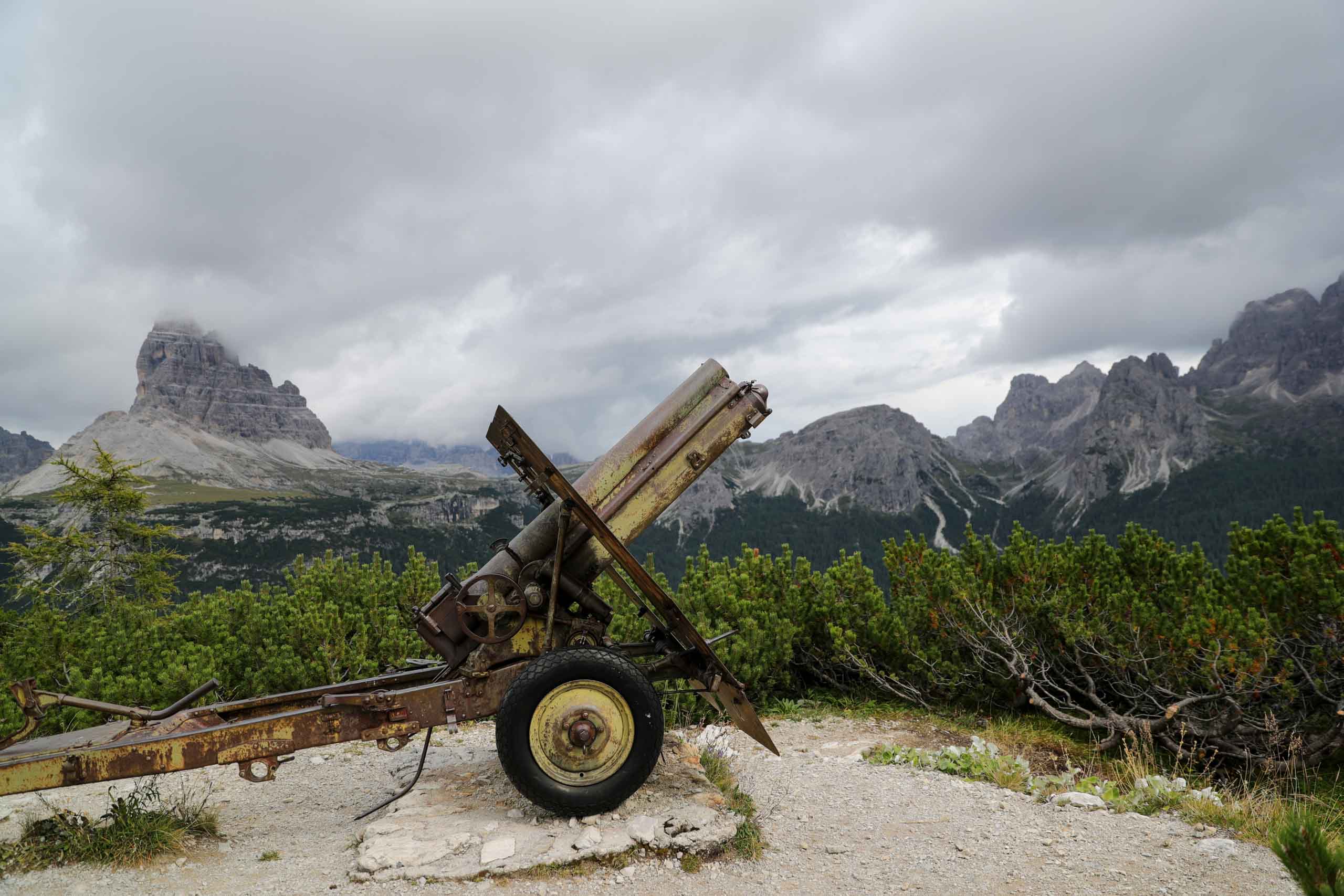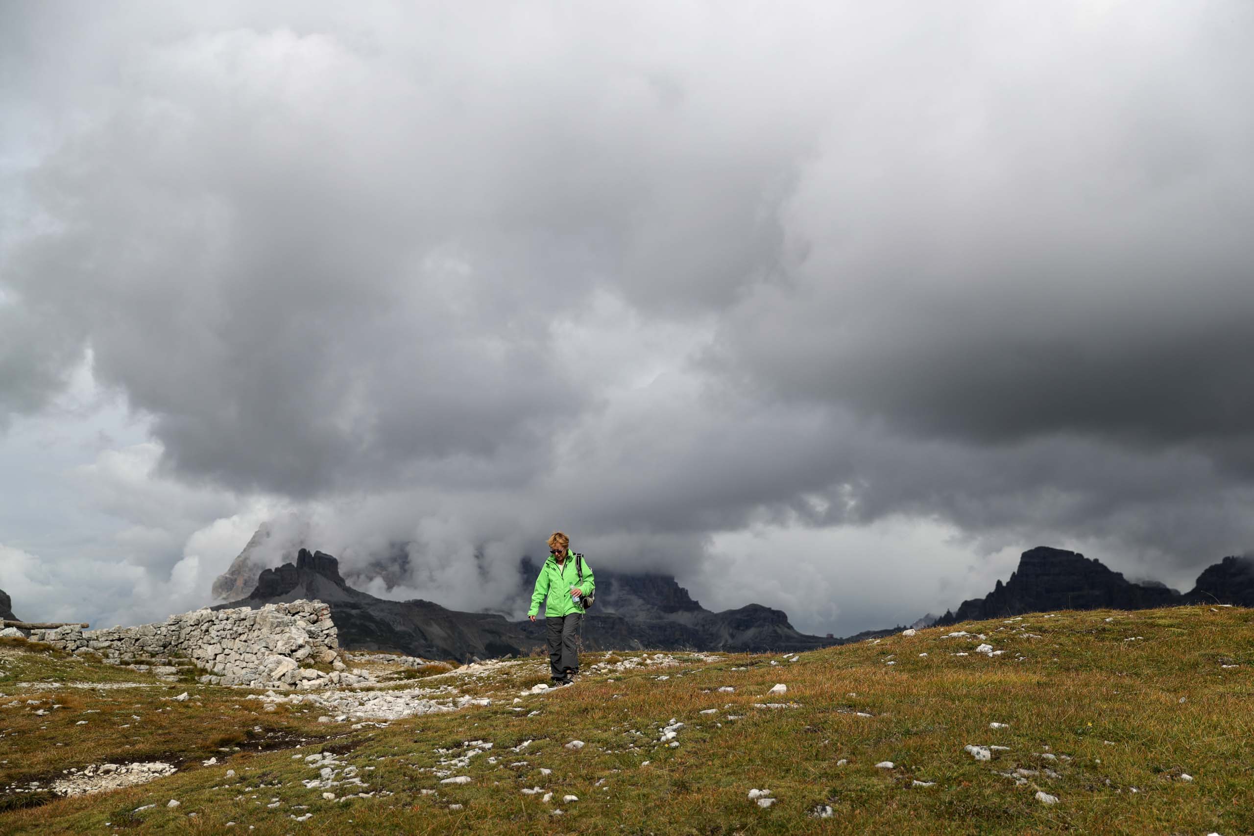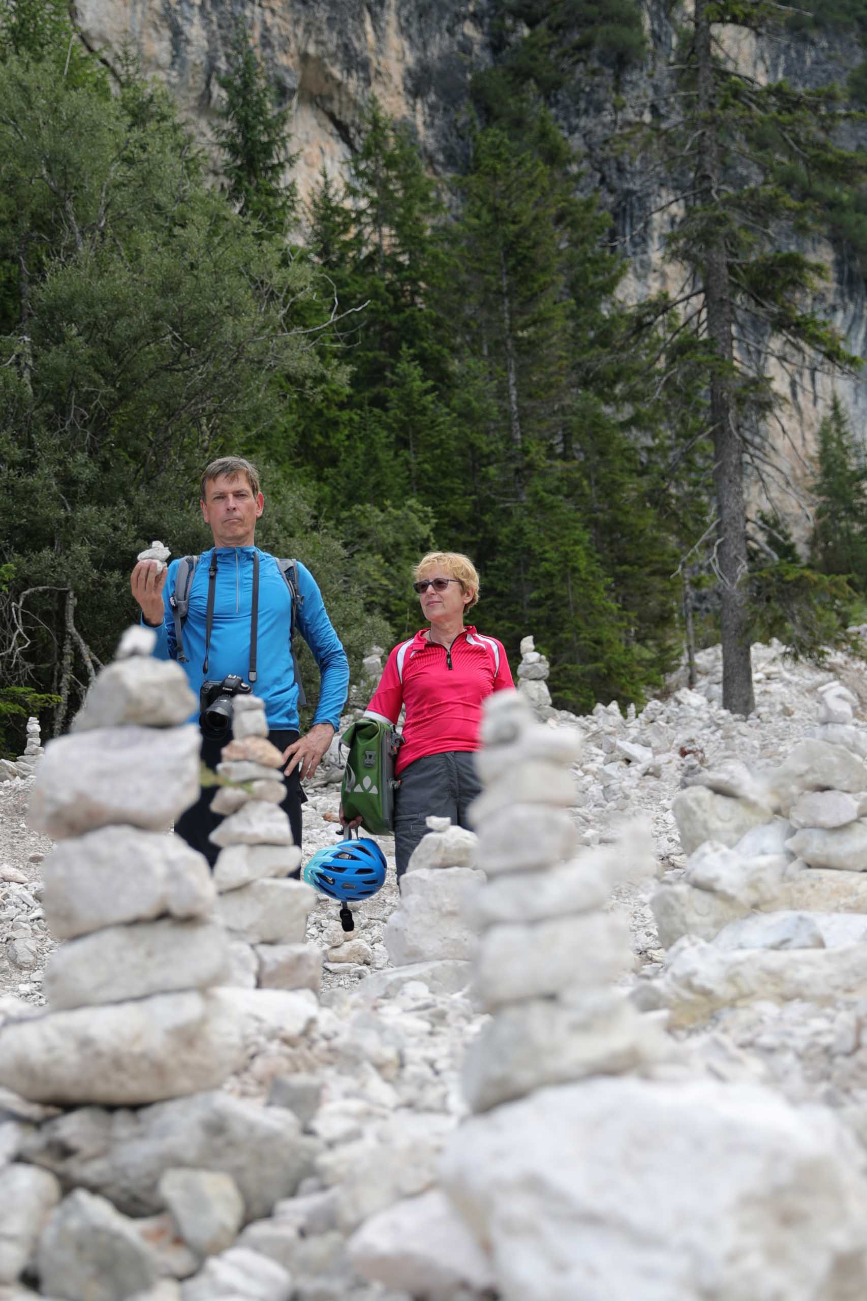 Dank staufreier Anreise konnten wir - sozusagen als Auftakt - eine interessante Zusatz-Exkursion unternehmen. Per Jeep fuhren wir auf einer schmalen, aber sehr kurvenreichen Schotterpiste etwa 6 km hinauf zur Bosi-Hütte auf 2205 m Höhe. Von dort gelangten wir zu Fuß auf das Hochplateau des Monte Piana. Der Anblick dieser unvergleichlichen Kulisse ist aber auch von der Kenntnis geprägt, dass hier im 1. Weltkrieg über 14.000 Soldaten ihr Leben lassen mussten. Der Nordgipfel Monte Piano war von den Österreichern, der südliche Hauptgipfel von den Italienern besetzt und erbittert umgekämpft. Noch heute sieht man die Stellungsanlagen, Schützengräben und Stollen. Was mussten diese Menschen empfunden haben, die sich 1915-1918 in einem aussichtslosen Stellungskrieg teilweise nur wenige Meter gegenüberlagen? Für uns boten sich an diesem ersten Urlaubstag atemberaubende Blicke auf die umliegenden Dolomiten, die wir ja in den kommenden Tagen per Rad etwas näher erkunden wollten…