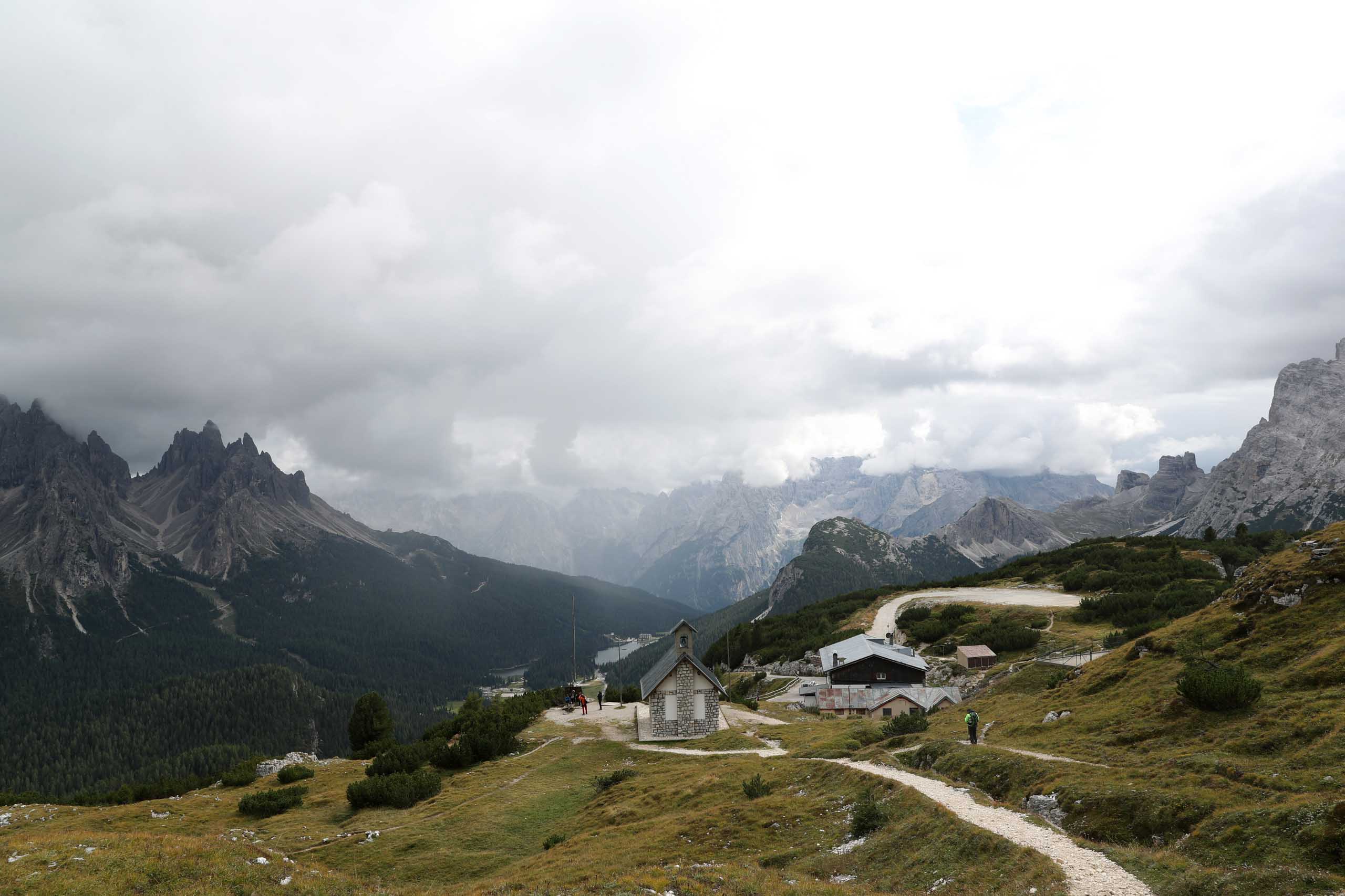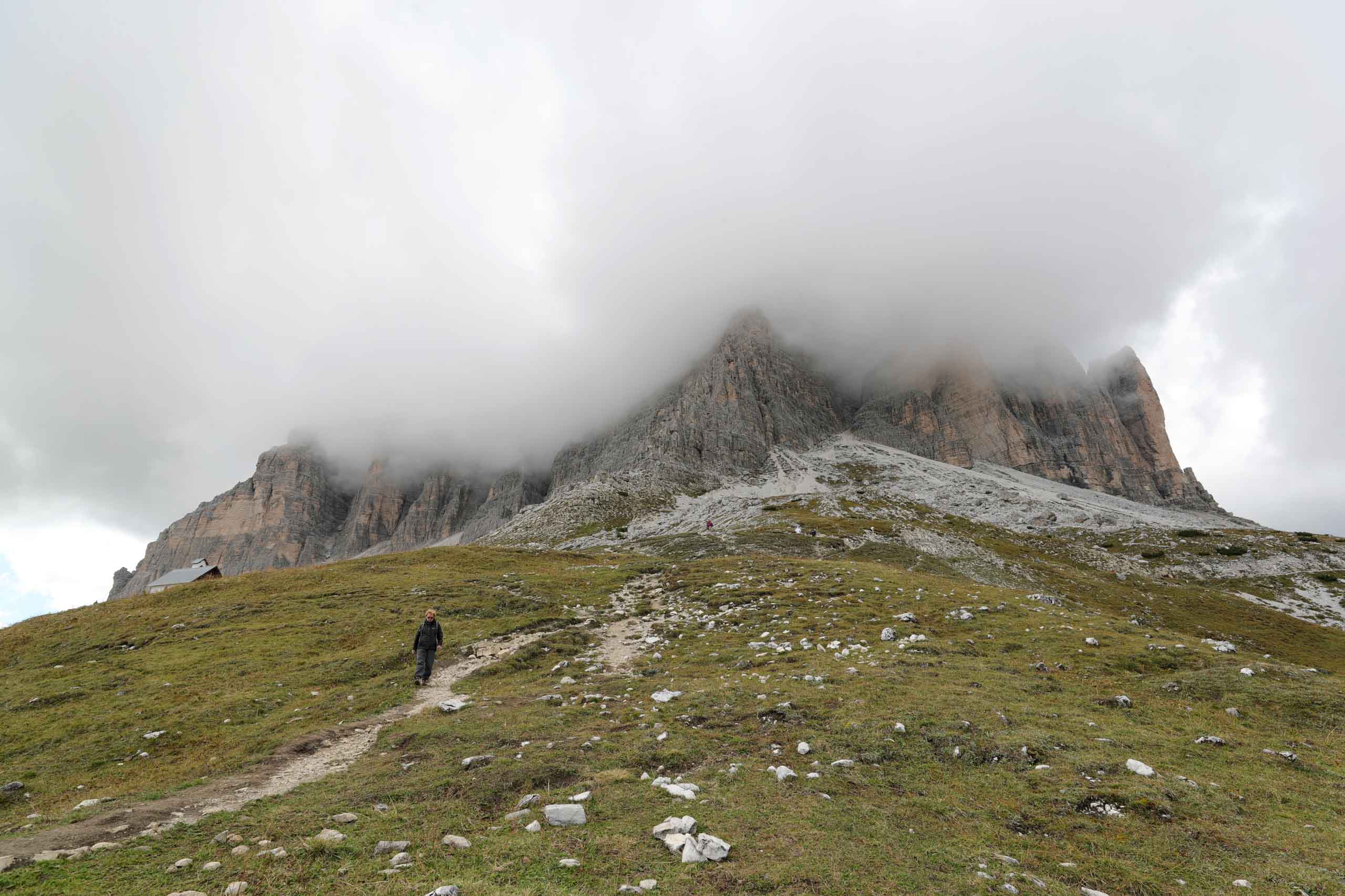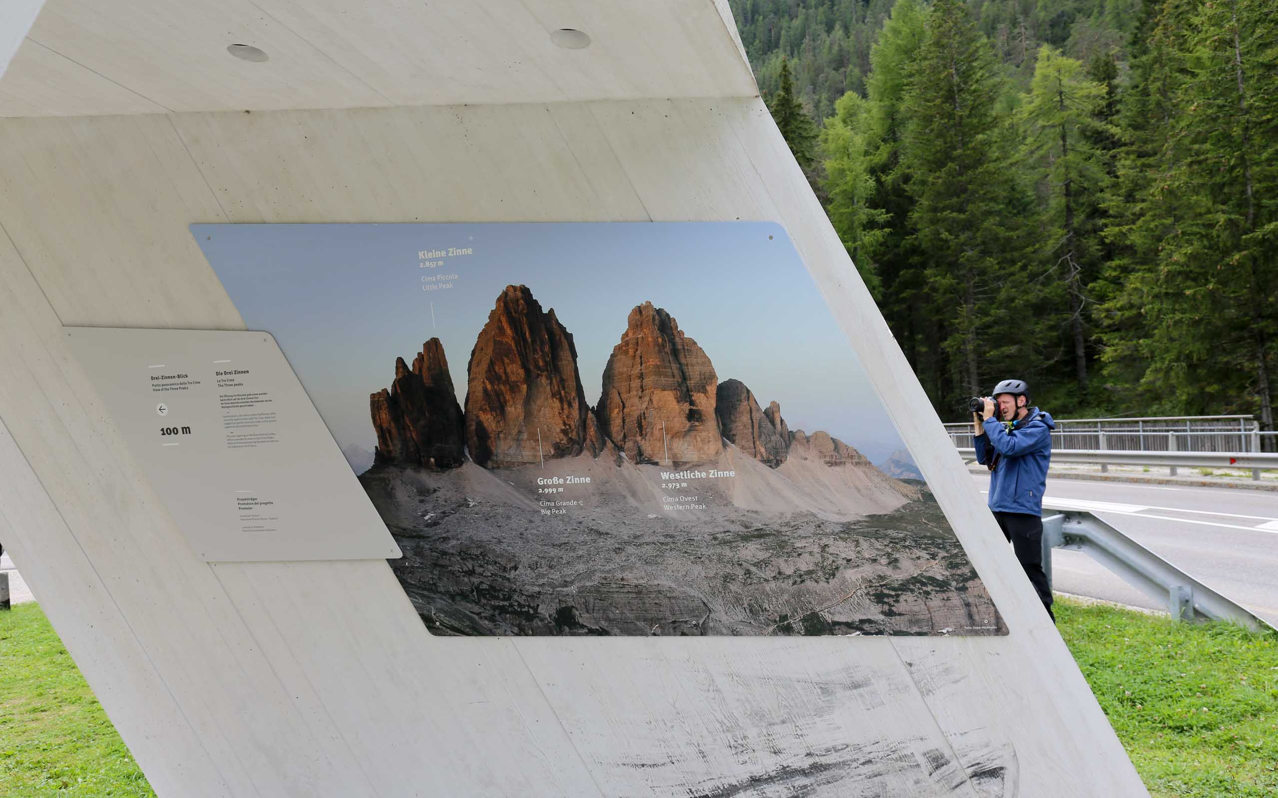 Von dort konnten wir uns meist bergab rollen lassen, zunächst zum Dürrensee (Kaffee & Kuchen) und schließlich zum Drei Zinnen Blick. Hier gewannen wir einen ersten Eindruck der Magie dieses Dreigestirns. Am Waldfriedhof für die im 1. WK gefallenen Soldaten machten wir eine weitere Pause. Über die Talsohle und den Toblacher See erreichten wir bei einsetzendem Regen wieder wohlbehalten unser Hotel Hubershof. (35 km)