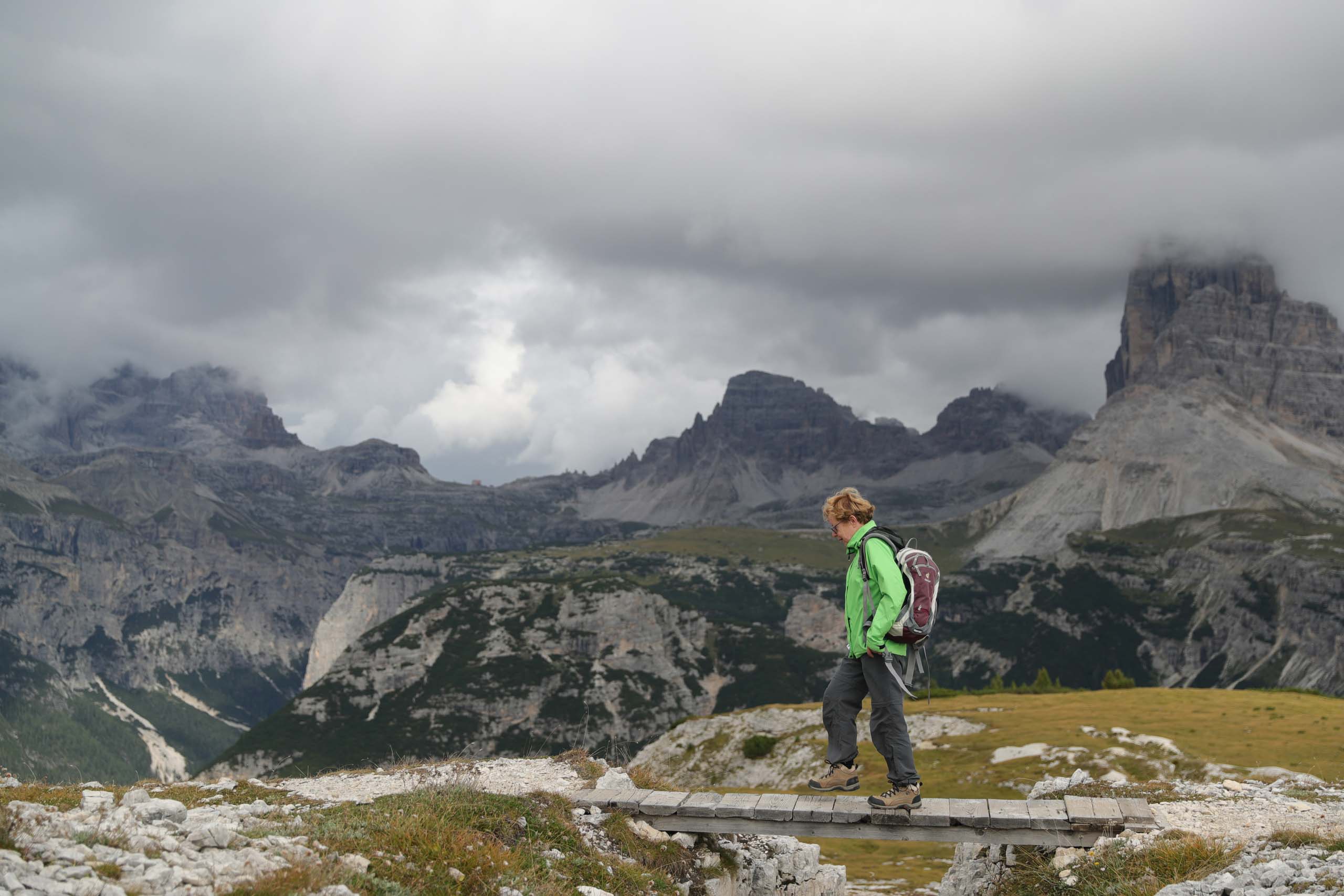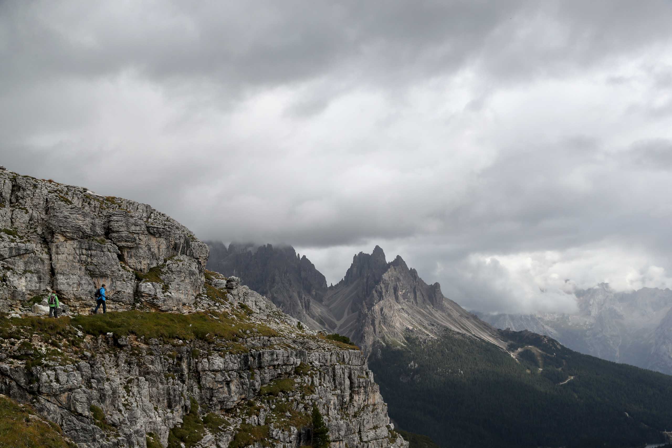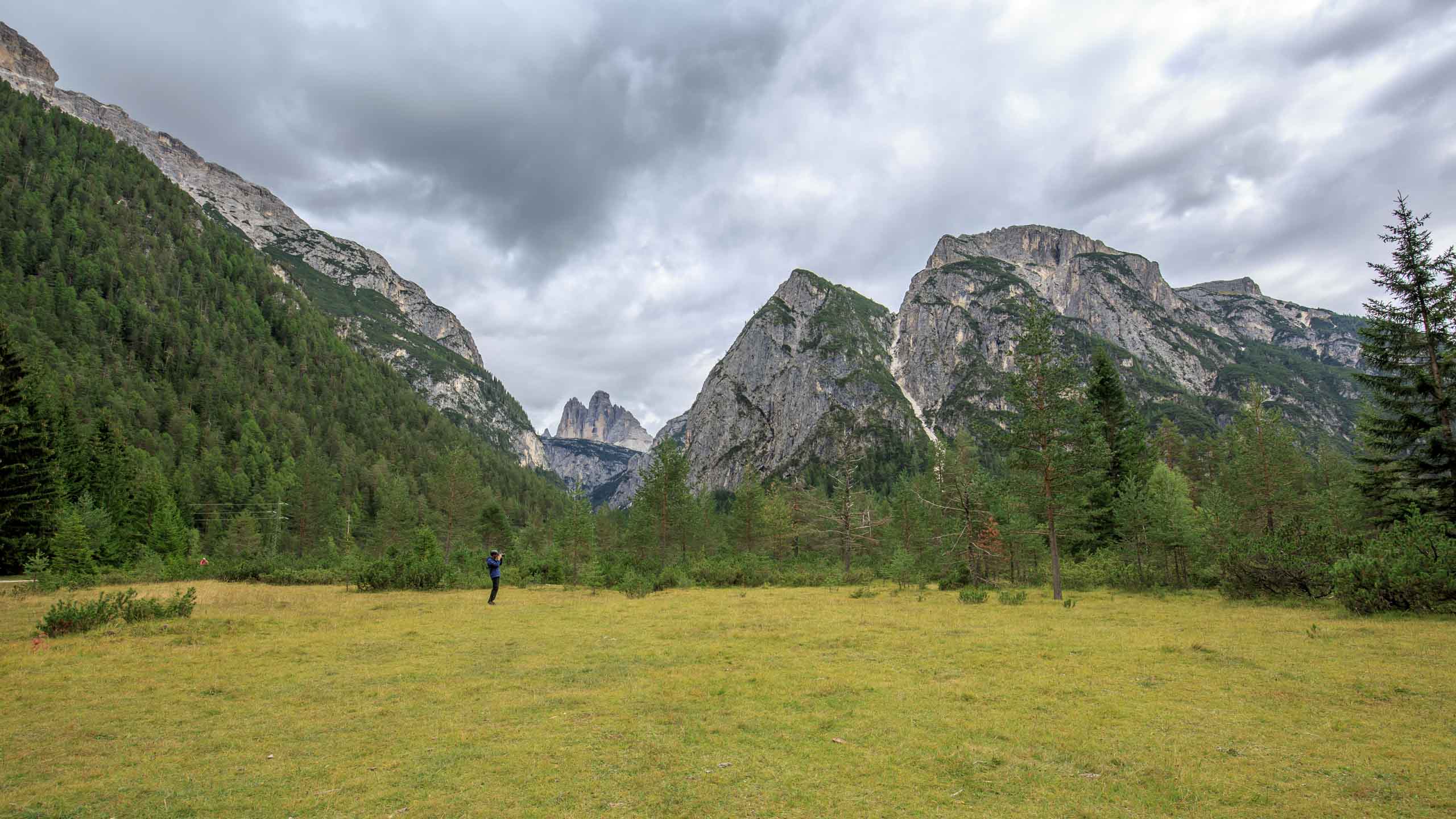 Von dort konnten wir uns meist bergab rollen lassen, zunächst zum Dürrensee (Kaffee & Kuchen) und schließlich zum Drei Zinnen Blick. Hier gewannen wir einen ersten Eindruck der Magie dieses Dreigestirns. Am Waldfriedhof für die im 1. WK gefallenen Soldaten machten wir eine weitere Pause. Über die Talsohle und den Toblacher See erreichten wir bei einsetzendem Regen wieder wohlbehalten unser Hotel Hubershof. (35 km)
