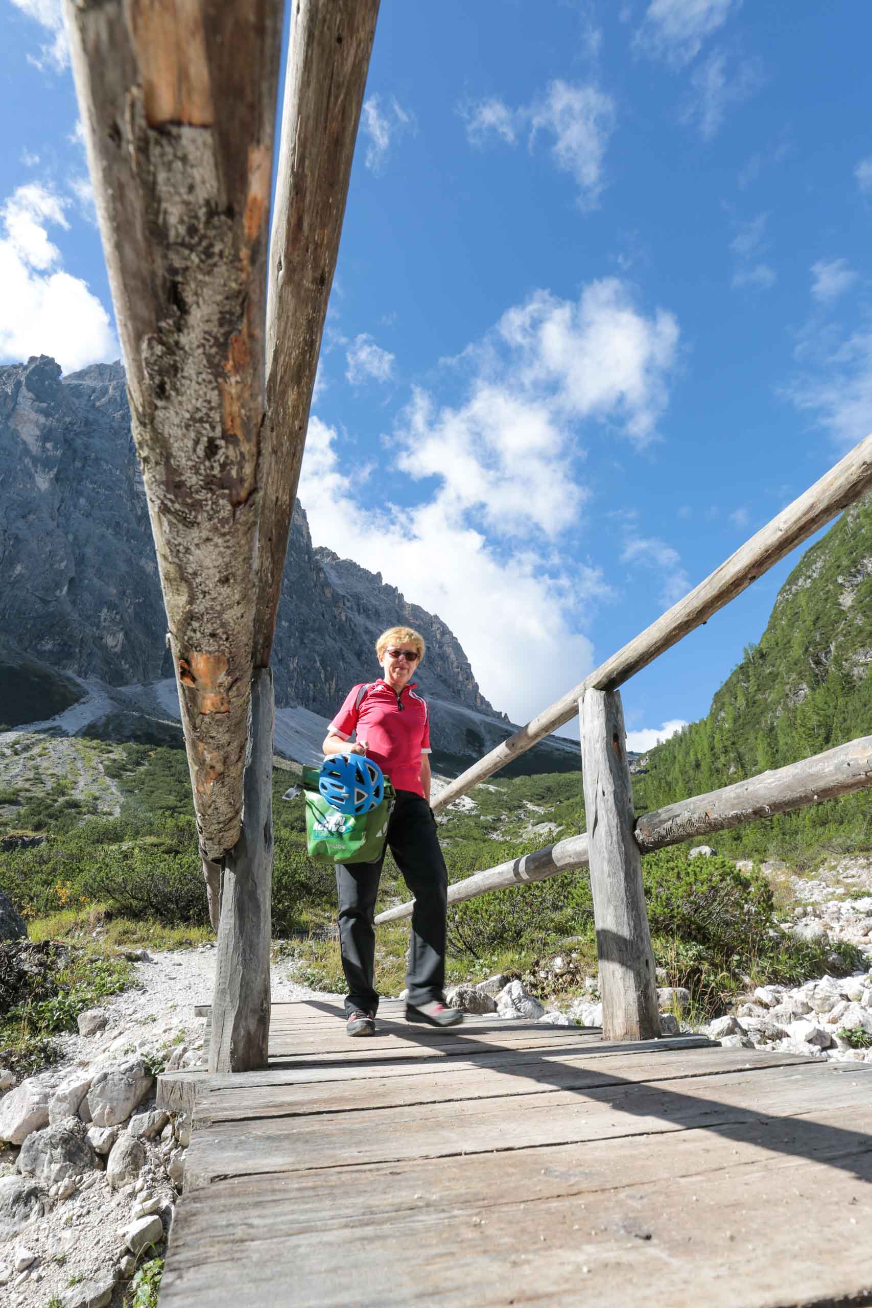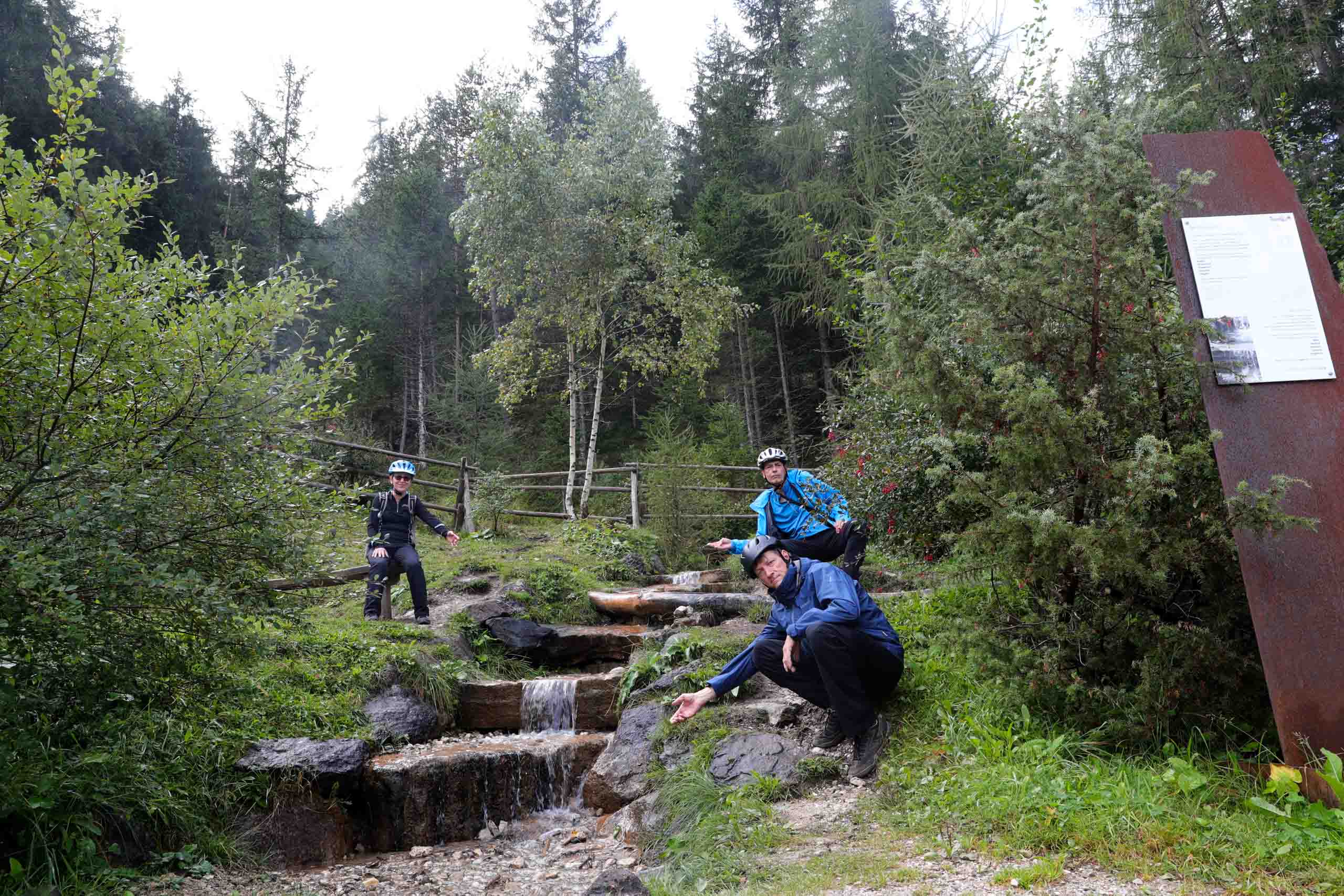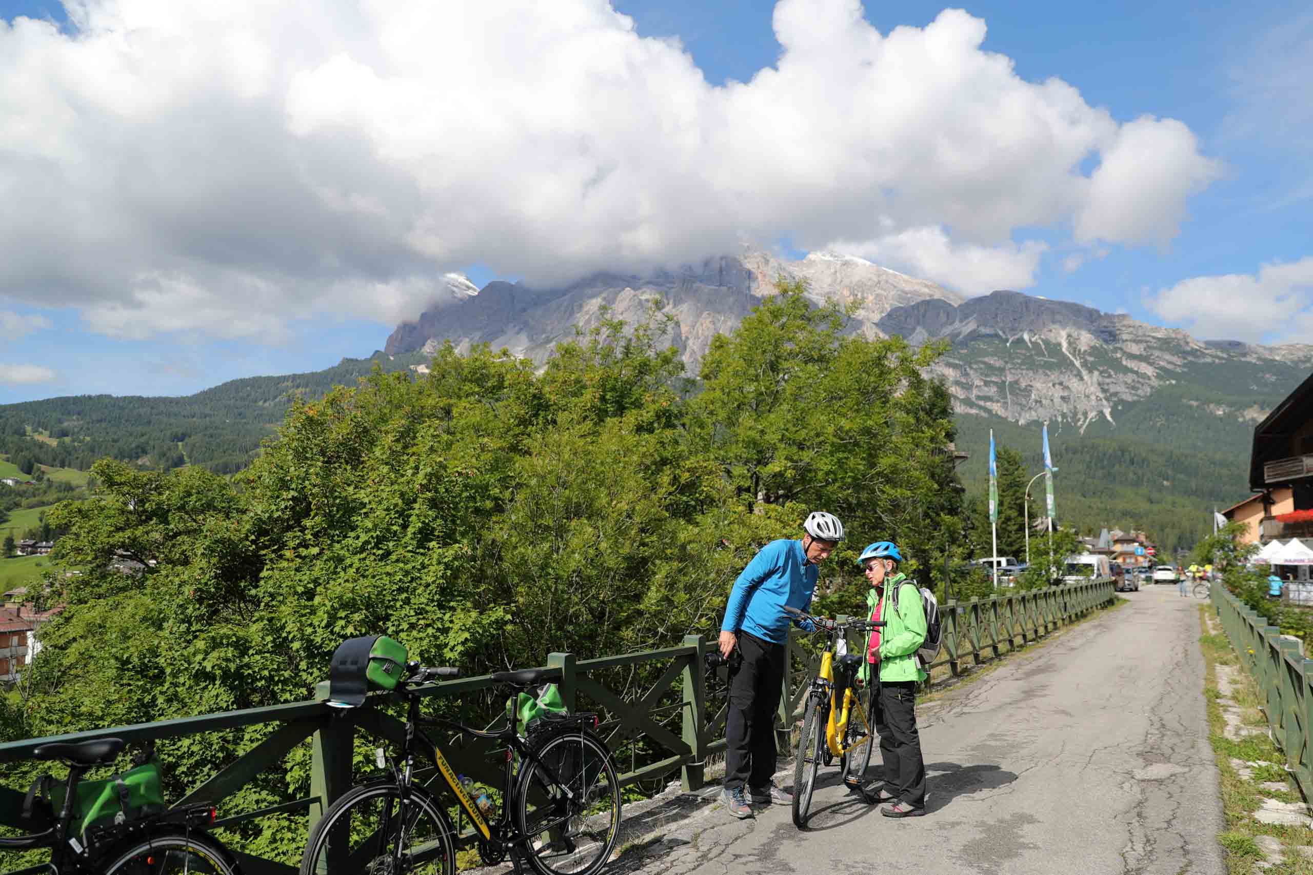 Die erste offizielle Tagesetappe führte uns nach Cortina d’Ampezzo, dem Austragungsort der Olympischen Winterspiele 1956. Nach kurzer Ortsbeichtigung folgten wir dem Fahrradweg auf der ehemaligen Dolomitenbahn zum einst höchsten Punkt der Bahn, nach Gemärk/Cimabanche.