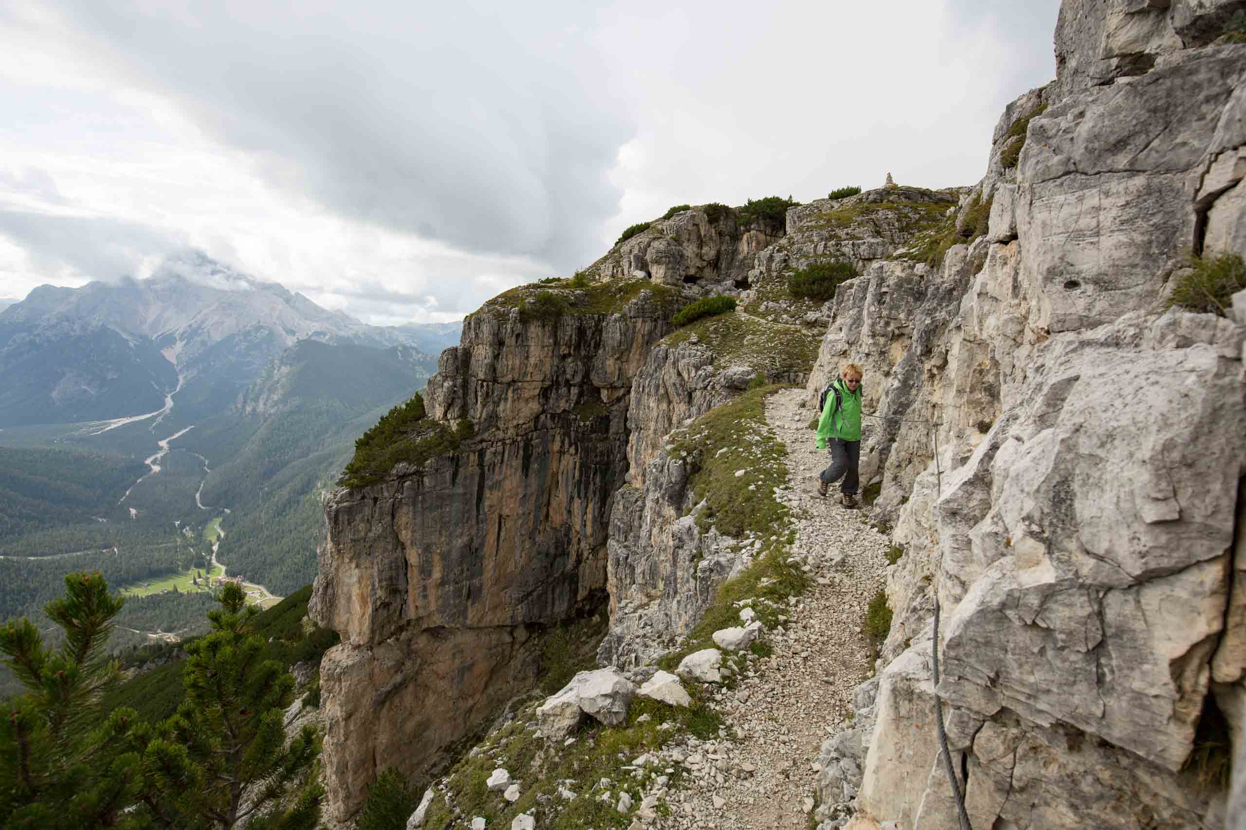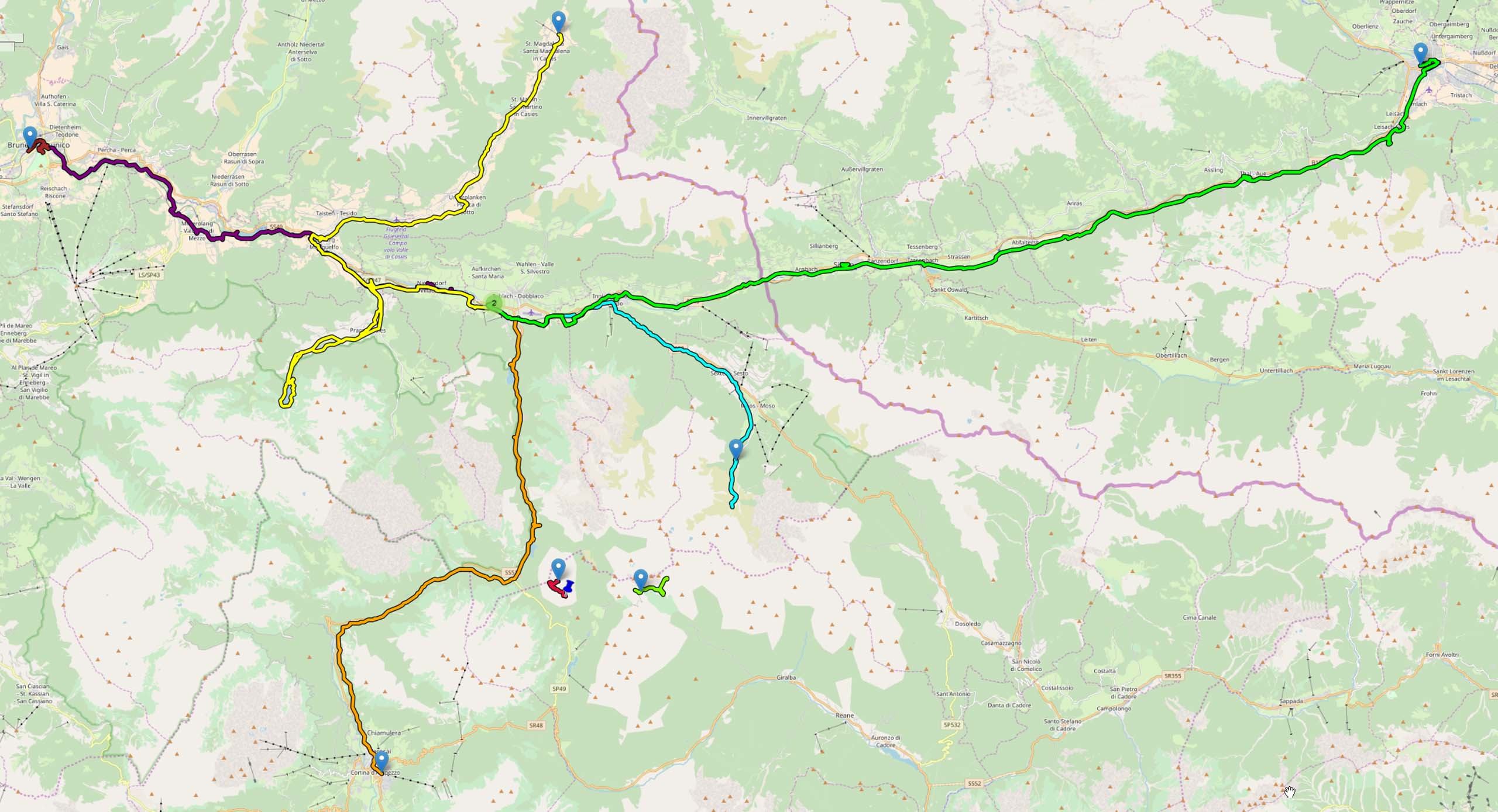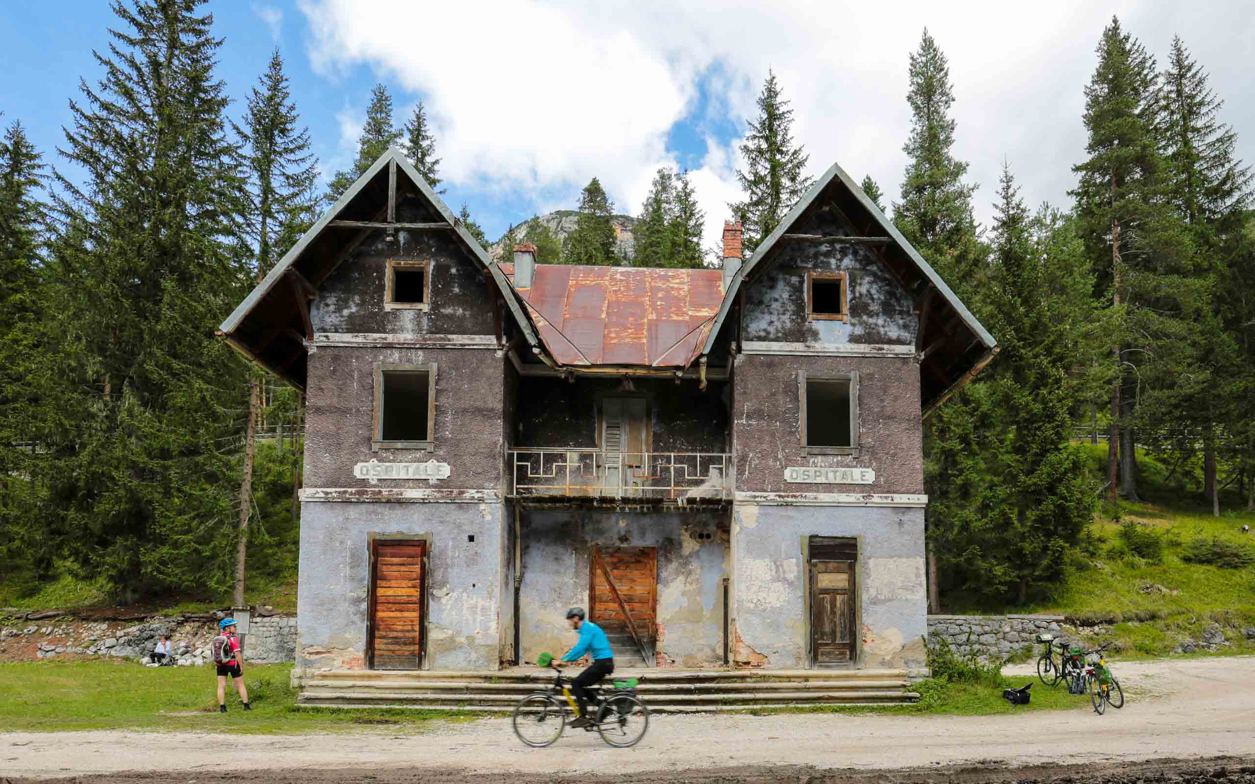 Die erste offizielle Tagesetappe führte uns nach Cortina d’Ampezzo, dem Austragungsort der Olympischen Winterspiele 1956. Nach kurzer Ortsbeichtigung folgten wir dem Fahrradweg auf der ehemaligen Dolomitenbahn zum einst höchsten Punkt der Bahn, nach Gemärk/Cimabanche.