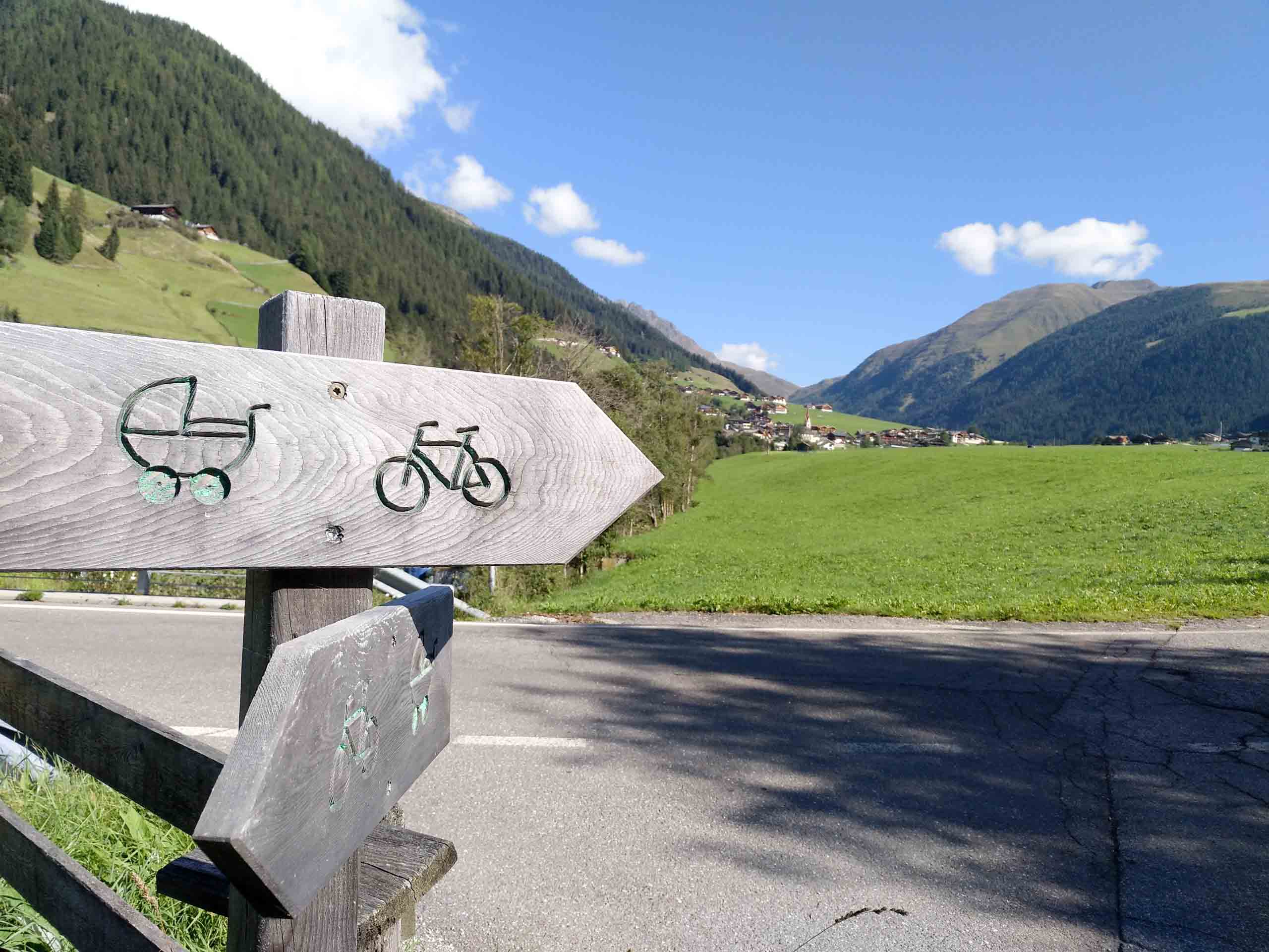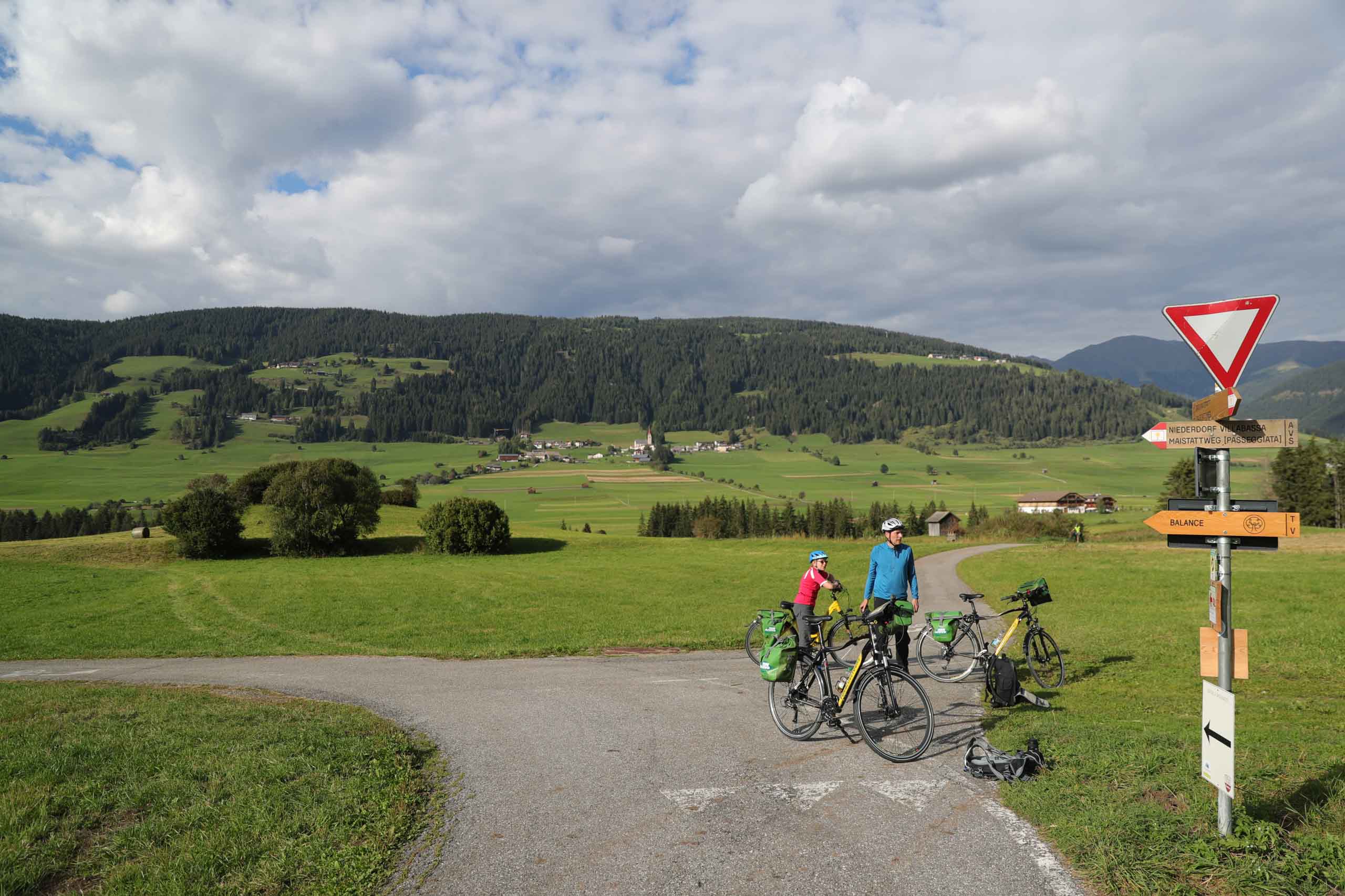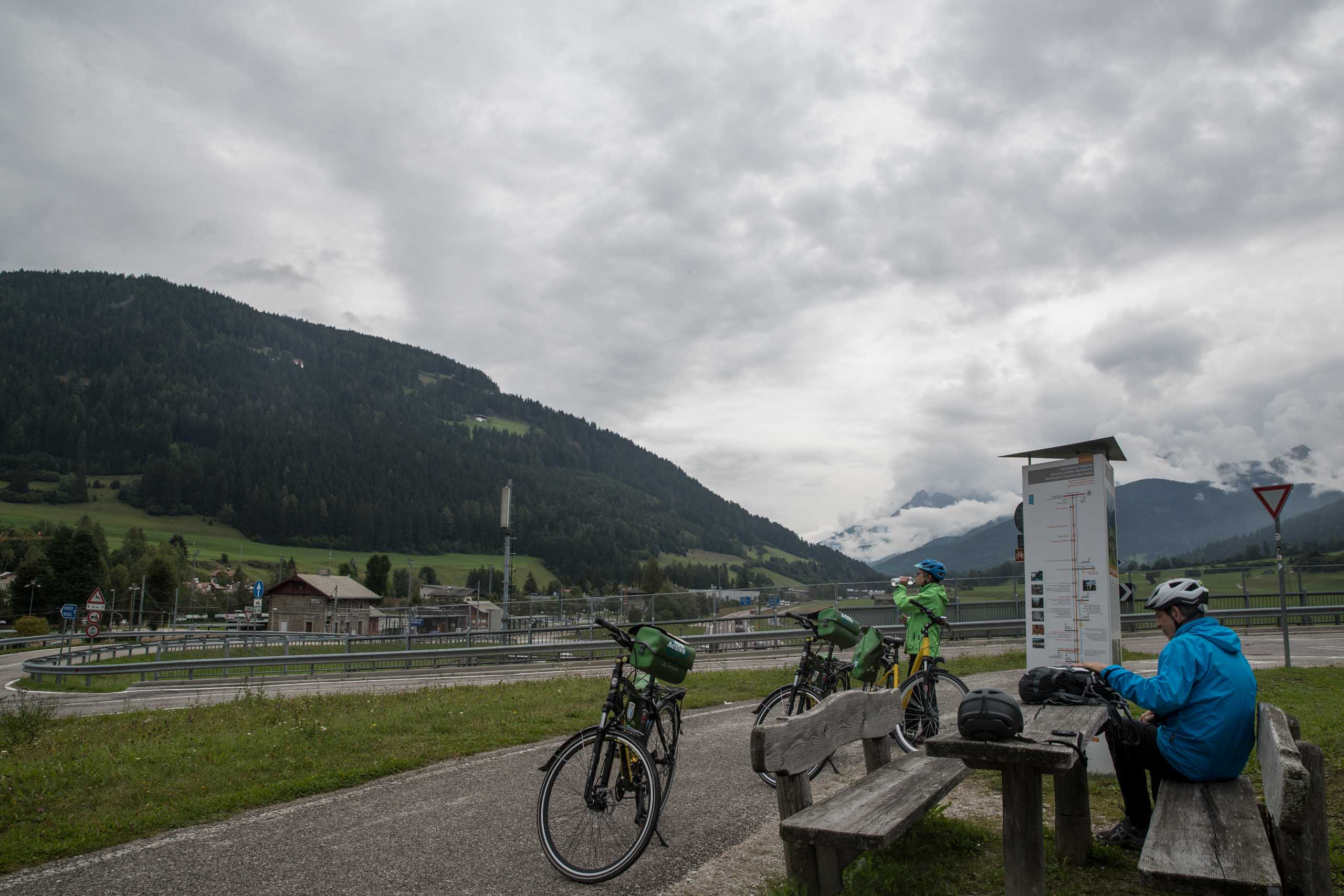 Am nächsten Tag stand Bruneck auf dem Fahrplan. Wir radelten am malerischen Pragser Tal und am gemütlichen Olanger Stausee vorbei, meist entlang der Rienz und talabwärts. Die Etappe war recht hügelig und auch landschaftlich wieder sehr abwechslungsreich. Schön wäre es gewesen, man hätte noch einen Abstecher zu den Erdpyramiden von Paltten bei Percha machen können. Leider gab es darauf keinen Hinweis in unseren Reiseunterlagen, wahrscheinlich wäre der Abstecher einfach zu weit geraten. Wirklich schade.