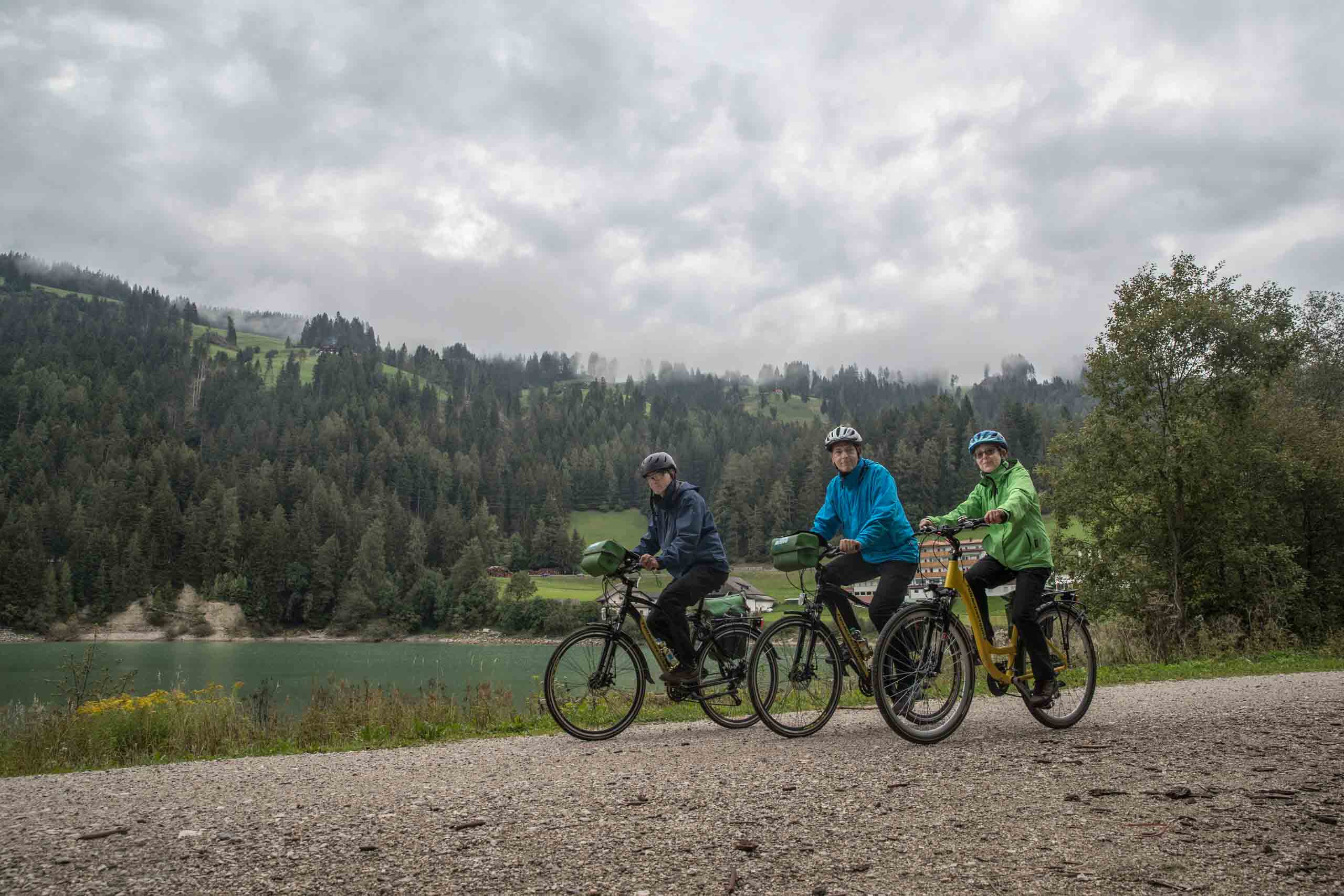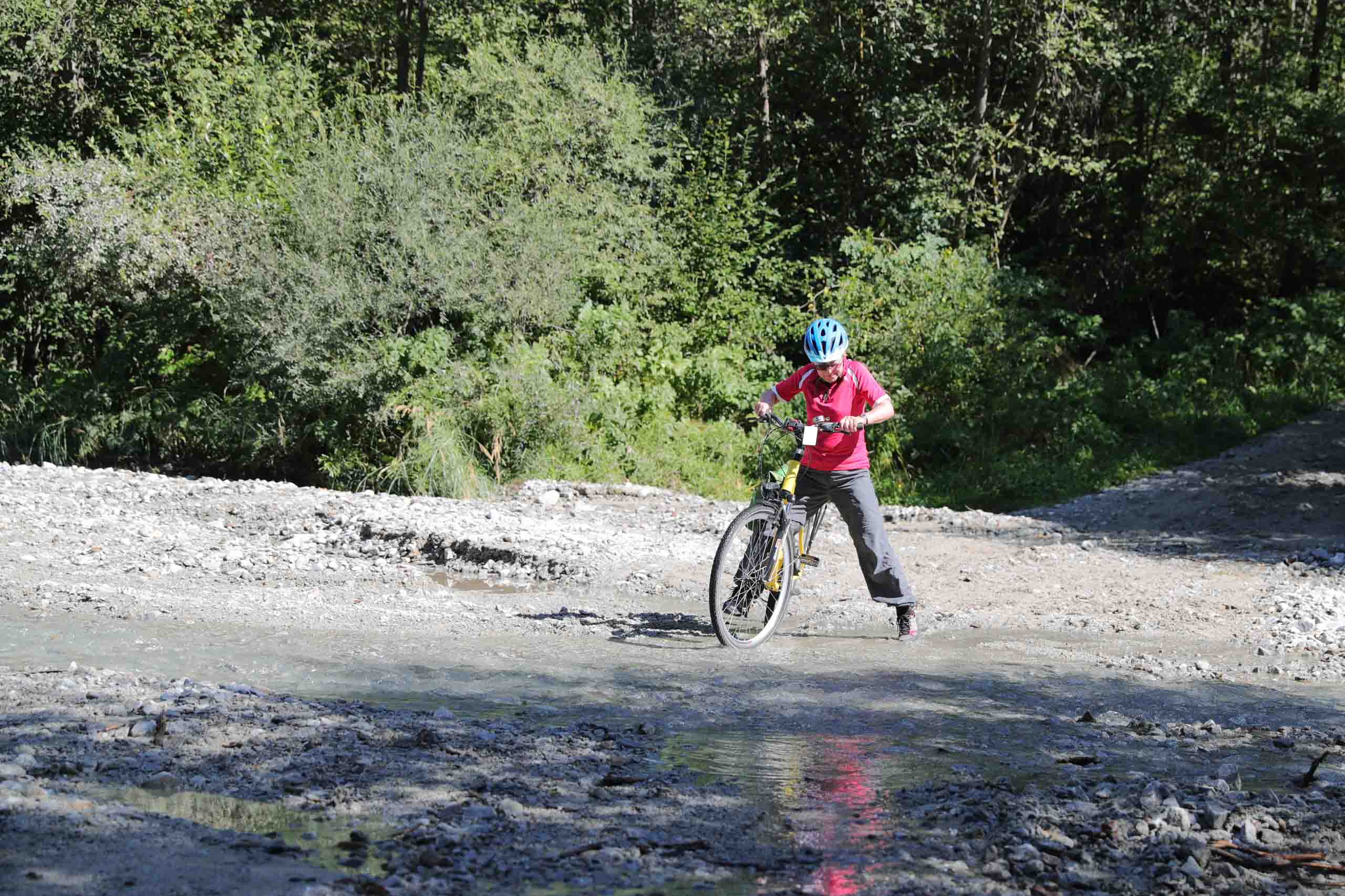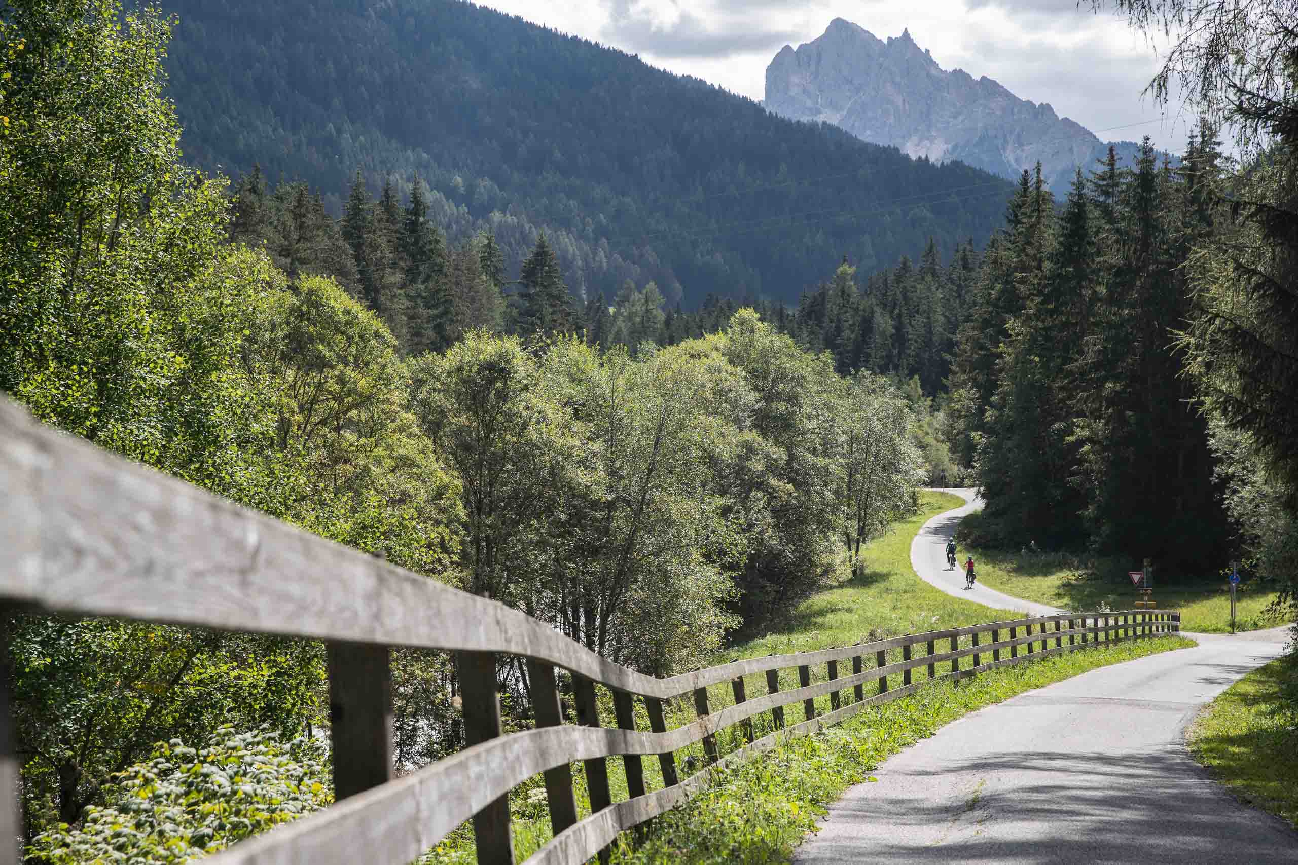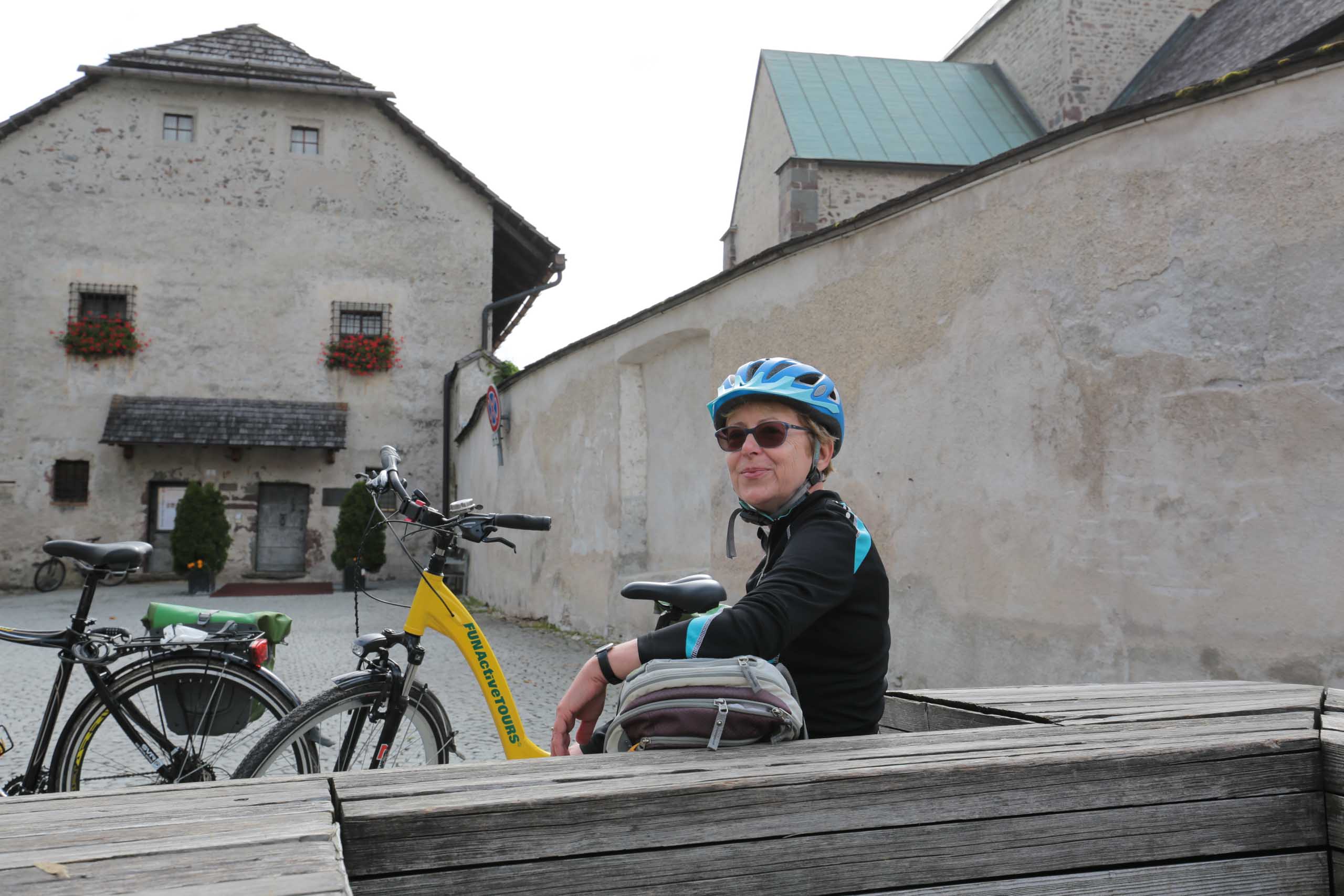 Am nächsten Tag stand Bruneck auf dem Fahrplan. Wir radelten am malerischen Pragser Tal und am gemütlichen Olanger Stausee vorbei, meist entlang der Rienz und talabwärts. Die Etappe war recht hügelig und auch landschaftlich wieder sehr abwechslungsreich. Schön wäre es gewesen, man hätte noch einen Abstecher zu den Erdpyramiden von Paltten bei Percha machen können. Leider gab es darauf keinen Hinweis in unseren Reiseunterlagen, wahrscheinlich wäre der Abstecher einfach zu weit geraten. Wirklich schade.