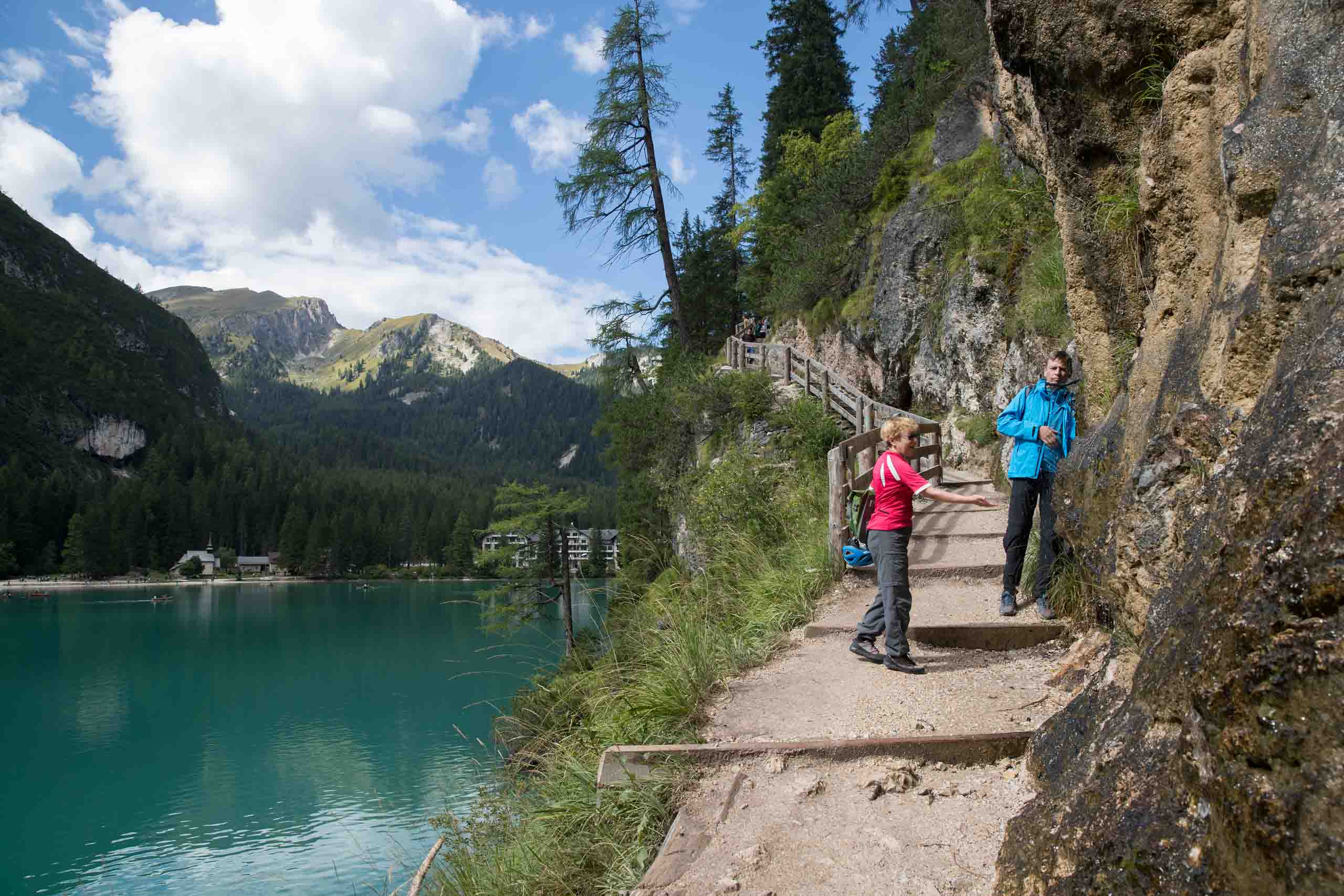 Stunden später kamen wir doch irgendwie noch oben an und konnten hier froh sein, nicht auf einen PKW-Parkplatz angewiesen zu sein. So schön der Pragser Wildsee auch ist, so überlaufen ist das gesamte Areal. Wir sind einmal um den ganzen See gewandert, ehe es nach kurzer Stärkung wieder in Richtung Basislager ging.(52 km - vmax 62 km/h – 462 hm)