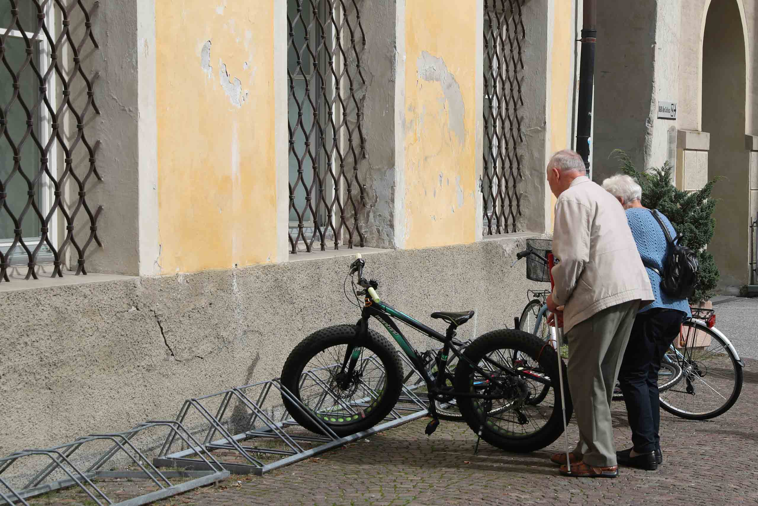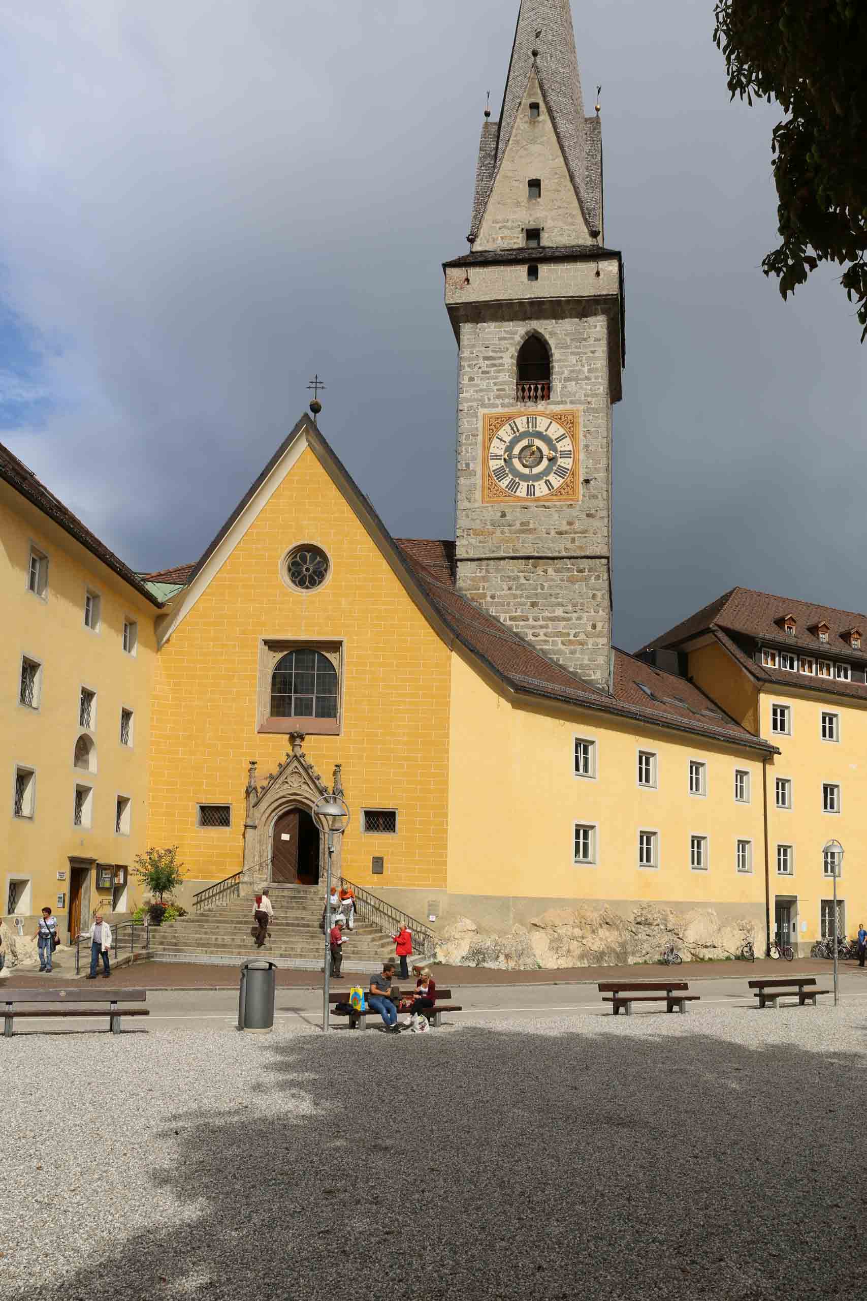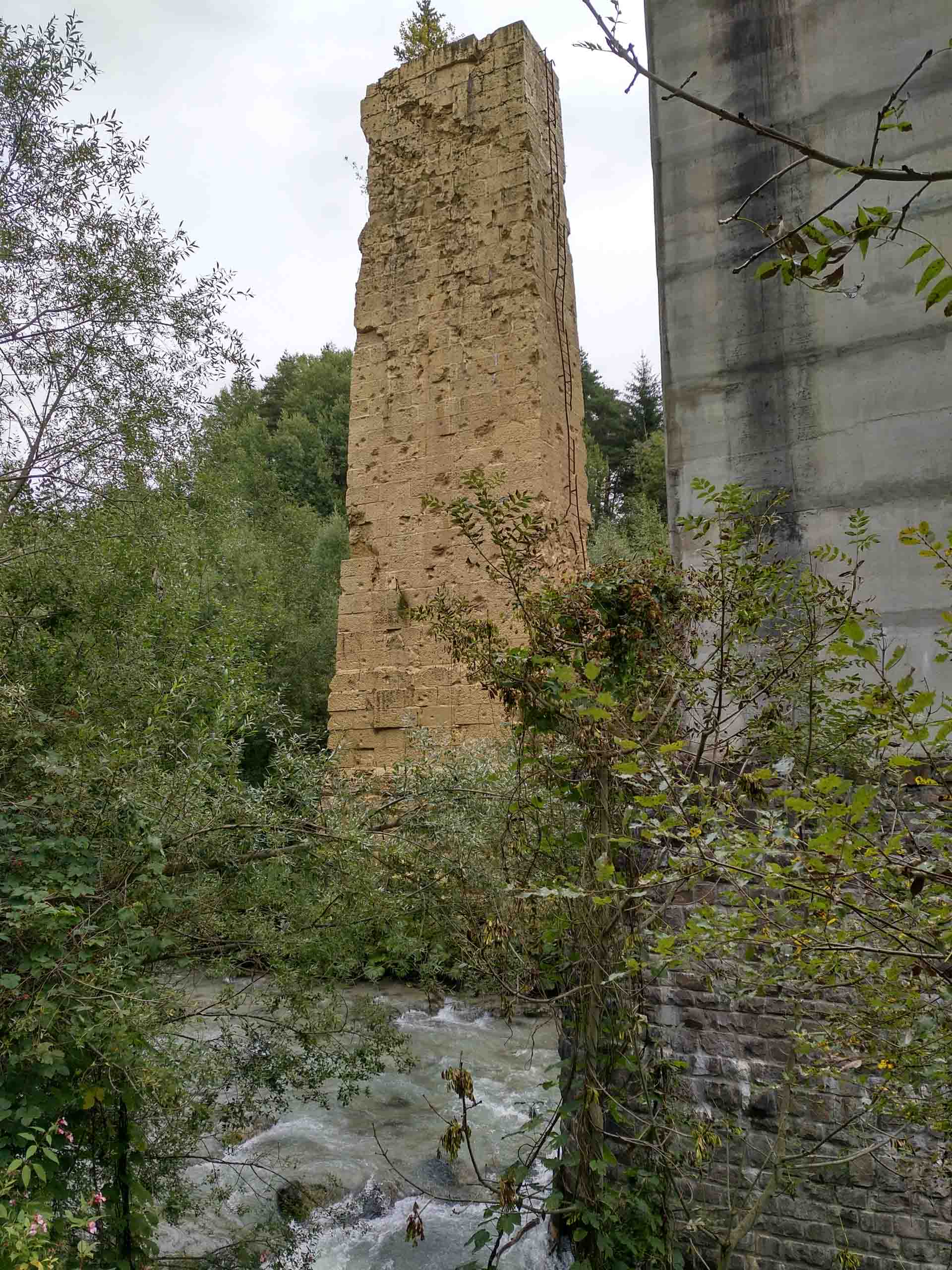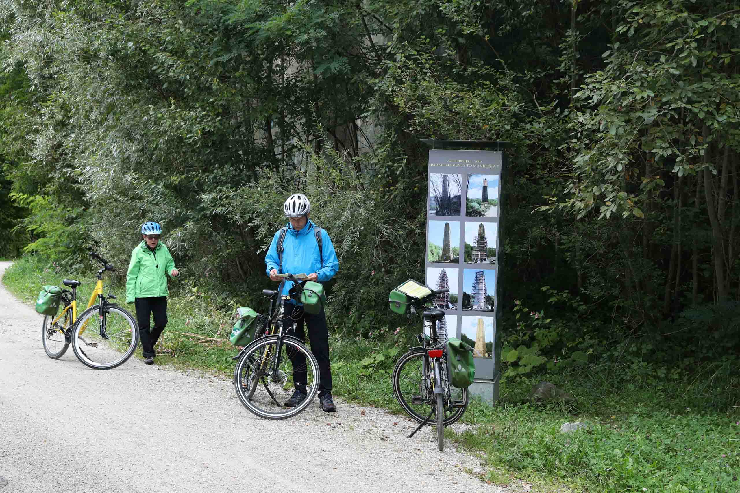 Unterwegs entdeckten wir unter einer Brücke einen goldfarbenen Turm. Ursprünglich der Pfeiler einer bedeutenden Eisenbahnbrücke , später als Teil eines Kunstprojekts ist er inzwischen fast zugewachsen. Bruneck ist der Hauptort des Pustertales und mit 16000 Einwohnern ein ziemlich quirliger Ort. Am Fuße des Schlossbergs befindet sich die Altstadt, die von der Rienz in einer Schleife im Norden umflossen wird. Vom Waldfriedhof aus hat man einen schönen Blick auf die umliegenden Täler sowie das Schloss Bruneck, welches heute von Reinhold Messner als „Mountain Museum Bergvölker“ genutzt wird. (38 km)