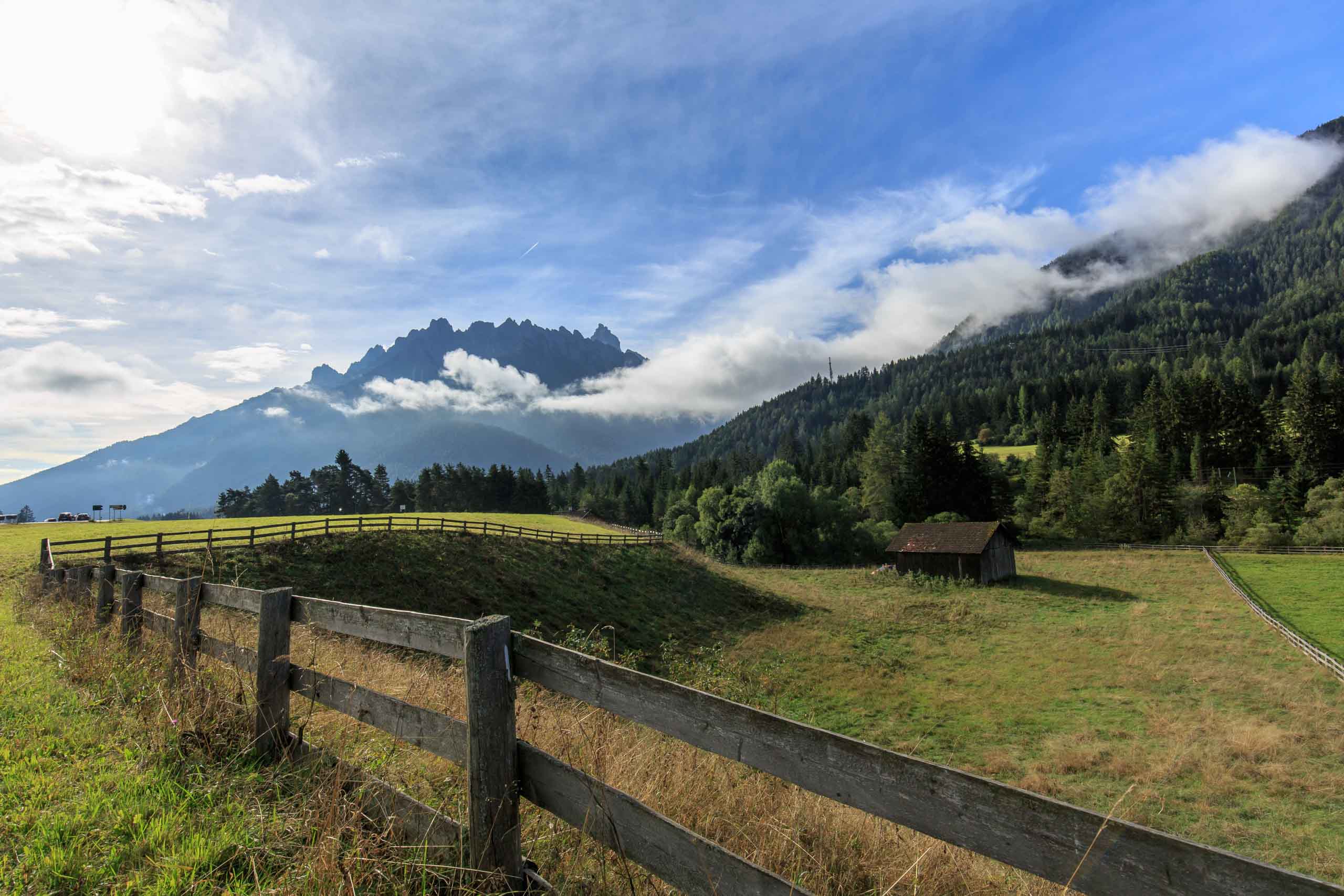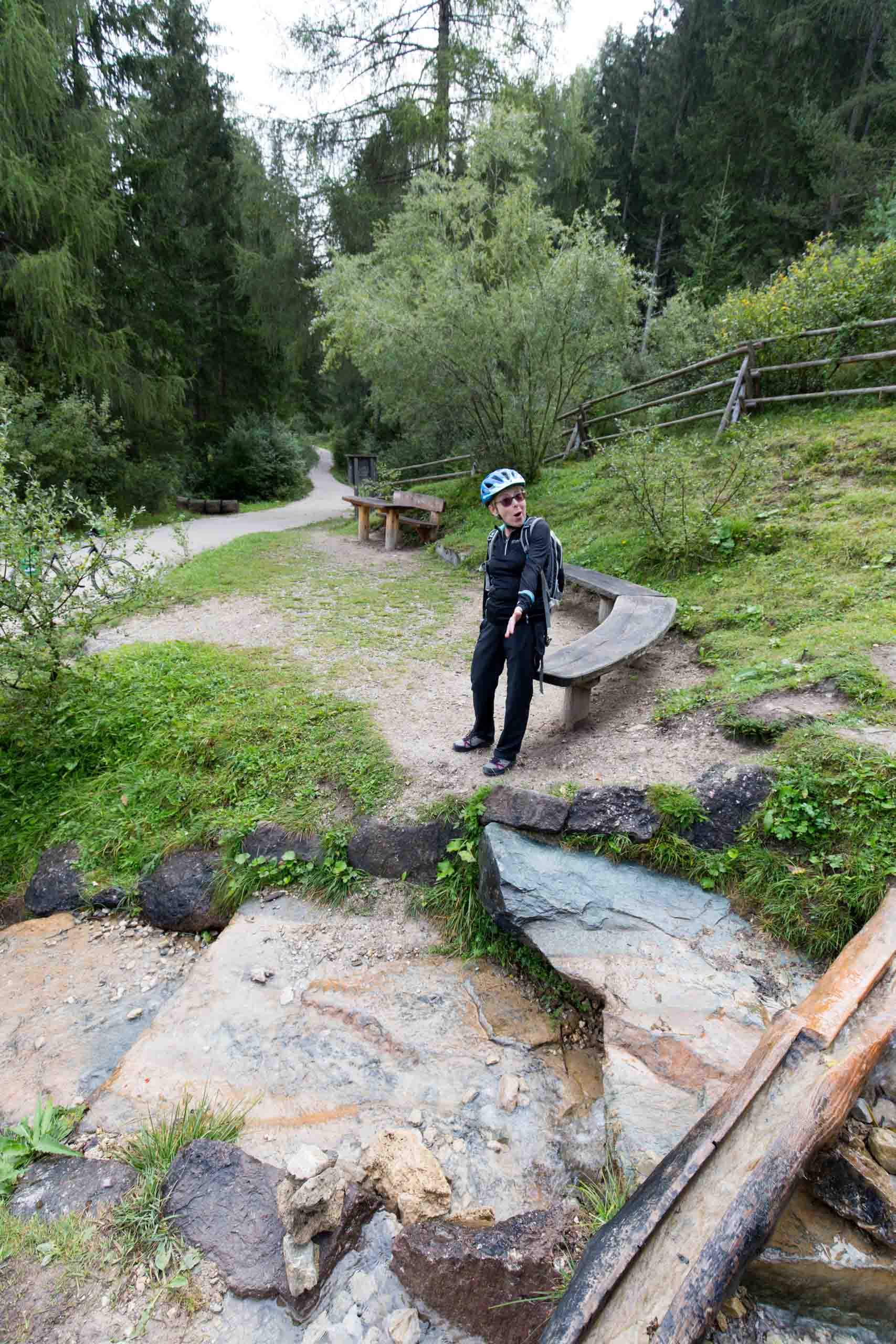 Am Mittwoch herrschte wieder wunderbares Sommerwetter. Unser freundlicher Shuttlefahrer brachte uns gemeinsam mit dem Kanadier und einem älteren Ehepaar durchs abgelegene Gsieser Tal hoch bis nach Sankt Magdalena. Entlang grüner Wiesen, durch Wälder, über Brücken und vorbei an schönen Bauernhöfen ging es immer nur bergab. Wie schön ist das hier!