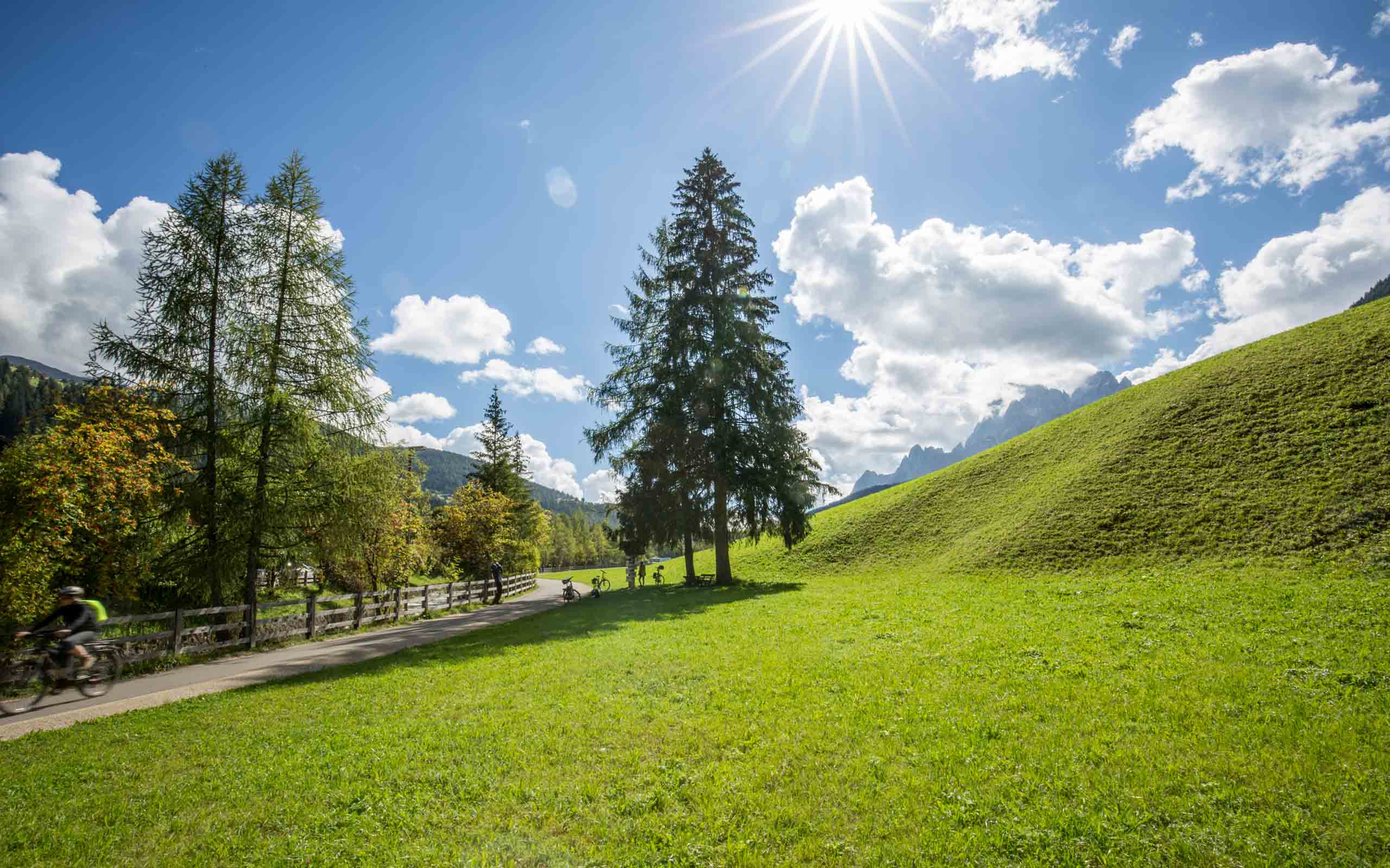 2018 sollten es für den alljährlichen Radurlaub wieder die Berge sein. Im Gebirge ist allein schon die Kulisse spektakulär. Aber Fahrrad und Berge assozieren direkt kräftezehrende Anstrengungen. Allderdings nicht, wenn man die "Die Talradwege der Dolomiten" bucht. Diese sind so organisiert, dass man entweder per Shuttle (samt Fahrrad) zu einem höhergelegenen Ausgangspunkt der Tagestour gebracht wird und dann wird überwiegend talwärts zum Hotel zurück geradelt . Oder aber die Tour beginnt gleich am Hotel. In diesem Fall werden die Radler am Nachmittag zu einer vereinbarten Zeit am Endpunkt der Tagestour per Shuttle abgeholt und bequem zum Hotel zurück chauffiert.