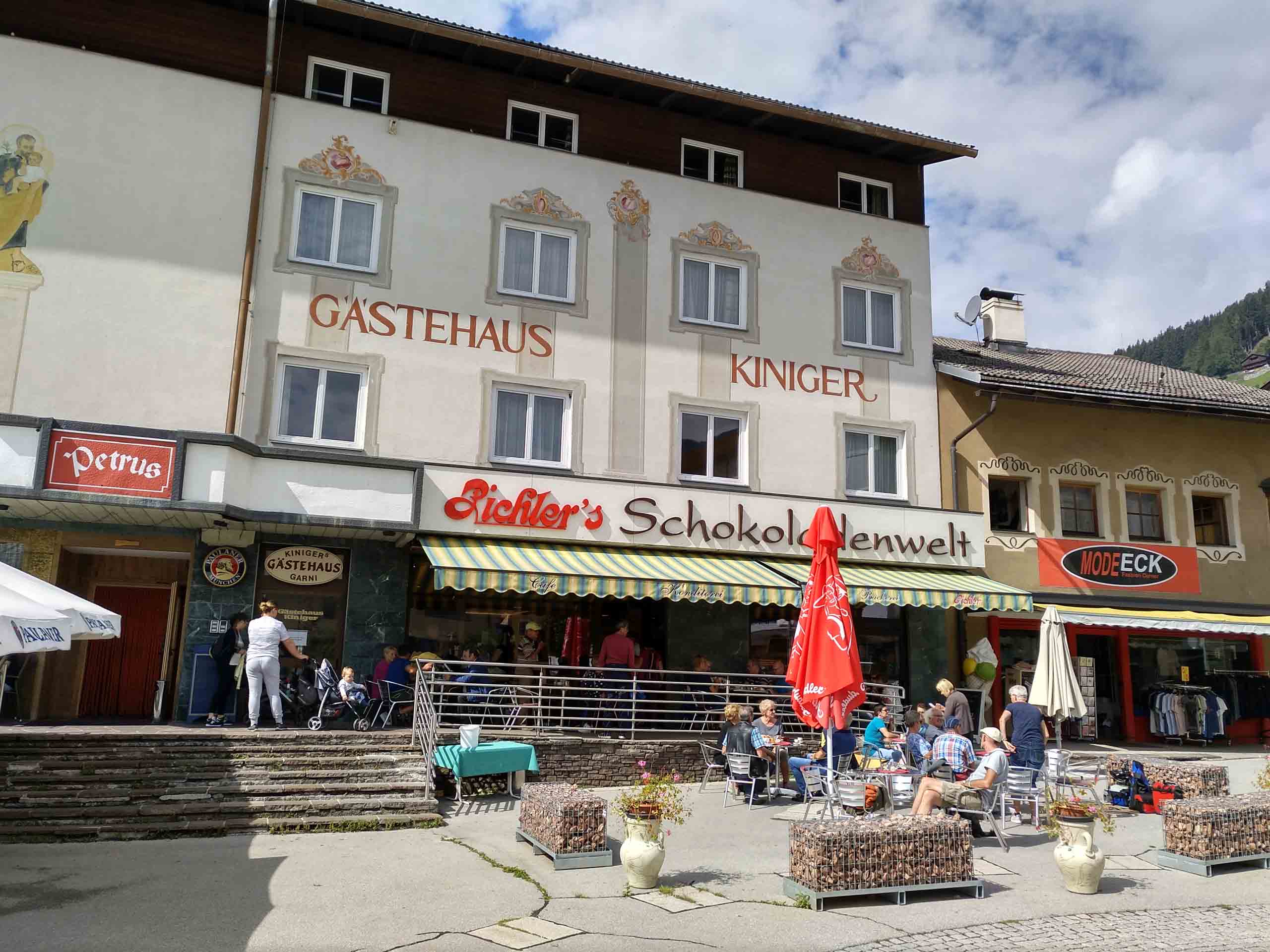 Am Donnerstag lautetet das Etappenziel Lienz in Österreich. Zunächst radelten wir zur Drau-Quelle und weiter entlang des sehr gut ausgebauten Drau-Radwegs durch Innichen nach Sillian. In Sillian halfen uns zwei Jungs, die Pichler Schokoladenwelt zu finden. Wir hatten uns die Manufaktur zwar wesentlich größer vorgestellt, doch die Schokolade schmeckte vorzüglich! Die in der Nähe befindliche Loacker Genußwelt (Waffelfabrik) ließen wir dann aber doch links liegen.