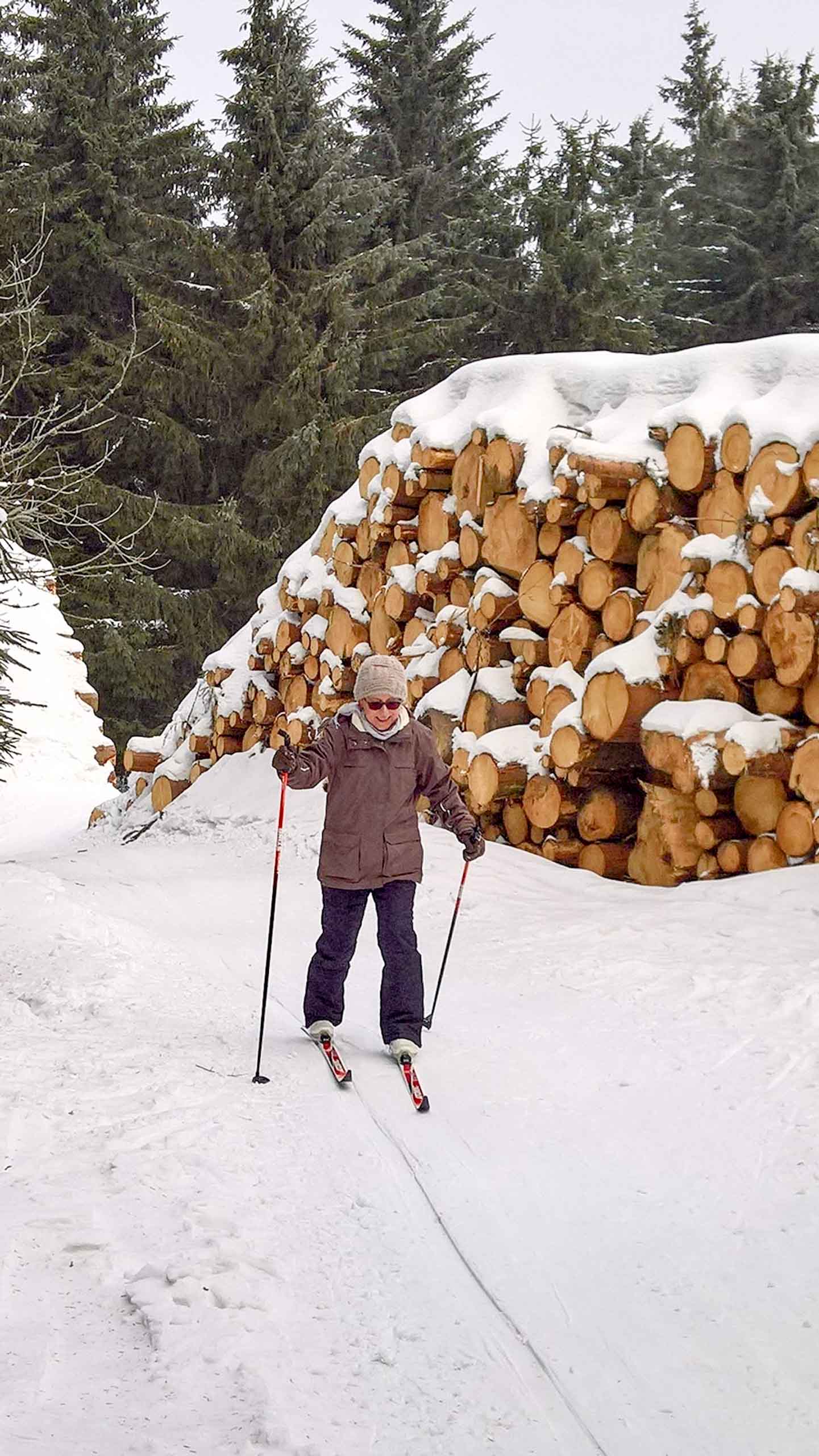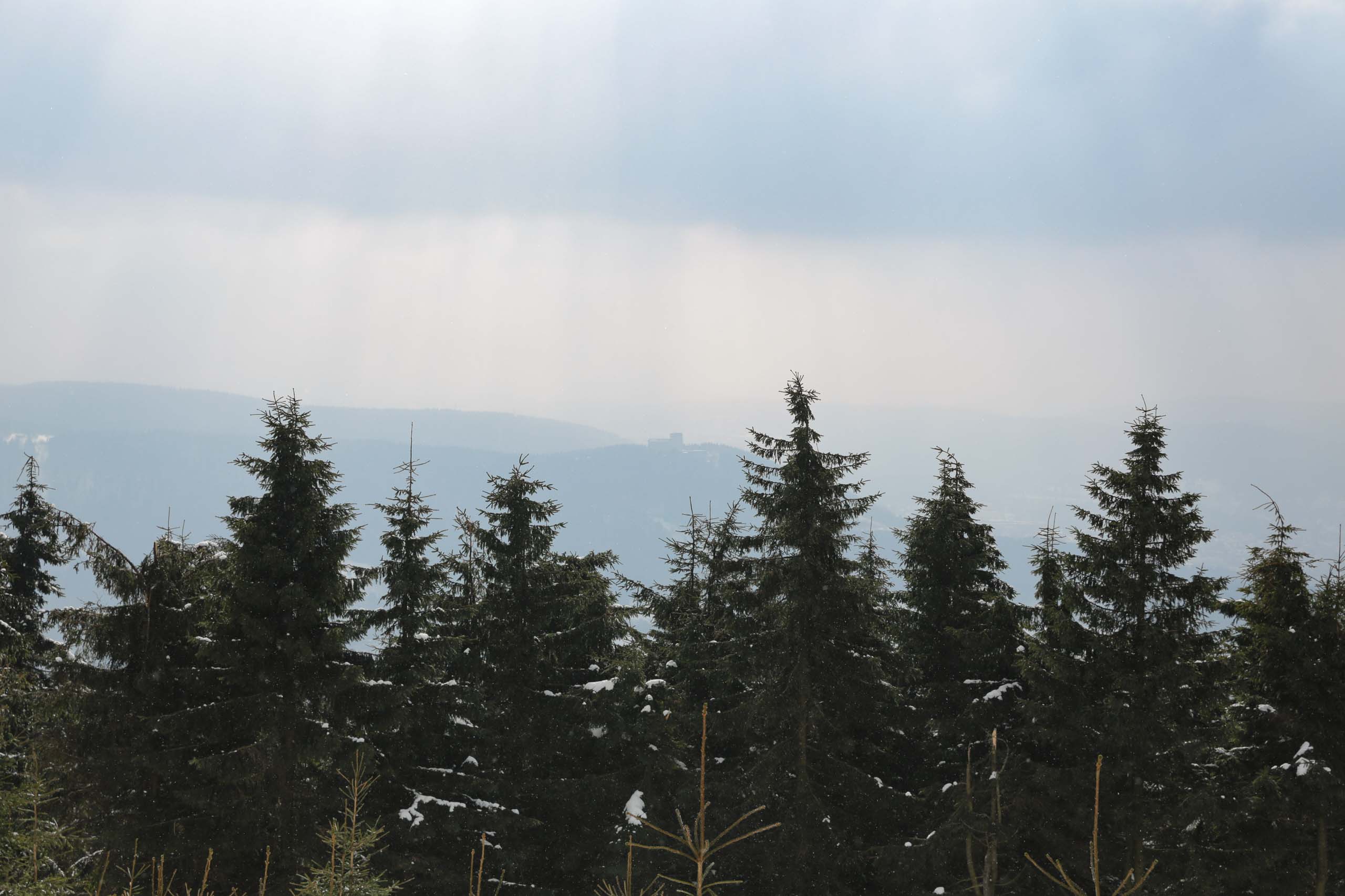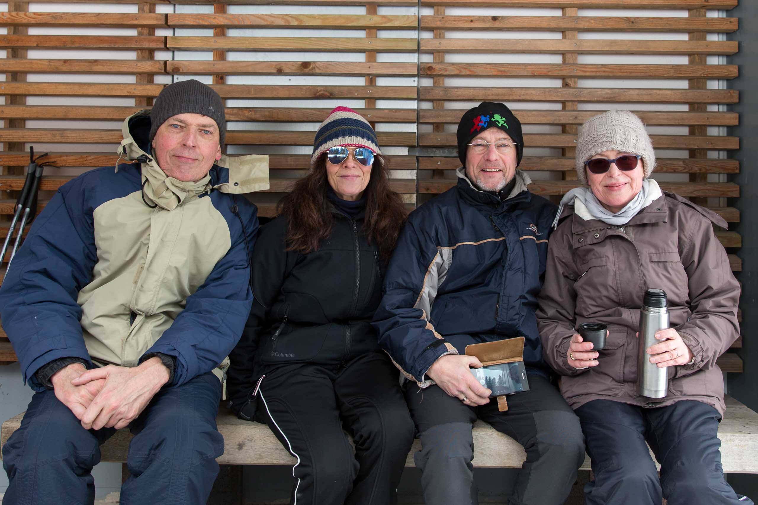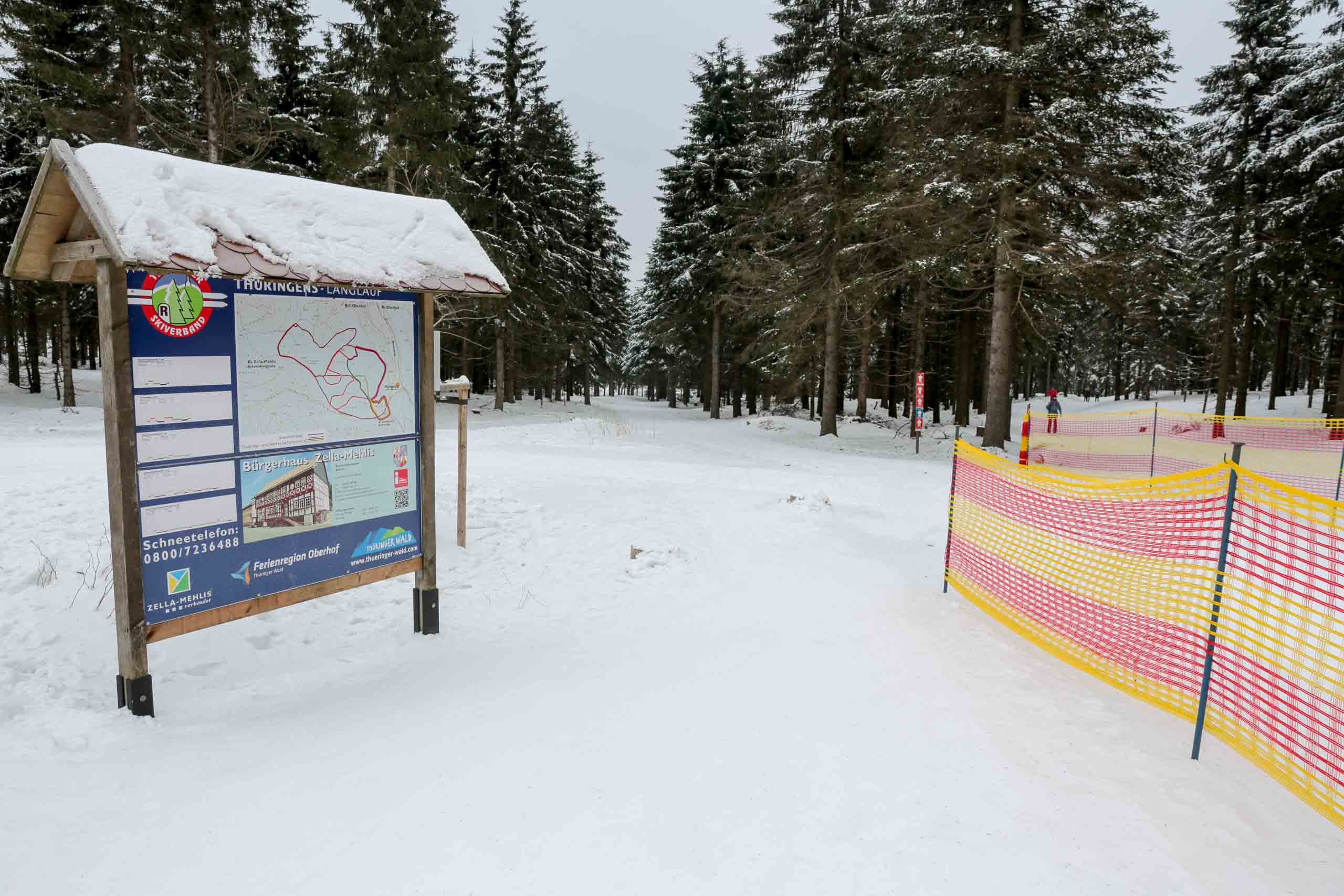 Hans und seine Schwester warteten bereits am vereinbarten Treffpunkt. Im Freien herrschten -8°C bei schneidendem Nordwind, der uns anfangs etwas Sorgen bereitete. So wählten wir eine Route durch den geschützten Wald und nicht entlang der Kammlage. Trotzdem brauchten wir eine ganze Weile, um endlich auf Betriebstemperatur zu kommen. Mit einigen kleinen Pausen liefen wir bis zu Plänckners Aussicht am Großen Beerberg. Mit 982,9 m ist dieser Berg die höchste Erhebung Thüringens. Leider war die Aussicht nicht wie erwartet und so zogen wir bald weiter bis zur Suhler Hütte. Dort fanden wir noch ein Plätzchen für unsere ausgiebige Mittagspause mit Linsensuppe. Anschließend ging es auf ähnlichem Weg zurück zum Oberhofer Rondell. Bei Kaffee und Eis haben wir 4 uns noch sehr gut unterhalten, bevor wir uns wieder auf die Heimreise machten. Auf der Autobahn trennten sich dann wieder unsere Wege. Bleibt abschließend der Wunsch, dass es nicht wieder 13 Jahre braucht, bis wir diese Langlaufstrecke erneut absolvieren!