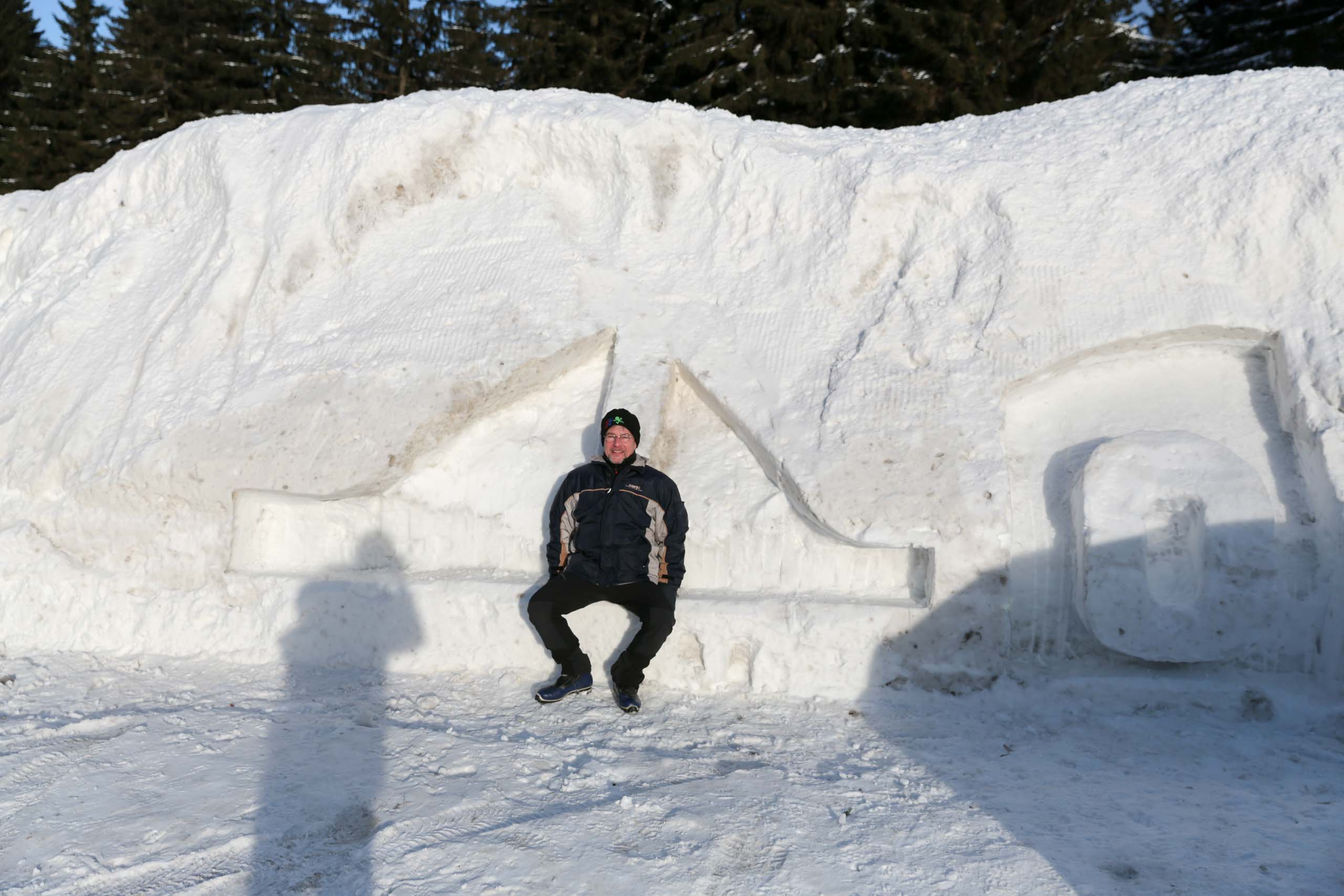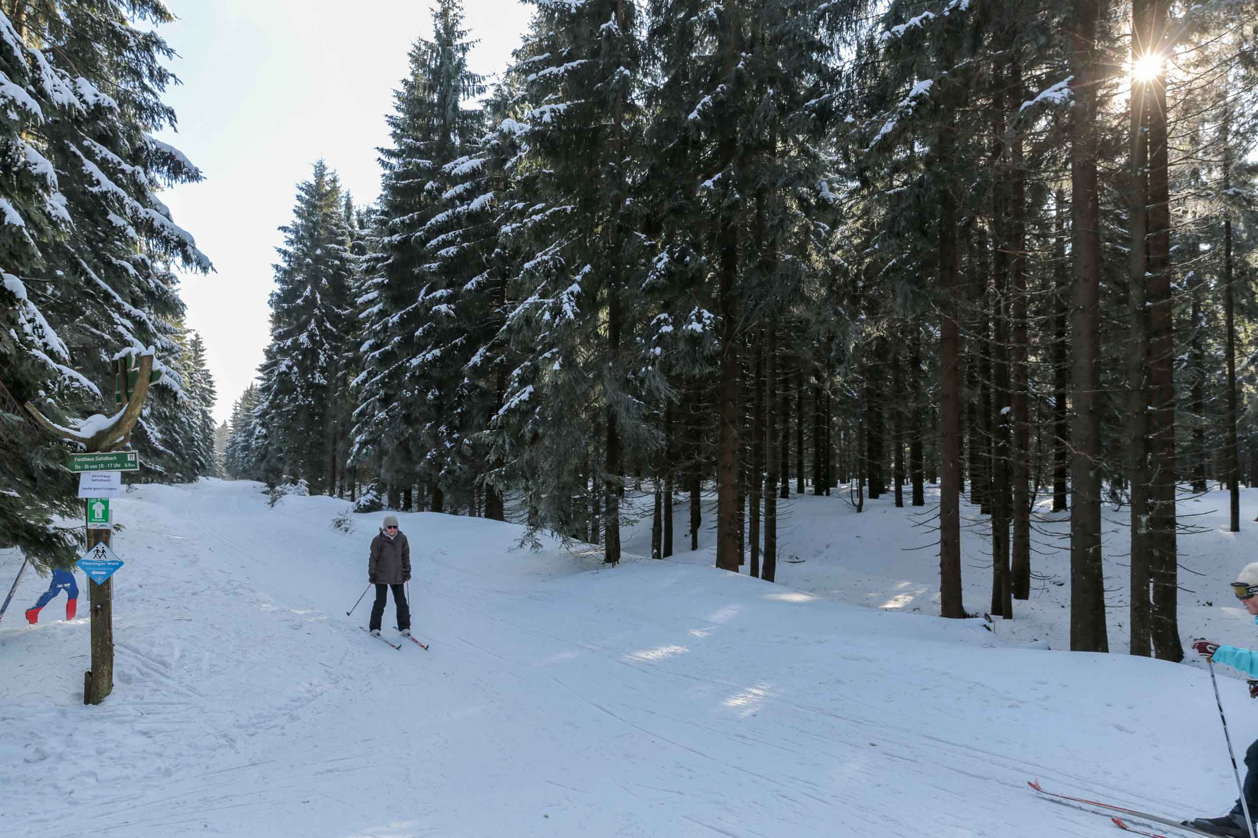 Gleich nach dem Frühstück waren wir nur wenig später auf der Autobahn und bereits nach 90 Minuten fuhren wir in den Rennsteigtunnel. Nach der 8 km-Durchfahrt fanden wir uns in einer sonnigen Winterlandschaft wieder und kamen uns vor wie bei Frau Holle...