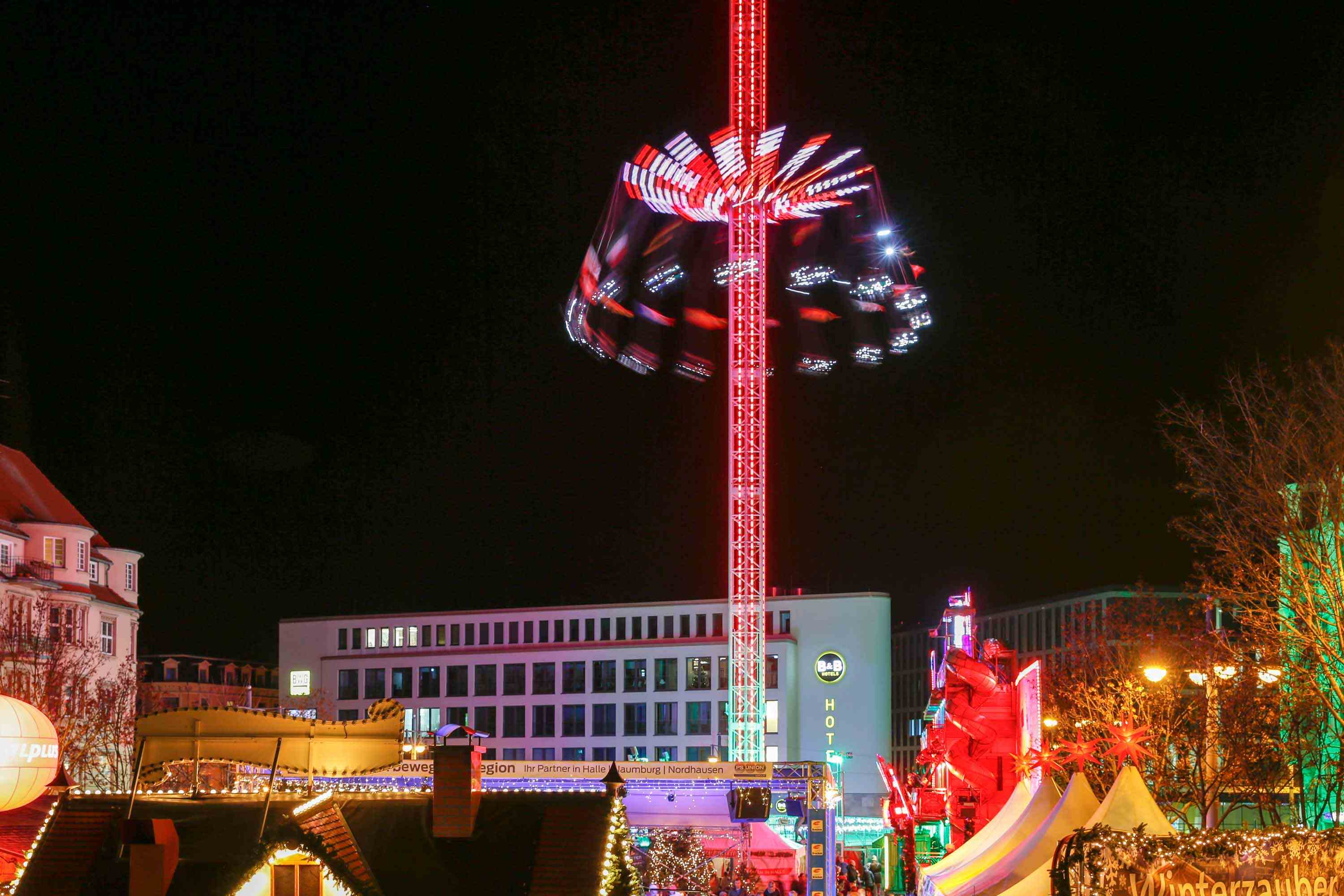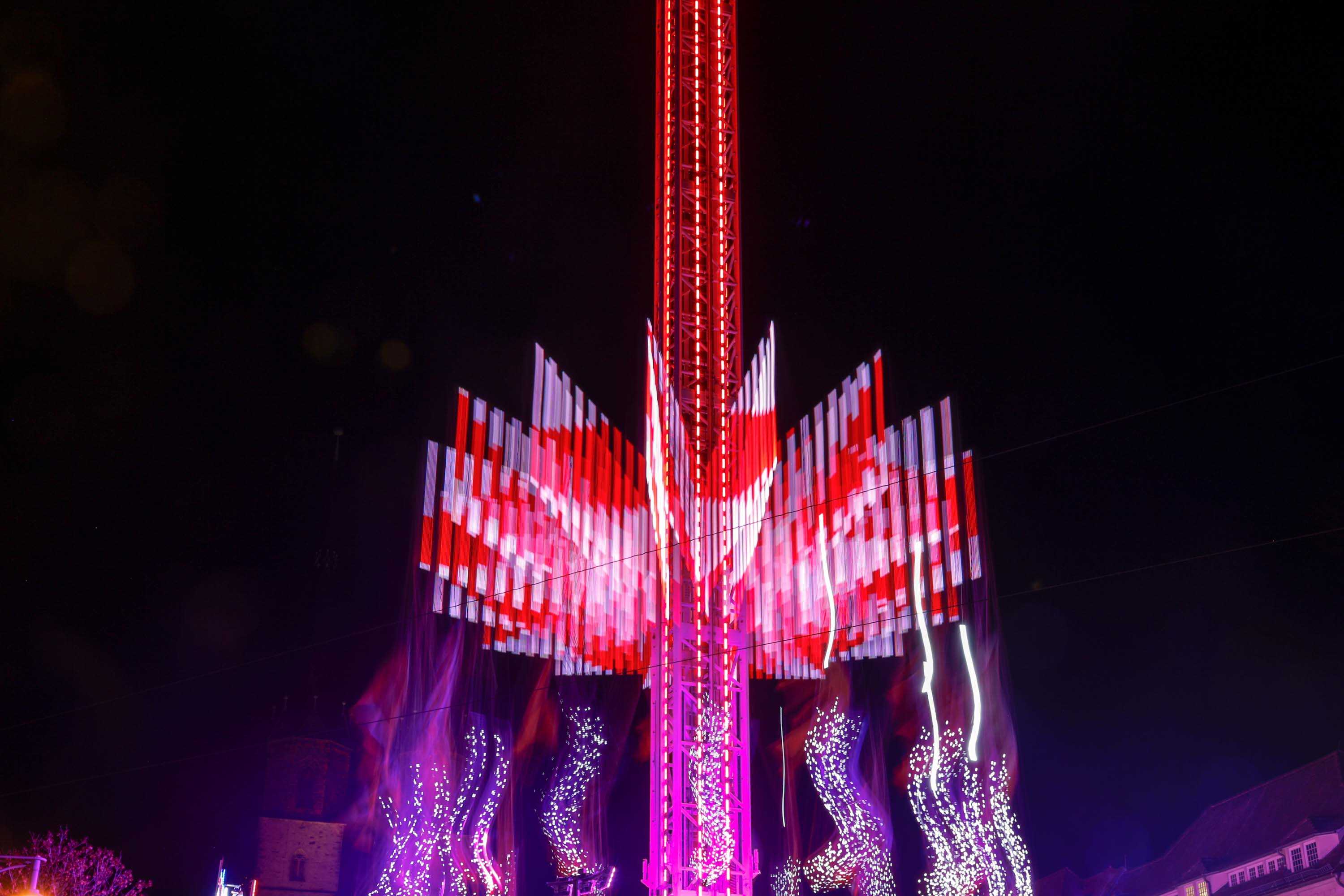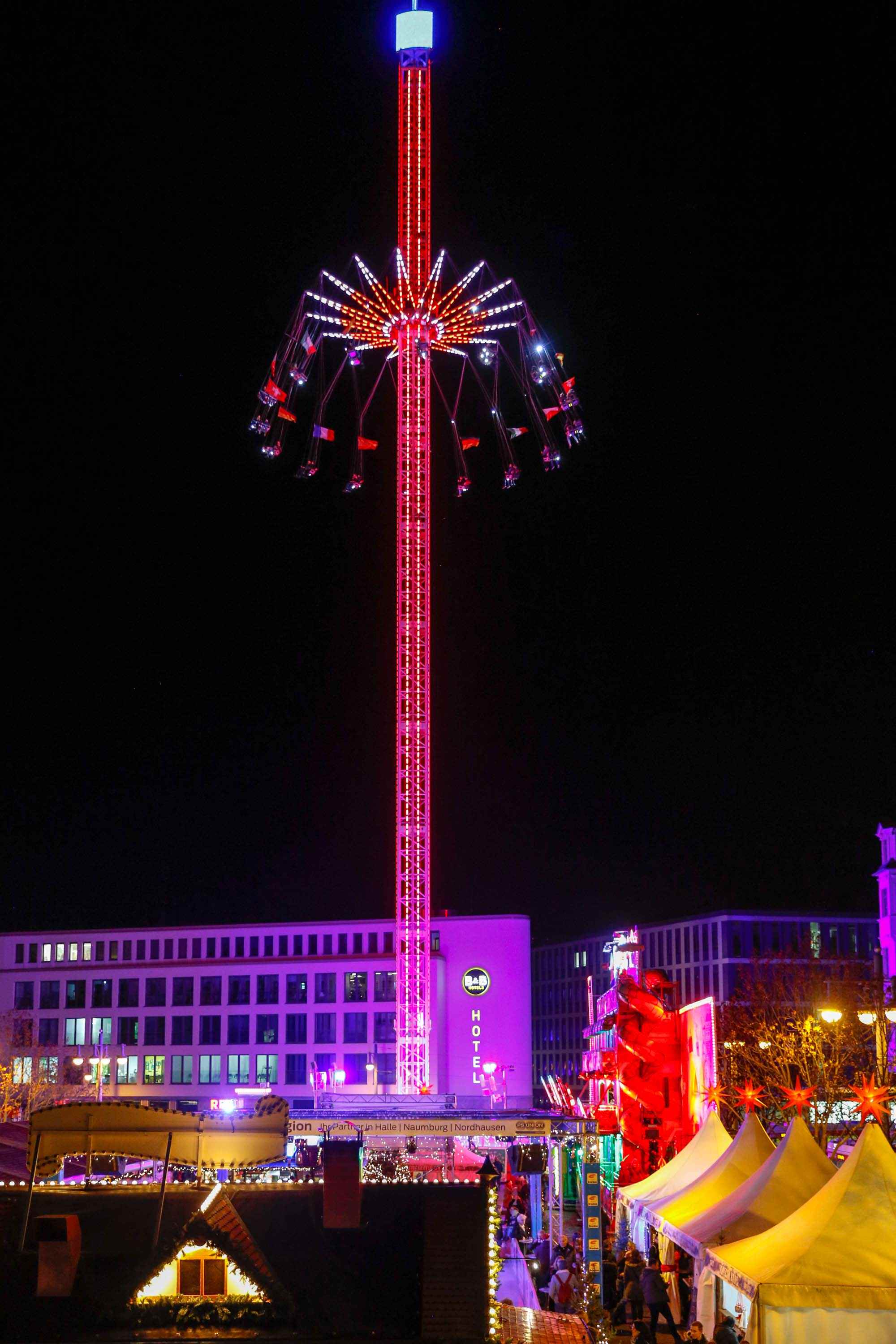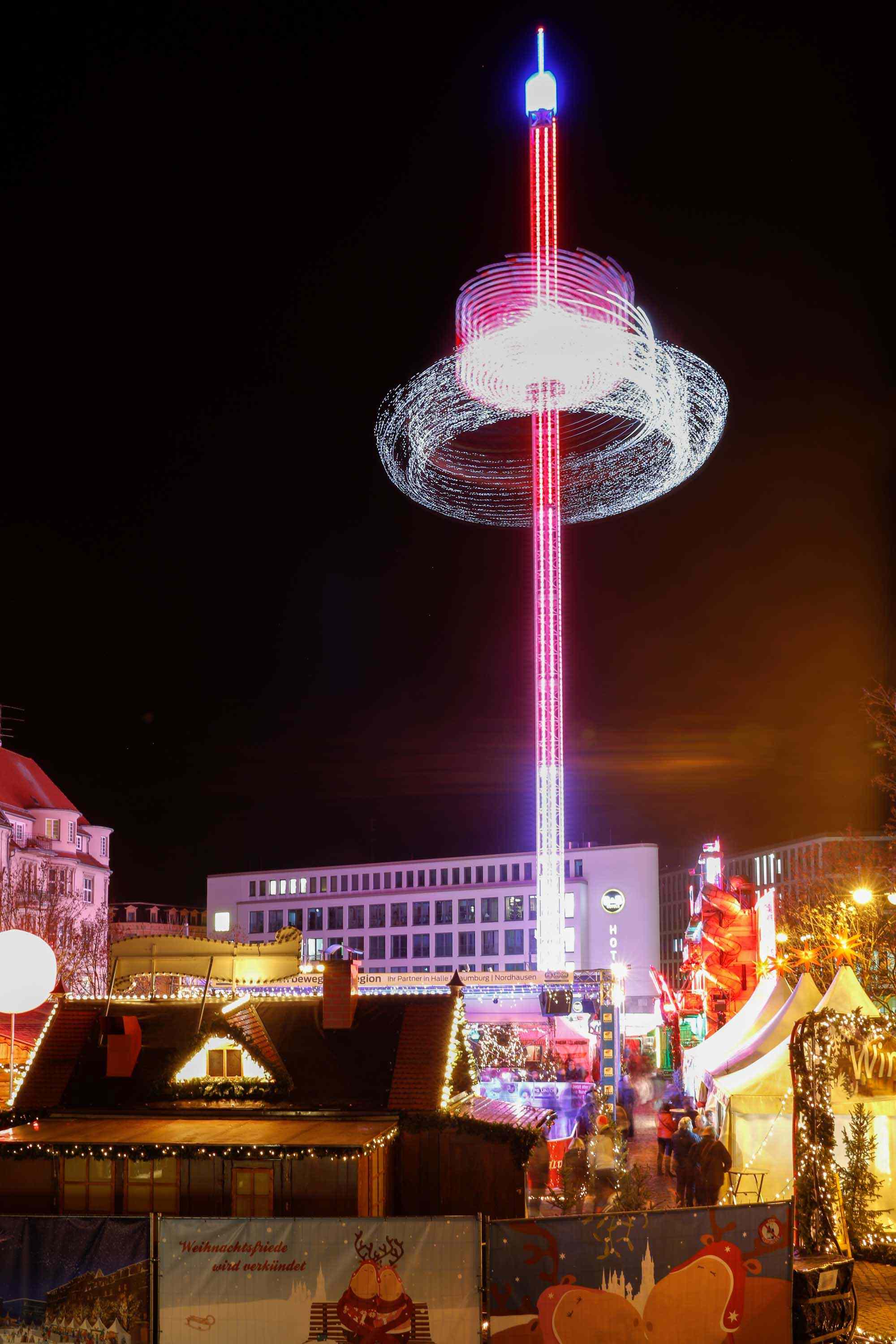 2019 gab es mit dem Aufbau des größten mobilen Karussels (immerhin 80m hoch) eine kleine Sensation auf dem Weihnachstmarkt. Leider haben wir es verschiedenen Gründen (Erkältung, Wetter, Zeitmangel) nicht geschafft, einmal mitzufahren.