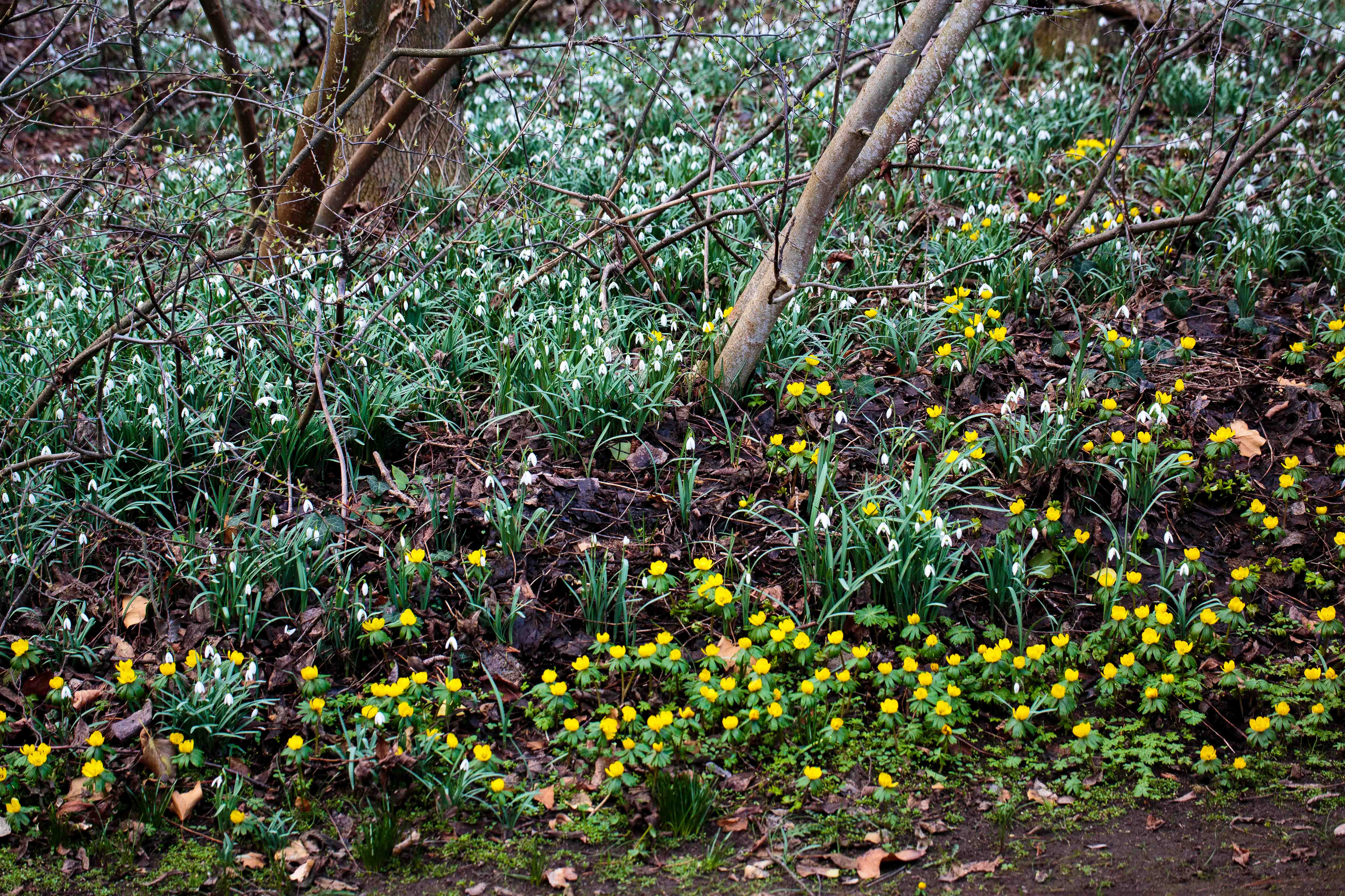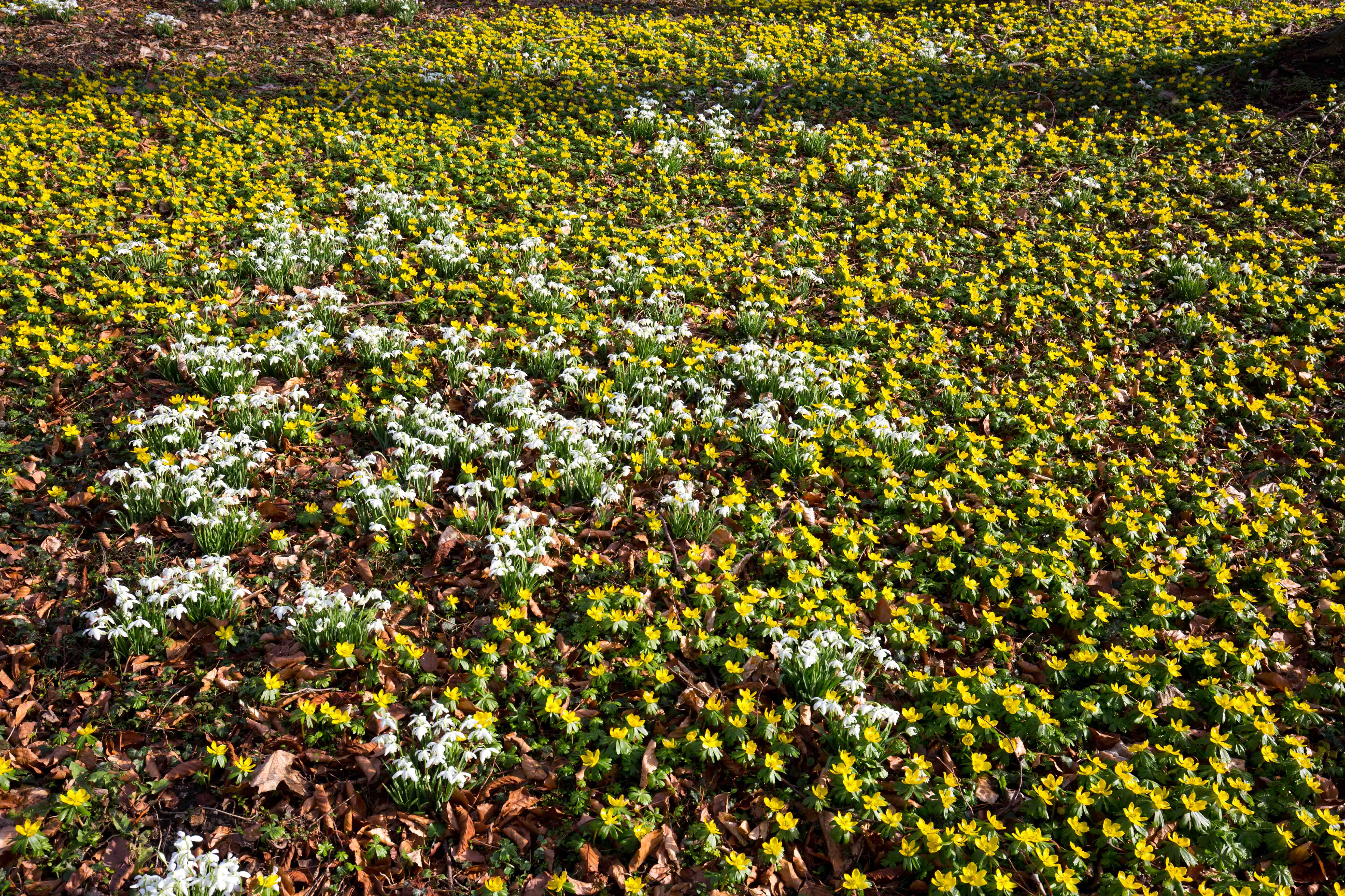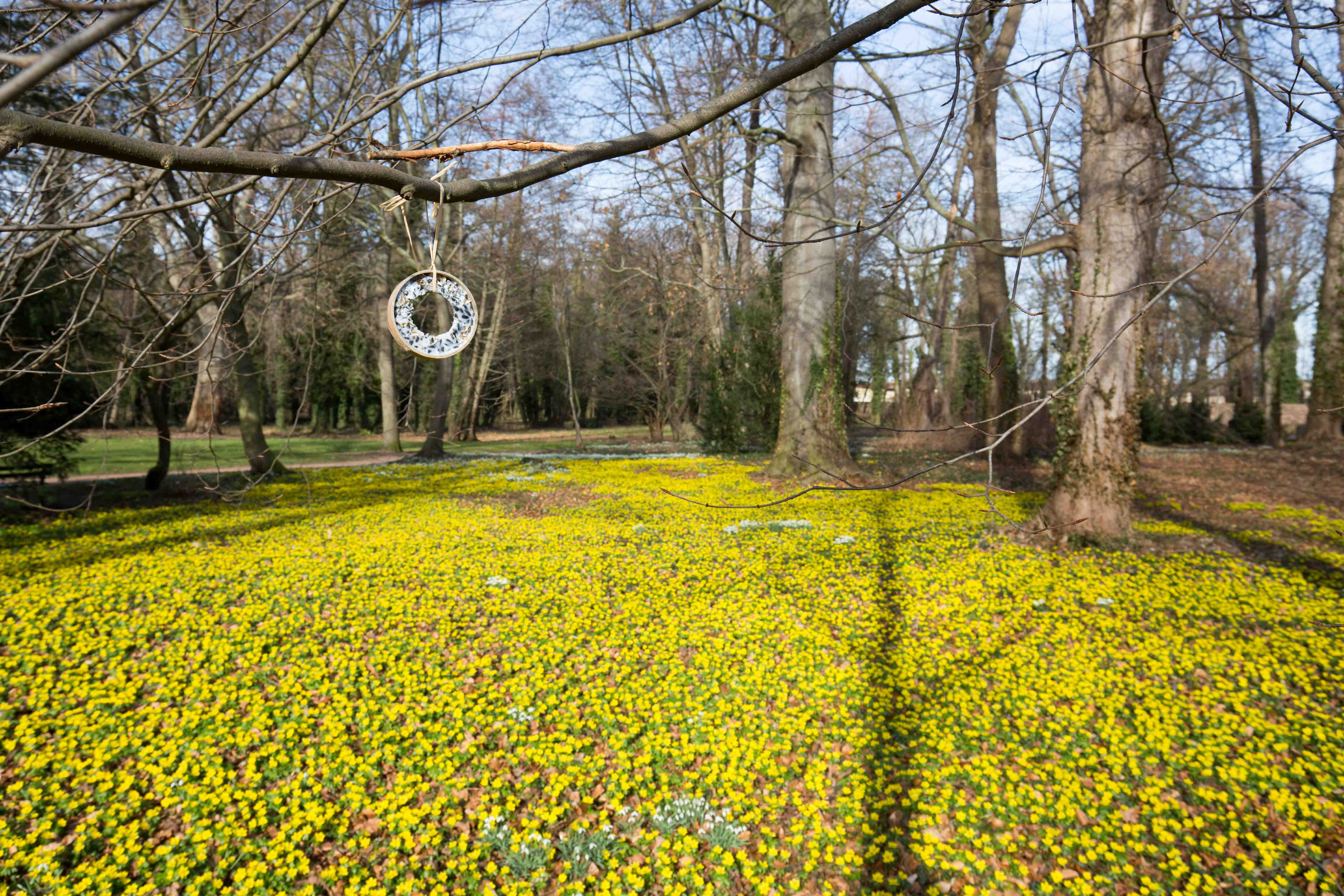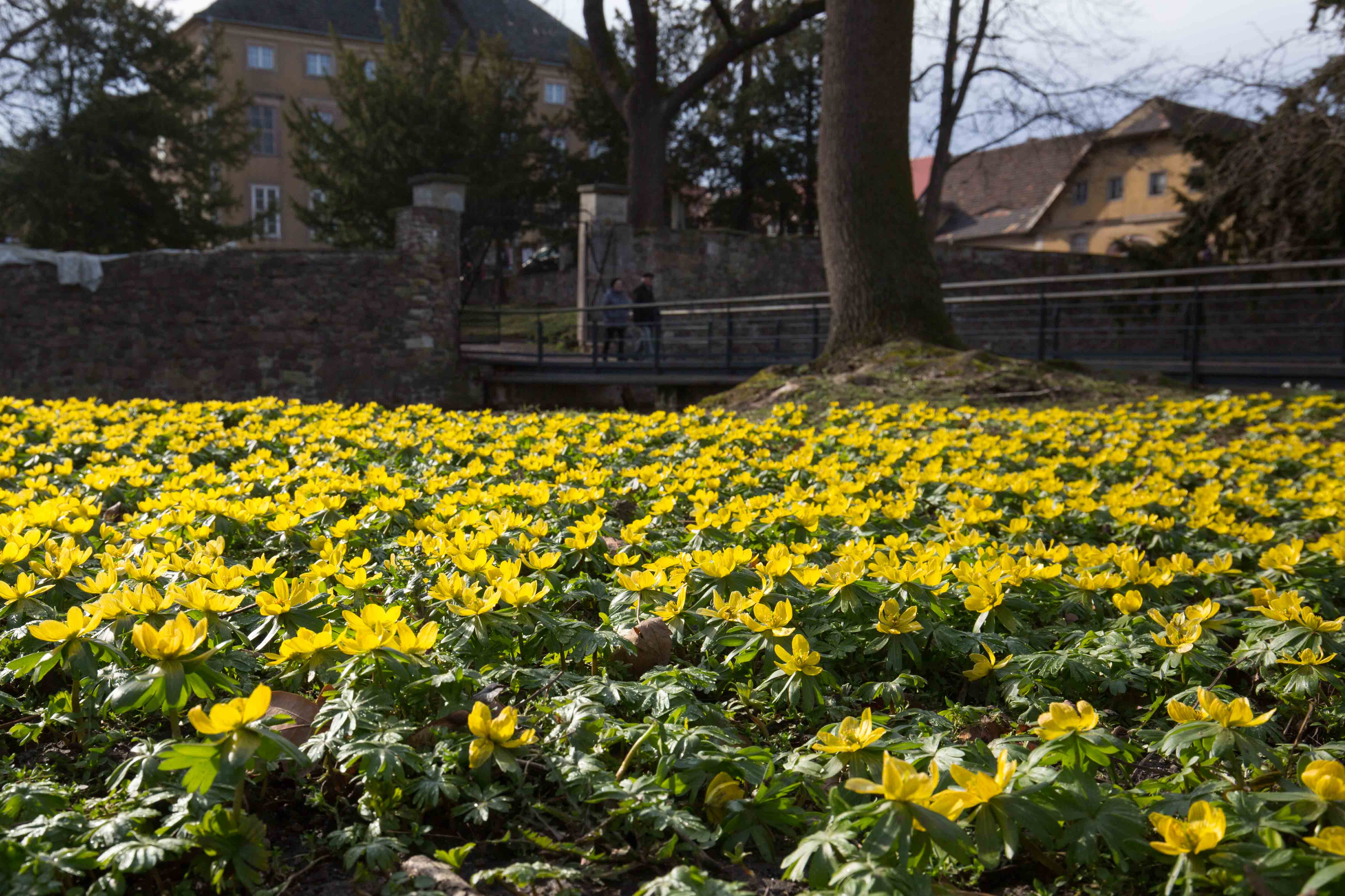 Der Park des mächtigen Barockschlosses Ostrau beeindruckt mit einer Fülle an fremdländischen Gehölzen. Um 1700 als Barockgarten angelegt, wurde er rund 60 Jahre später zu einem Landschaftspark umgestaltet. Gedenksteine und Gräber im Park erinnern an die von Veltheims als Parkeigentümer, die über die Jahrhunderte den heimischen Gehölzbestand erweiterten. Durch den verwunschenen Park ziehen sich Wassergräben und Teiche, Rundwege laden zum Entdecken ein. Schon Im Februar begeistern die gelben Blütenteppiche der „Winterlinge“ die Besucher. Derzeit kann man sie noch in Gesellschaft von Krokussen und Schneeglöcken bewundern.