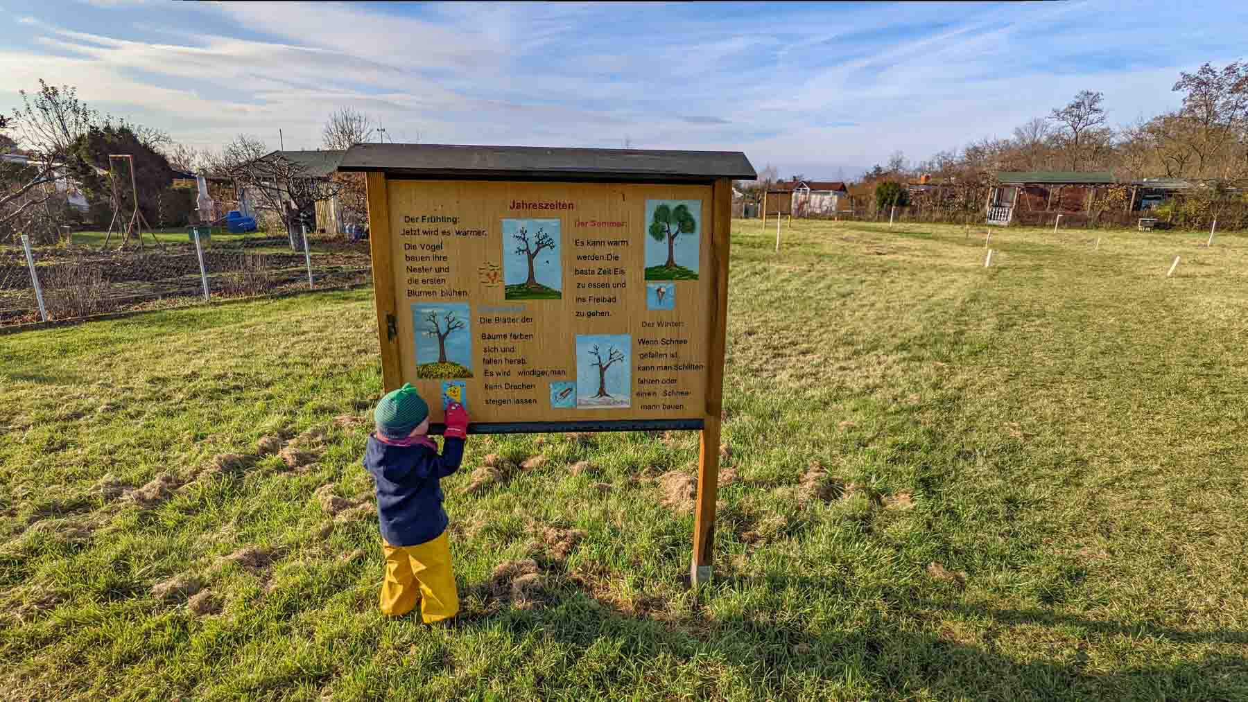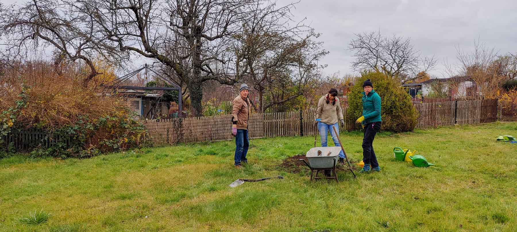 Seit Jahrzehnten liegt die große Wiese neben unserem Garten 26 brach. Zufällig haben wir erfahren, dass einige Freiflächen in der Anlage zu einer ökologischen Zone innerhalb der Nutzungsflächen entwickelt werden sollen. Blühende Sträucher und krautige Pflanzen sollen als Rückzugsraum und Nahrungsquelle für möglichst viele Tierarten dienen, wie zum Beispiel für die Zauneidechse, die Holzbiene oder bodenbrütende Vögel wie die Haubenlerche. Teile dieses "Grünen Korridors" wurden bereits realisiert.