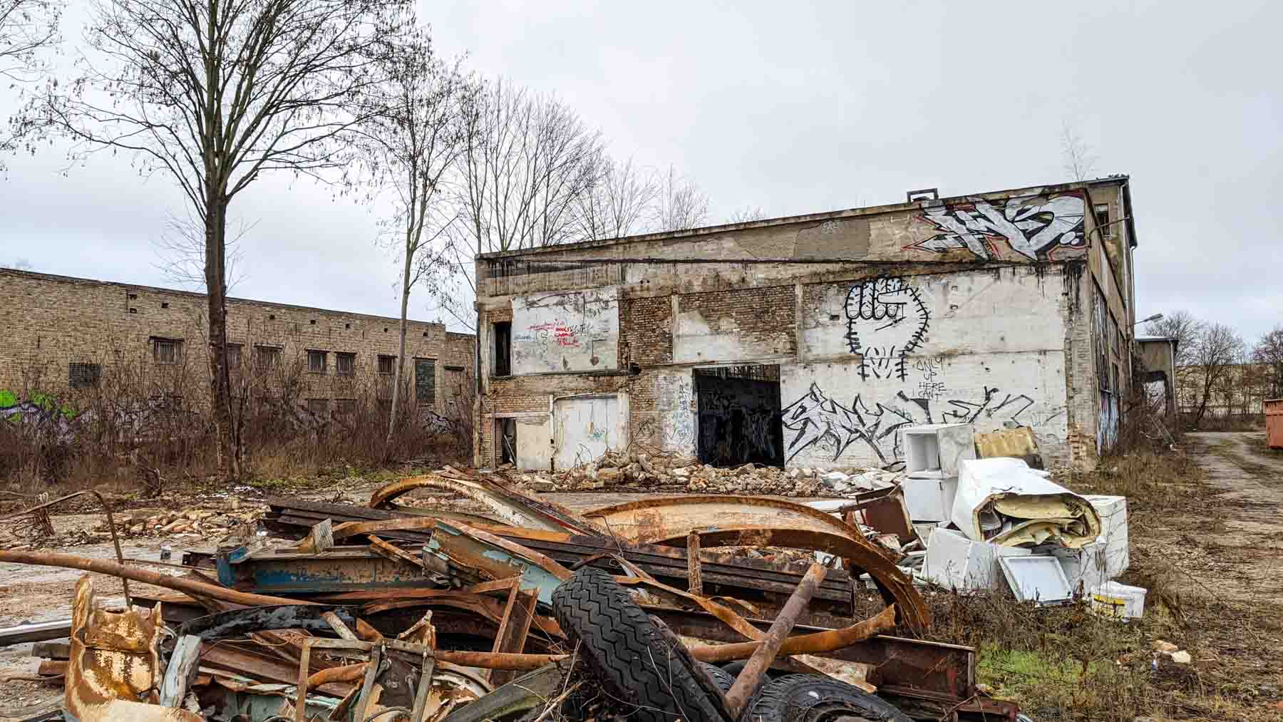 30 Jahre nach der Wende sieht es nördlich der Wilhelm-Busch-Straße in der Frohen Zukunft noch nicht danach aus. Im Oktober 2020 hat man allerdings begonnen, die vielen alten Industriehallen auf dem Geländes des ehemaligen VEB Industriewerk Nord bzw. VEB Baumaschinen Halle abzureißen.