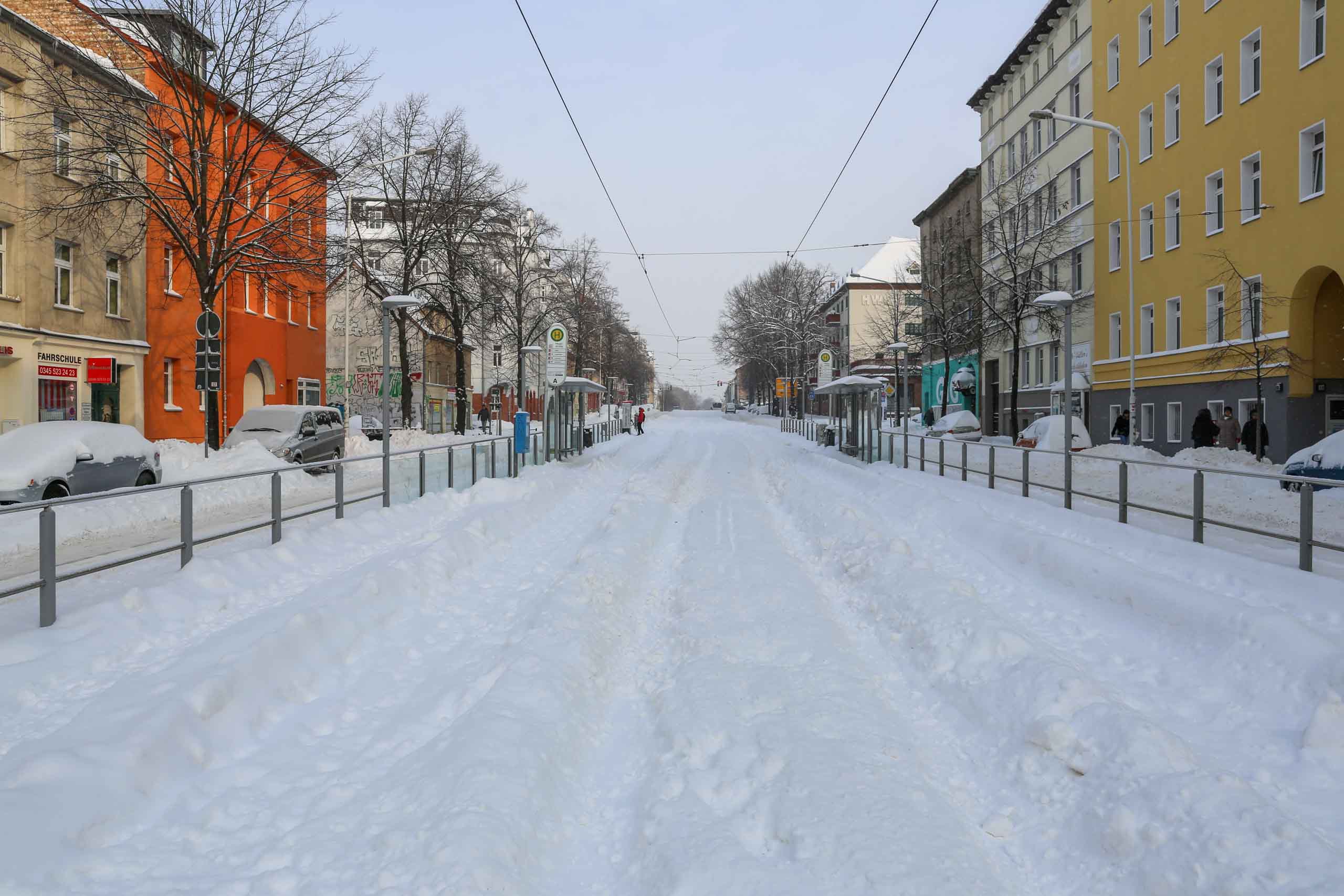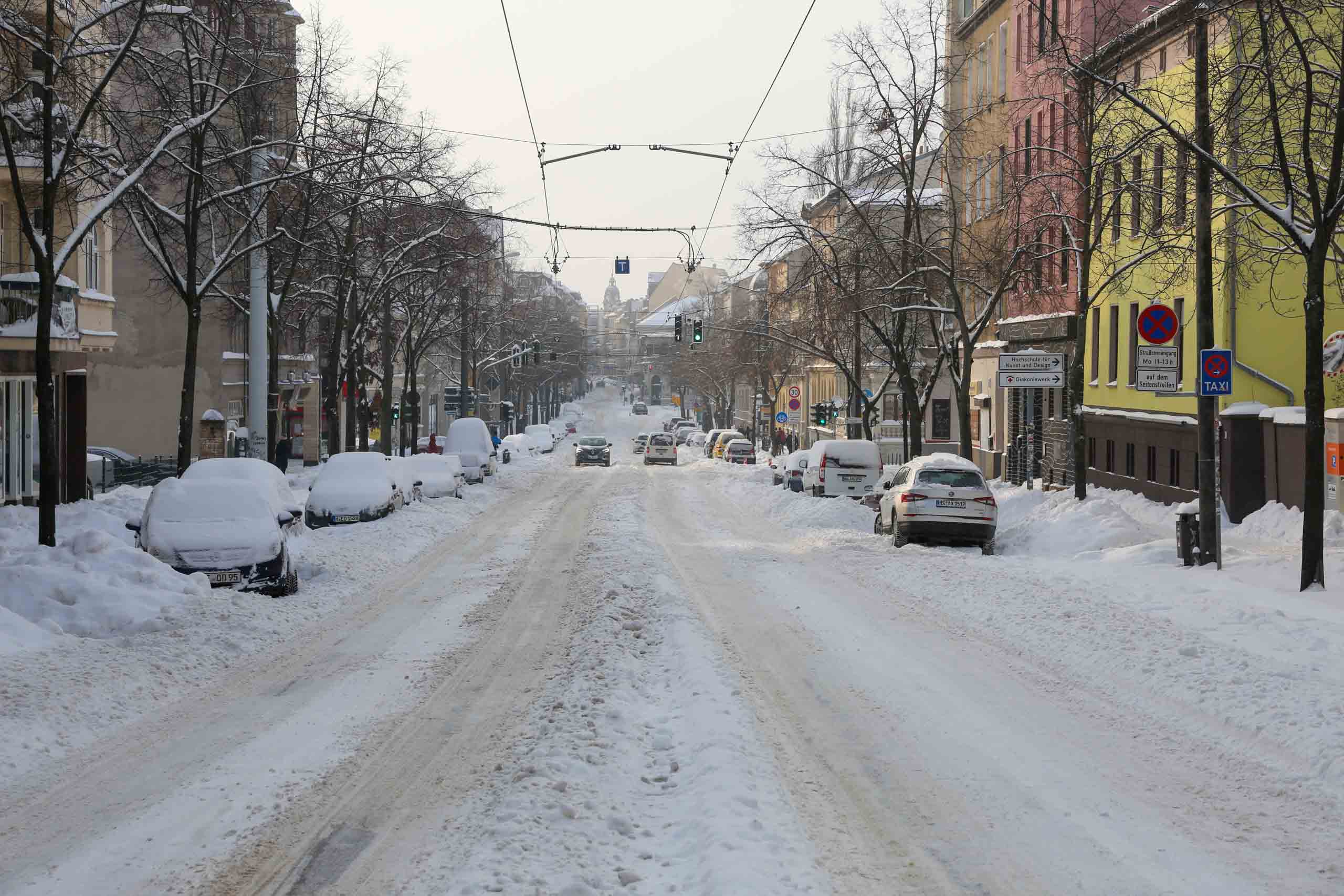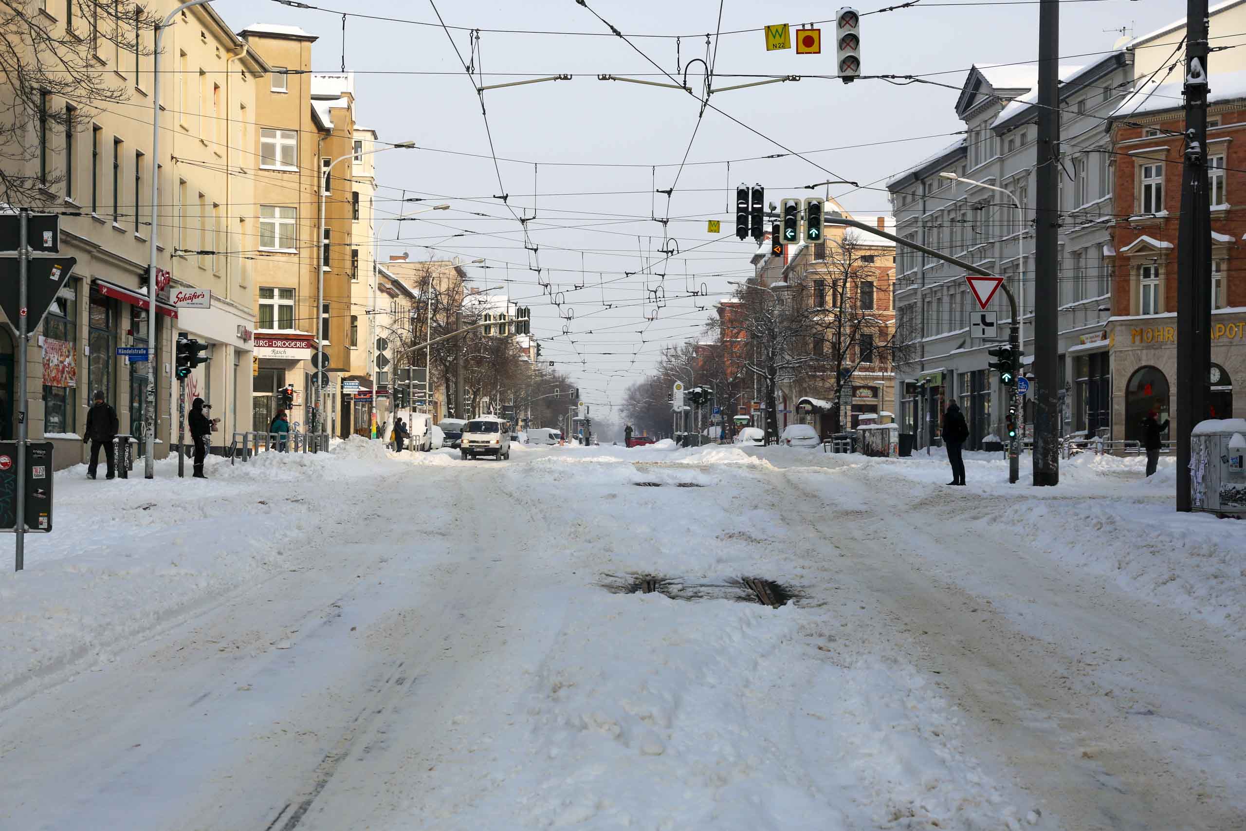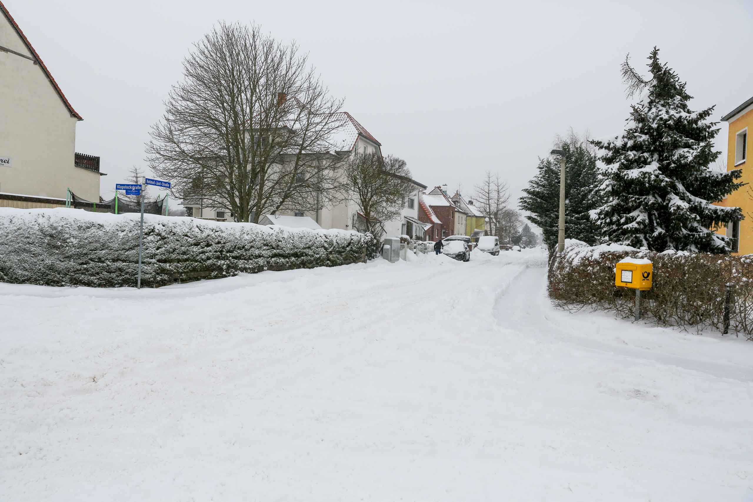 Schließlich zeigte sich tagsüber die Sonne über den verschneiten Straßen Halles und bot einen selten gewordenen Anblick.