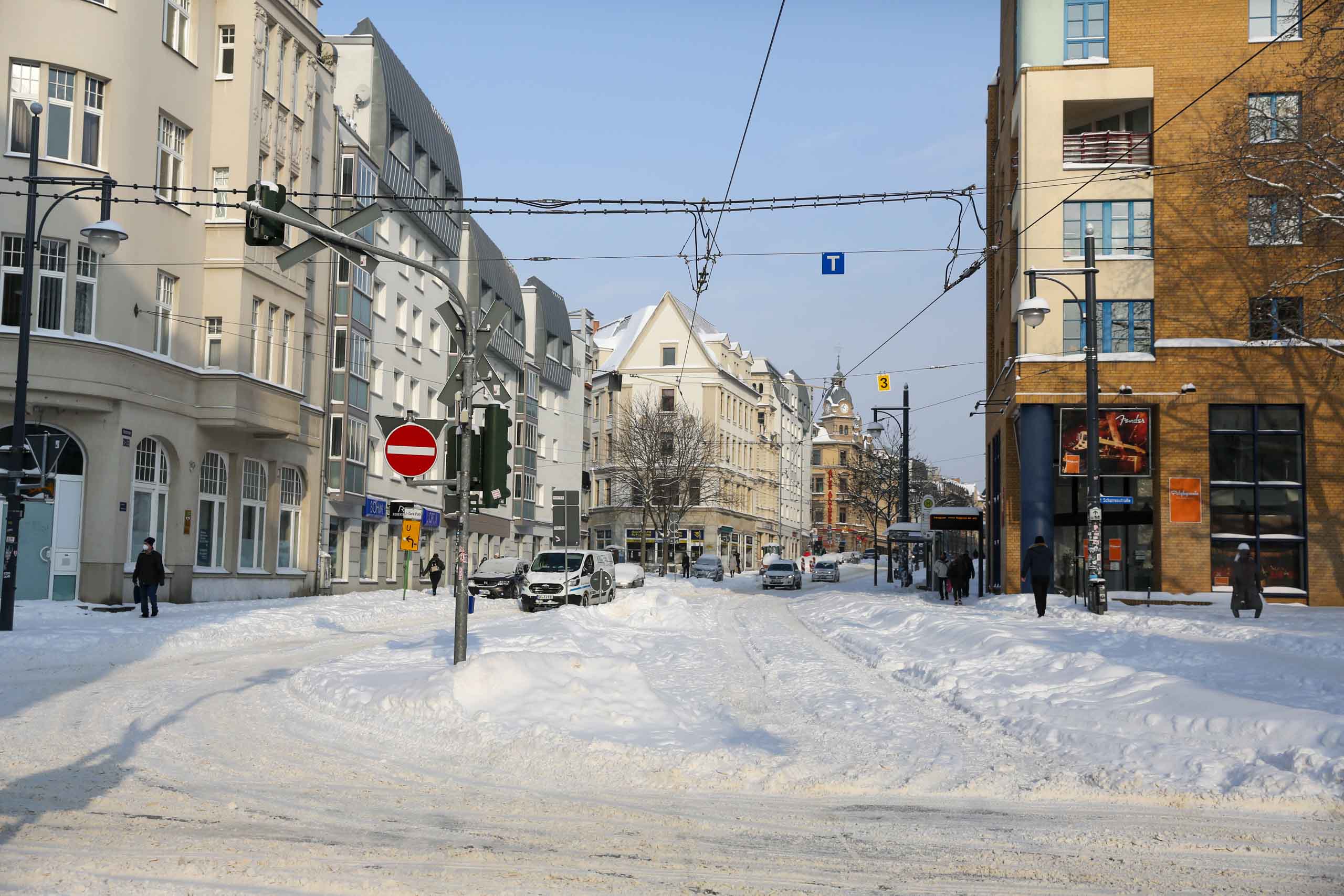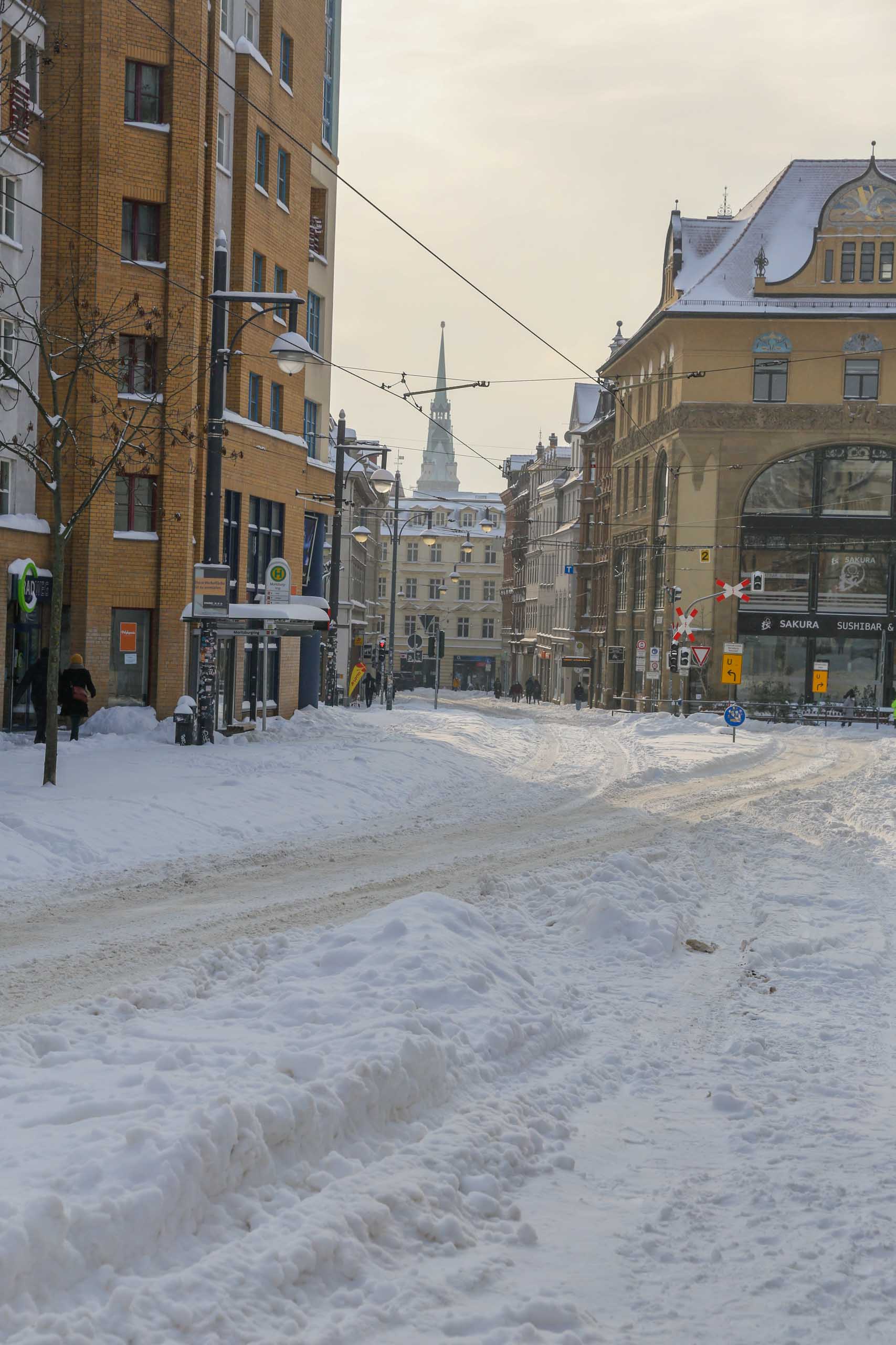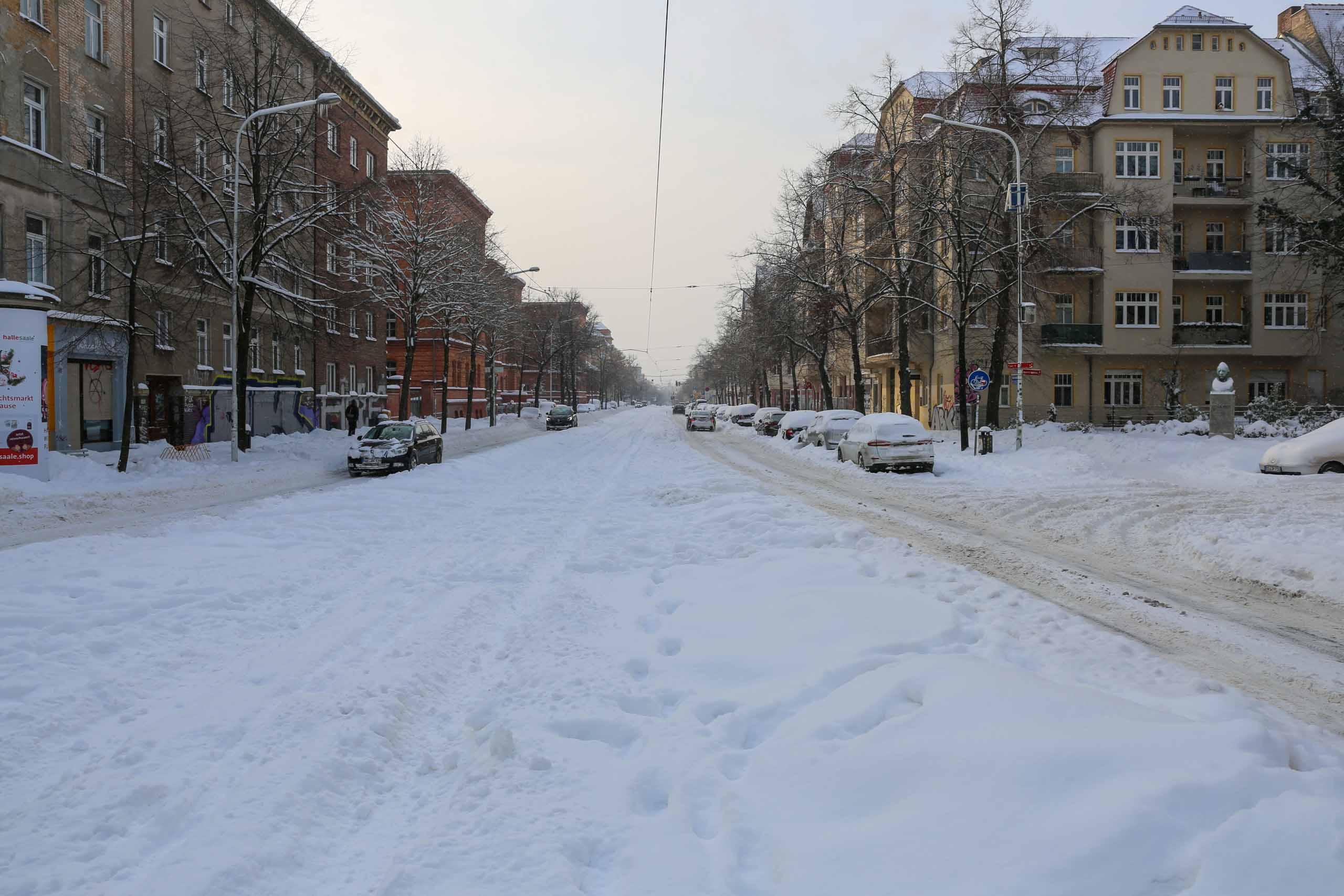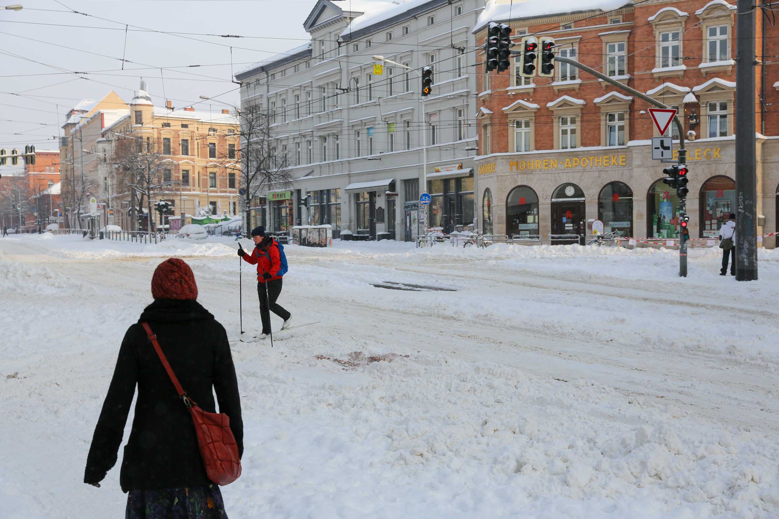 Im total verschneiten Gleisbett der Straßenbahn in der Reilstraße zogen viele Skiläufer ihre Lopie bis in die Innenstadt hinein. Wirklich sehr schön!