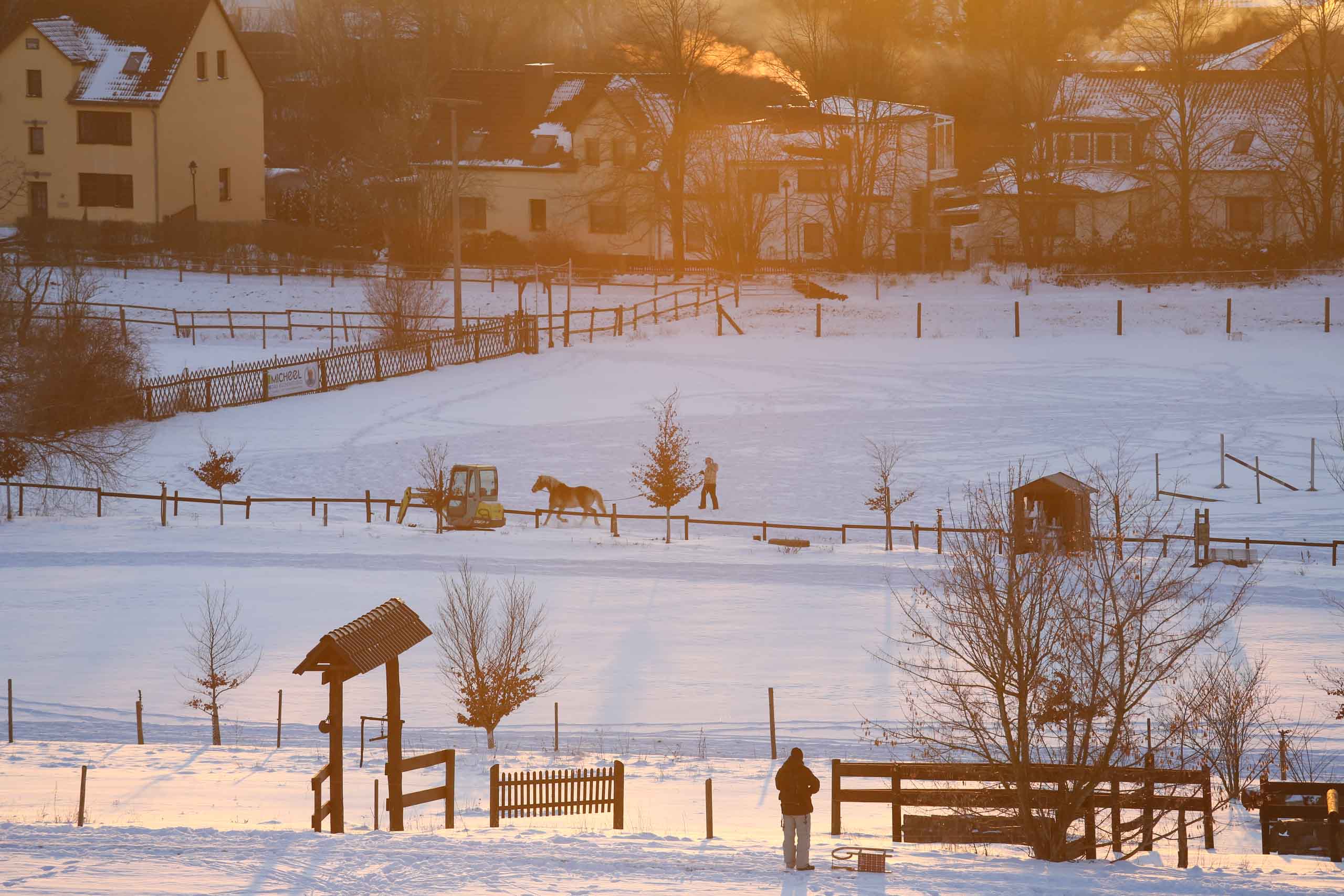 Am Dienstag ließen die Schneefälle dann größtenteils nach, in den Nächten herrschte allerdings klirrender Frost, häufig unter minus zehn Grad, in Schönstedt bei -20°C - Mühlhausen sogar bei -26°C.