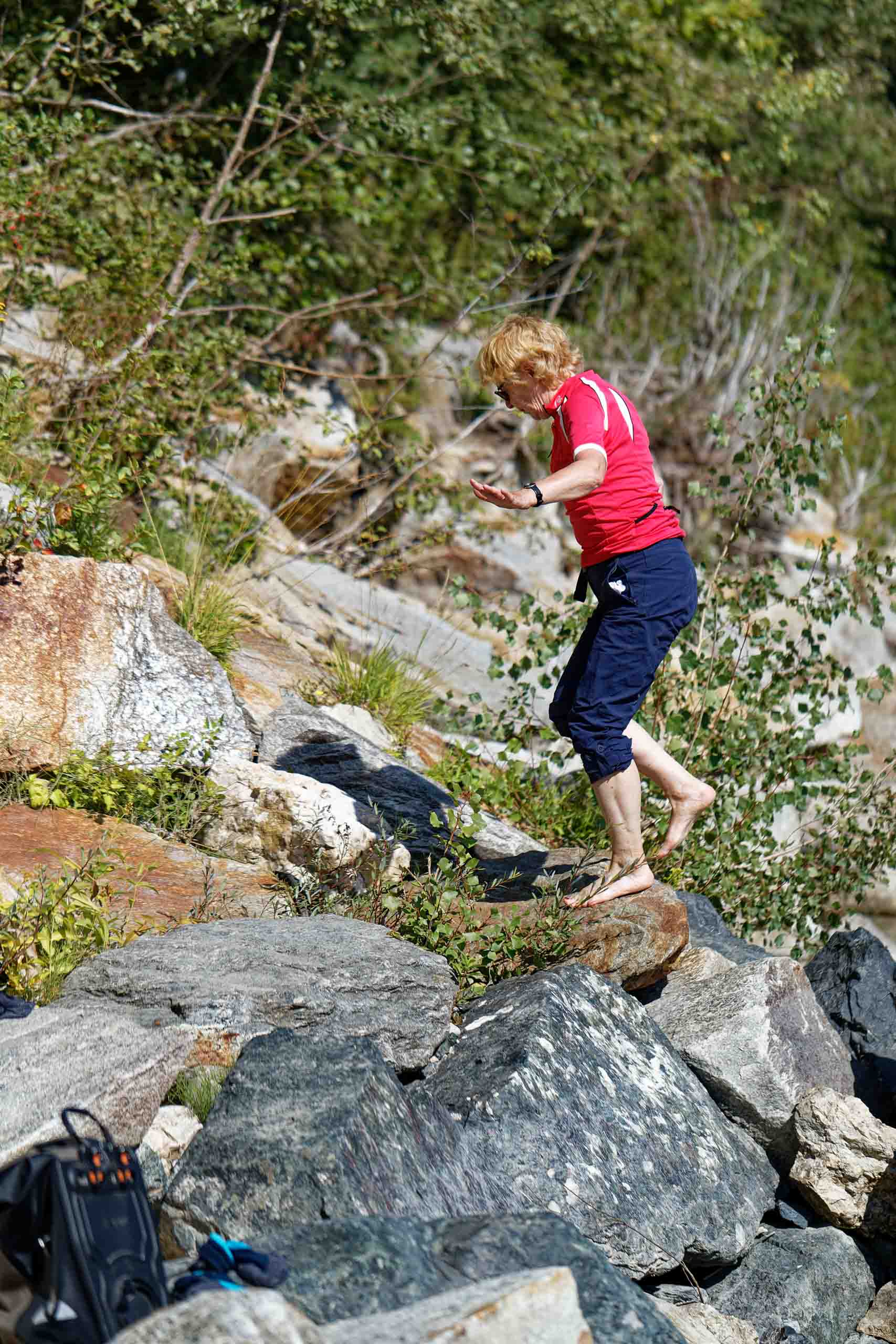 Auf Empfehlung unseres Transfer-Fahrers wichen wir von der Standardroute ab und mussten dafür ziemlich lange und steil bergan radeln: Planica ist berühmt für seine Skisprung- und Skiflugschanzen und wird daher auch „Tal der Schanzen“ genannt. Einige Schanzen werden tatsächlich auch im Sommer genutzt. Wir konnten mit einem Sessel-Lift ganz nach oben fahren und uns so etwas in die Perspektive der Springer versetzen.