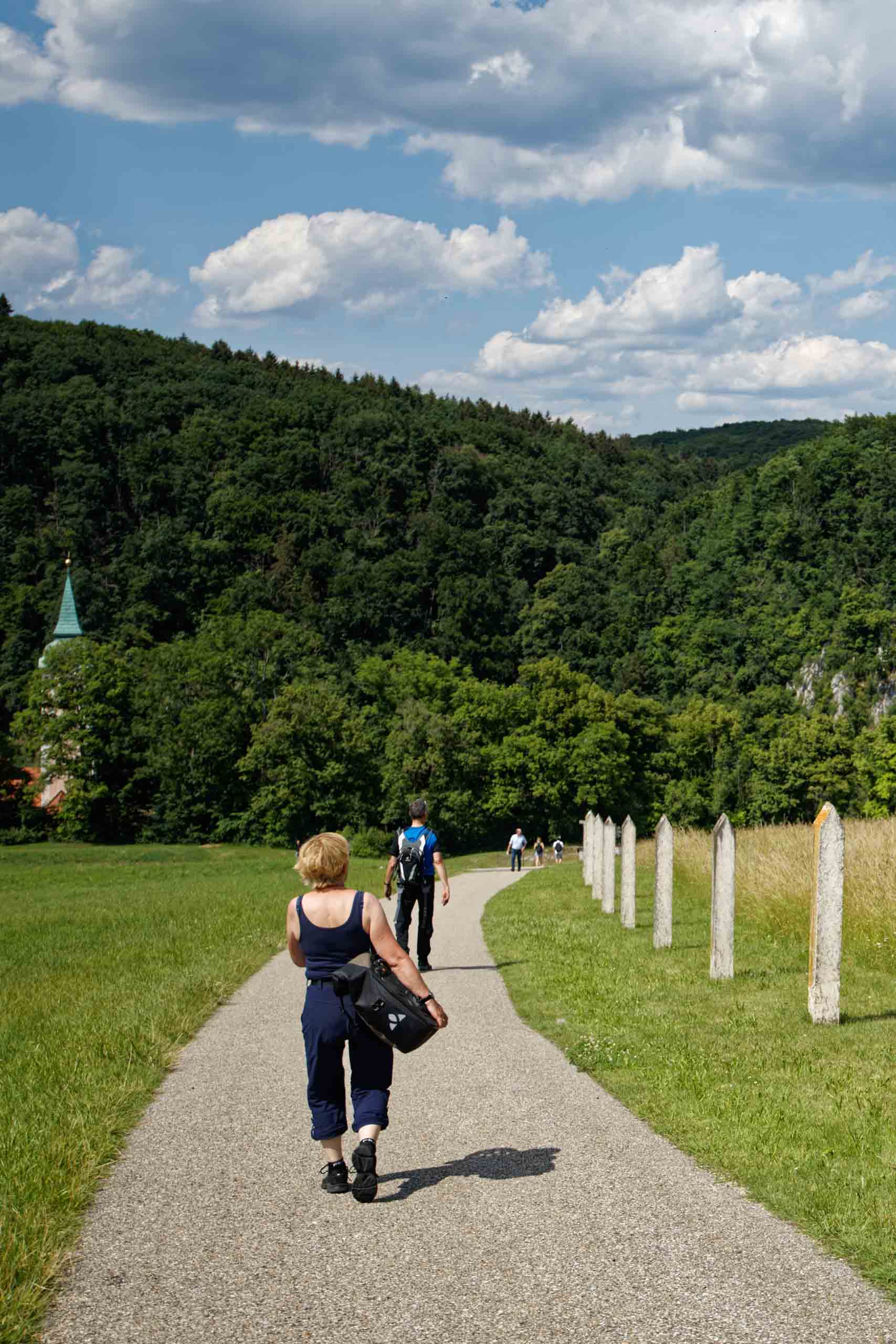 Weltenburg beherbergt die älteste Klosterbrauerei der Welt. Obwohl man dort laut Reiseführer unbedingt ein Bier trinken soll, verzichten wir in Anbetracht von Temperatur und Tageszeit auf dieses Vergnügen und radeln gemütlich bis zum heutigen Tagesziel nach Abensberg.