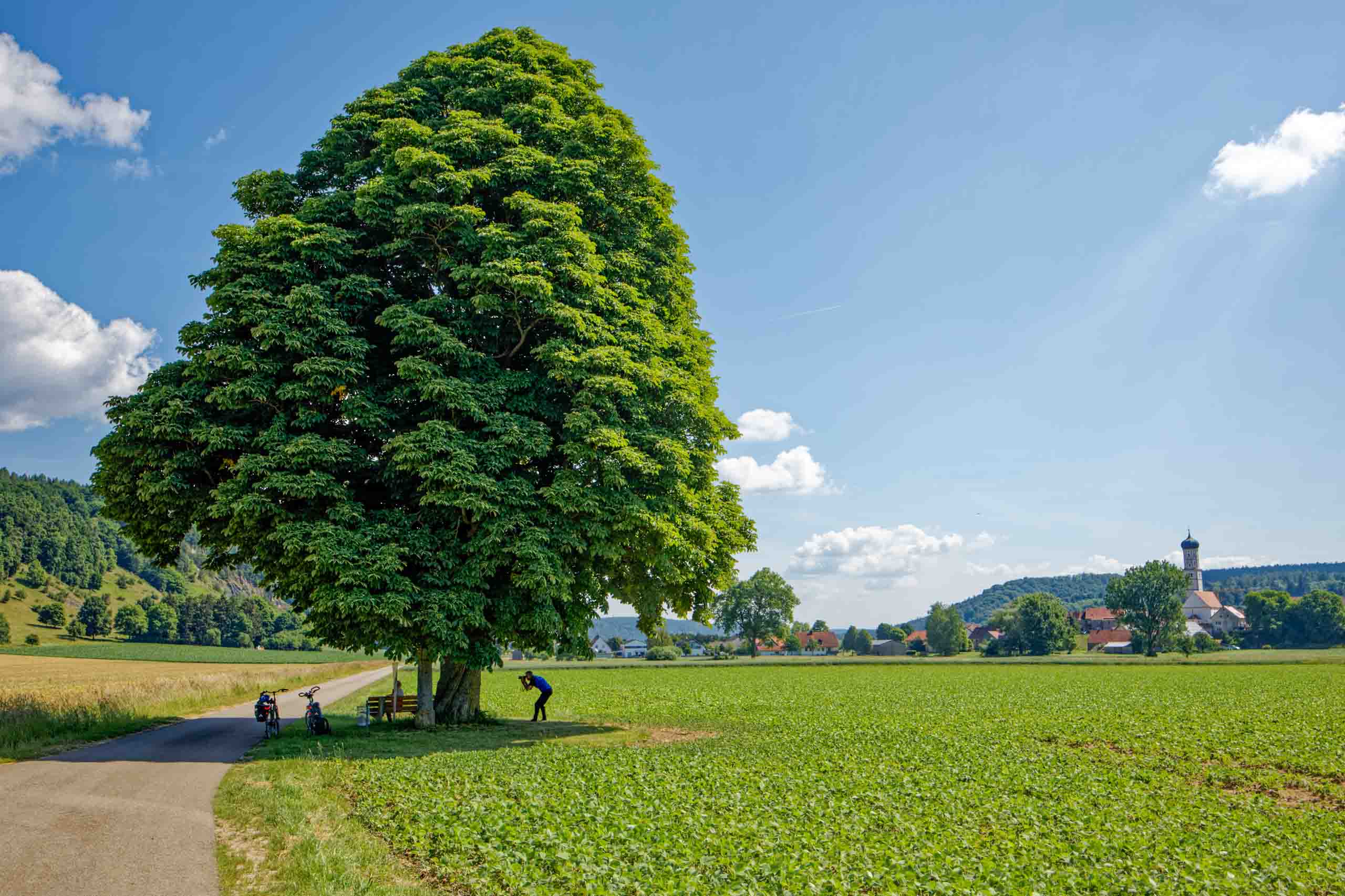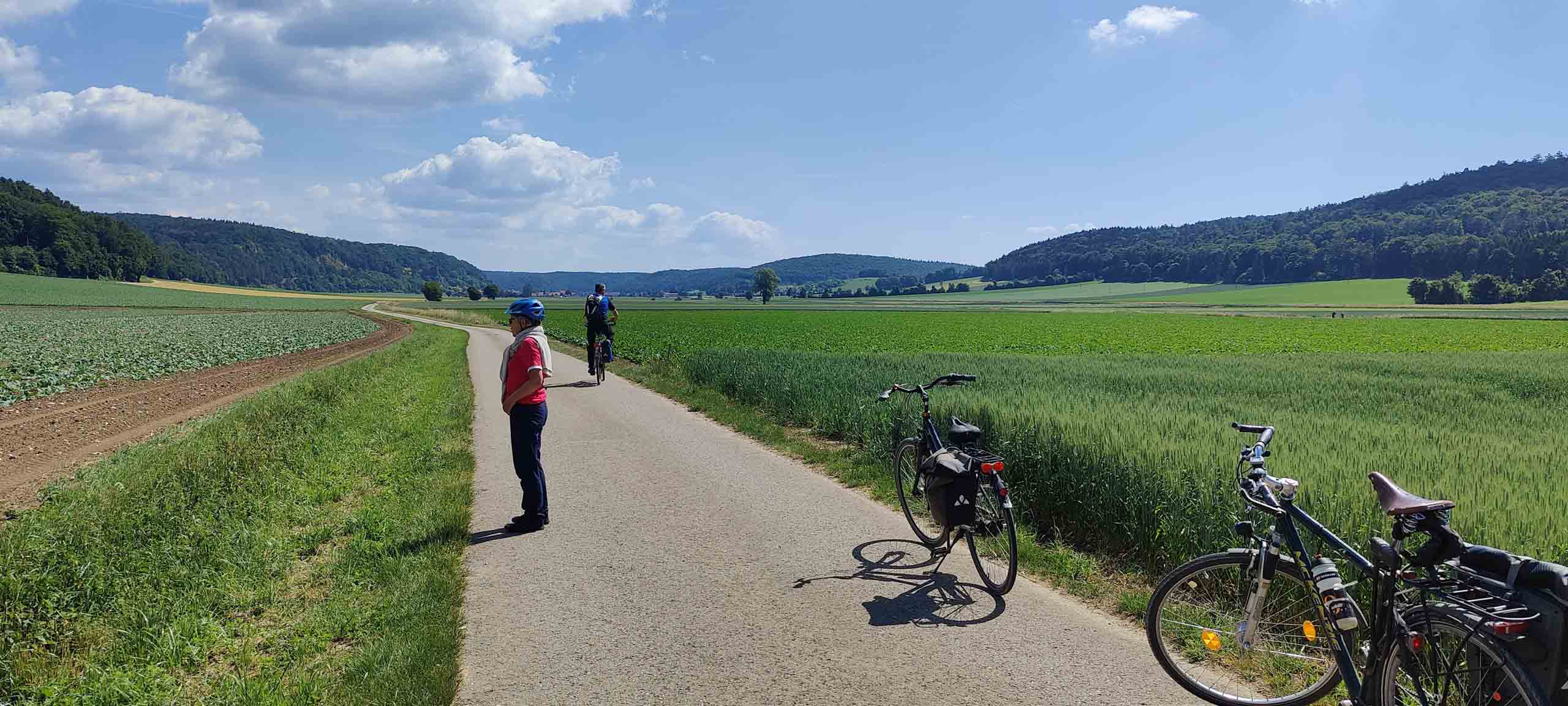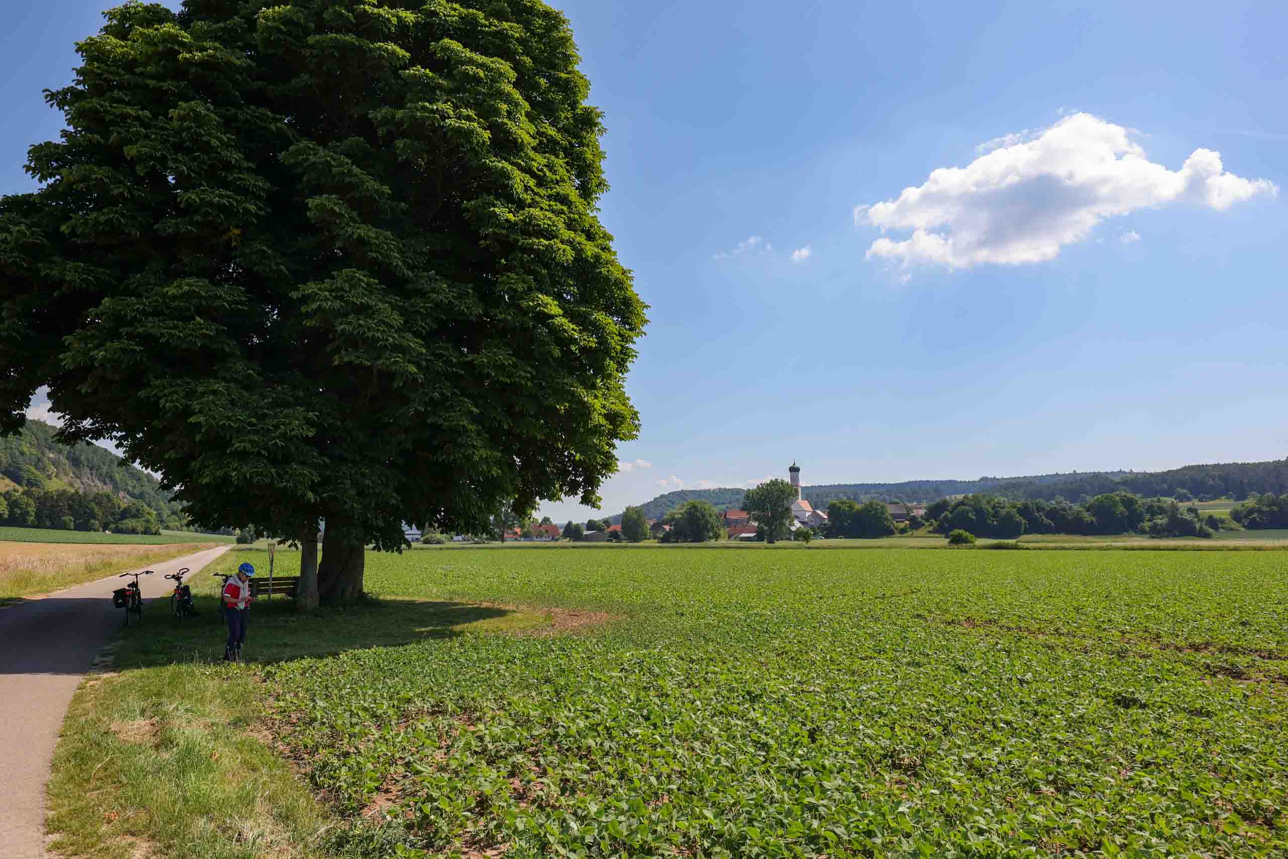 Noch ein kurzes Stück radeln wir heute entlang der Donau, dann biegen wir in das Wellheimer Trockental ab. Gebildet wurde es durch die Ur-Donau; weitgehend unverbaut bleibt der Blick frei auf die Landschaft aus Trockenrasen und Felsformationen. In Dollnstein erreichen wir das Altmühltal und folgen ihm bis zur Bischofs- und Universitätsstadt Eichstätt, die mit Hofgarten, bischöflichem Palais und Dom auf uns wartet. Unser heutiges Quartier "Hirschenwirt". Der Hirschenwirt in Wasserzell bei Eichstätt ist seit 1819 – jetzt sechs Generationen – im Familienbesitz. Wir nutzen die wunderschöne Lage und finden uns zum Abendessen im Biergarten ein.