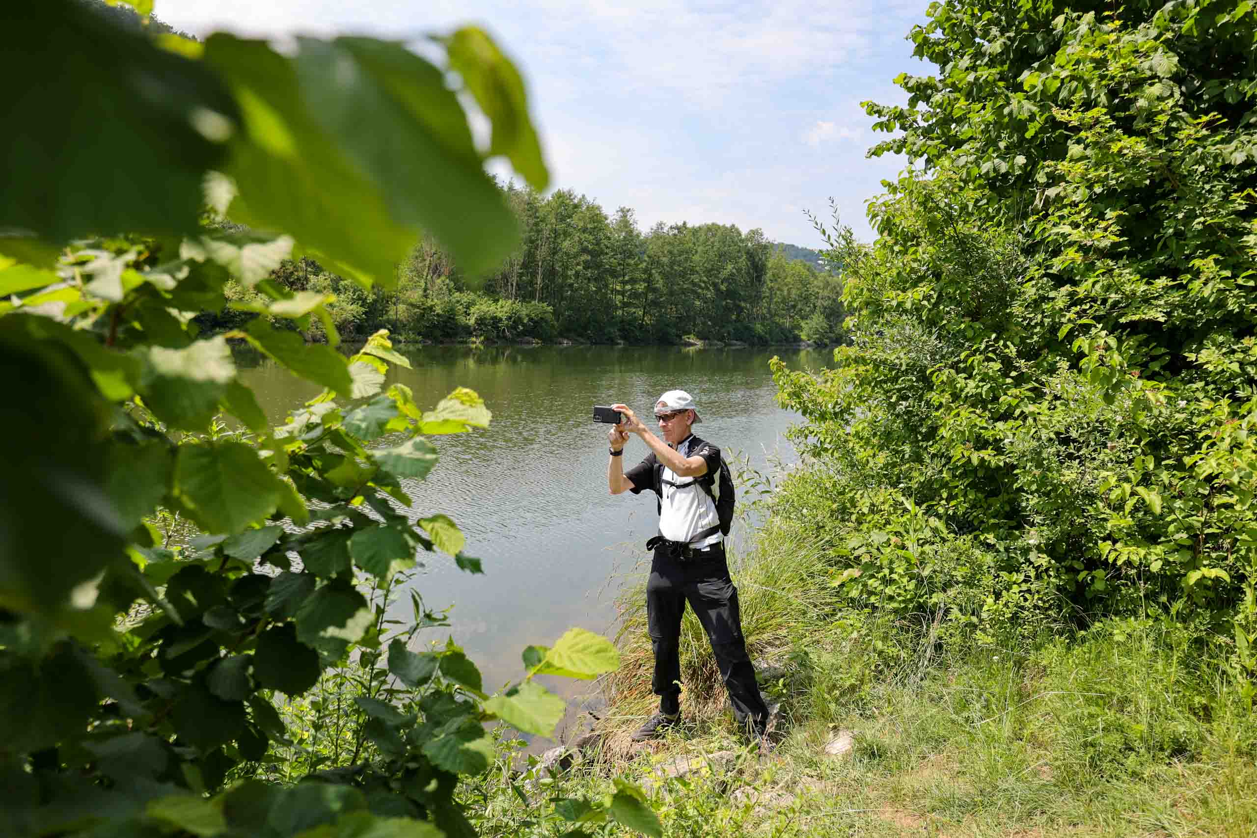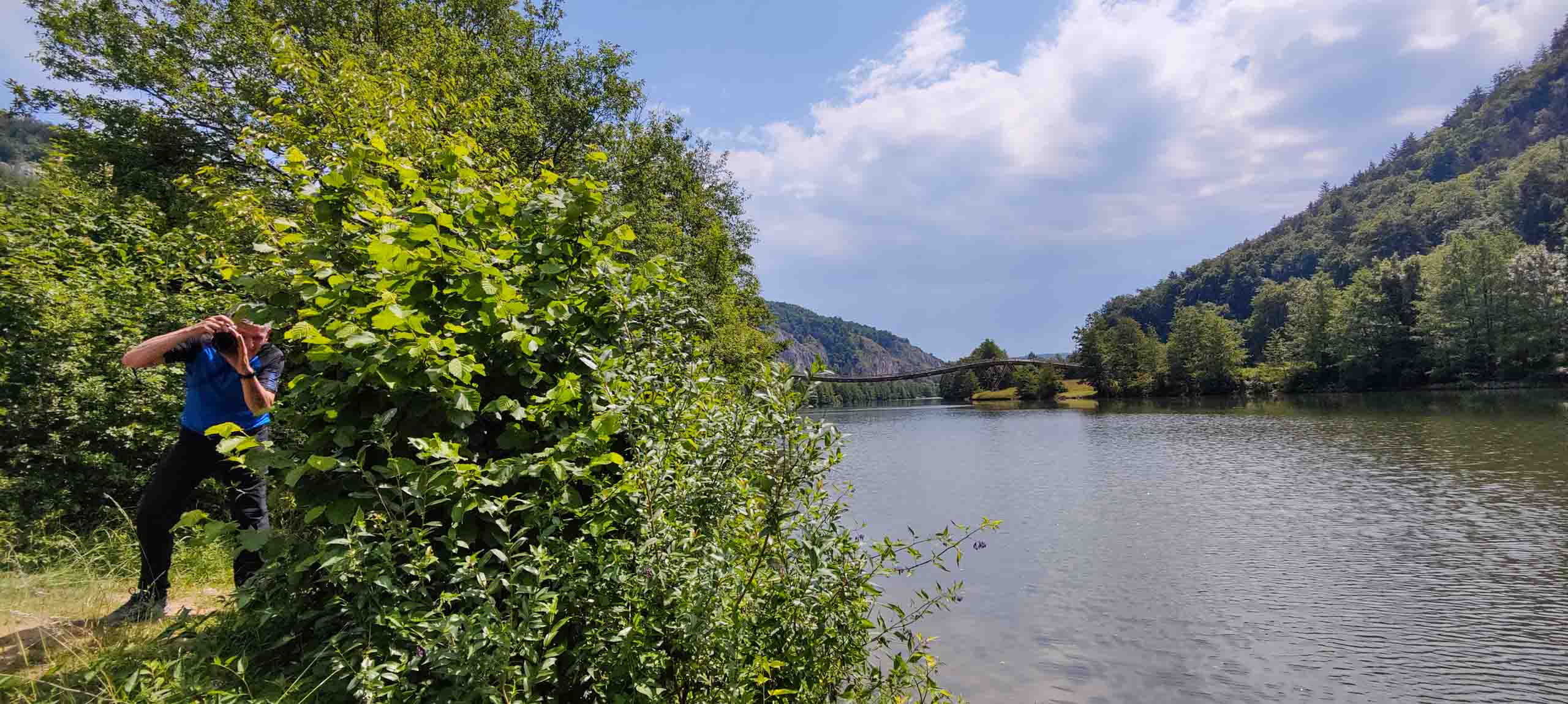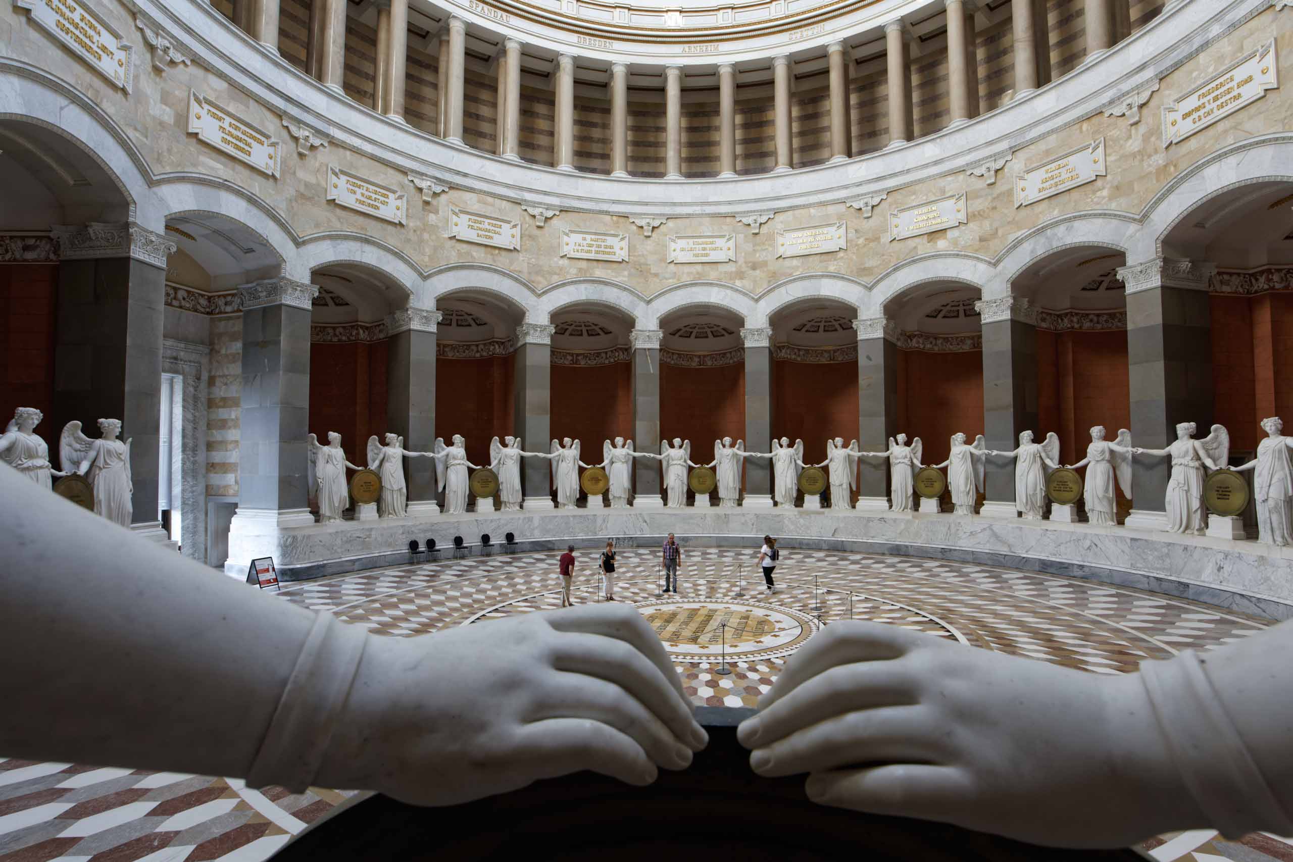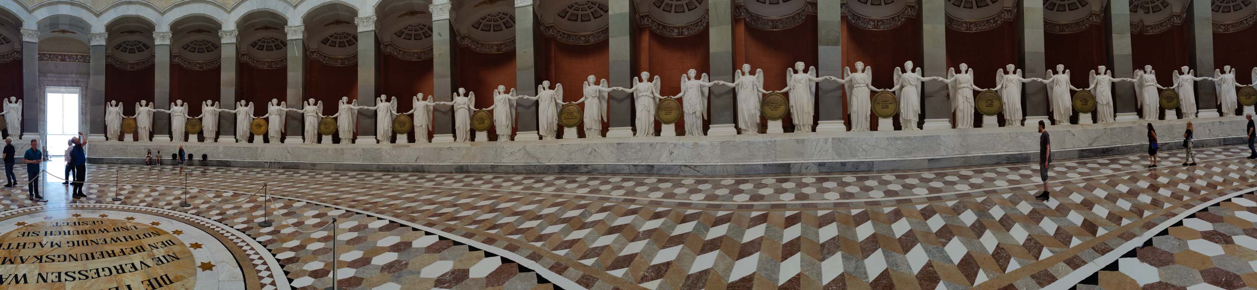 Wieder geht es zunächst an die Altmühl. Ab Dietfurt fließt diese dann im Bett des Main-Donau-Kanal. In Kelheim passieren wir zwischen der Einmündung der Altmühl in die Donau die bekannte Befreiungshalle auf dem Michelberg. Wir verfahren uns auf dem Weg dorthin dank veralteter Kartendaten im Wald und dann beginnt auch noch ein Gewitterregen mit kräftigen Schauern. Wohl dem, der seine Regenjacke nicht im Koffer gelassen sondern mitgenommen hat. Wir verlieren uns zudem noch bei der Suche nach einem geschützen Unterstand und treffen uns schließlich auf dem Markt Kelheim wieder. Und gleich scheint auch wieder die Sonne. Bei Kaffee, Kakao und Kuchen werden die Kalorien aufgefüllt, die Sachen trocknen schnell und uns wird wieder warm. Der fast aufgegeben steile Aufstieg zur Befreiungshalle lohnt dann doch und entschädigt mit vielen schönen Ausblicken.