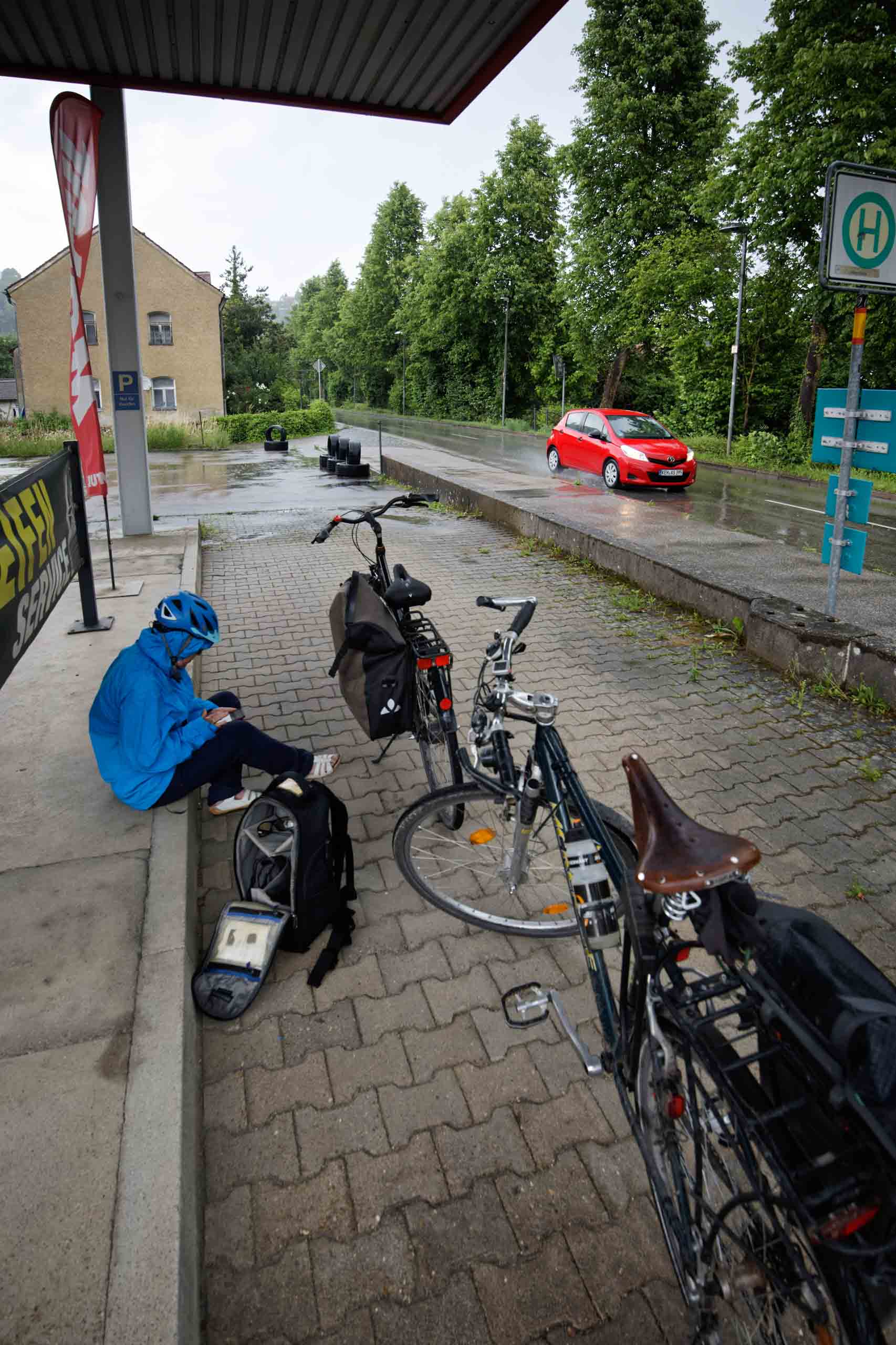 Kurz hinter Kelheim sollen wir in Saal an der Donau in die Bahn steigen und die letzten Kilometer bis Regensburg bequem auf den Schienen zurücklegen. Am Bahnhof Saale warten jedoch gefühlt 50 Mitreisende und 12 Fahrräder auf unseren Zug. Im Kopf wird schon ein Plan B mit weiteren 30 km auf dem Fahrrad befürchtet. Doch es klappt besser als gedacht, das Zugpersonal gibt Hinweise auf freie Stellplätze und so kann jeder mitfahren, wenngleich auch tw. auf einem Stehplatz. So kommen wir ziemlich spät wieder ins Hotel in Rgensburg. Schnell geduscht und umgezogen, radeln wir in den Biergarten vom Traditionswirtshaus "Spitalkeller". Ziemlich erschöpft fallen wir später ins Bett...