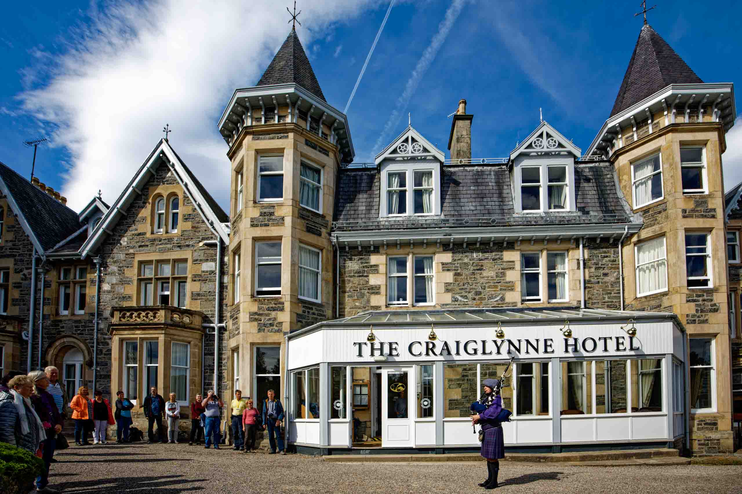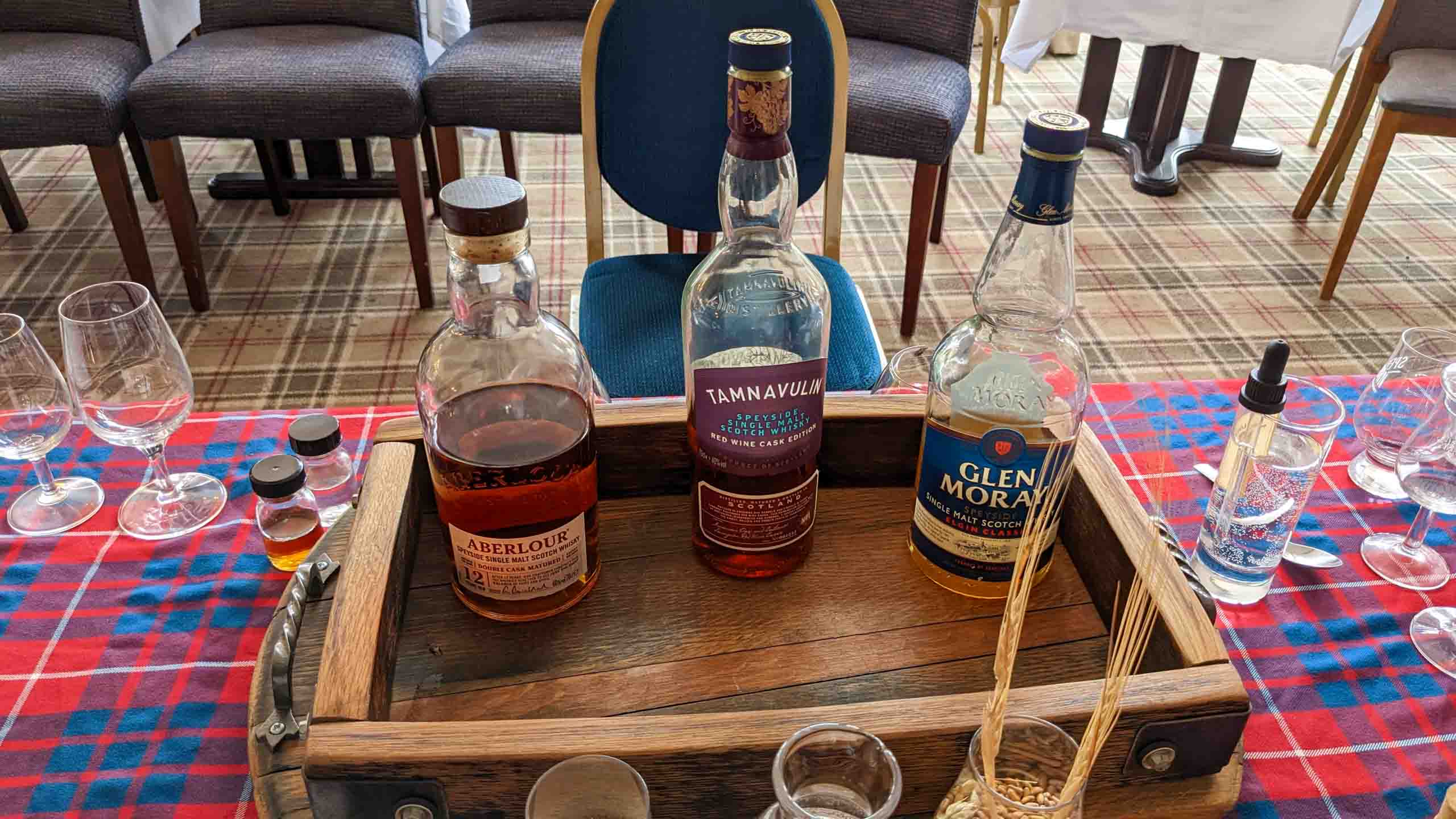 Weiter geht es in die Region Speyside, in der sich die Whiskyproduktion konzentriert. Wegen einer Havarie in der gebuchten Distellery wurde unsere heutige Verkostung abgesagt. Unser Reiseleiter Patrick organisierte kurzerhand eine Verkostung direkt bei uns im Hotel, sogar mit Dudelsack-Musiker.