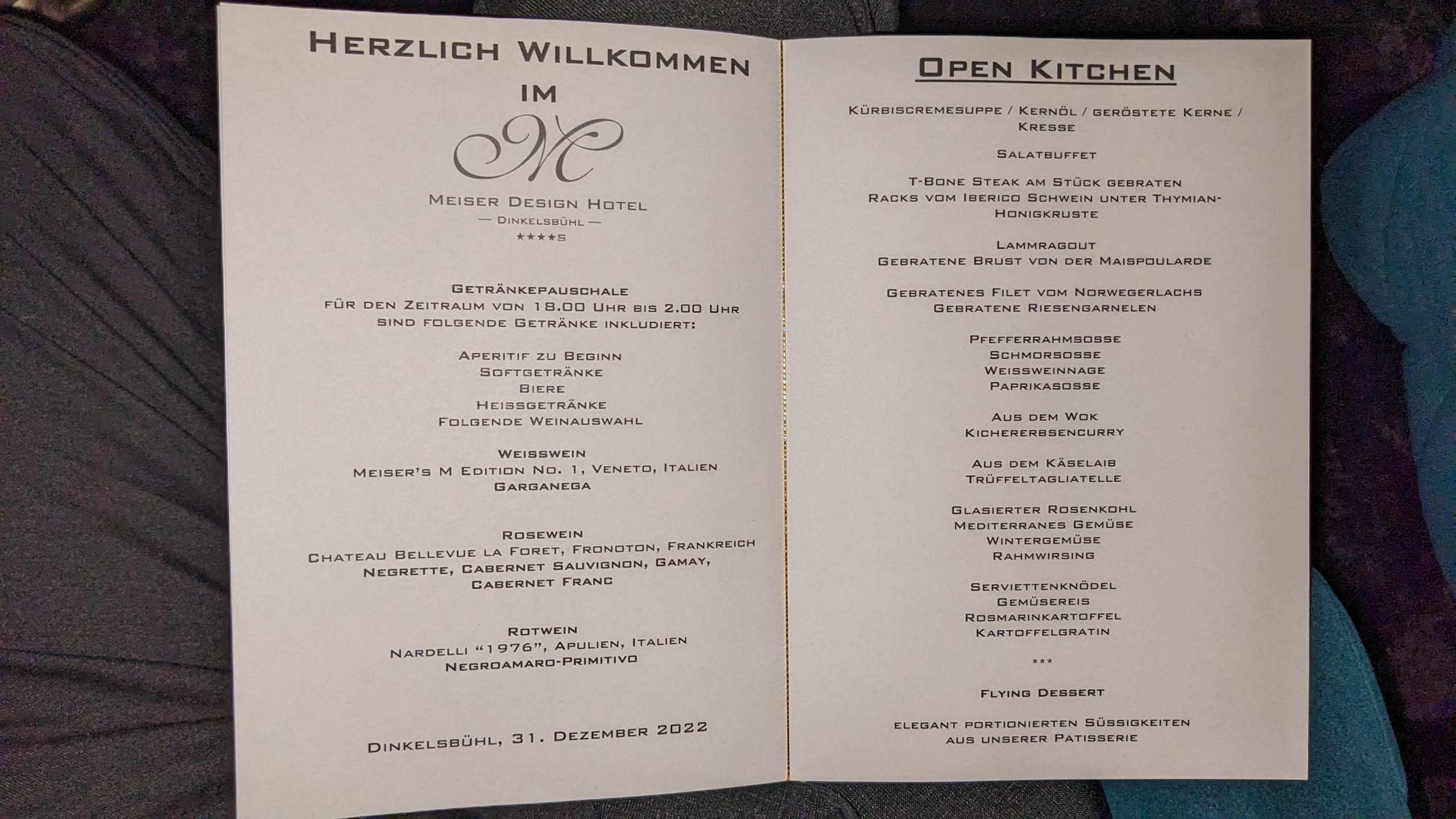 Das erst 2019 eröffnete Design-Hotel Meiser feierte 2022 seine Silvester-Premiere und das spürte man dann leider. Am Silvester-Buffett gab es eine sehr lange Schlange, deren Länge auch im Verlauf des Abends nicht wesentlich abnahm. Das Essen selbst war sehr lecker und wir trotz allem hatten wir einen schönen Jahreswechsel.